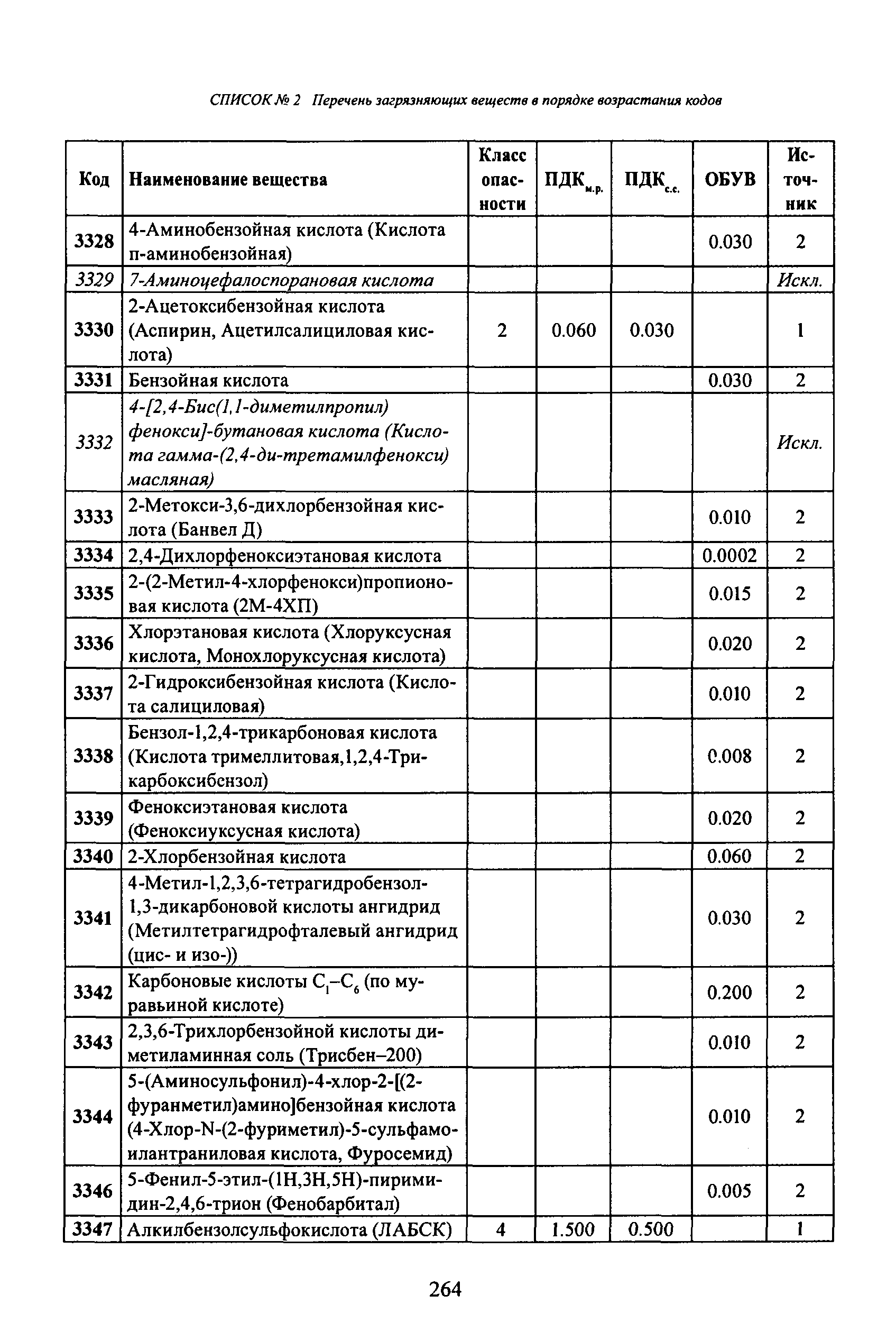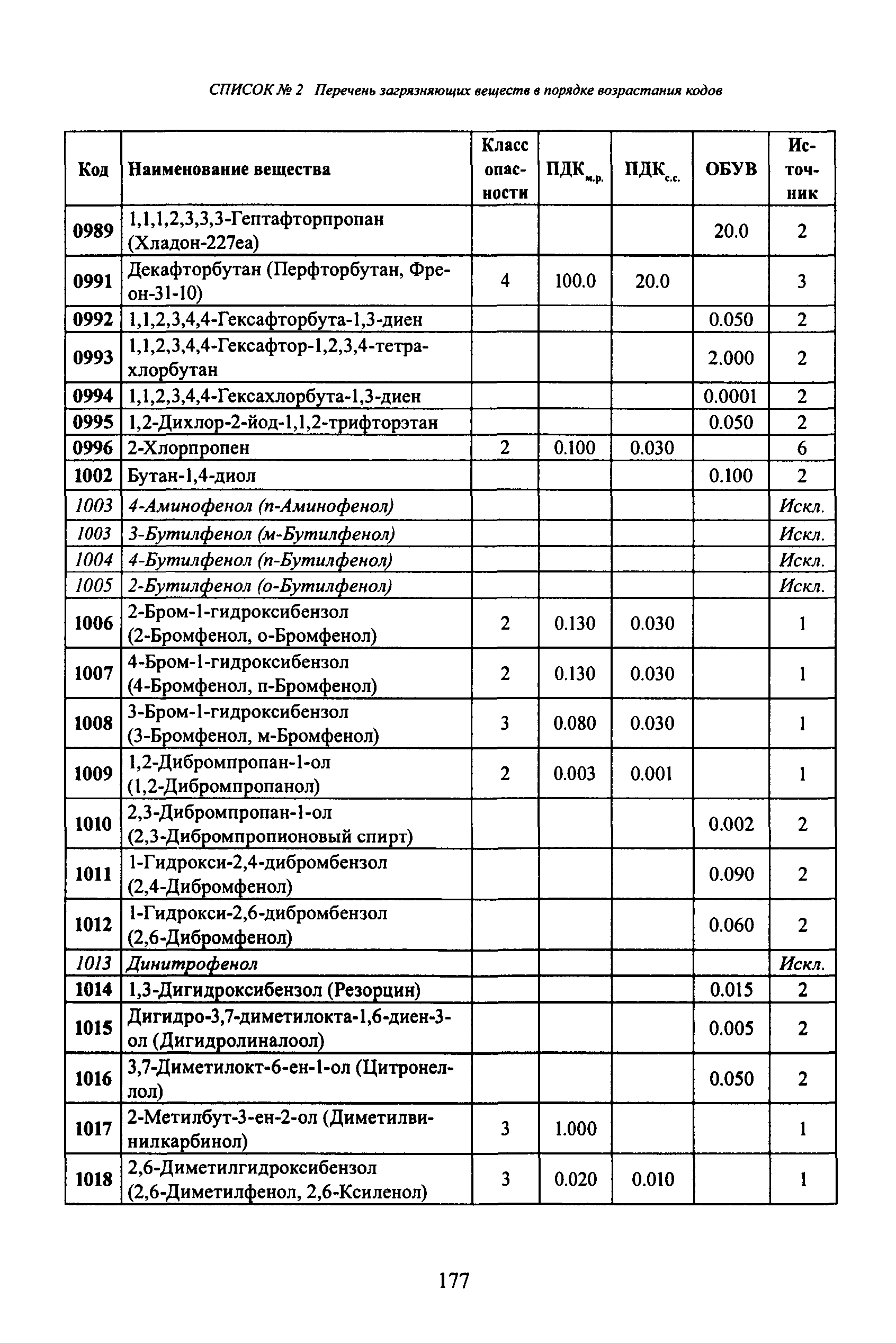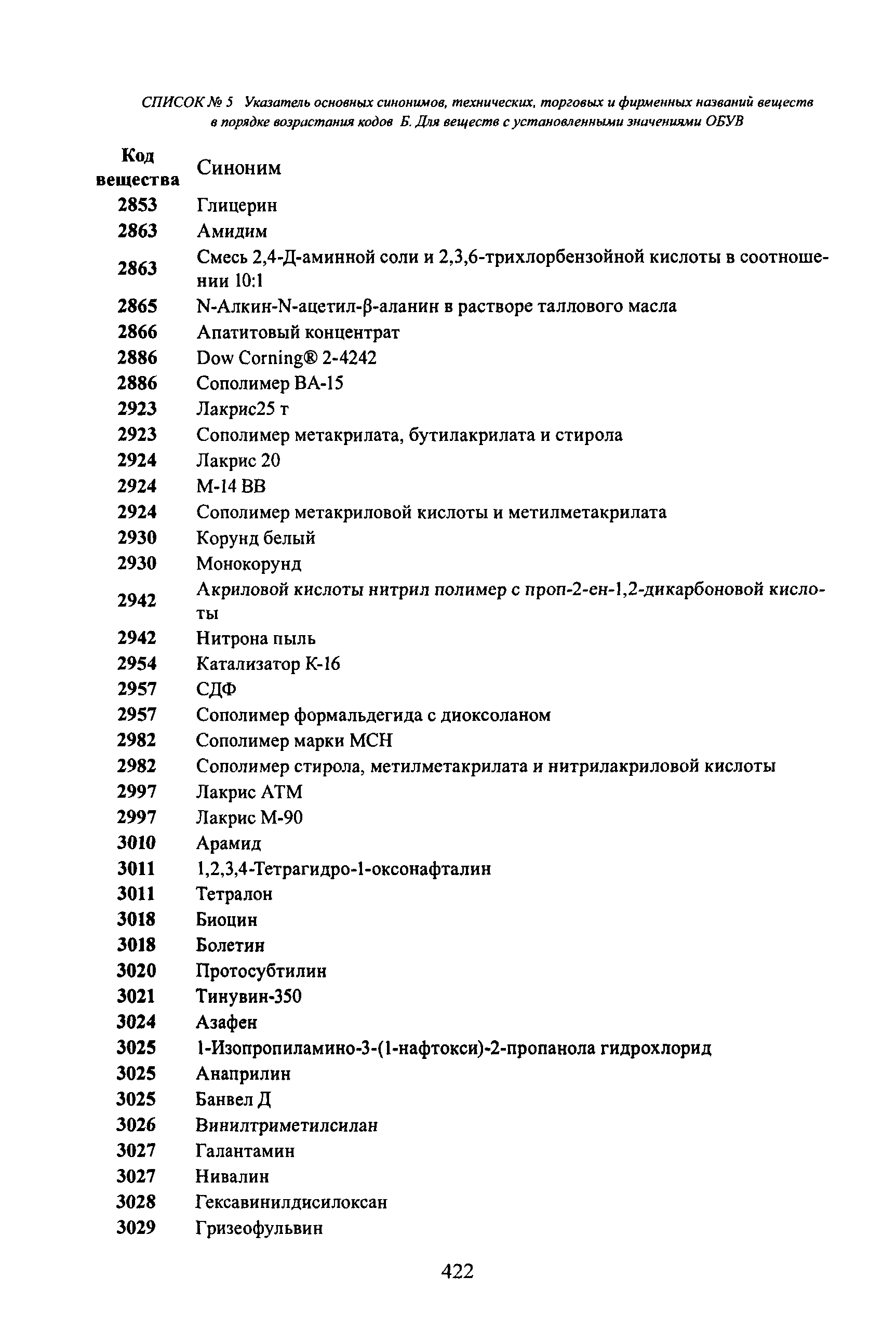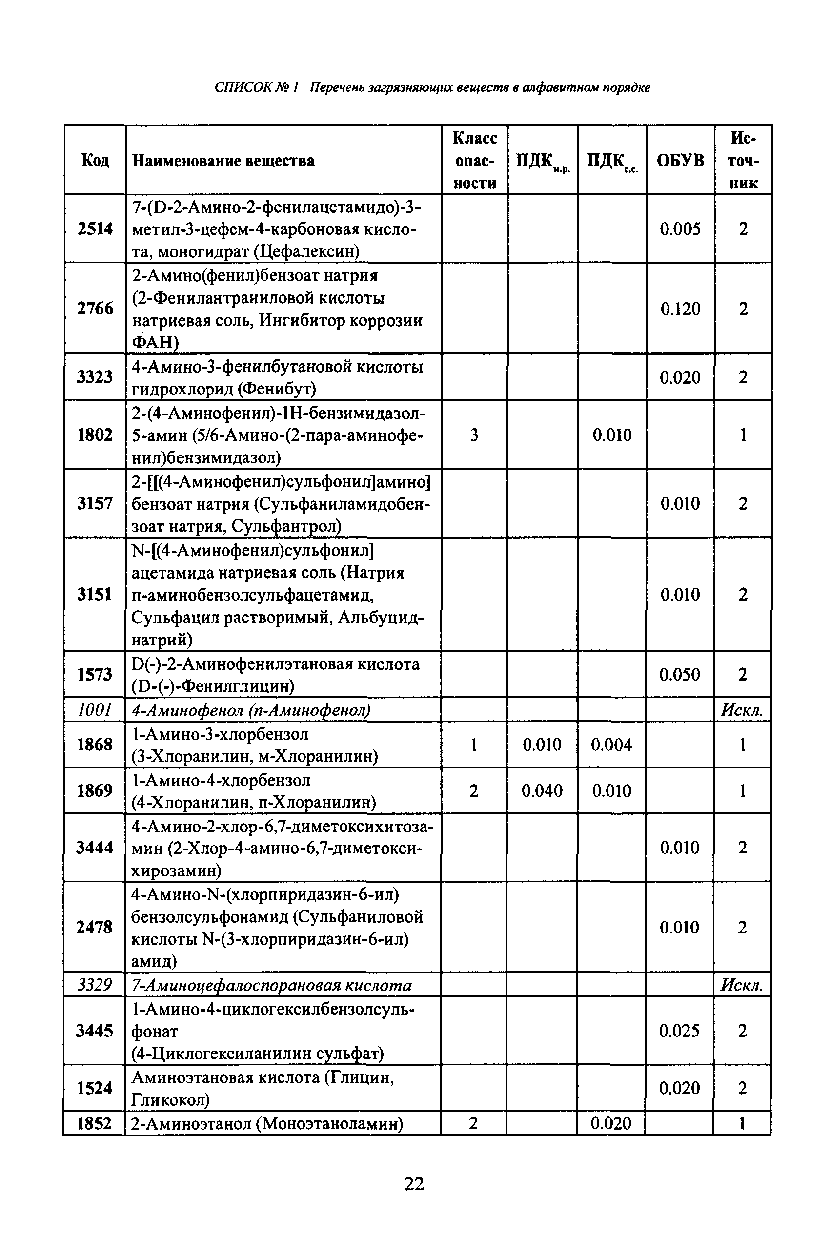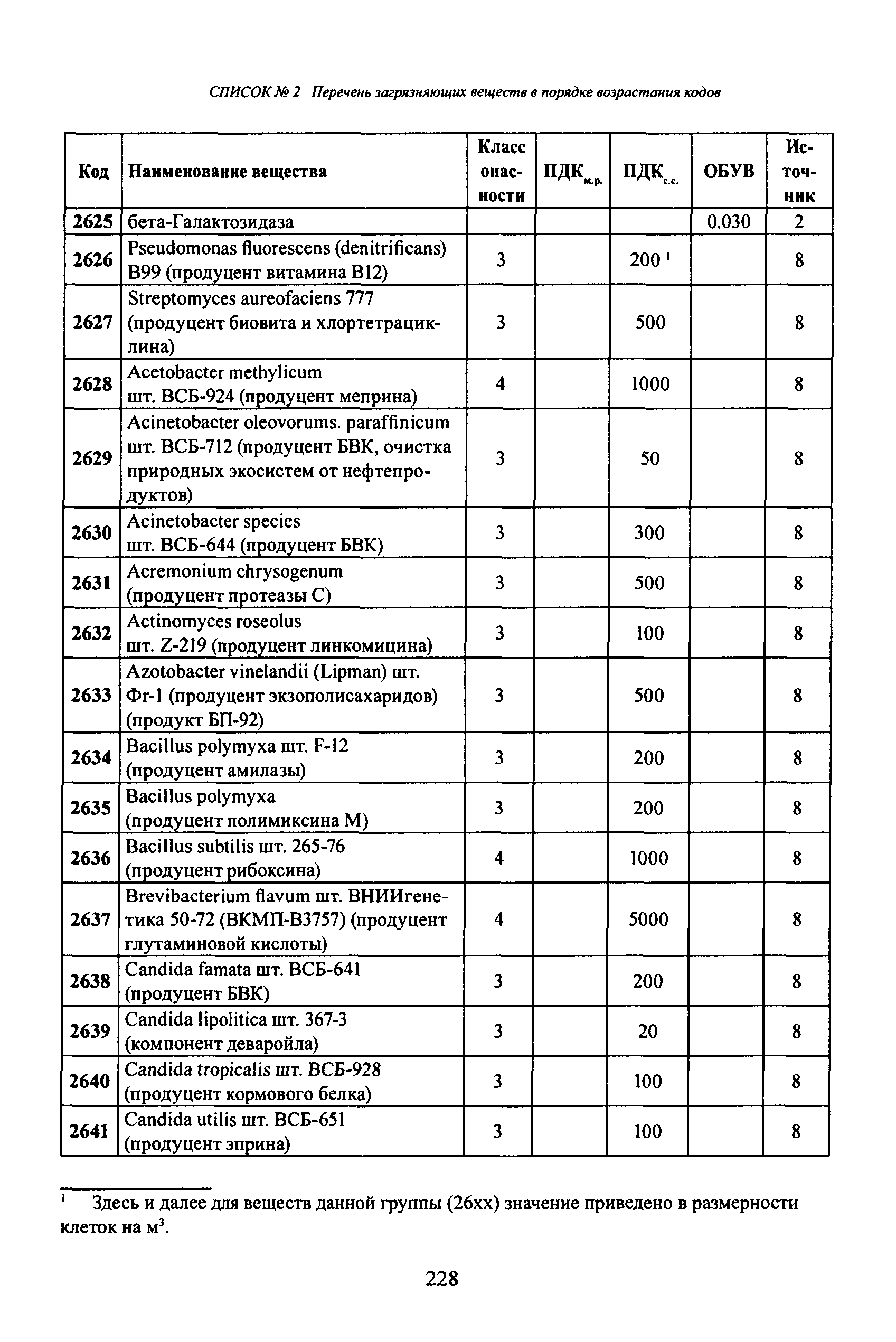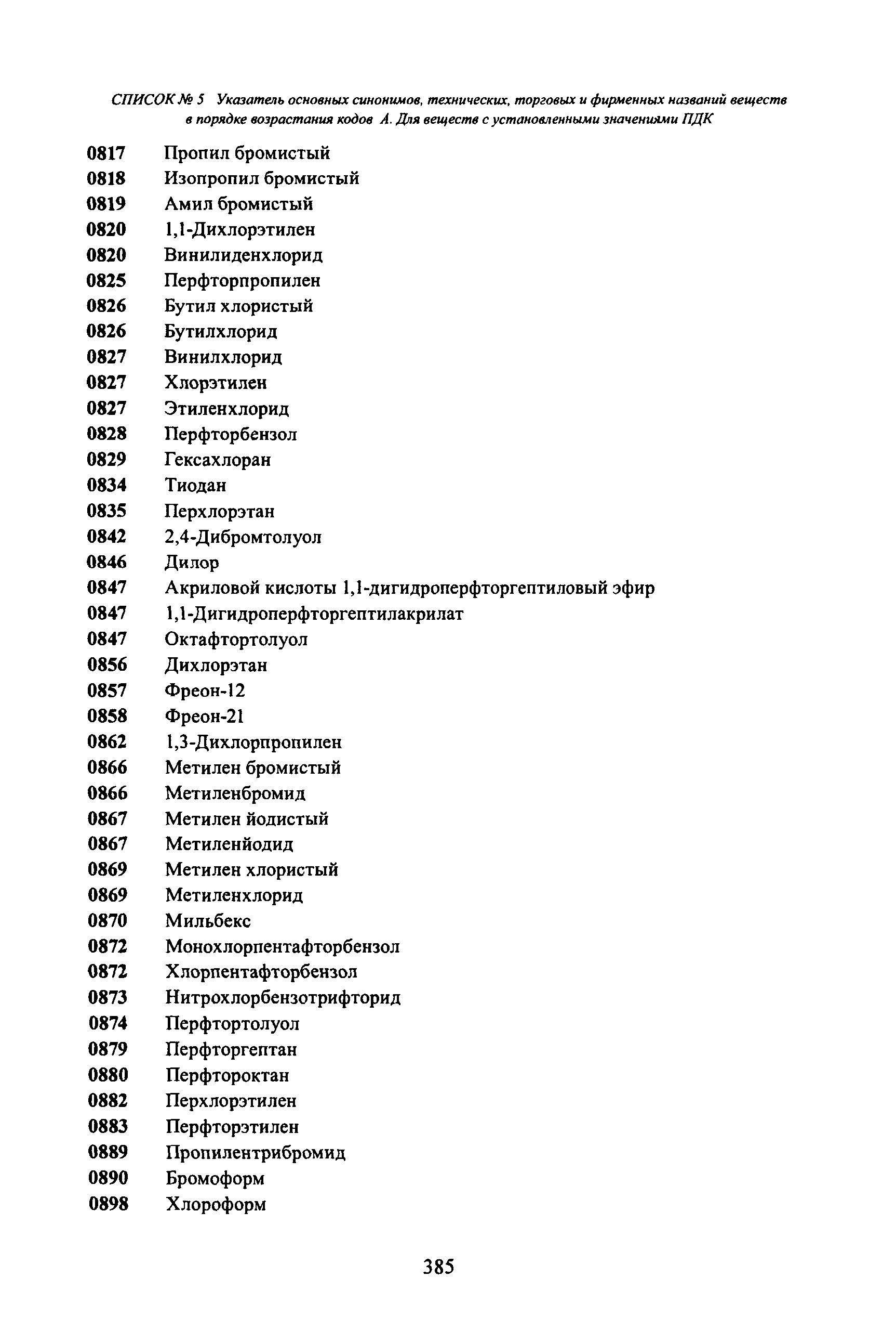 | Оглавление: | Введение Список № 1 Перечень загрязняющих веществ в алфавитном порядке Список № 2 Перечень загрязняющих веществ в порядке возрастания кодов Список № 3 Перечень ЛОС в порядке возрастания кодов Список № 4 Указатель основных синонимов, технических, торговых и фирменных названий веществ в алфавитном порядке А. Для веществ с установленными значениями ПДК Б. Для веществ с установленными значениями ОБУВ Список № 5 Указатель основных синонимов, технических, торговых и фирменных названий веществ в порядке возрастания кодов А. Для веществ с установленными значениями ПДК Б. Для веществ с установленными значениями ОБУВ |