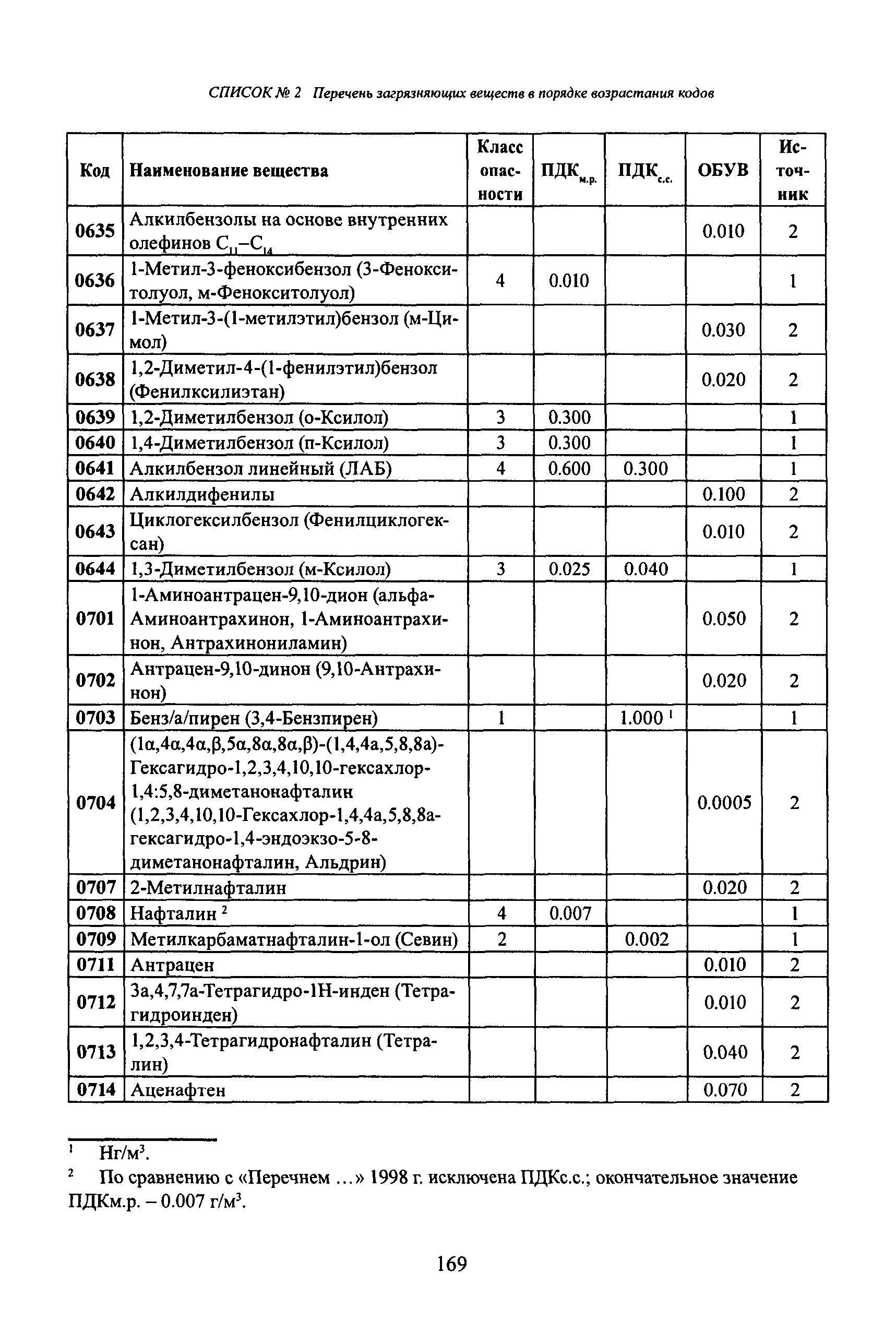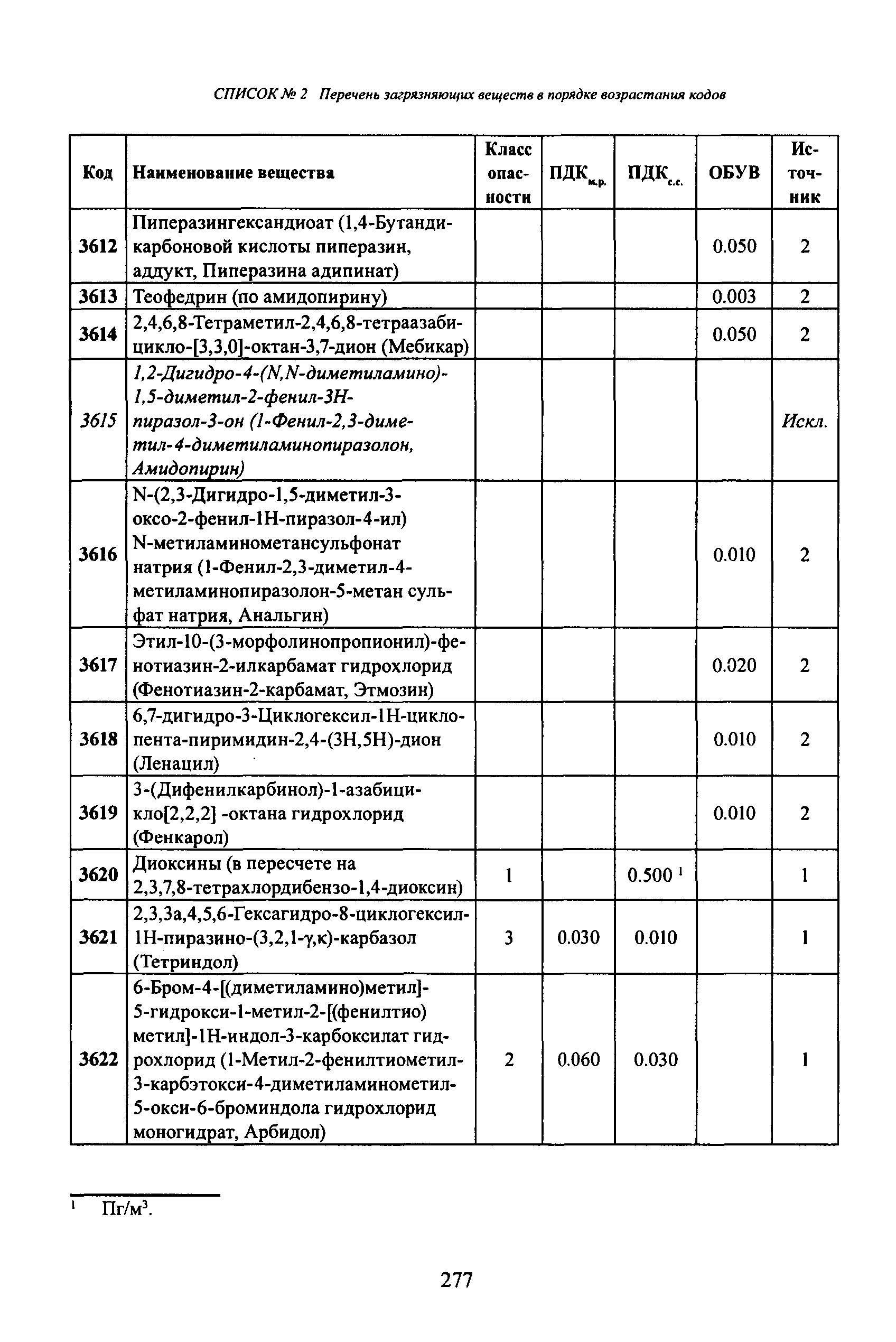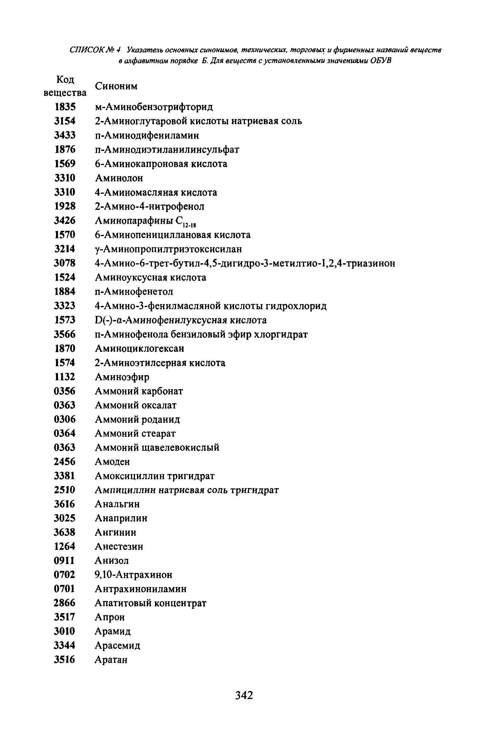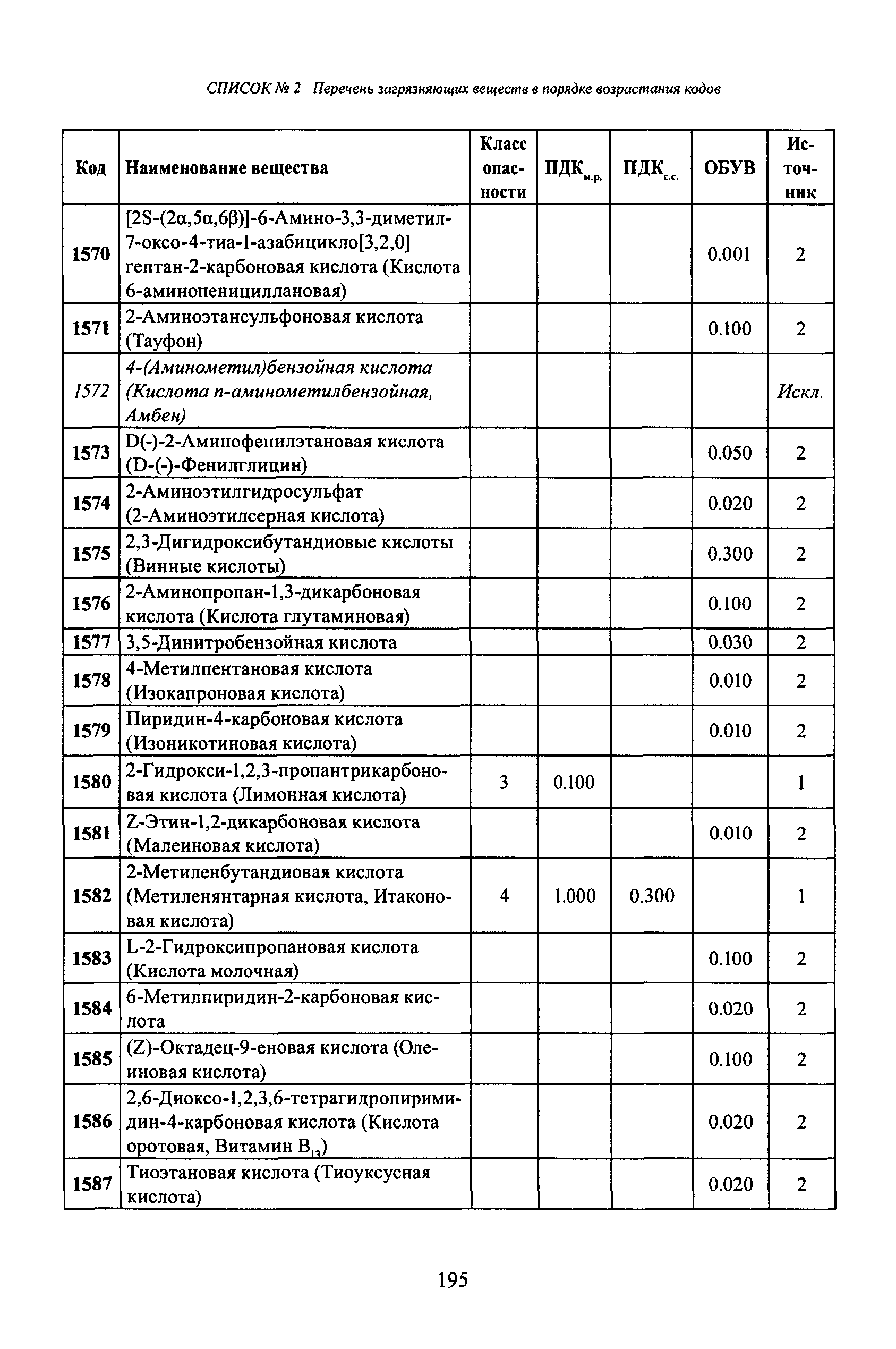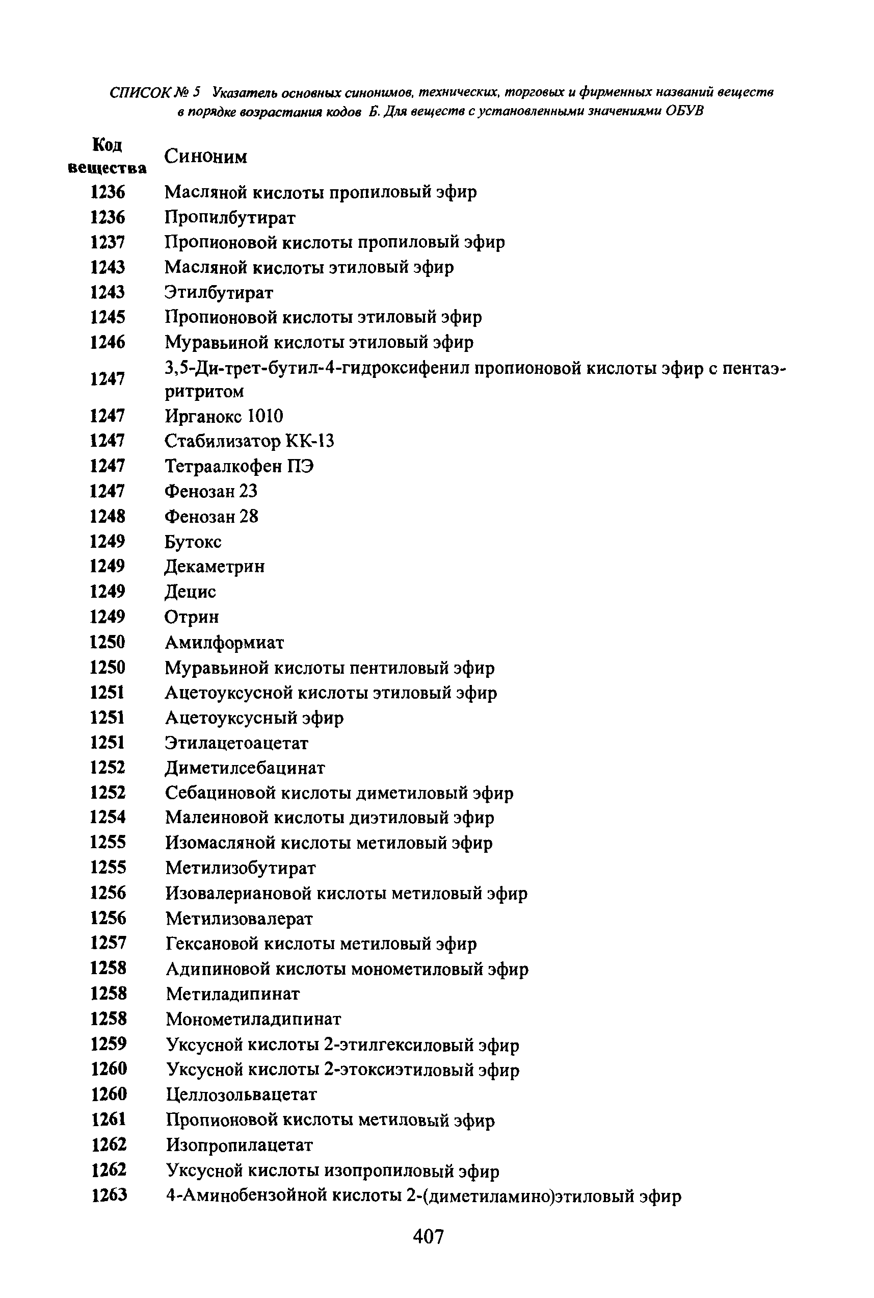 | Оглавление: | Введение Список № 1 Перечень загрязняющих веществ в алфавитном порядке Список № 2 Перечень загрязняющих веществ в порядке возрастания кодов Список № 3 Перечень ЛОС в порядке возрастания кодов Список № 4 Указатель основных синонимов, технических, торговых и фирменных названий веществ в алфавитном порядке А. Для веществ с установленными значениями ПДК Б. Для веществ с установленными значениями ОБУВ Список № 5 Указатель основных синонимов, технических, торговых и фирменных названий веществ в порядке возрастания кодов А. Для веществ с установленными значениями ПДК Б. Для веществ с установленными значениями ОБУВ |