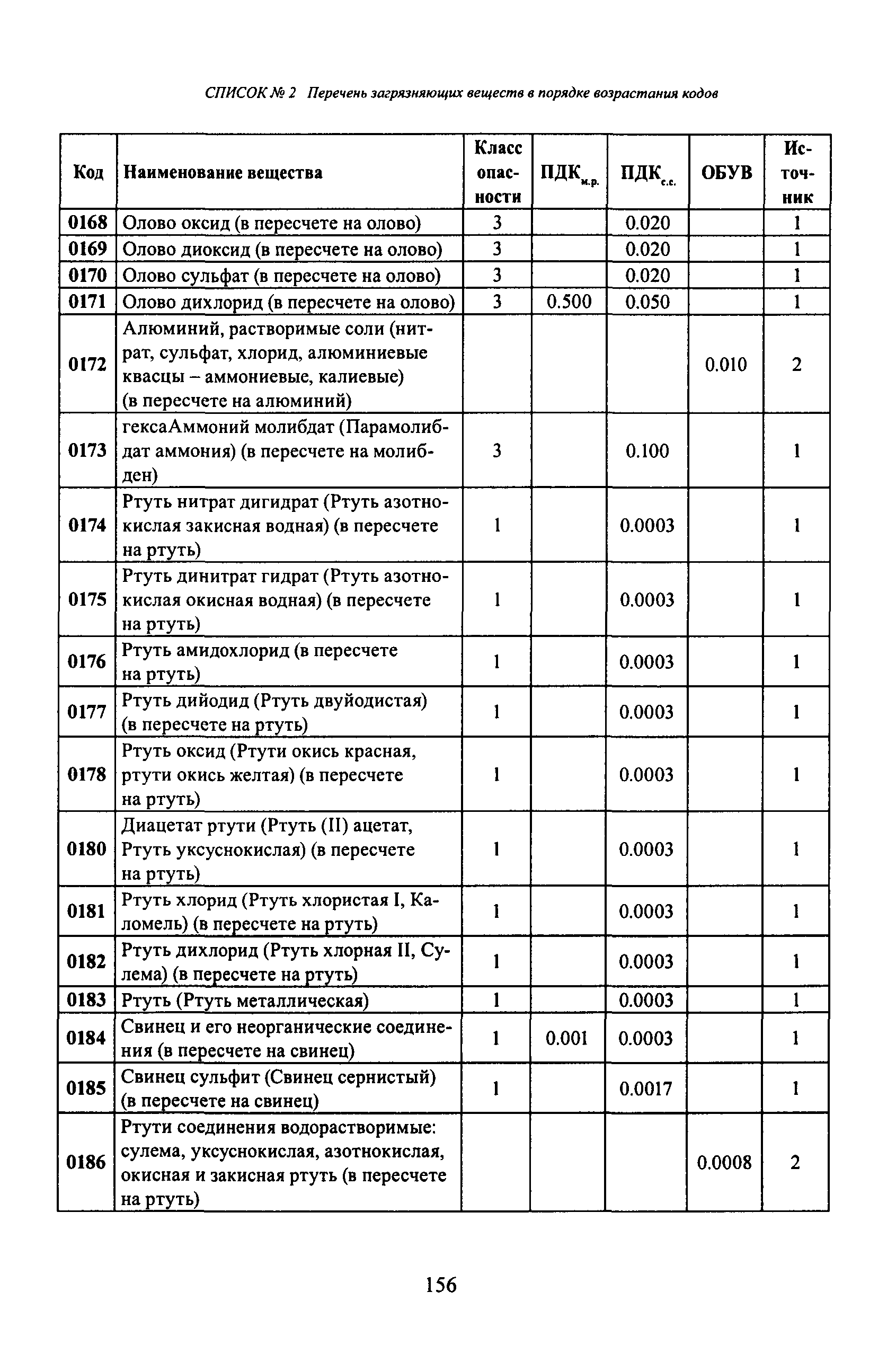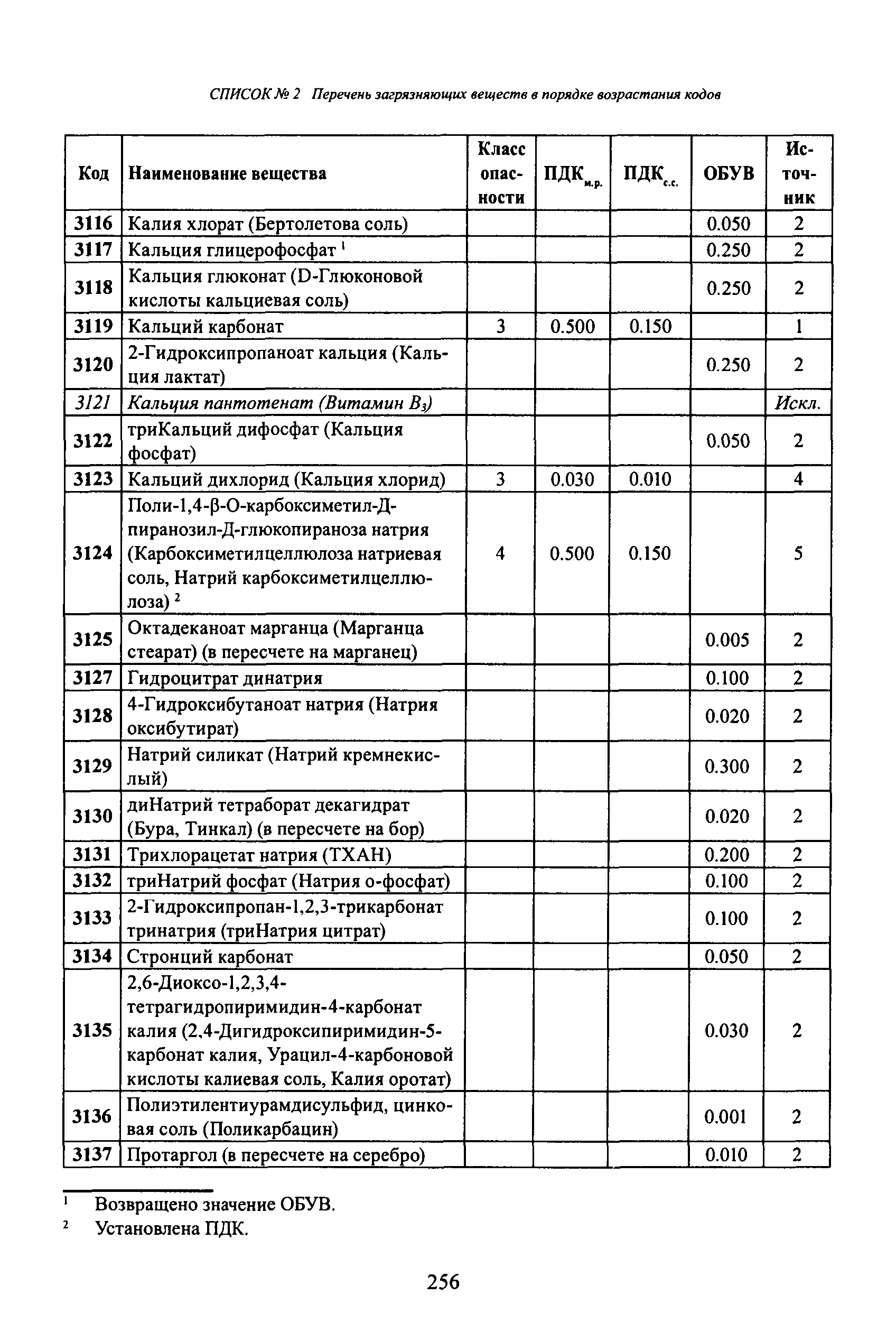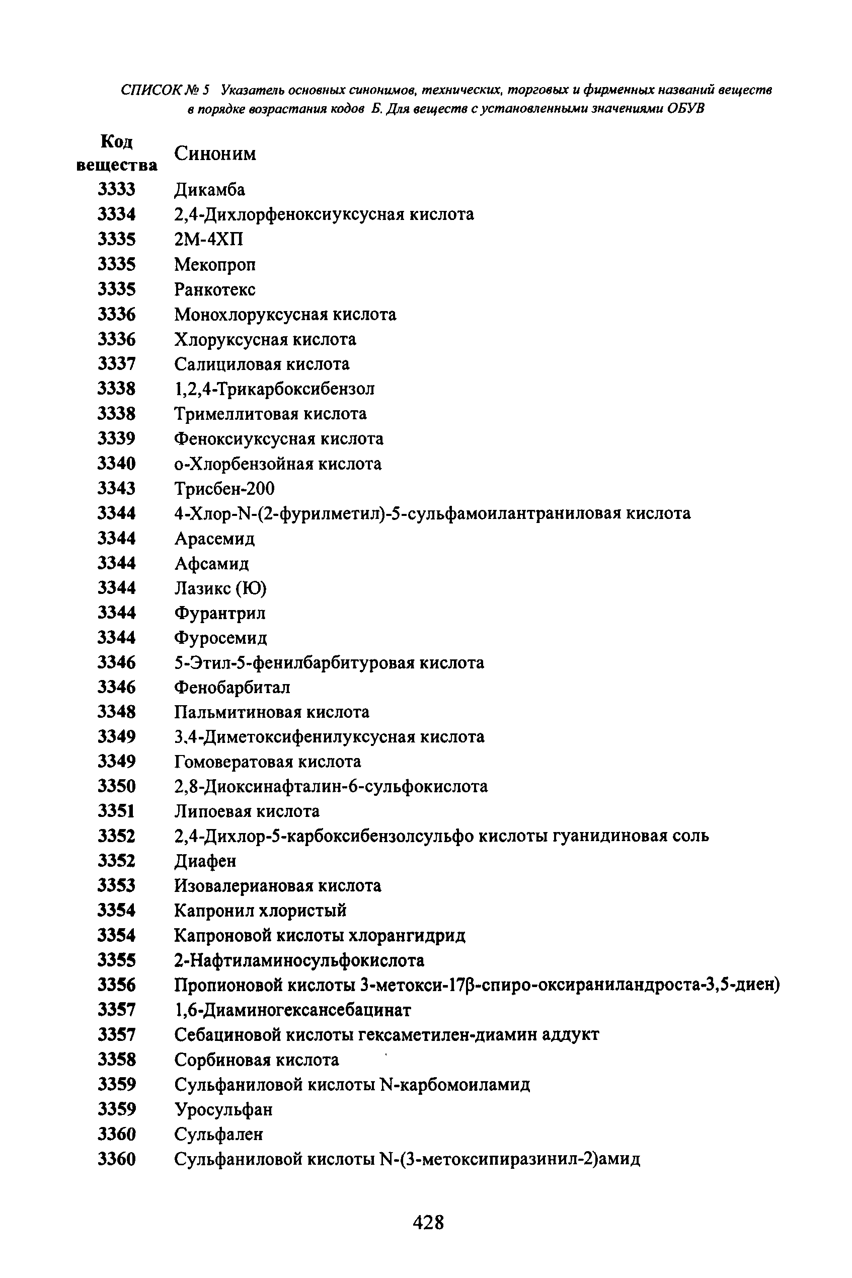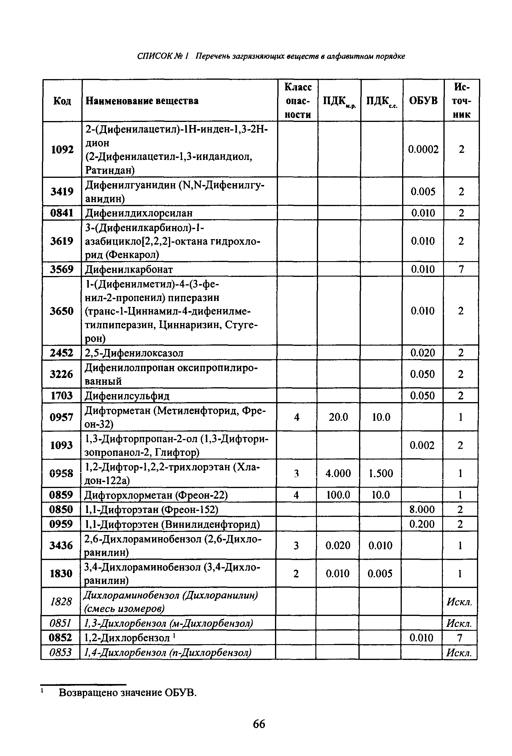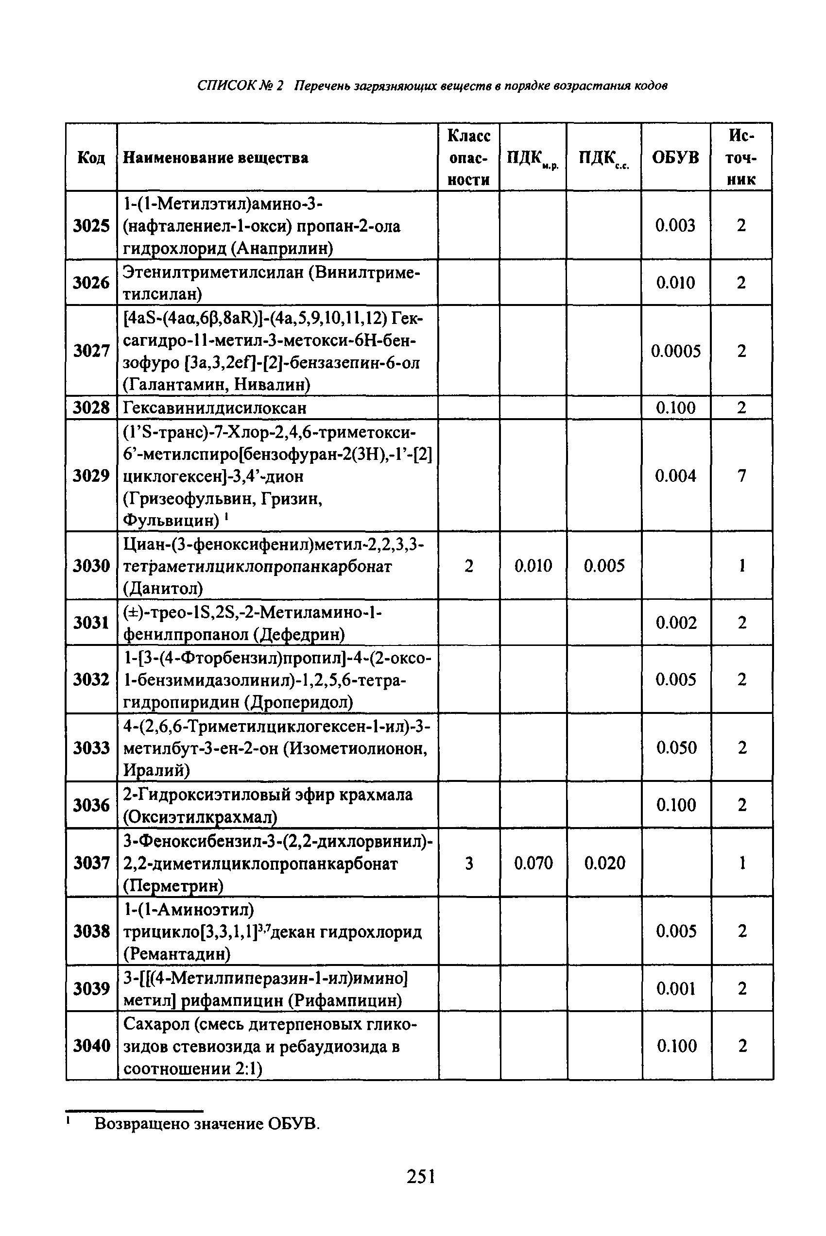 | Оглавление: | Введение Список № 1 Перечень загрязняющих веществ в алфавитном порядке Список № 2 Перечень загрязняющих веществ в порядке возрастания кодов Список № 3 Перечень ЛОС в порядке возрастания кодов Список № 4 Указатель основных синонимов, технических, торговых и фирменных названий веществ в алфавитном порядке А. Для веществ с установленными значениями ПДК Б. Для веществ с установленными значениями ОБУВ Список № 5 Указатель основных синонимов, технических, торговых и фирменных названий веществ в порядке возрастания кодов А. Для веществ с установленными значениями ПДК Б. Для веществ с установленными значениями ОБУВ |