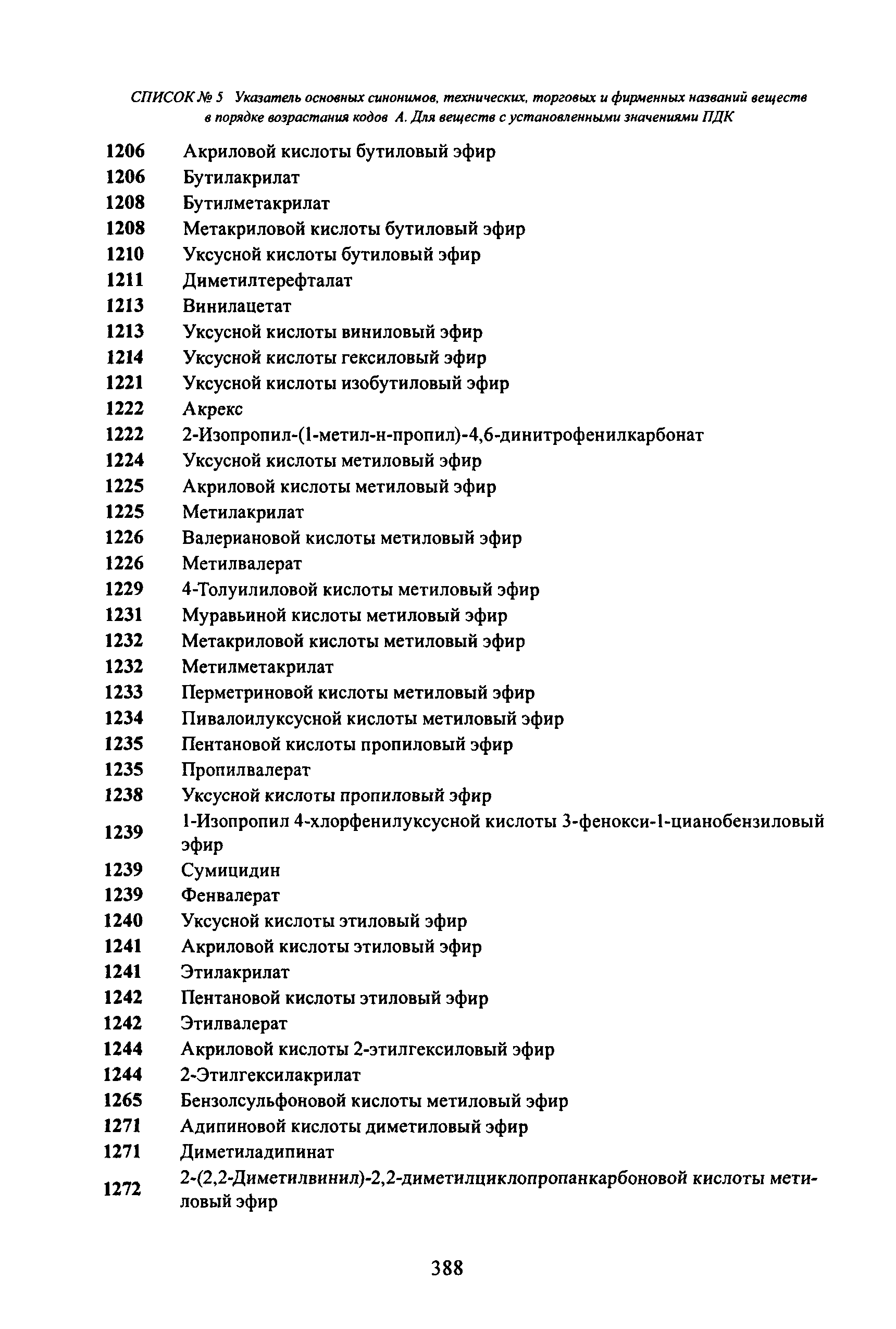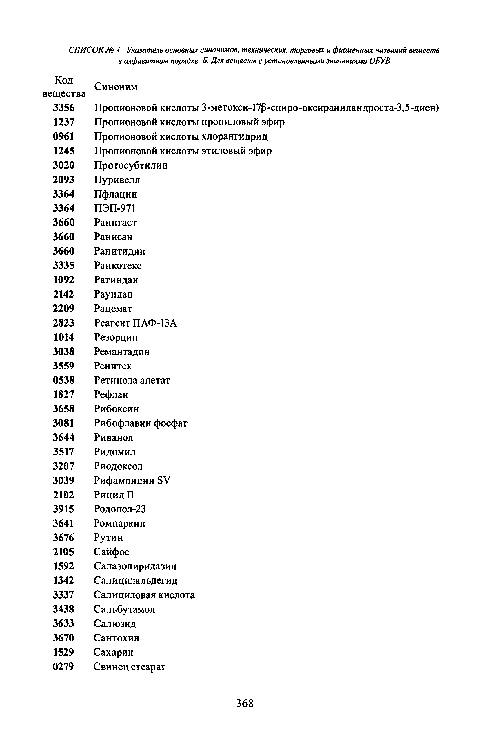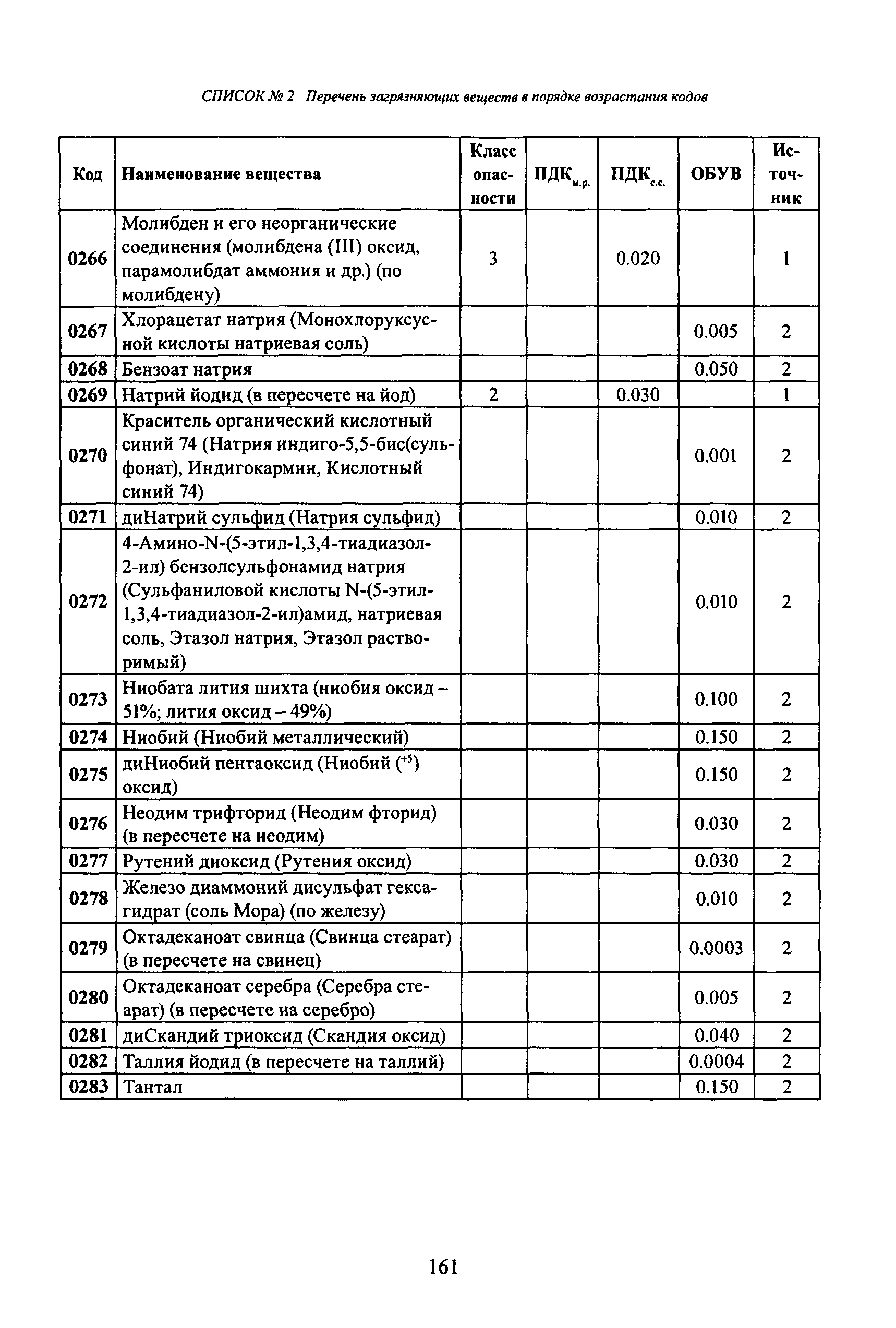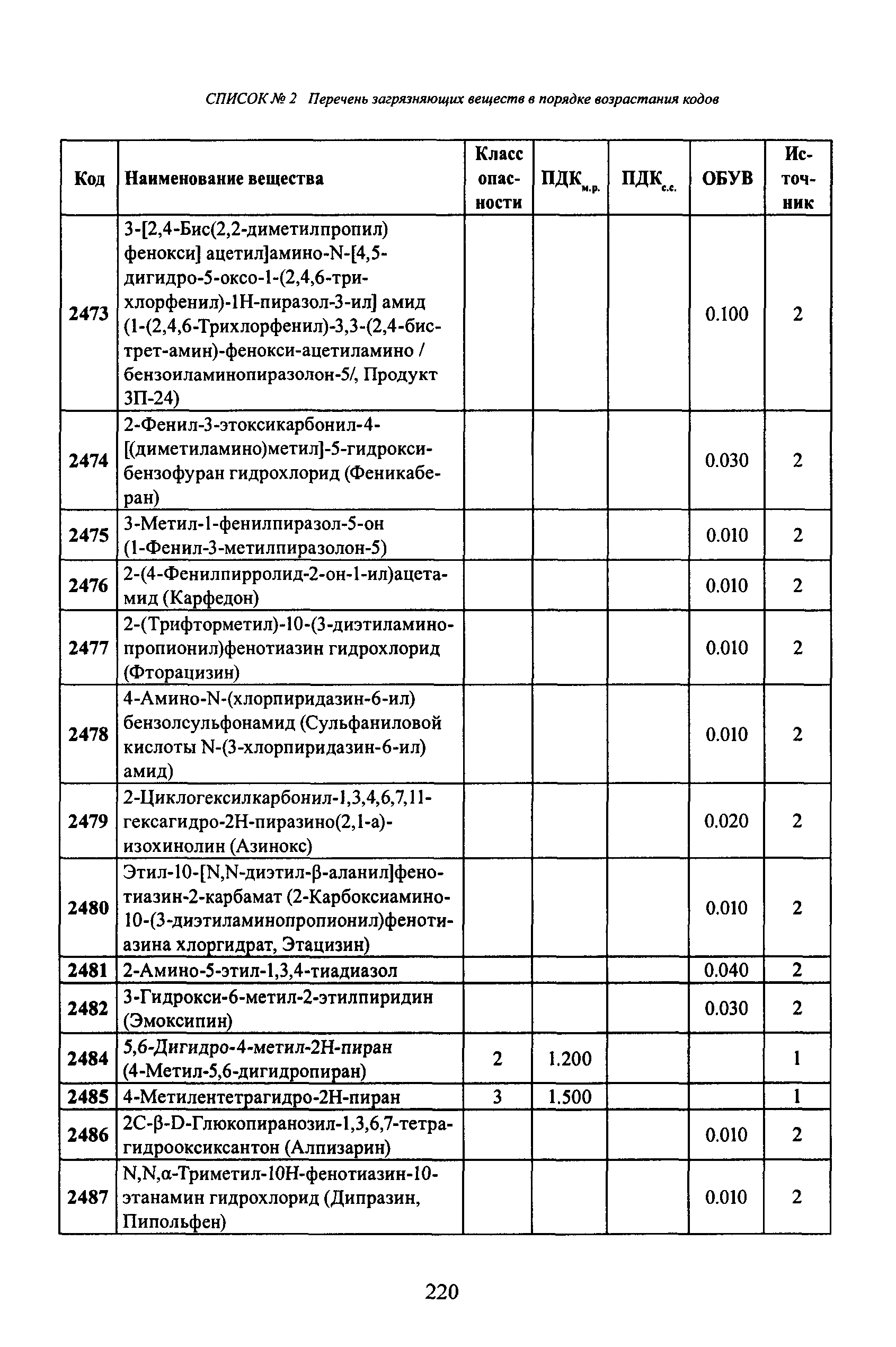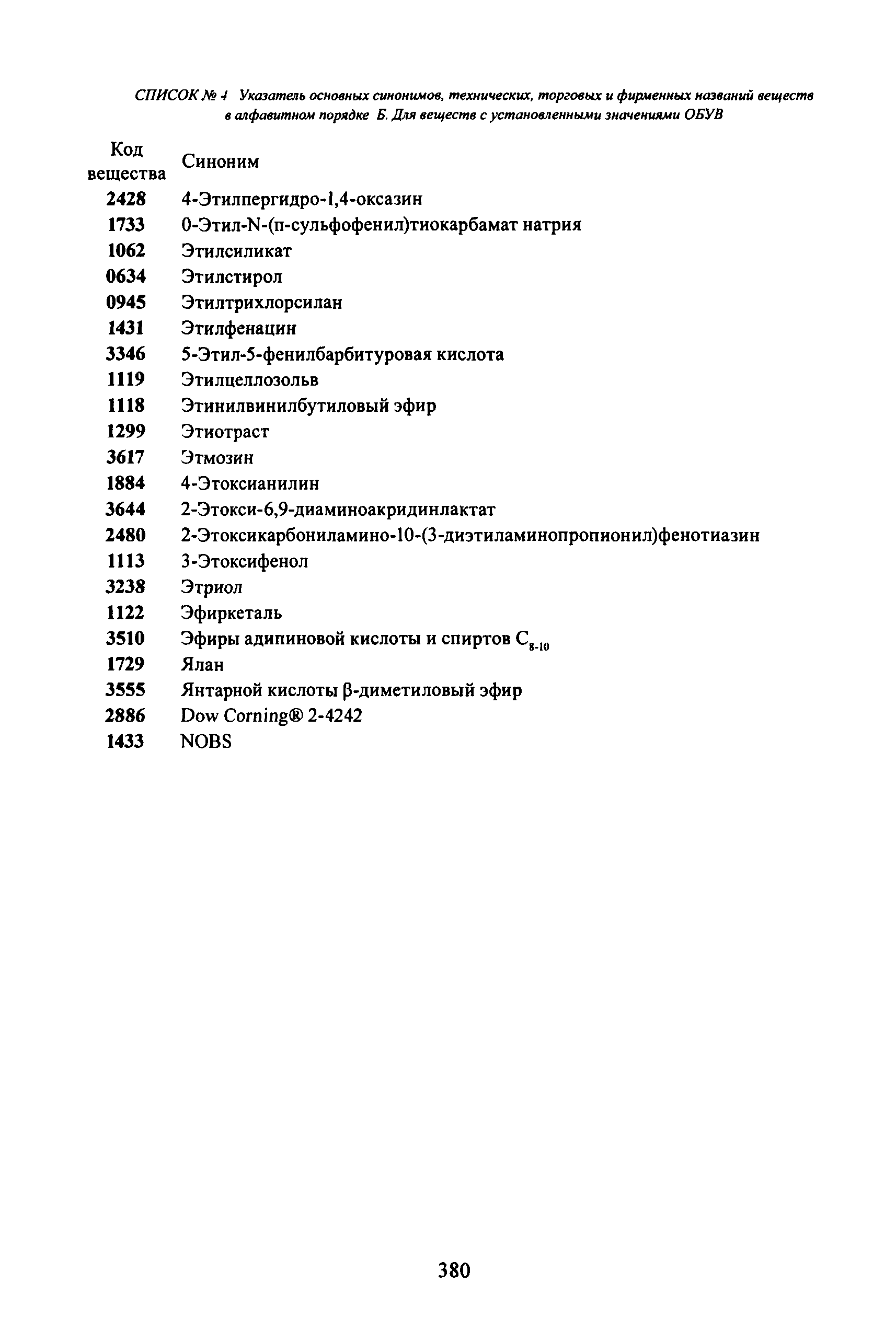 | Оглавление: | Введение Список № 1 Перечень загрязняющих веществ в алфавитном порядке Список № 2 Перечень загрязняющих веществ в порядке возрастания кодов Список № 3 Перечень ЛОС в порядке возрастания кодов Список № 4 Указатель основных синонимов, технических, торговых и фирменных названий веществ в алфавитном порядке А. Для веществ с установленными значениями ПДК Б. Для веществ с установленными значениями ОБУВ Список № 5 Указатель основных синонимов, технических, торговых и фирменных названий веществ в порядке возрастания кодов А. Для веществ с установленными значениями ПДК Б. Для веществ с установленными значениями ОБУВ |
