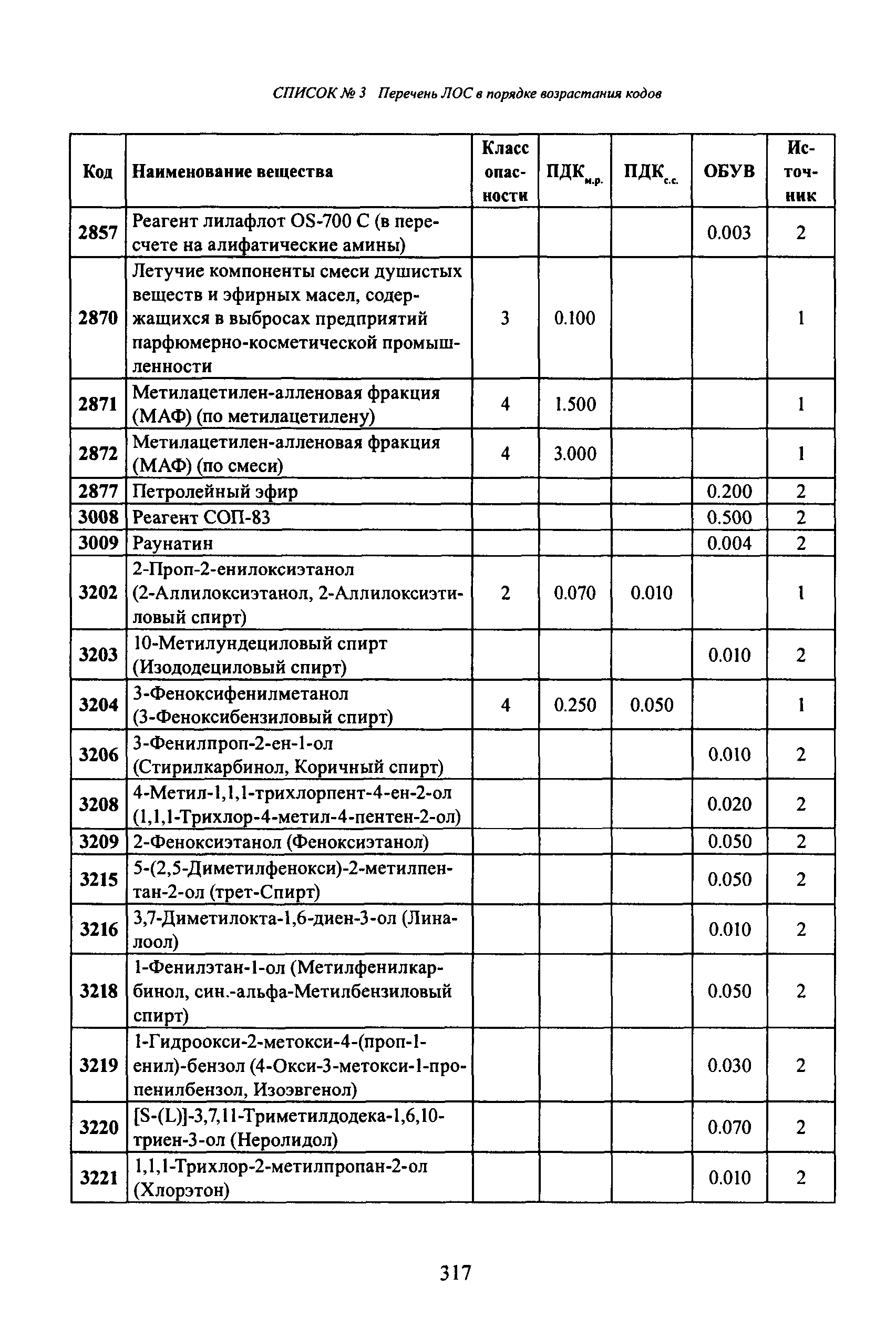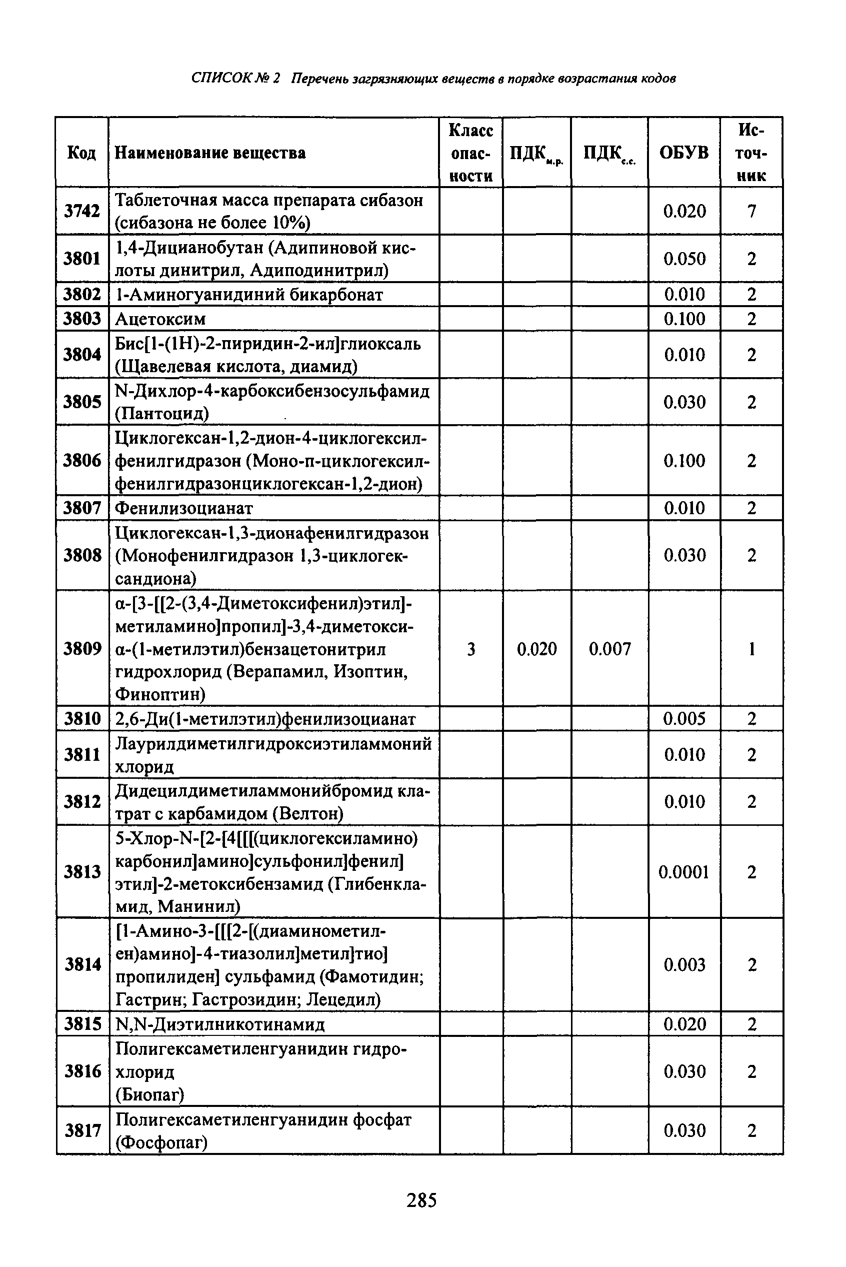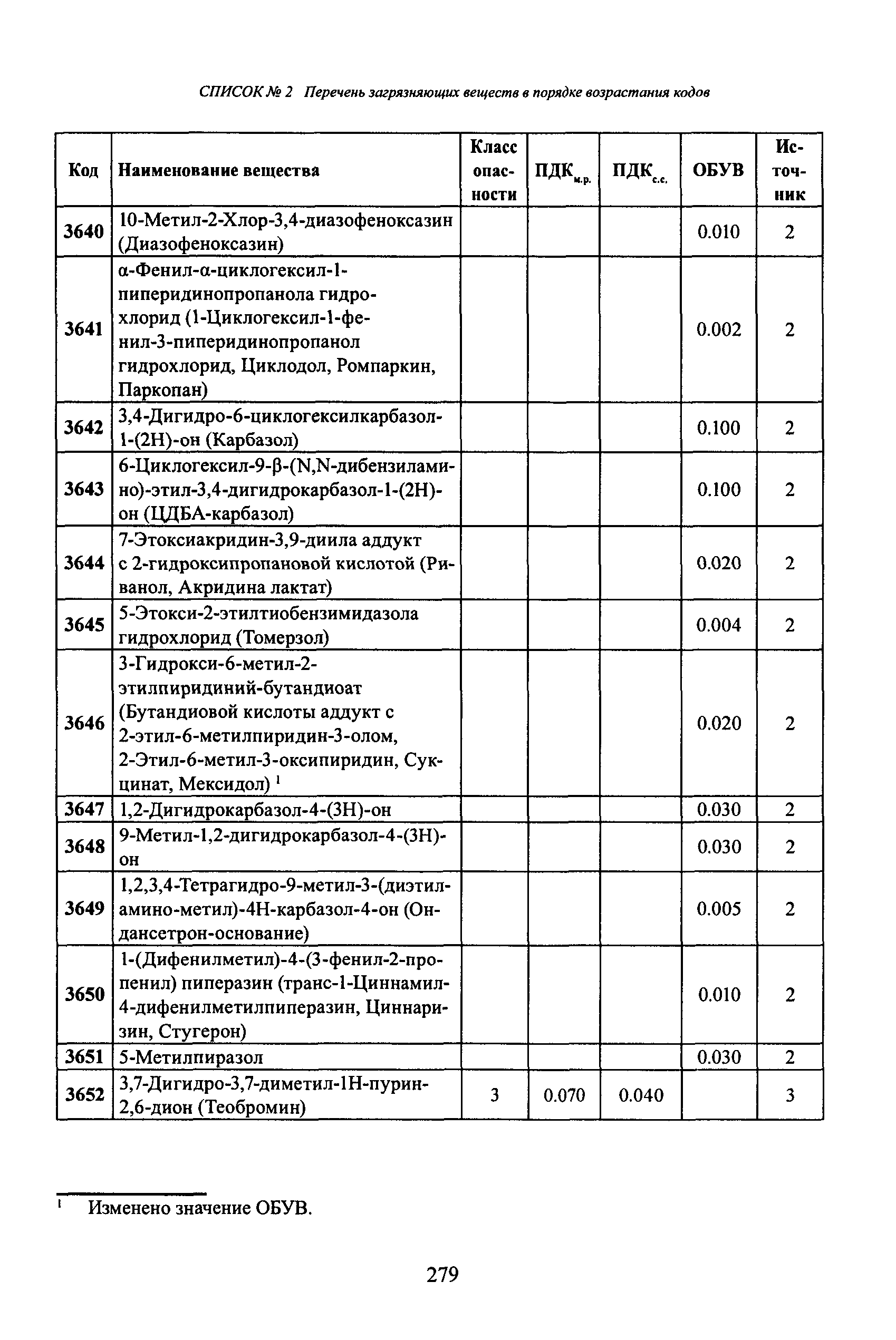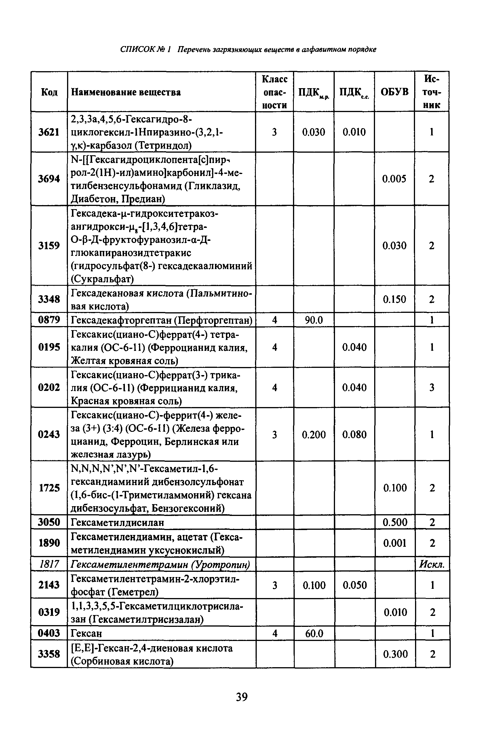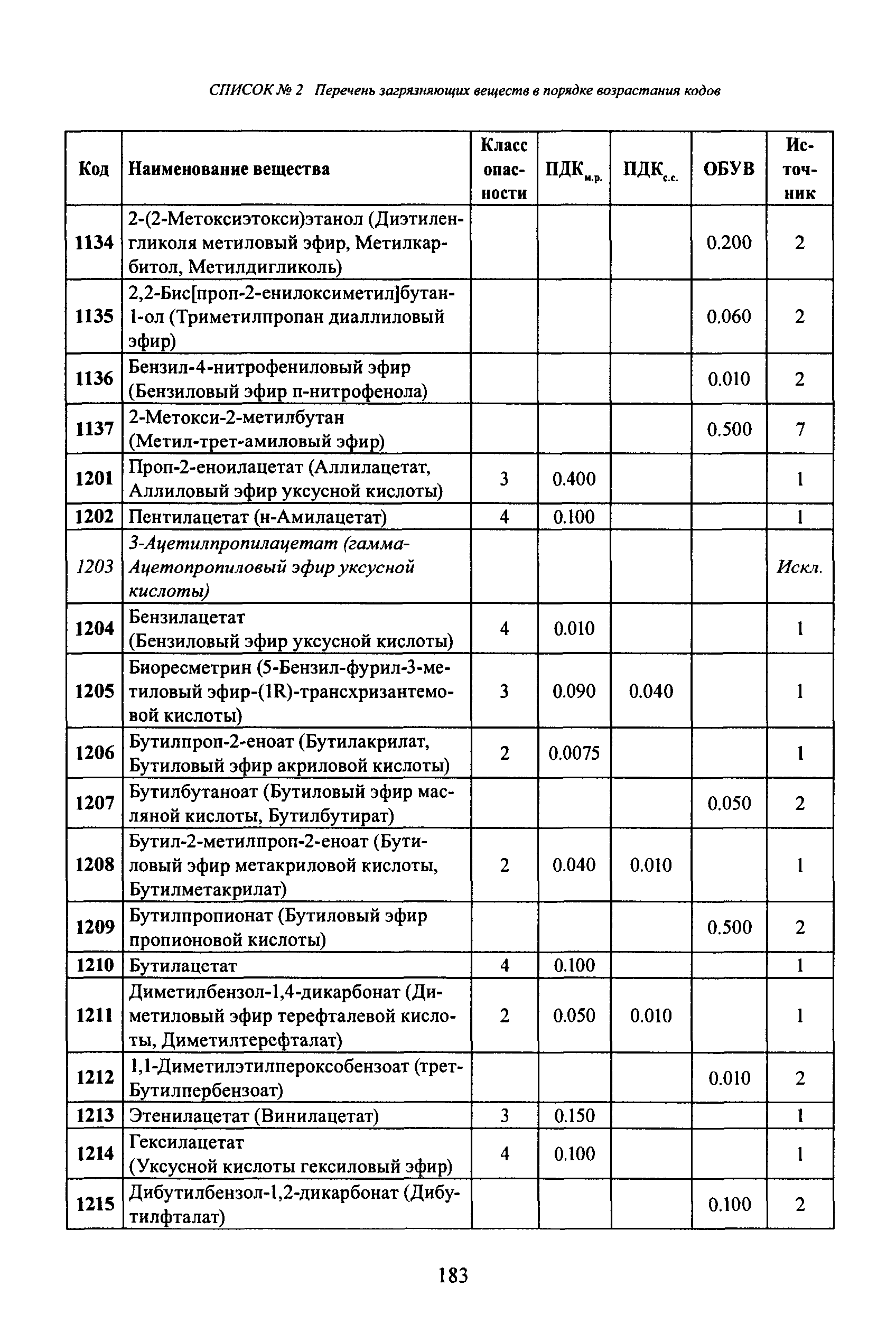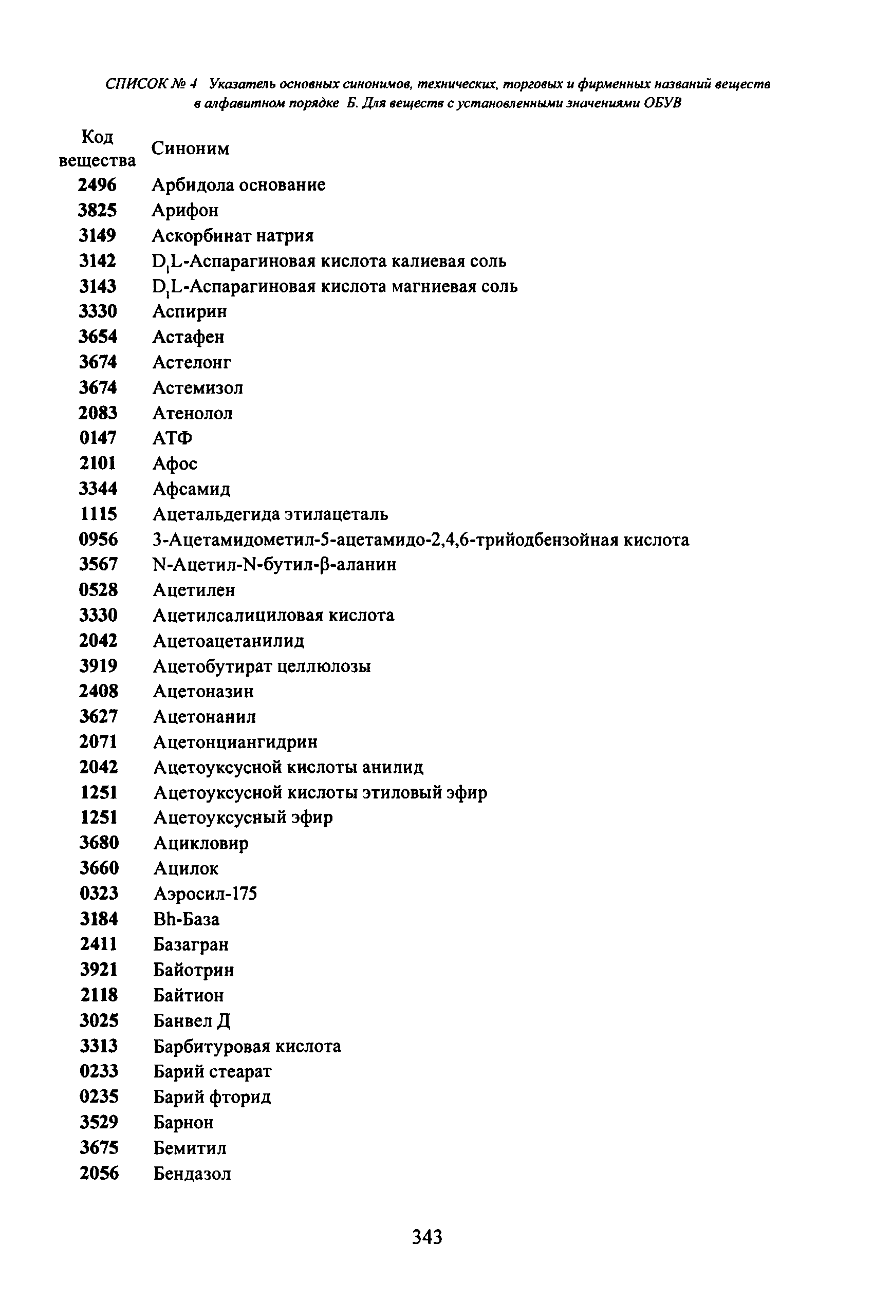 | Оглавление: | Введение Список № 1 Перечень загрязняющих веществ в алфавитном порядке Список № 2 Перечень загрязняющих веществ в порядке возрастания кодов Список № 3 Перечень ЛОС в порядке возрастания кодов Список № 4 Указатель основных синонимов, технических, торговых и фирменных названий веществ в алфавитном порядке А. Для веществ с установленными значениями ПДК Б. Для веществ с установленными значениями ОБУВ Список № 5 Указатель основных синонимов, технических, торговых и фирменных названий веществ в порядке возрастания кодов А. Для веществ с установленными значениями ПДК Б. Для веществ с установленными значениями ОБУВ |