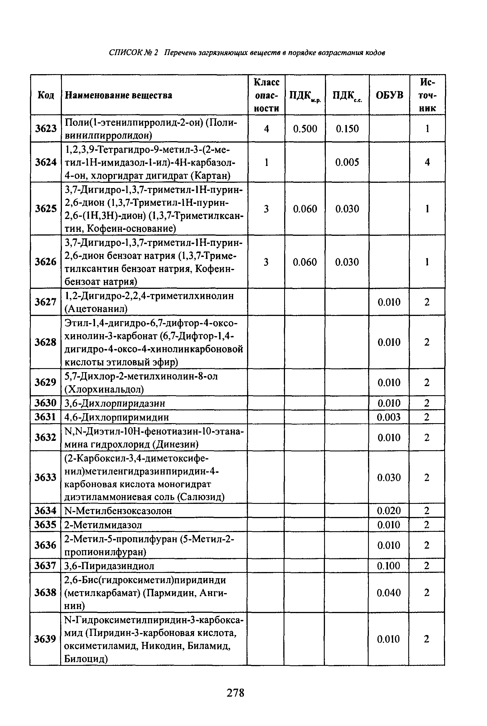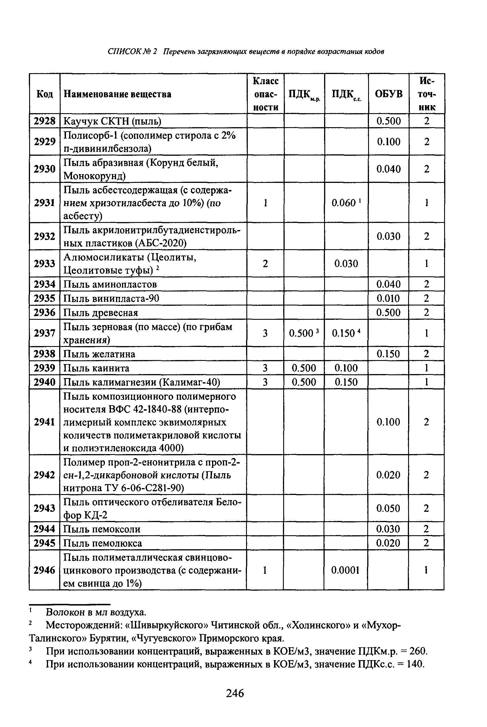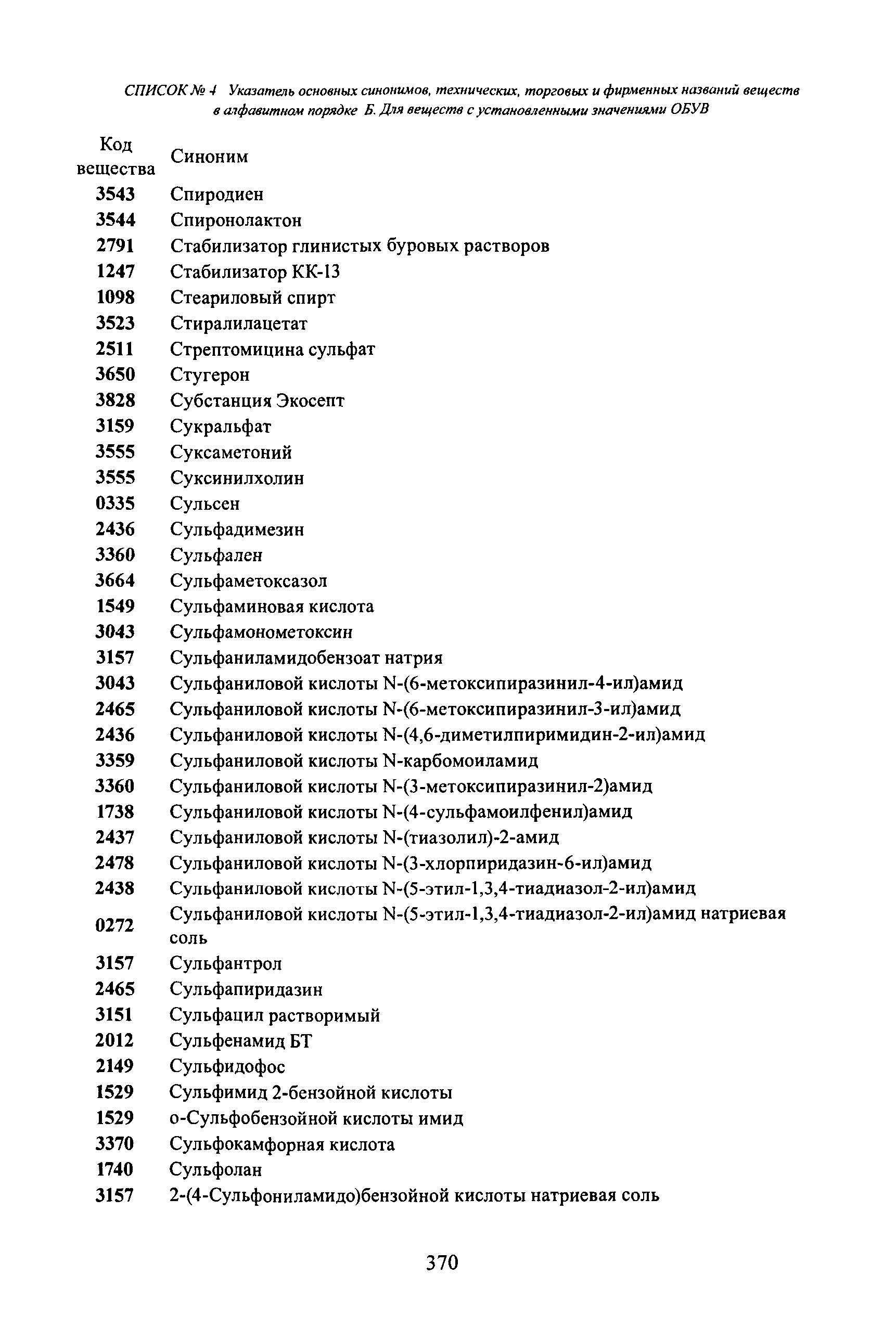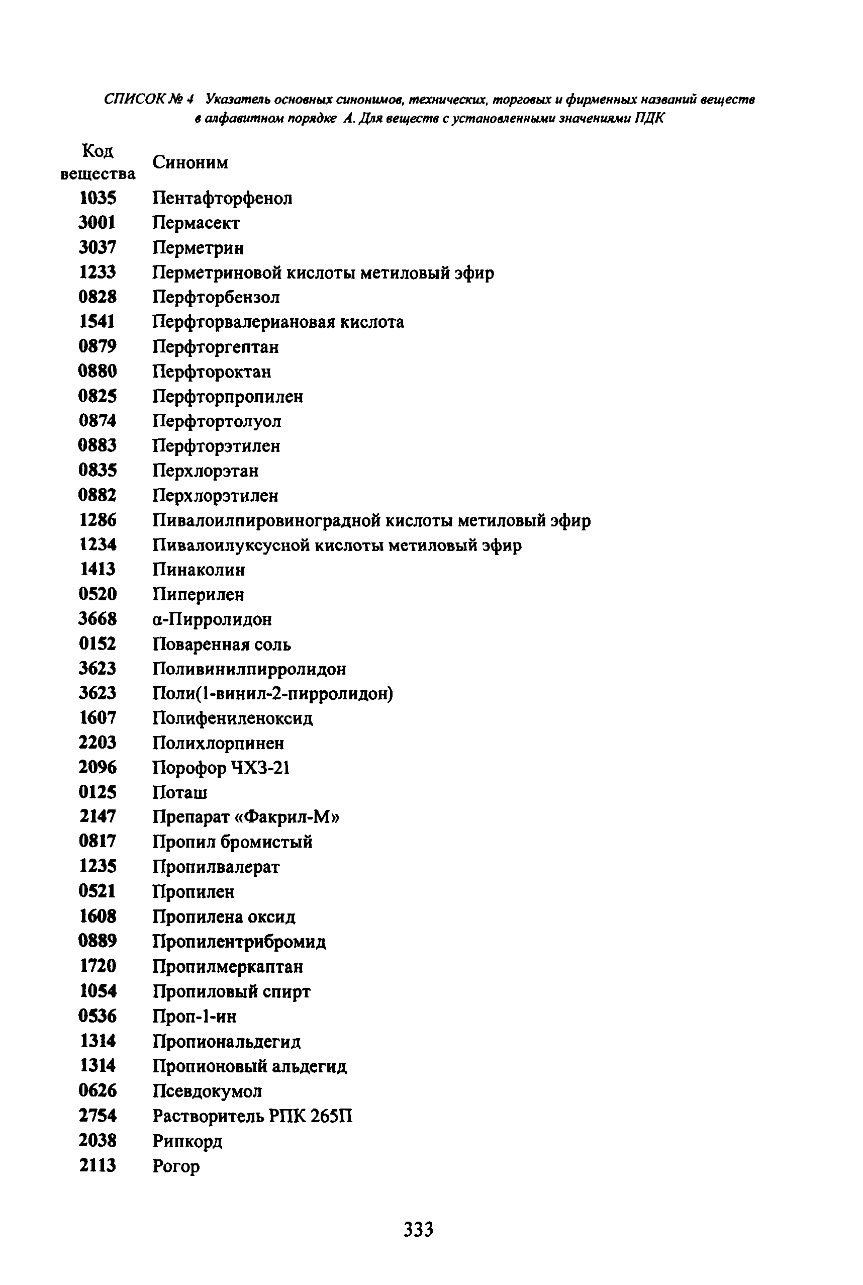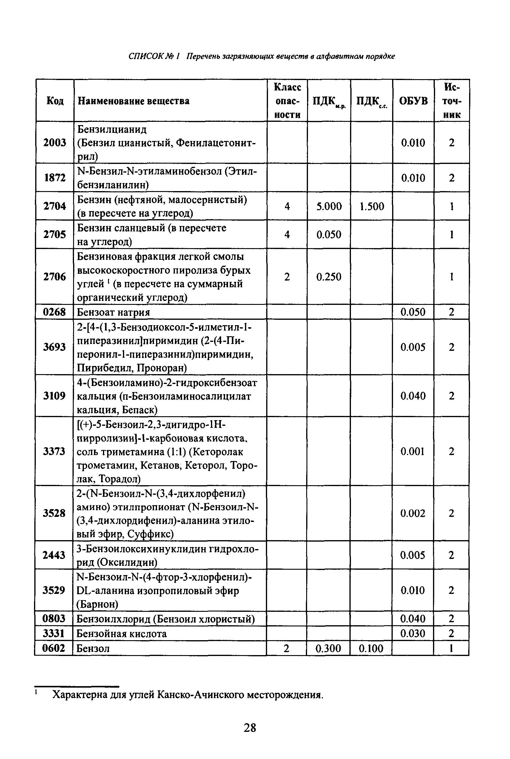 | Оглавление: | Введение Список № 1 Перечень загрязняющих веществ в алфавитном порядке Список № 2 Перечень загрязняющих веществ в порядке возрастания кодов Список № 3 Перечень ЛОС в порядке возрастания кодов Список № 4 Указатель основных синонимов, технических, торговых и фирменных названий веществ в алфавитном порядке А. Для веществ с установленными значениями ПДК Б. Для веществ с установленными значениями ОБУВ Список № 5 Указатель основных синонимов, технических, торговых и фирменных названий веществ в порядке возрастания кодов А. Для веществ с установленными значениями ПДК Б. Для веществ с установленными значениями ОБУВ |