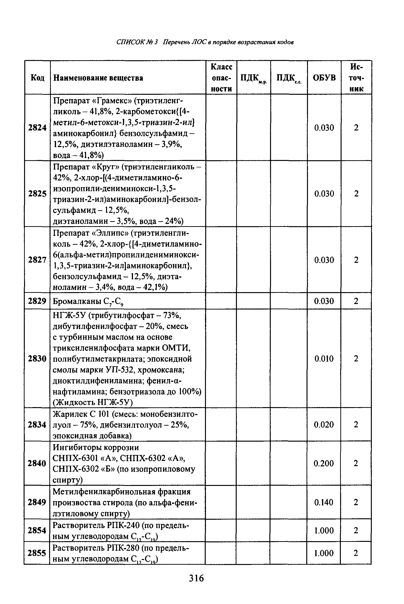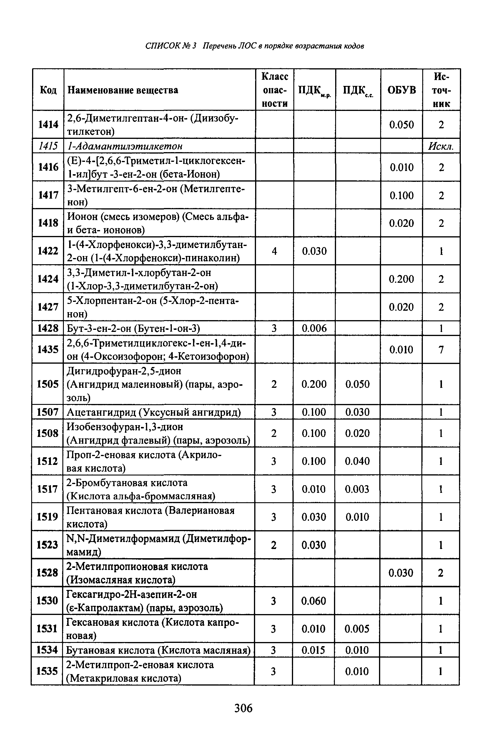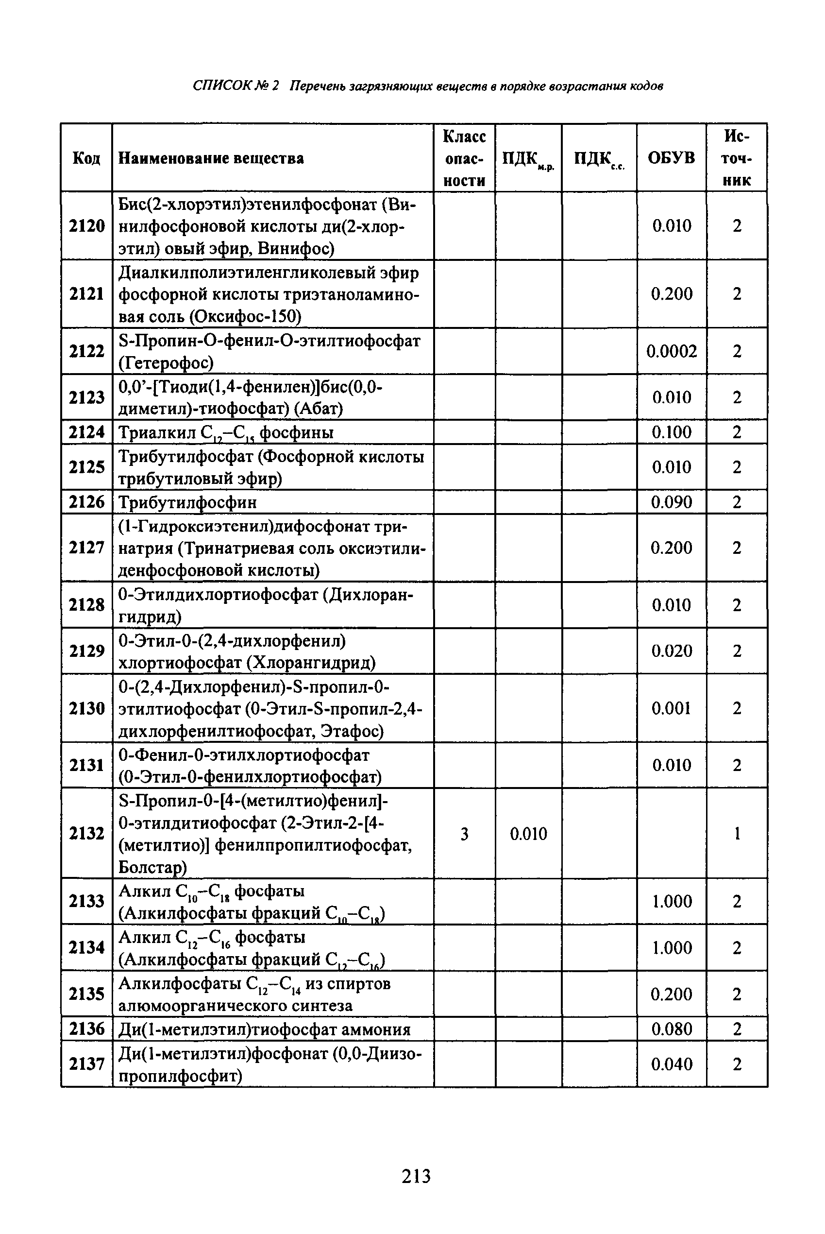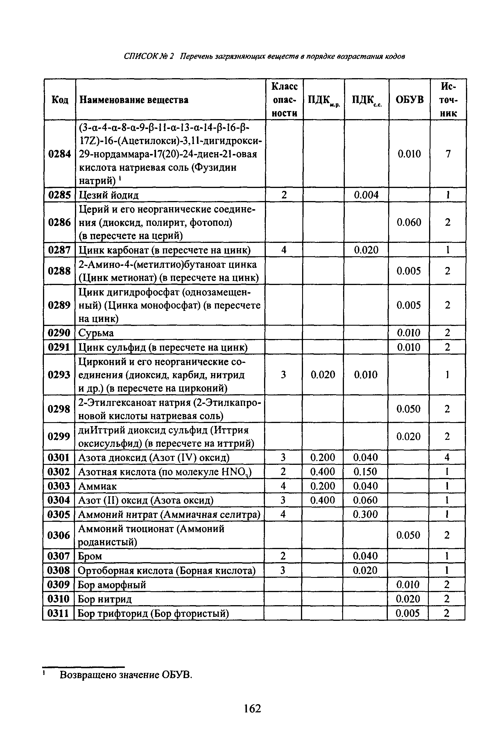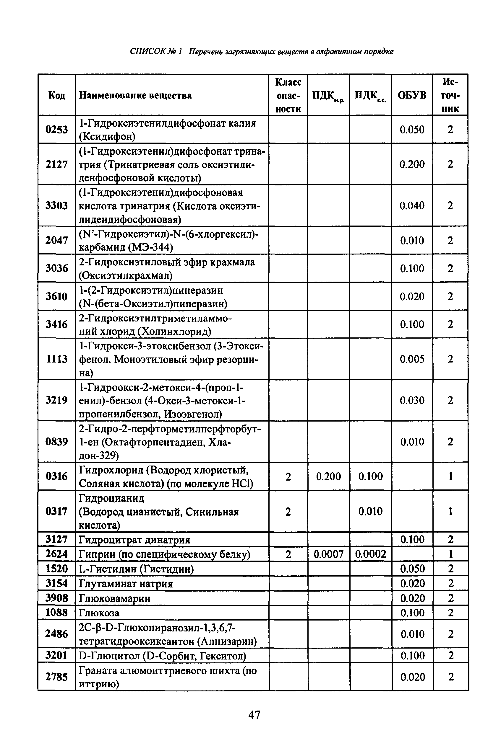 | Оглавление: | Введение Список № 1 Перечень загрязняющих веществ в алфавитном порядке Список № 2 Перечень загрязняющих веществ в порядке возрастания кодов Список № 3 Перечень ЛОС в порядке возрастания кодов Список № 4 Указатель основных синонимов, технических, торговых и фирменных названий веществ в алфавитном порядке А. Для веществ с установленными значениями ПДК Б. Для веществ с установленными значениями ОБУВ Список № 5 Указатель основных синонимов, технических, торговых и фирменных названий веществ в порядке возрастания кодов А. Для веществ с установленными значениями ПДК Б. Для веществ с установленными значениями ОБУВ |