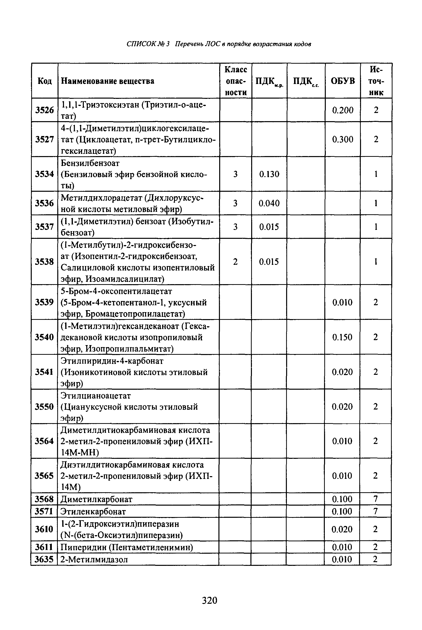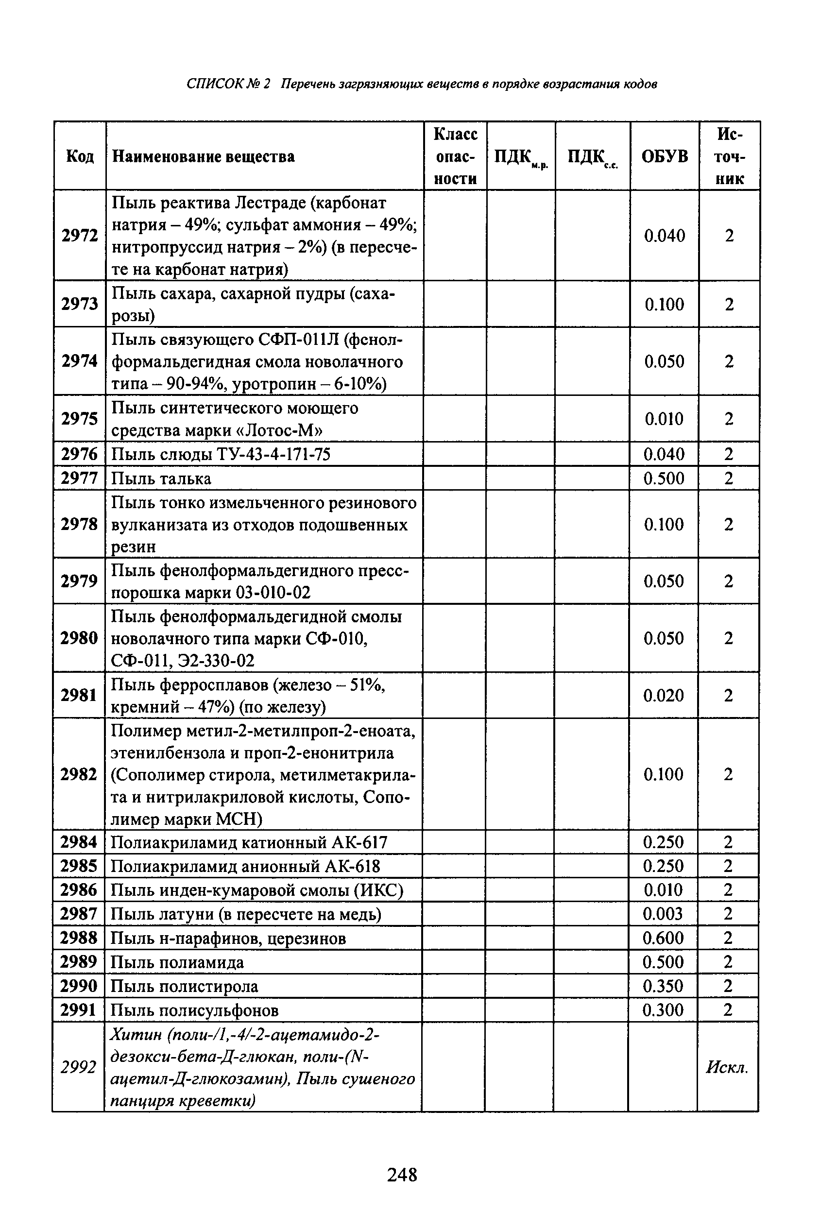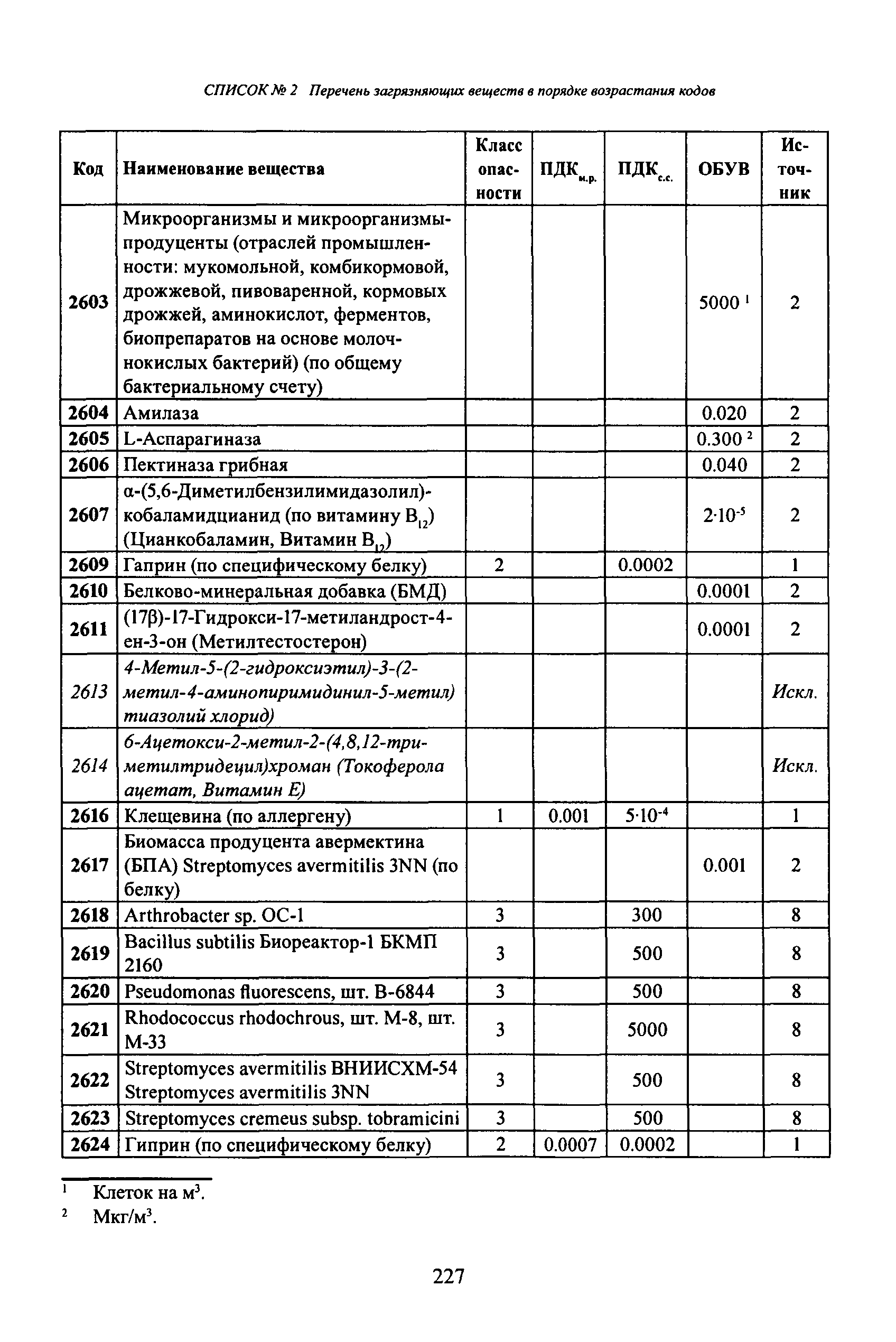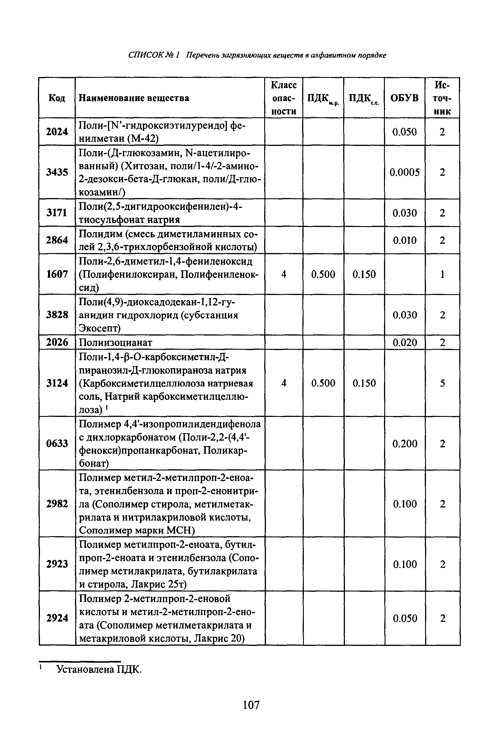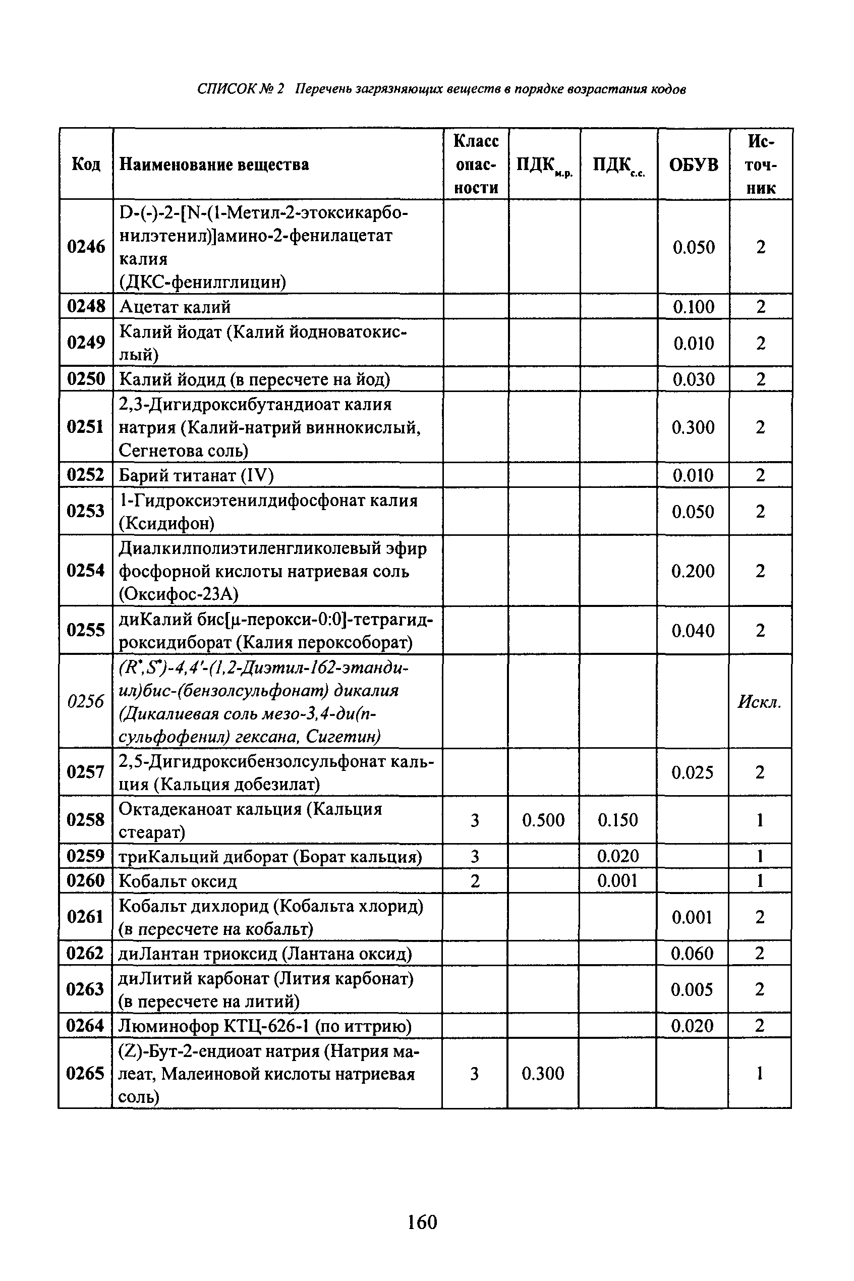 | Оглавление: | Введение Список № 1 Перечень загрязняющих веществ в алфавитном порядке Список № 2 Перечень загрязняющих веществ в порядке возрастания кодов Список № 3 Перечень ЛОС в порядке возрастания кодов Список № 4 Указатель основных синонимов, технических, торговых и фирменных названий веществ в алфавитном порядке А. Для веществ с установленными значениями ПДК Б. Для веществ с установленными значениями ОБУВ Список № 5 Указатель основных синонимов, технических, торговых и фирменных названий веществ в порядке возрастания кодов А. Для веществ с установленными значениями ПДК Б. Для веществ с установленными значениями ОБУВ |
