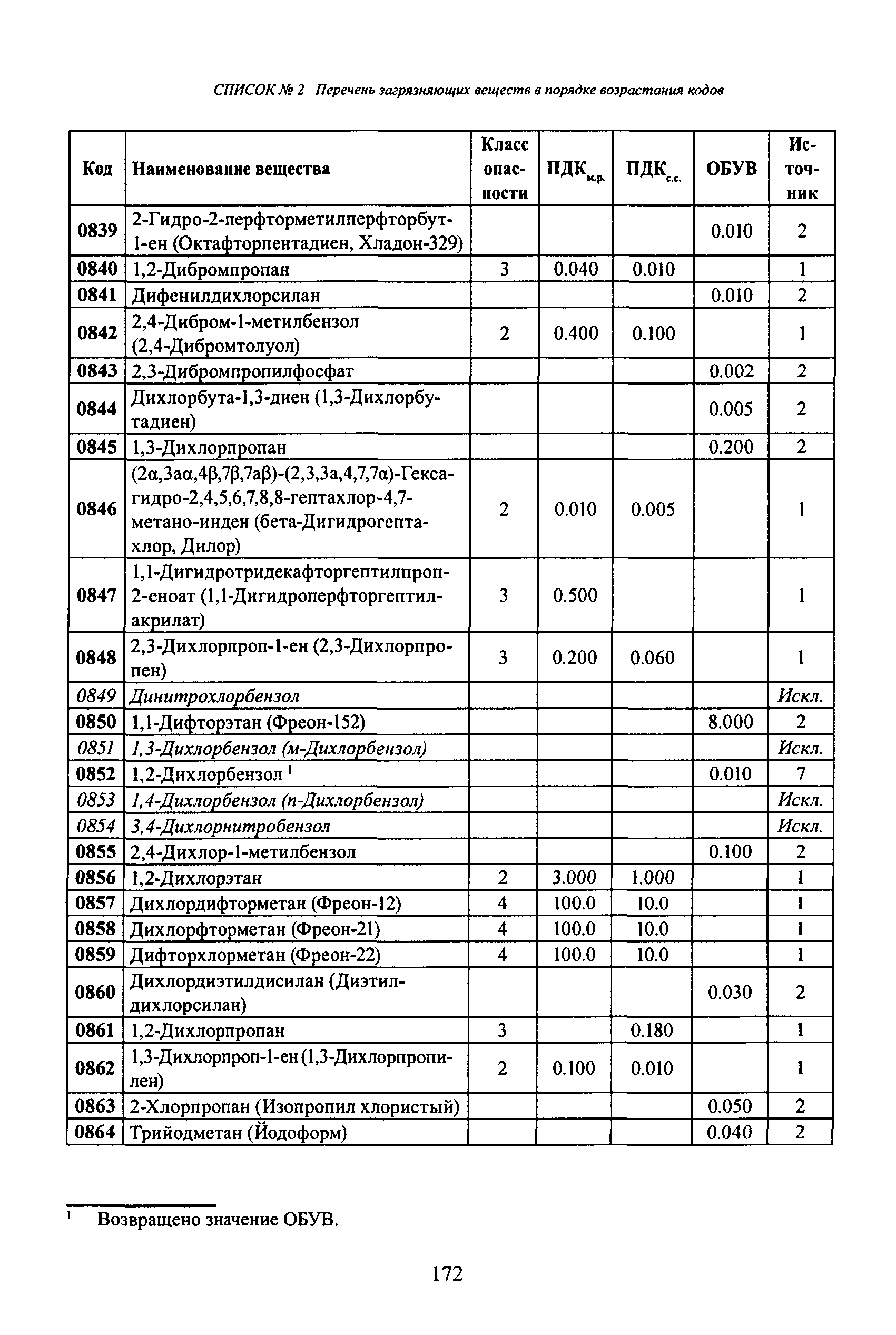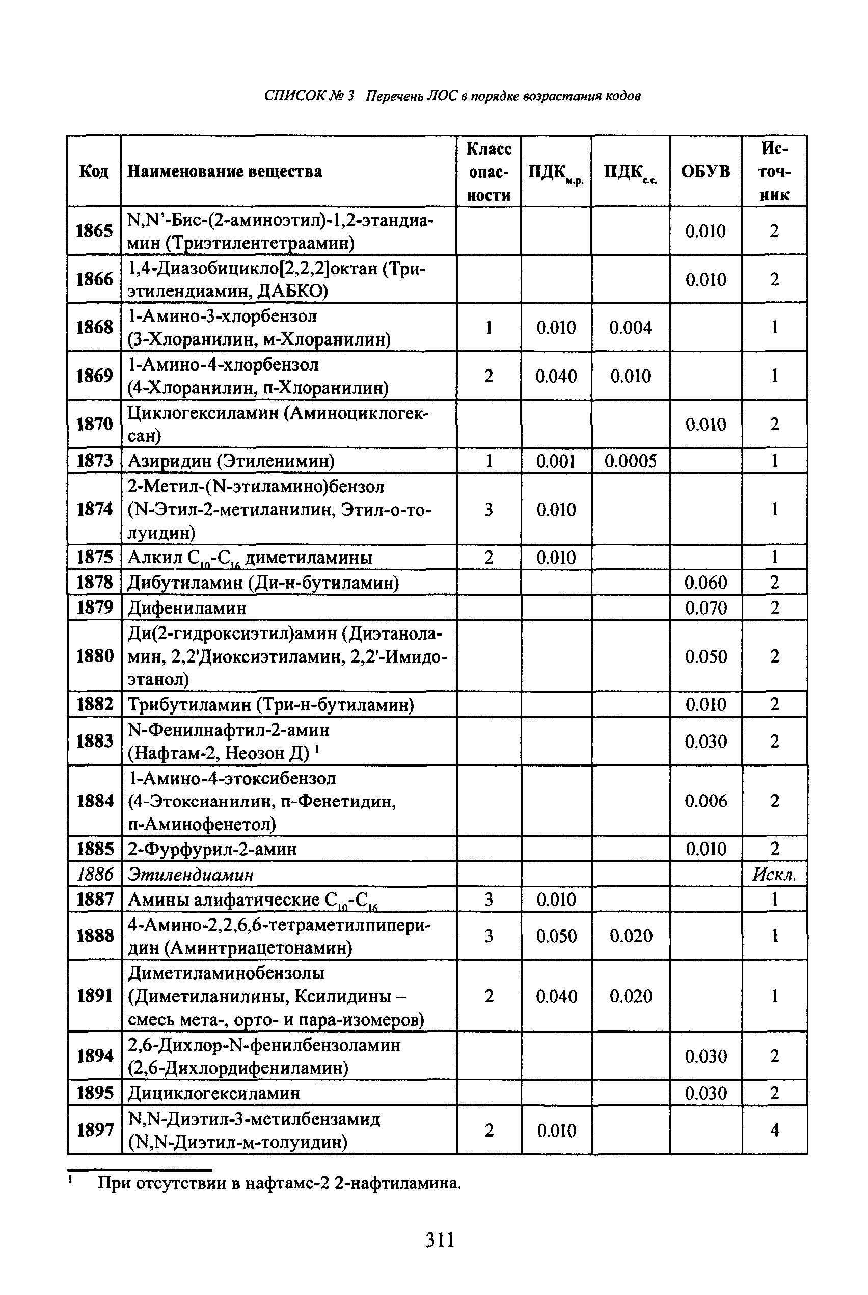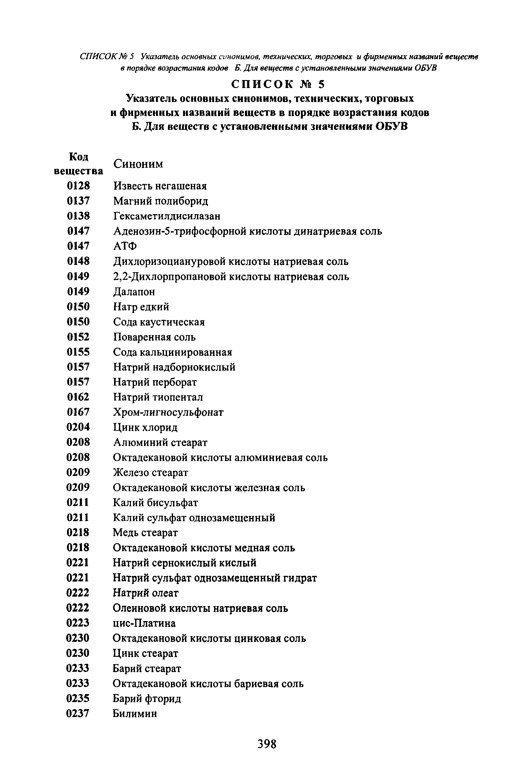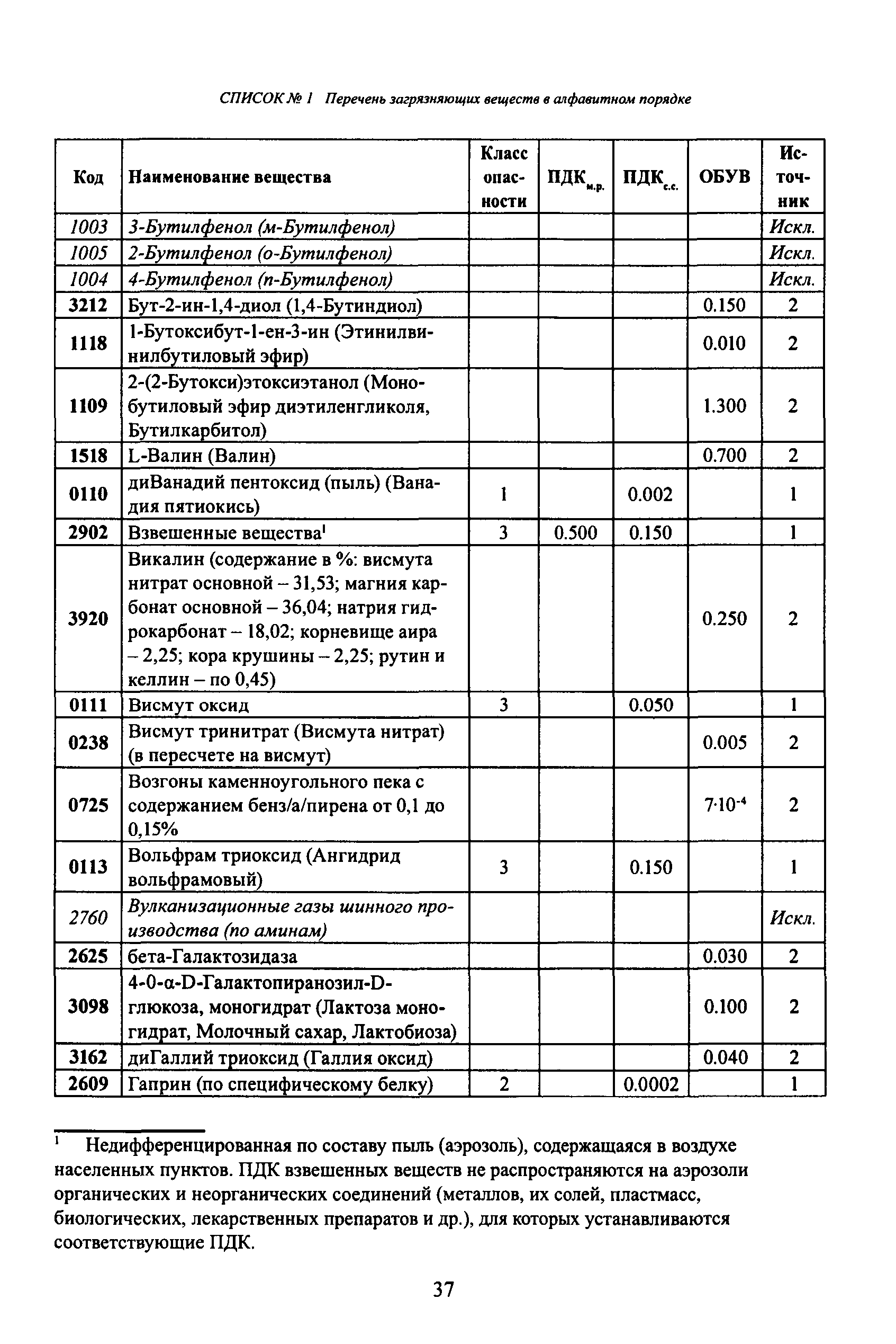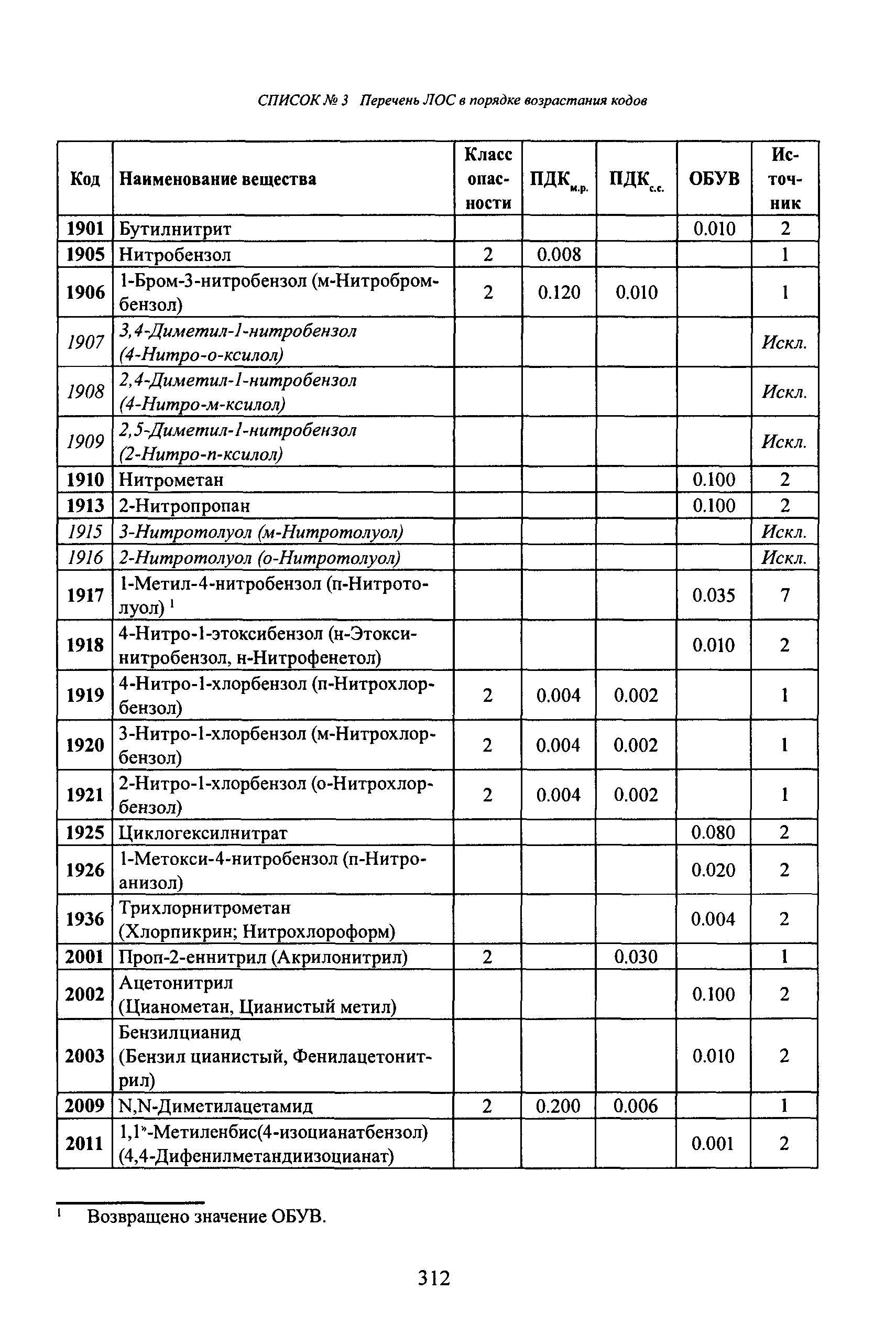 | Оглавление: | Введение Список № 1 Перечень загрязняющих веществ в алфавитном порядке Список № 2 Перечень загрязняющих веществ в порядке возрастания кодов Список № 3 Перечень ЛОС в порядке возрастания кодов Список № 4 Указатель основных синонимов, технических, торговых и фирменных названий веществ в алфавитном порядке А. Для веществ с установленными значениями ПДК Б. Для веществ с установленными значениями ОБУВ Список № 5 Указатель основных синонимов, технических, торговых и фирменных названий веществ в порядке возрастания кодов А. Для веществ с установленными значениями ПДК Б. Для веществ с установленными значениями ОБУВ |