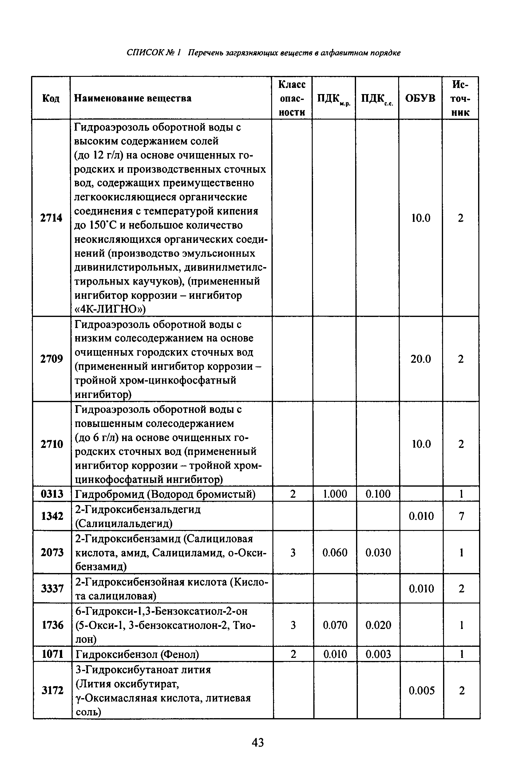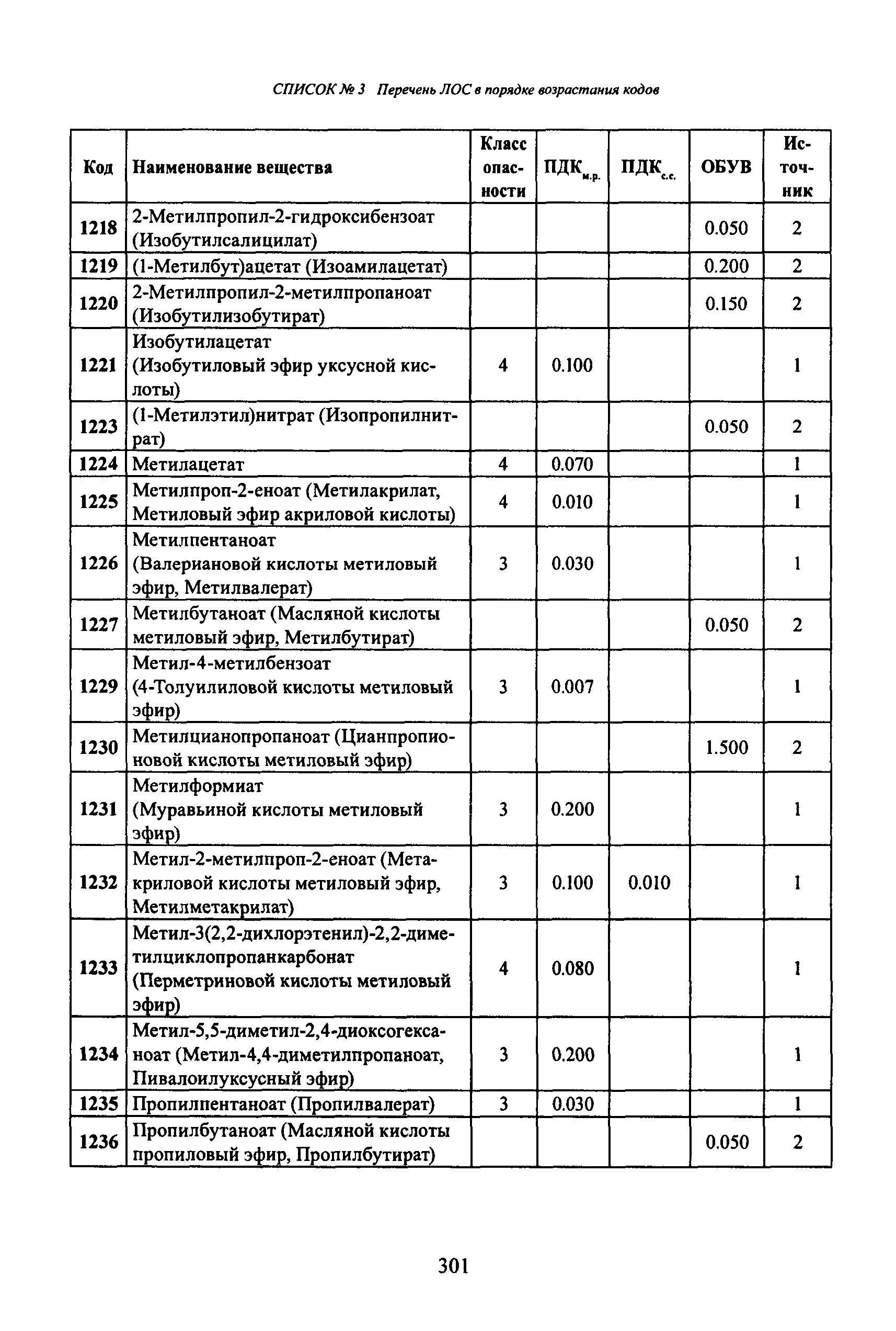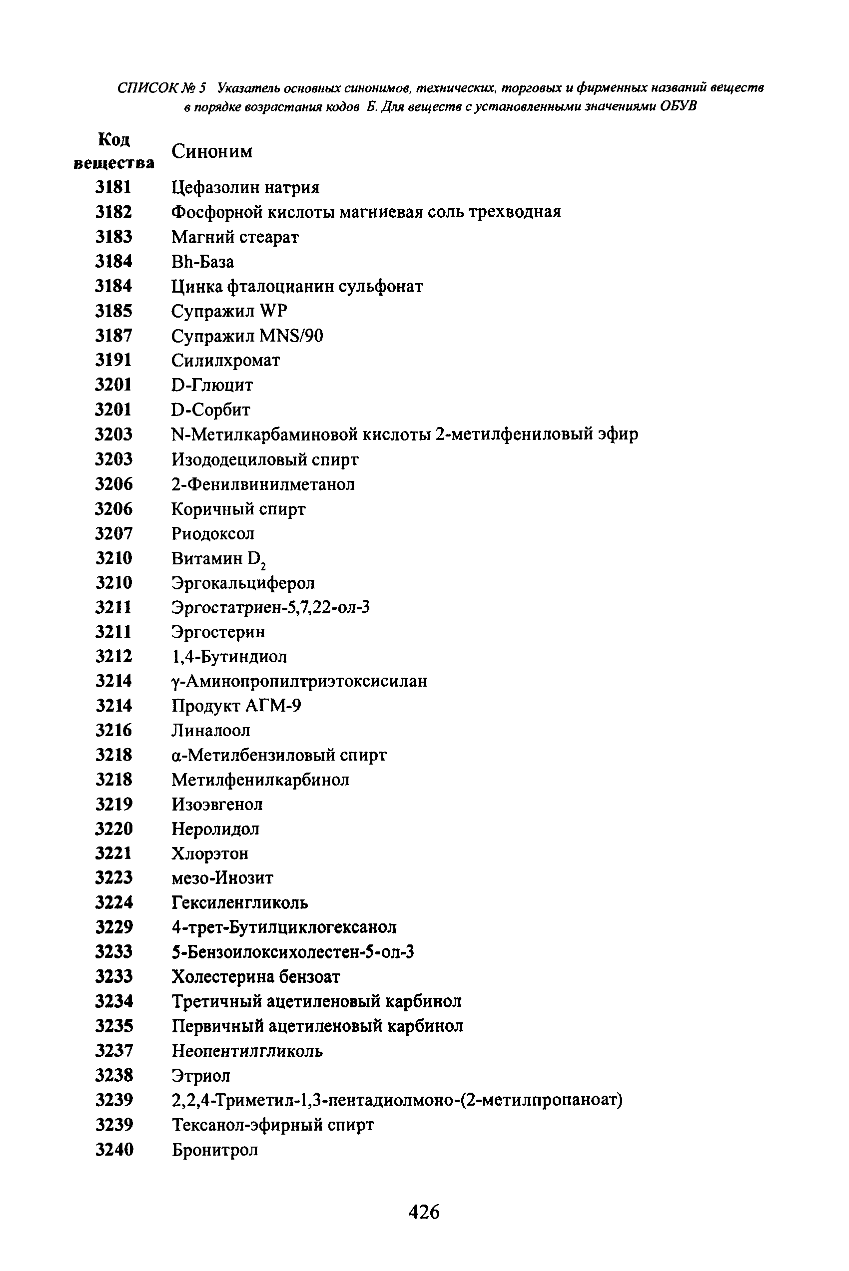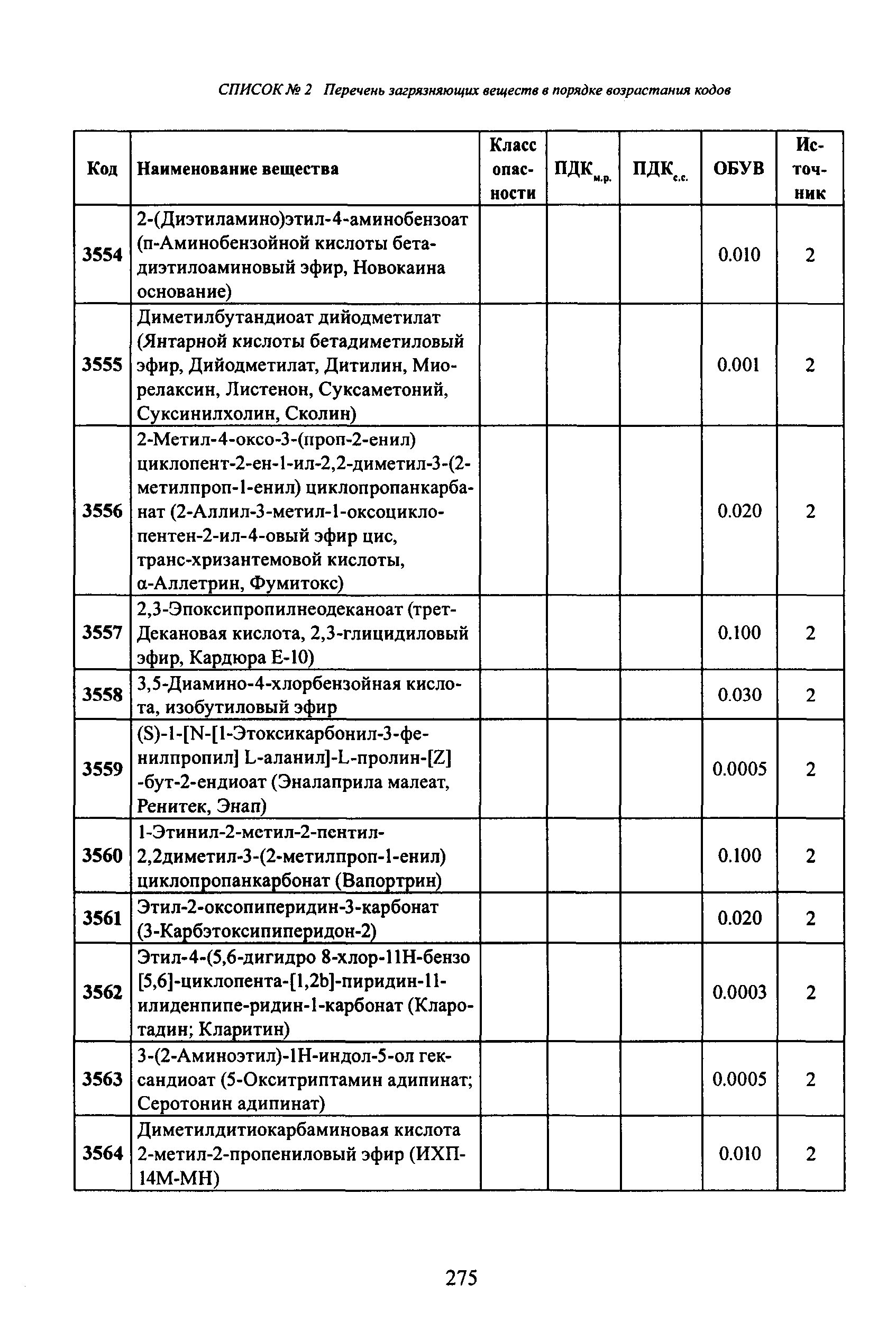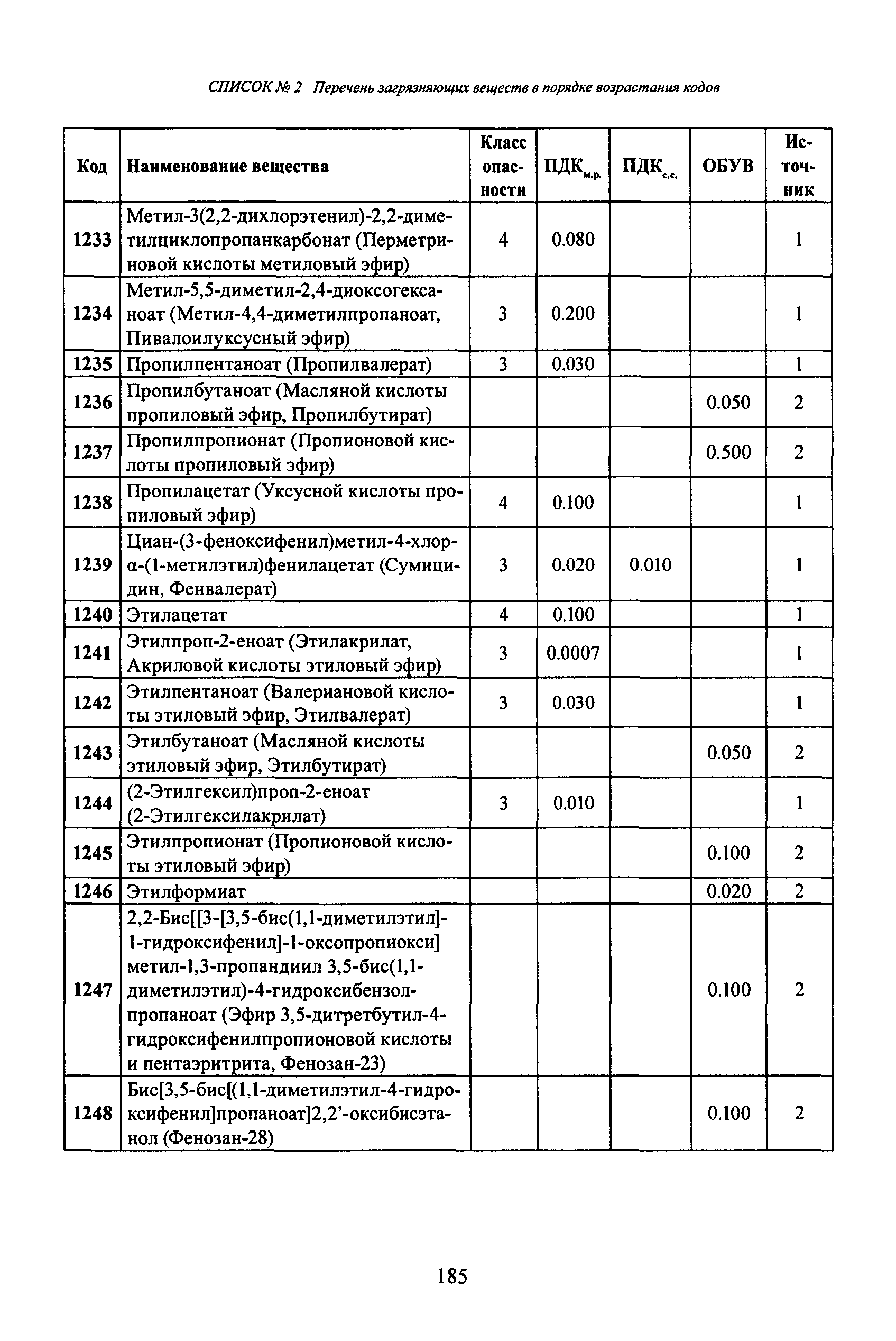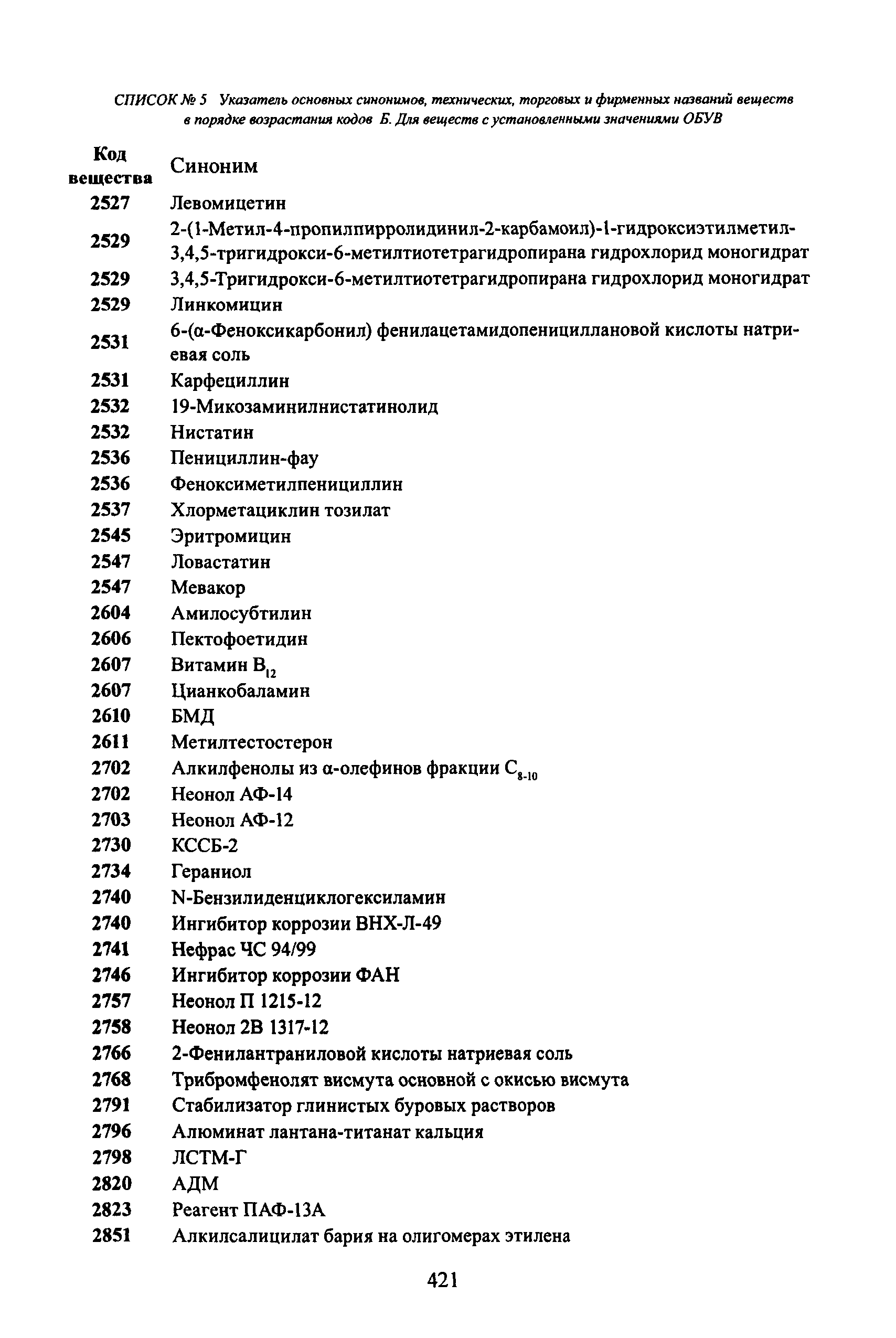 | Оглавление: | Введение Список № 1 Перечень загрязняющих веществ в алфавитном порядке Список № 2 Перечень загрязняющих веществ в порядке возрастания кодов Список № 3 Перечень ЛОС в порядке возрастания кодов Список № 4 Указатель основных синонимов, технических, торговых и фирменных названий веществ в алфавитном порядке А. Для веществ с установленными значениями ПДК Б. Для веществ с установленными значениями ОБУВ Список № 5 Указатель основных синонимов, технических, торговых и фирменных названий веществ в порядке возрастания кодов А. Для веществ с установленными значениями ПДК Б. Для веществ с установленными значениями ОБУВ |