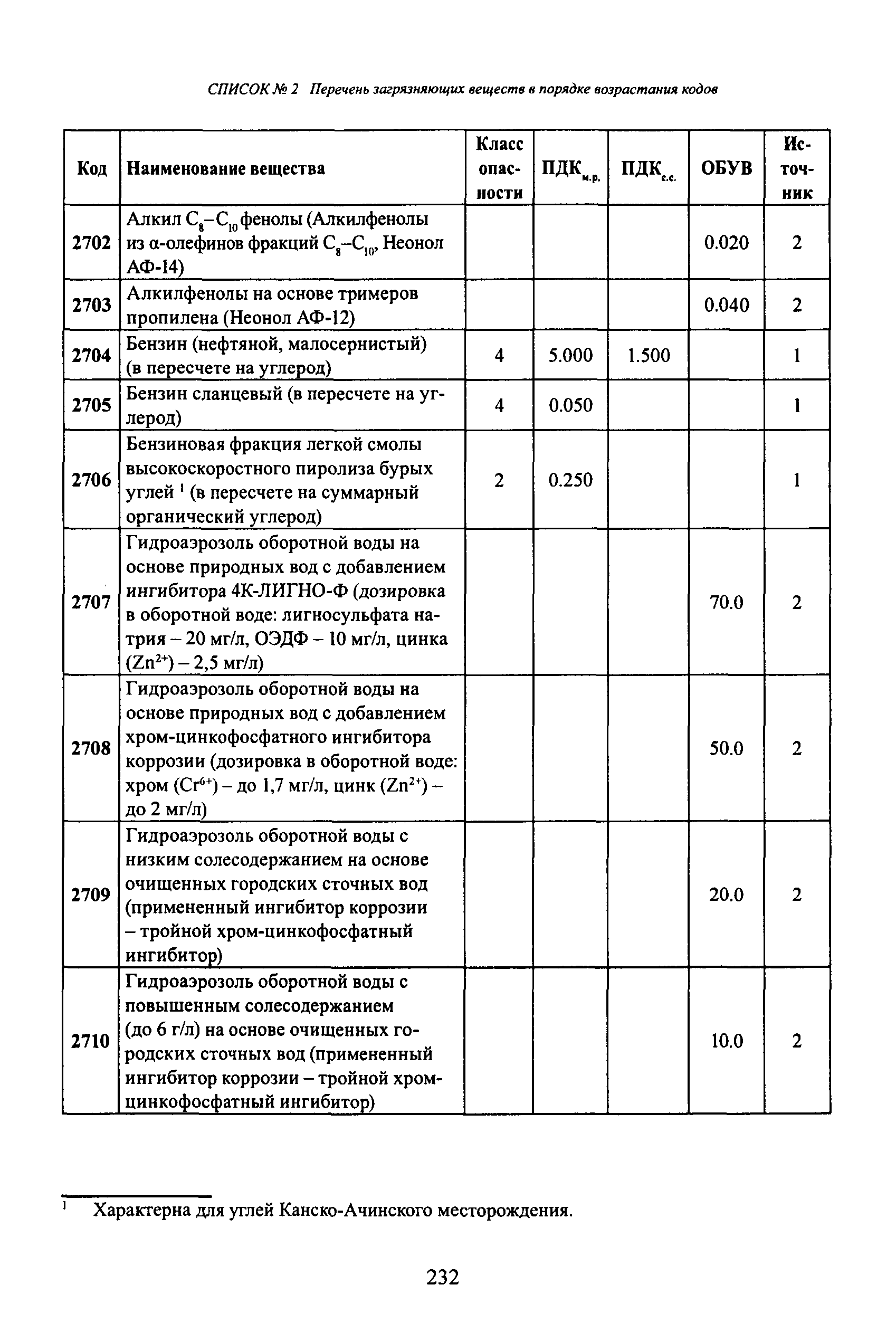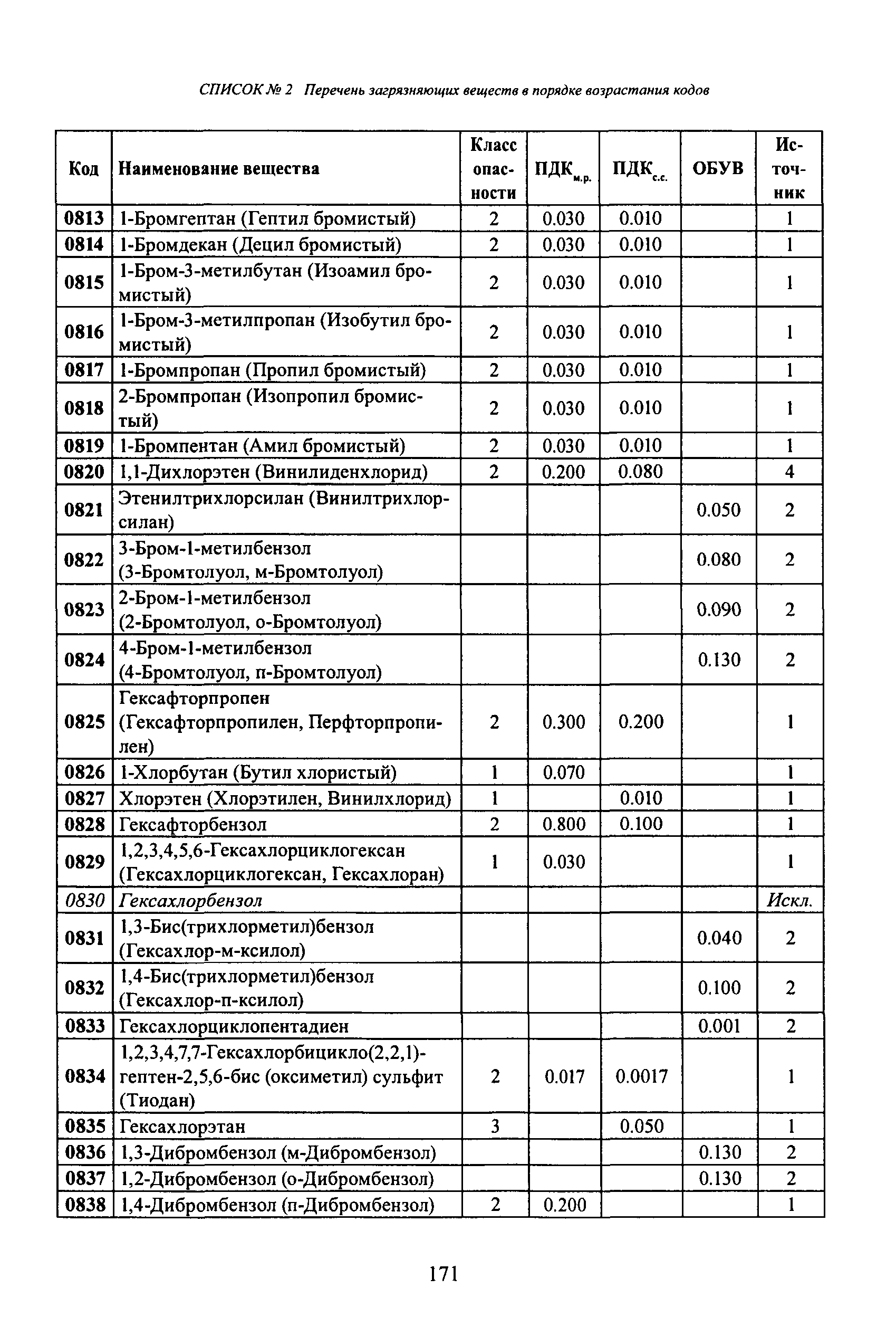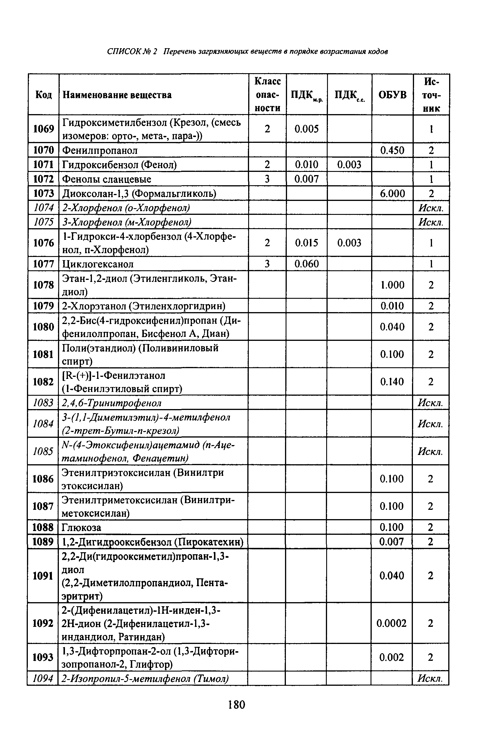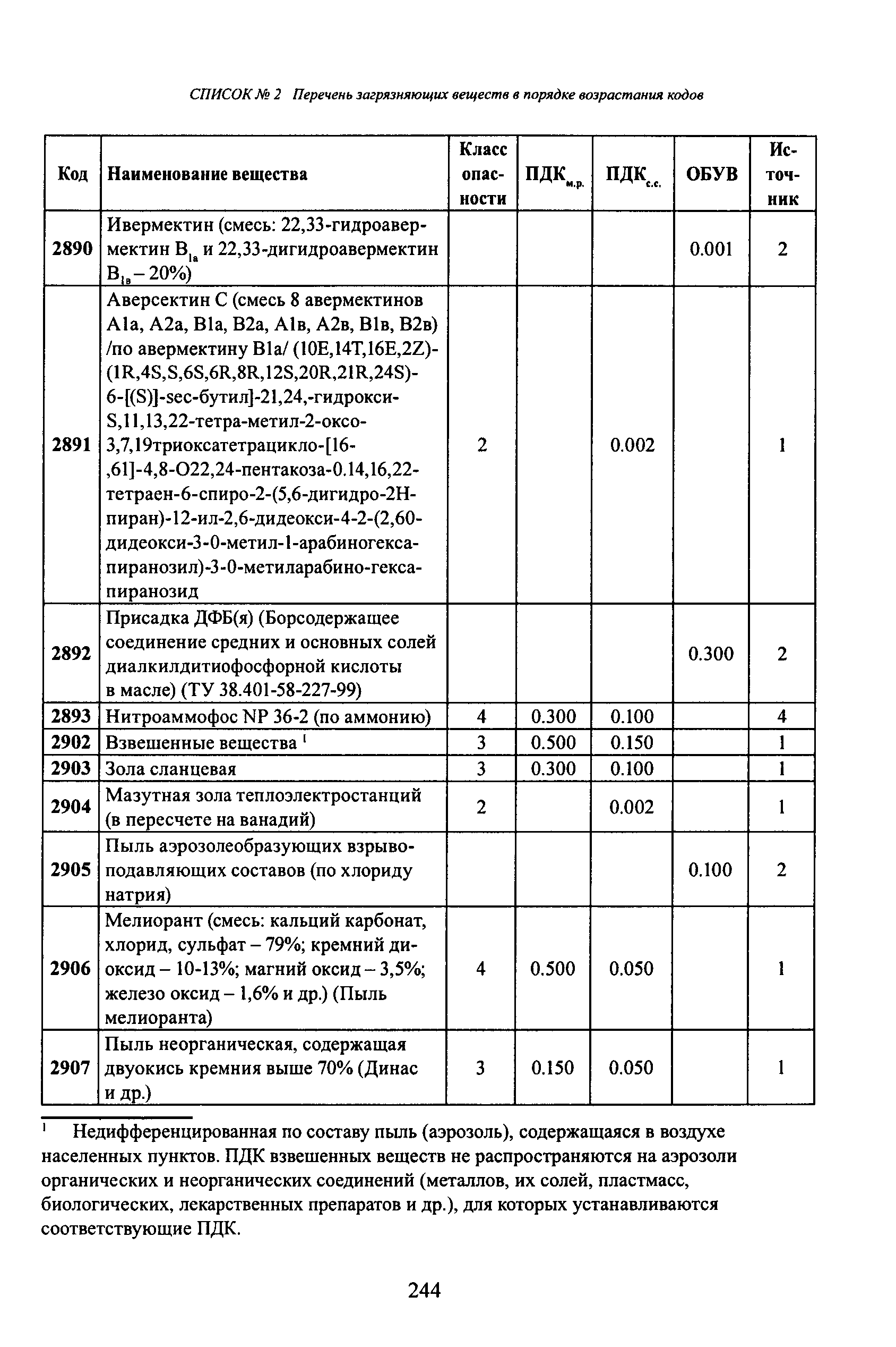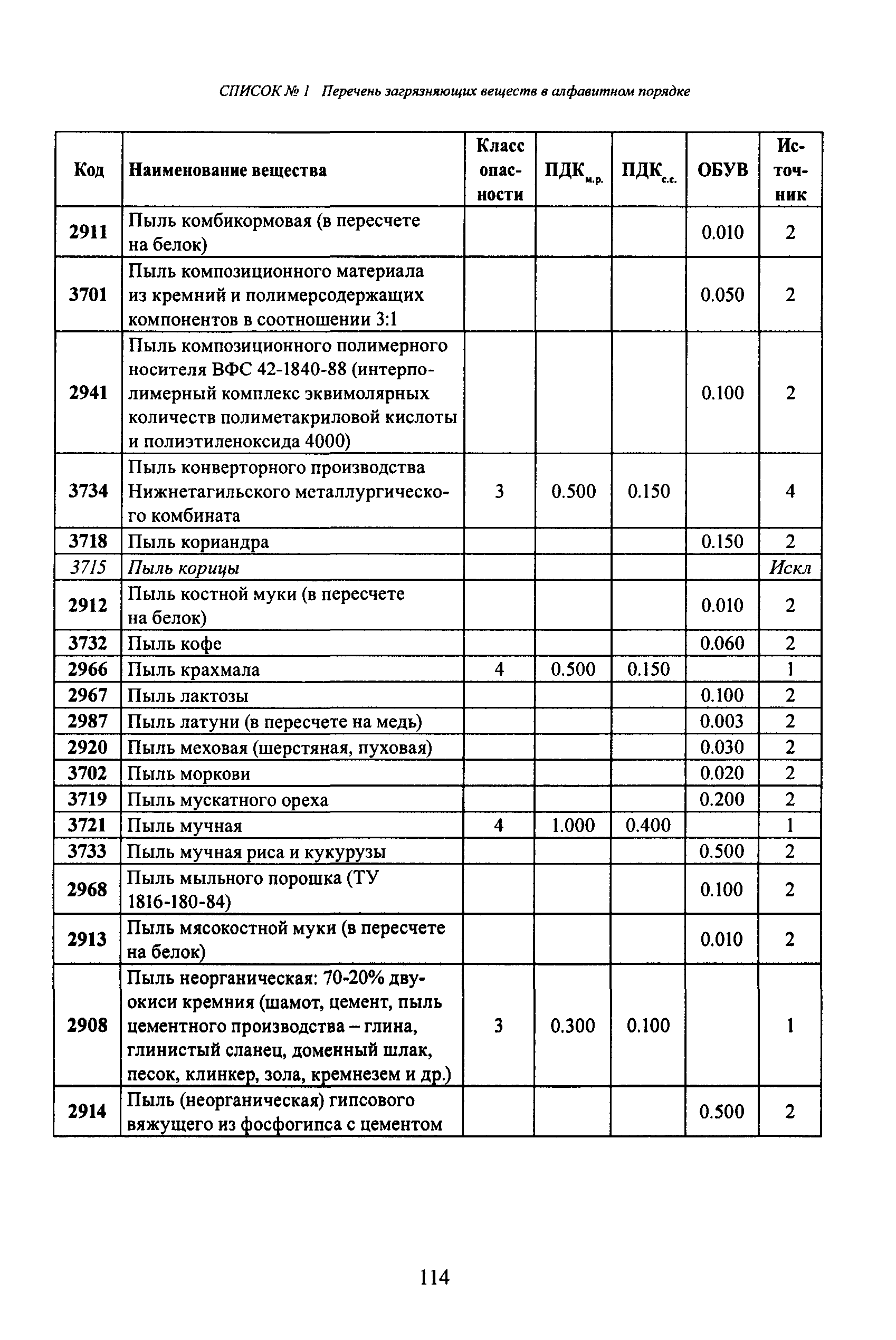 | Оглавление: | Введение Список № 1 Перечень загрязняющих веществ в алфавитном порядке Список № 2 Перечень загрязняющих веществ в порядке возрастания кодов Список № 3 Перечень ЛОС в порядке возрастания кодов Список № 4 Указатель основных синонимов, технических, торговых и фирменных названий веществ в алфавитном порядке А. Для веществ с установленными значениями ПДК Б. Для веществ с установленными значениями ОБУВ Список № 5 Указатель основных синонимов, технических, торговых и фирменных названий веществ в порядке возрастания кодов А. Для веществ с установленными значениями ПДК Б. Для веществ с установленными значениями ОБУВ |