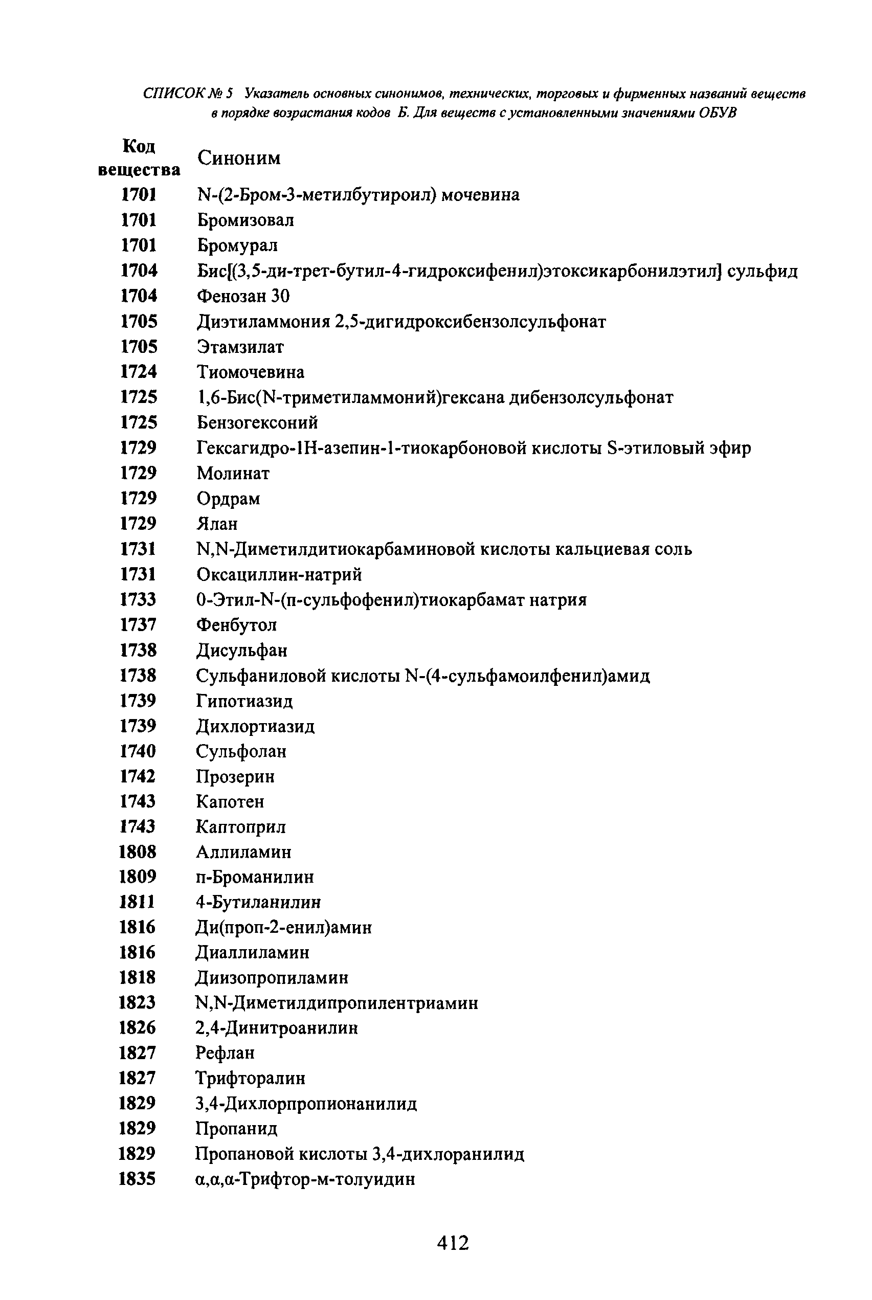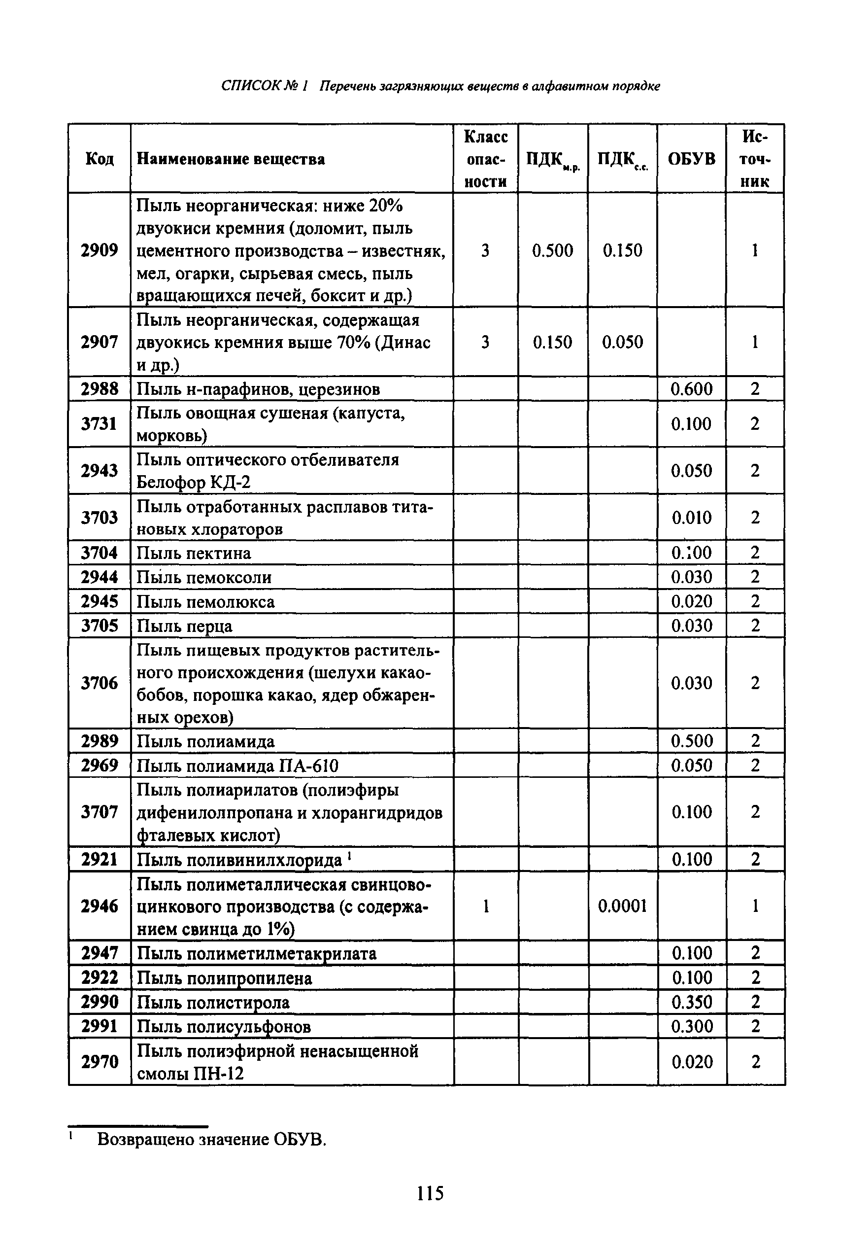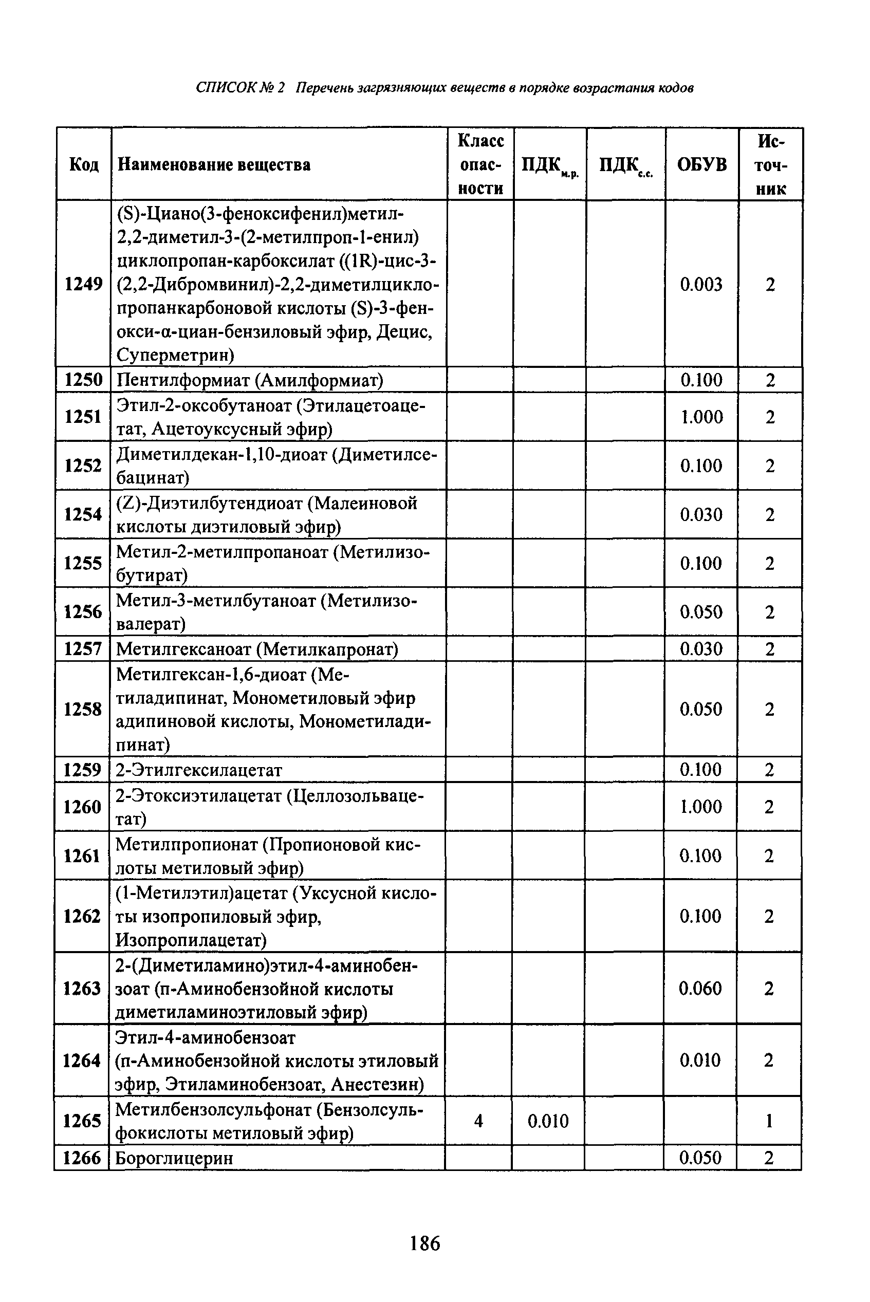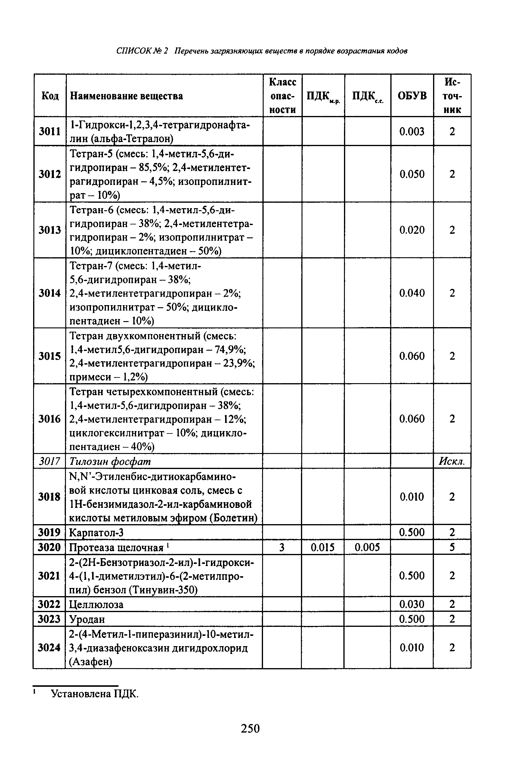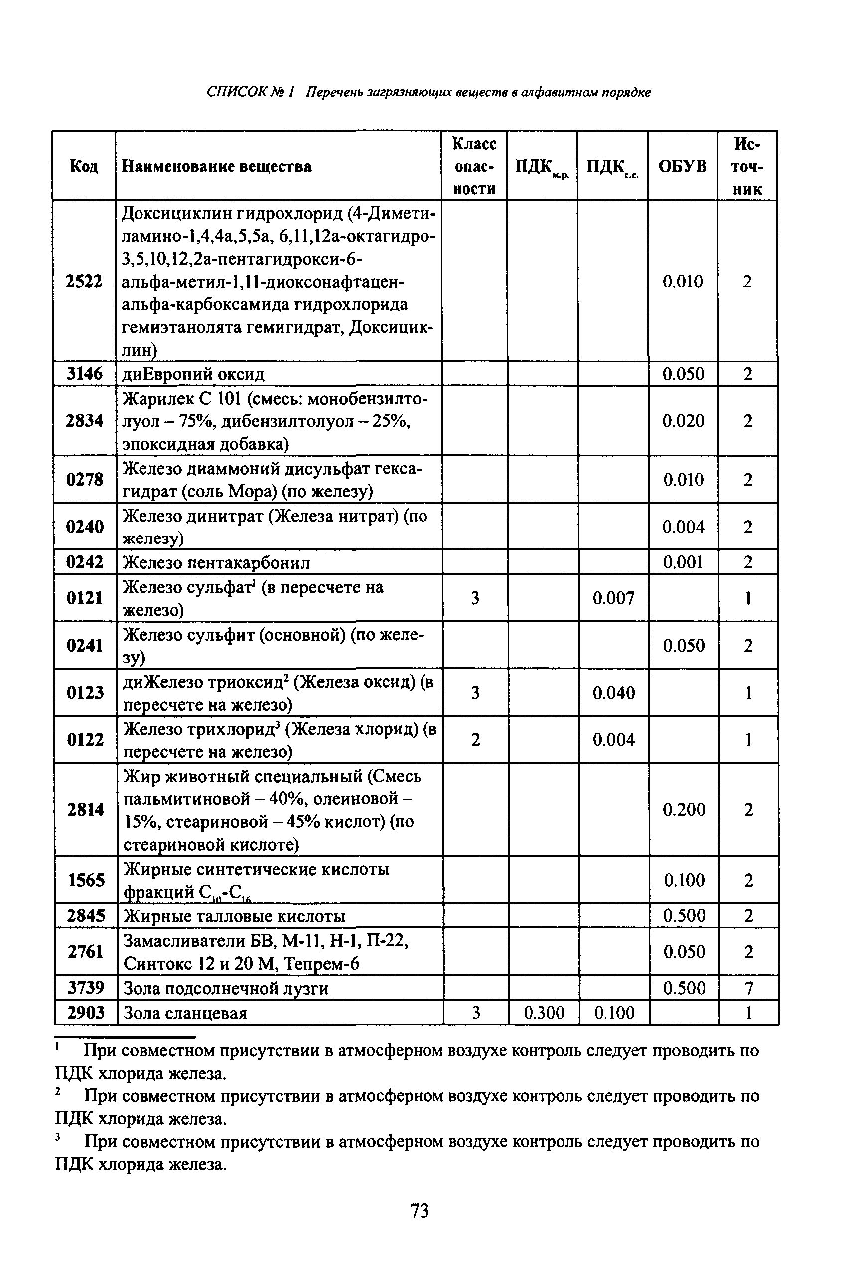 | Оглавление: | Введение Список № 1 Перечень загрязняющих веществ в алфавитном порядке Список № 2 Перечень загрязняющих веществ в порядке возрастания кодов Список № 3 Перечень ЛОС в порядке возрастания кодов Список № 4 Указатель основных синонимов, технических, торговых и фирменных названий веществ в алфавитном порядке А. Для веществ с установленными значениями ПДК Б. Для веществ с установленными значениями ОБУВ Список № 5 Указатель основных синонимов, технических, торговых и фирменных названий веществ в порядке возрастания кодов А. Для веществ с установленными значениями ПДК Б. Для веществ с установленными значениями ОБУВ |
