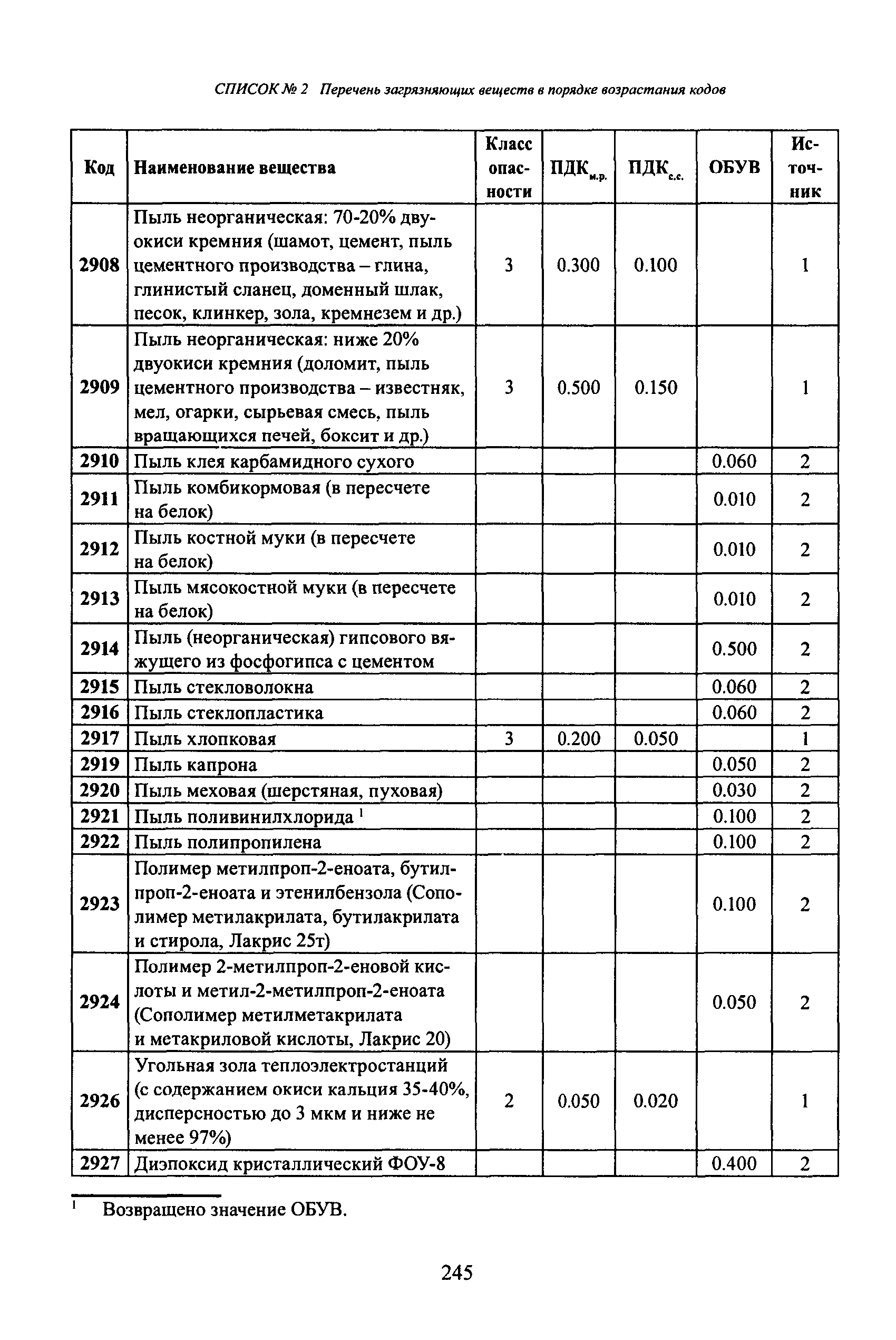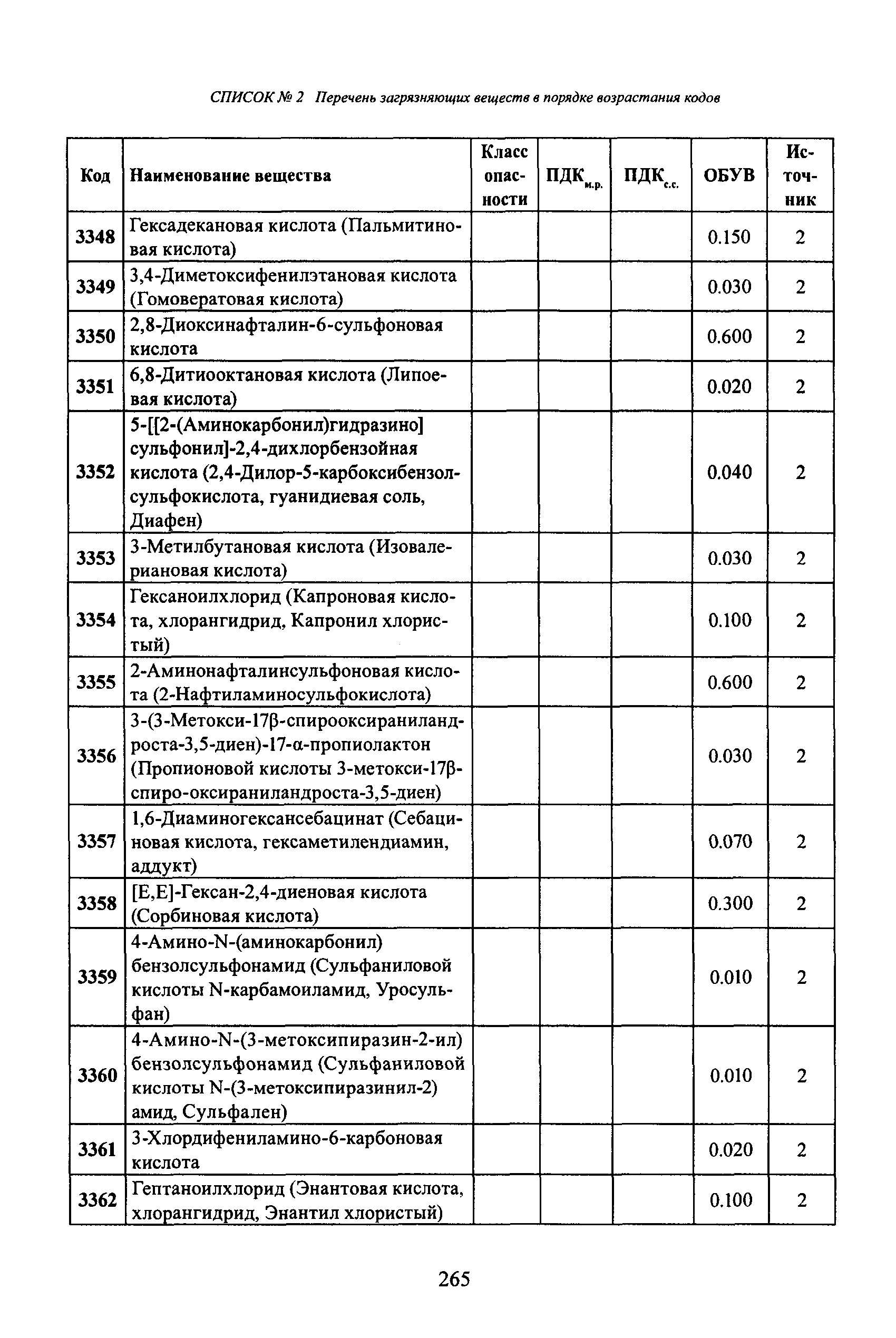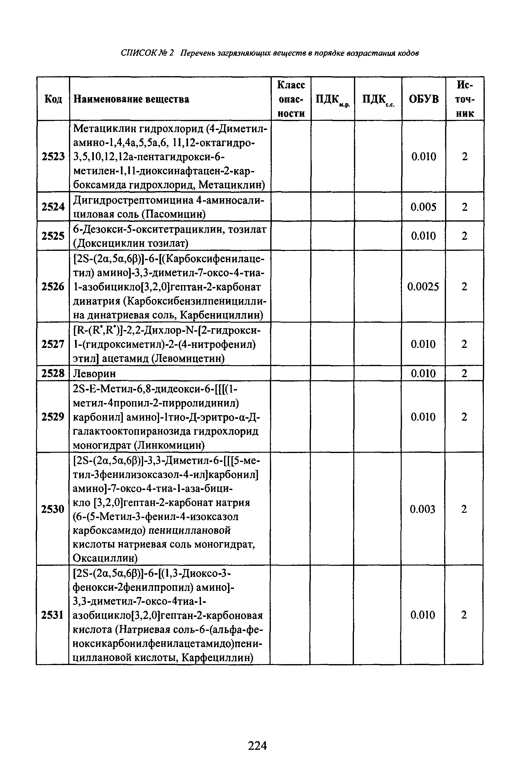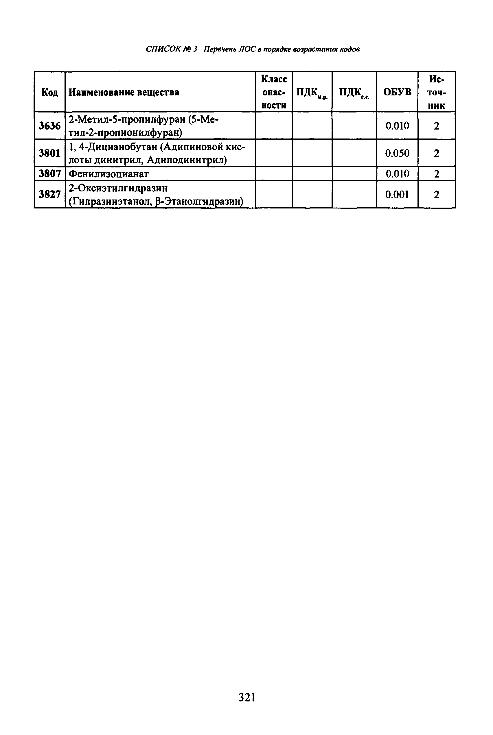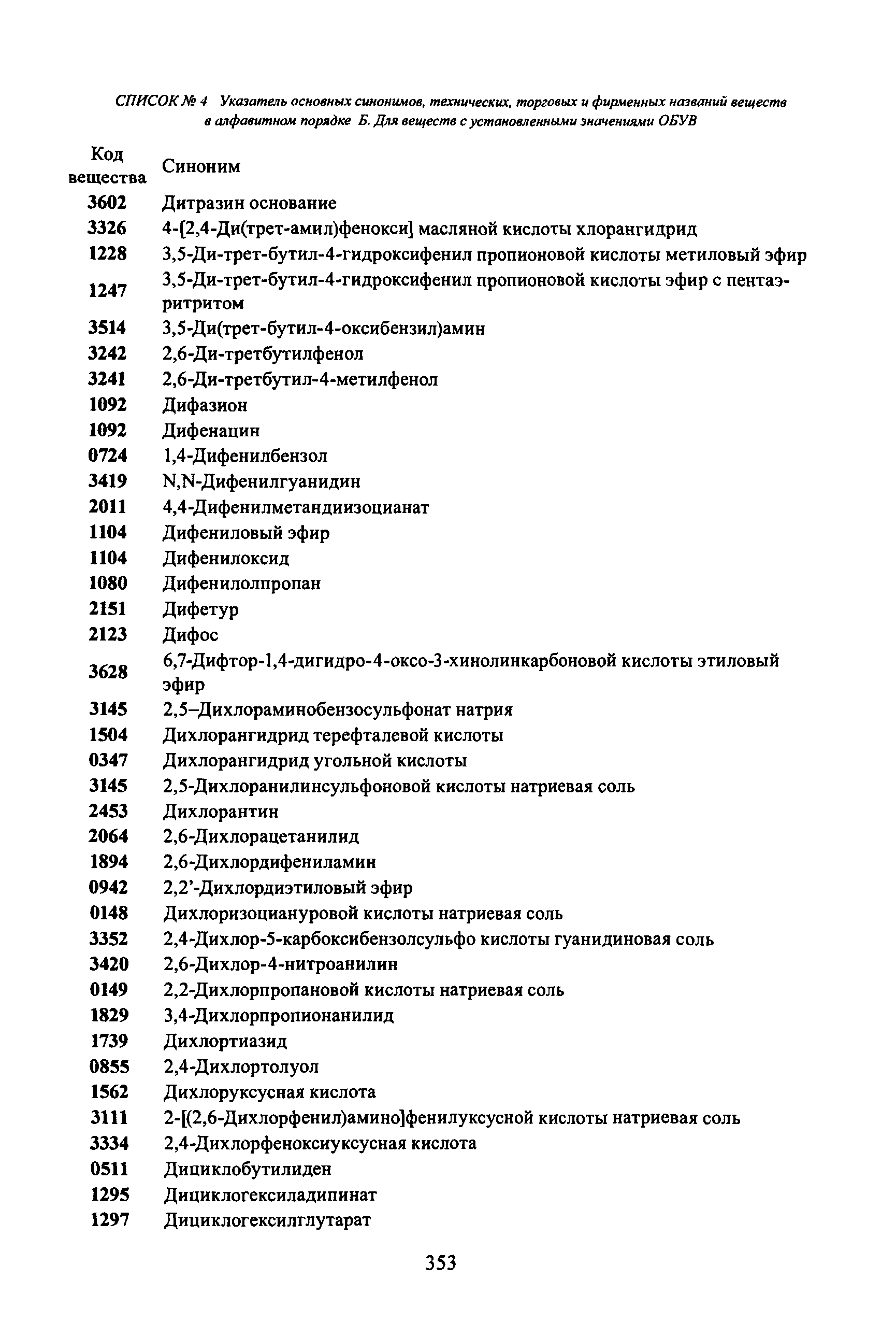 | Оглавление: | Введение Список № 1 Перечень загрязняющих веществ в алфавитном порядке Список № 2 Перечень загрязняющих веществ в порядке возрастания кодов Список № 3 Перечень ЛОС в порядке возрастания кодов Список № 4 Указатель основных синонимов, технических, торговых и фирменных названий веществ в алфавитном порядке А. Для веществ с установленными значениями ПДК Б. Для веществ с установленными значениями ОБУВ Список № 5 Указатель основных синонимов, технических, торговых и фирменных названий веществ в порядке возрастания кодов А. Для веществ с установленными значениями ПДК Б. Для веществ с установленными значениями ОБУВ |