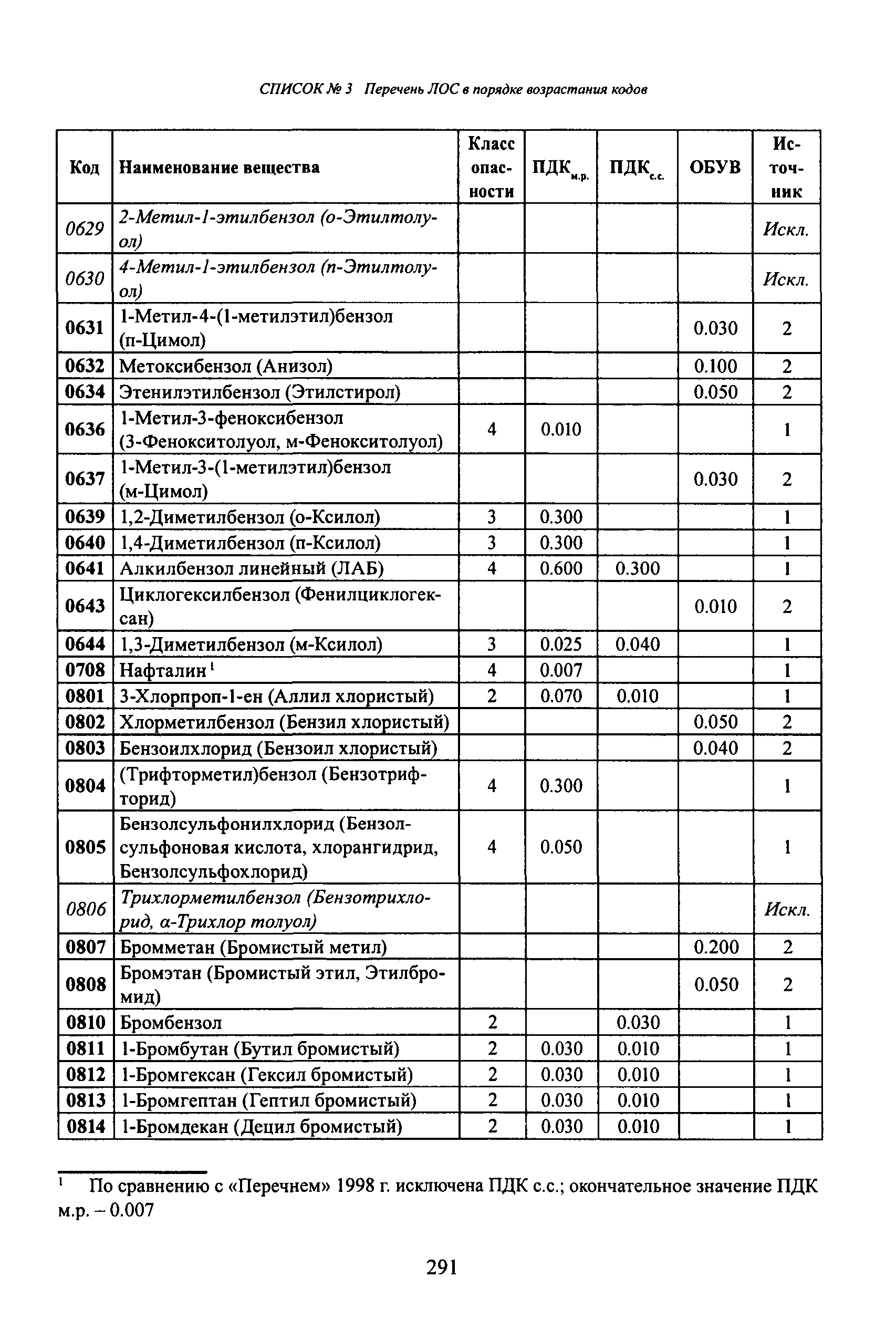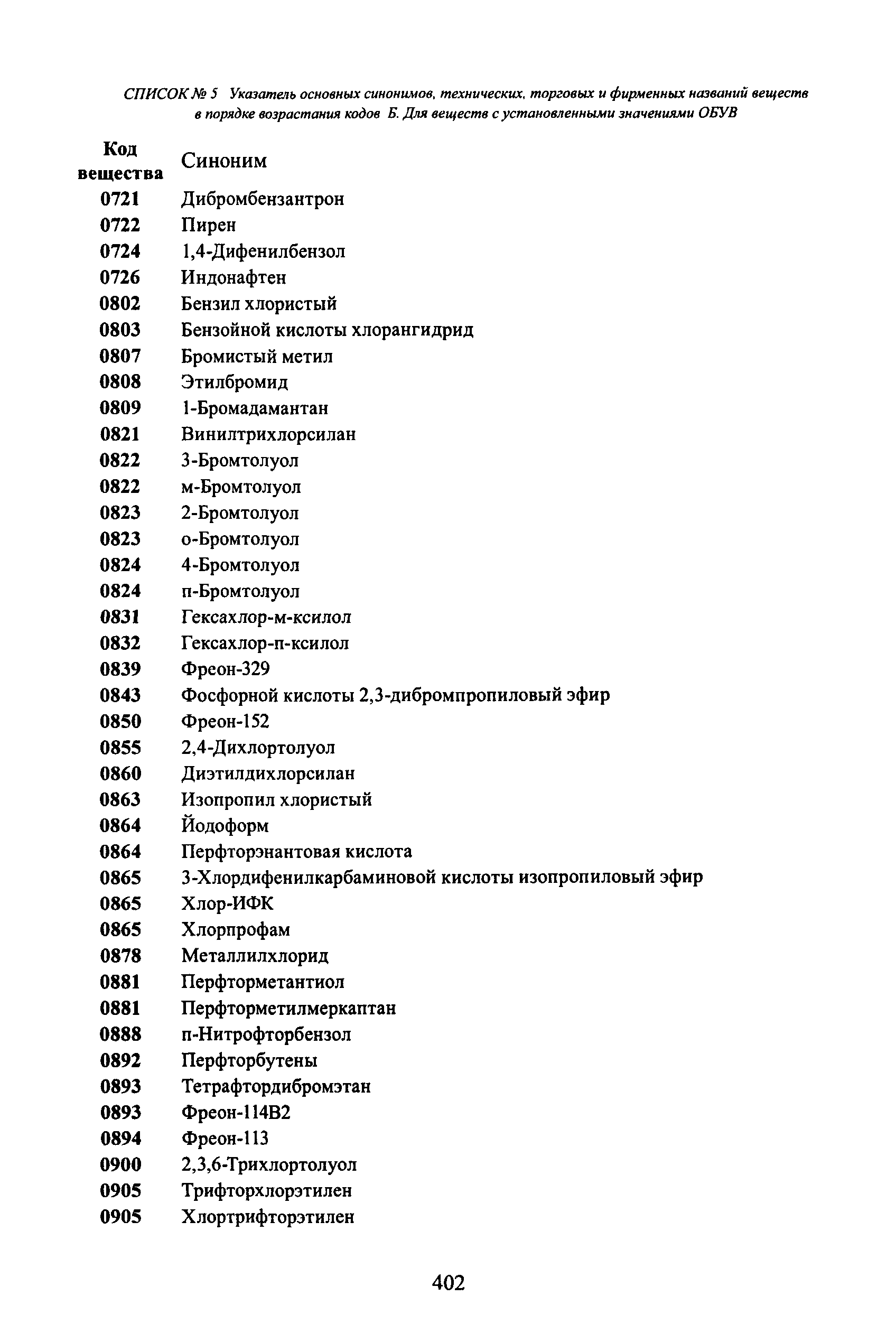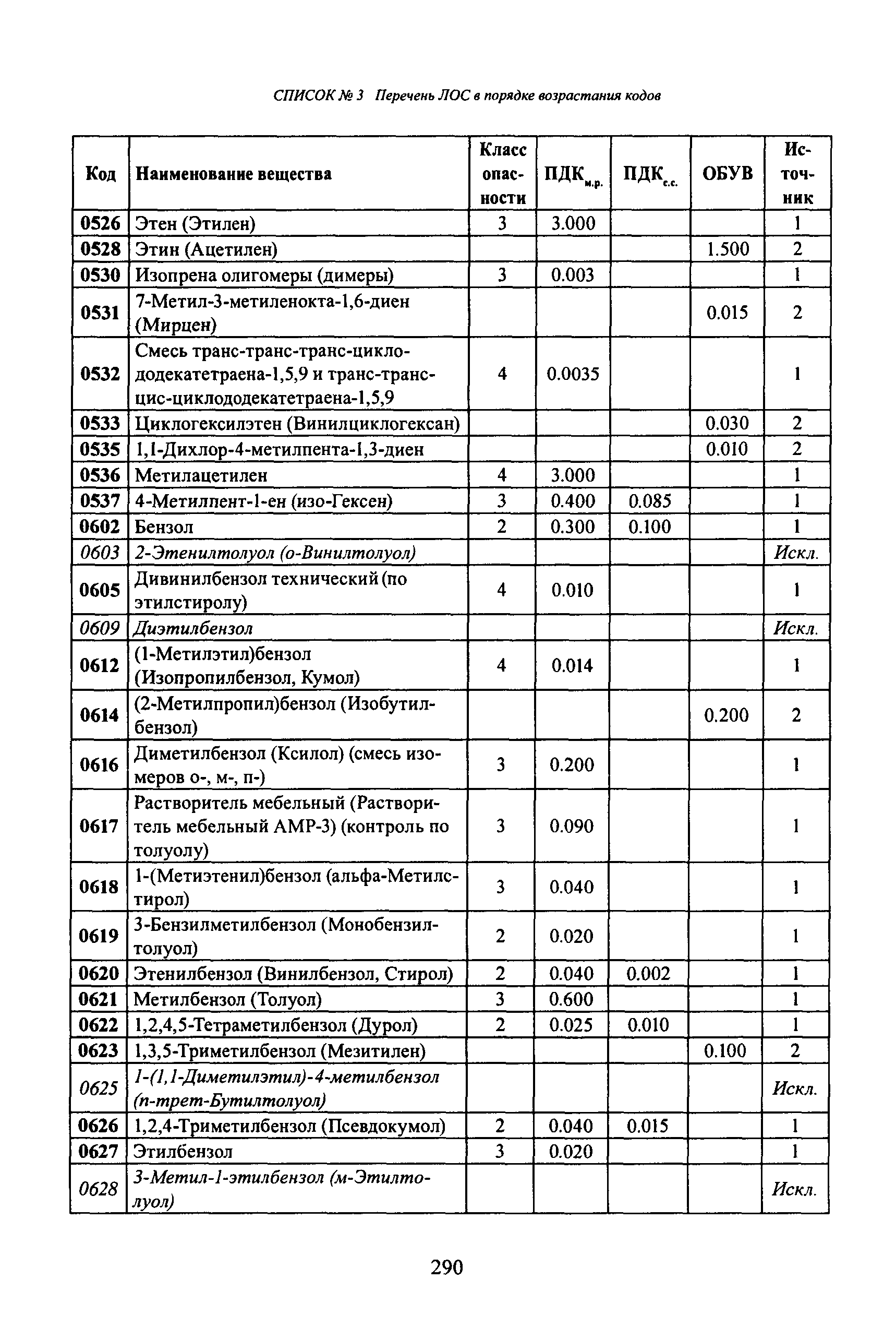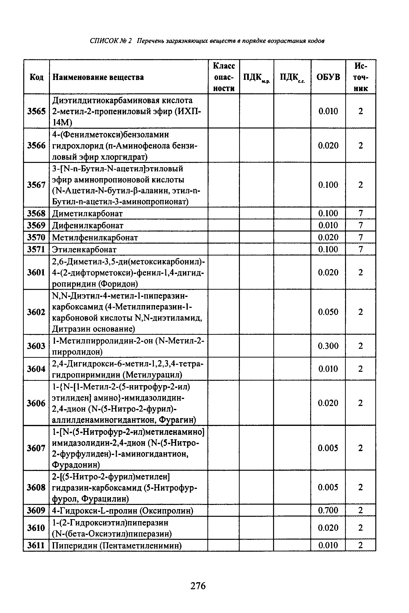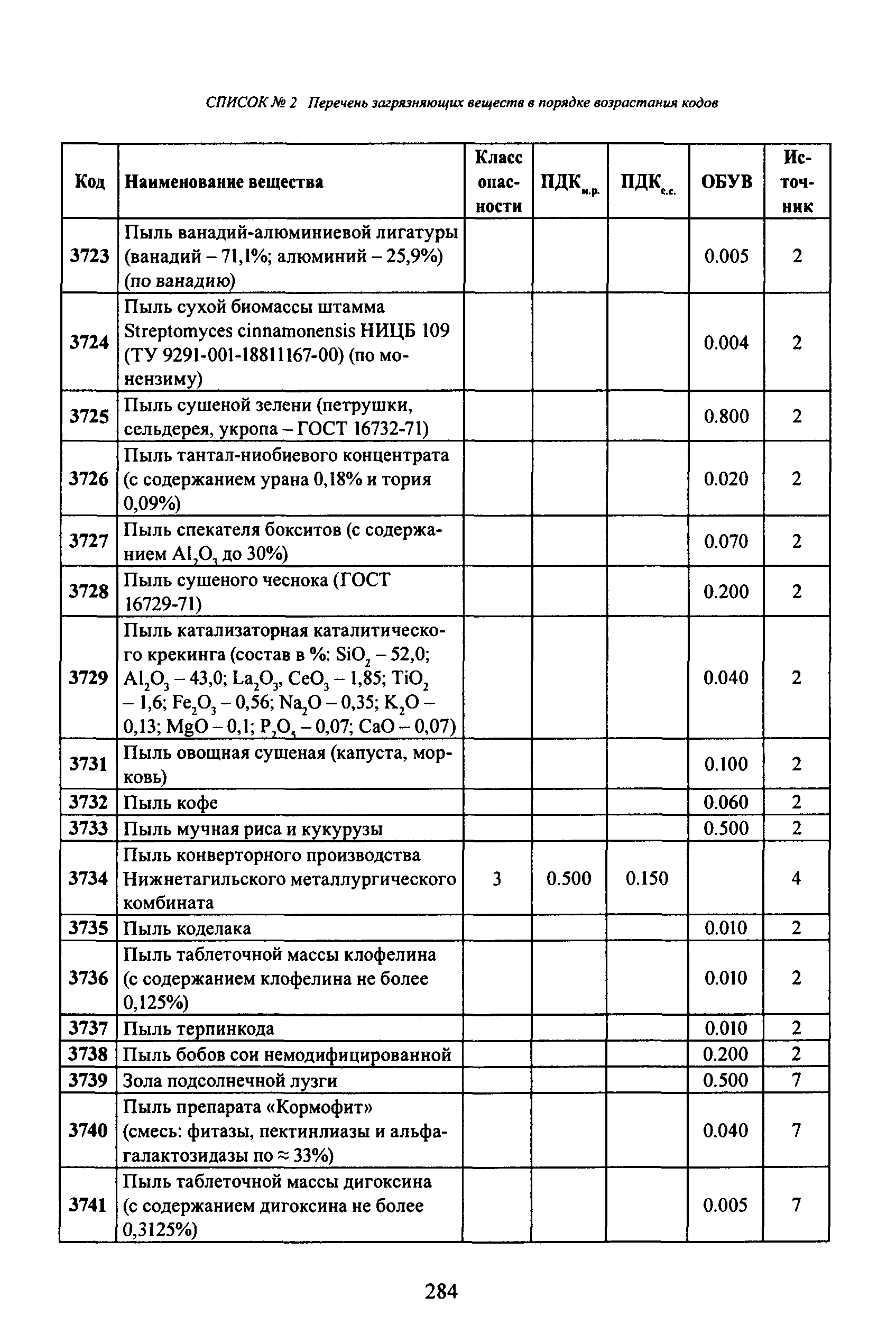 | Оглавление: | Введение Список № 1 Перечень загрязняющих веществ в алфавитном порядке Список № 2 Перечень загрязняющих веществ в порядке возрастания кодов Список № 3 Перечень ЛОС в порядке возрастания кодов Список № 4 Указатель основных синонимов, технических, торговых и фирменных названий веществ в алфавитном порядке А. Для веществ с установленными значениями ПДК Б. Для веществ с установленными значениями ОБУВ Список № 5 Указатель основных синонимов, технических, торговых и фирменных названий веществ в порядке возрастания кодов А. Для веществ с установленными значениями ПДК Б. Для веществ с установленными значениями ОБУВ |