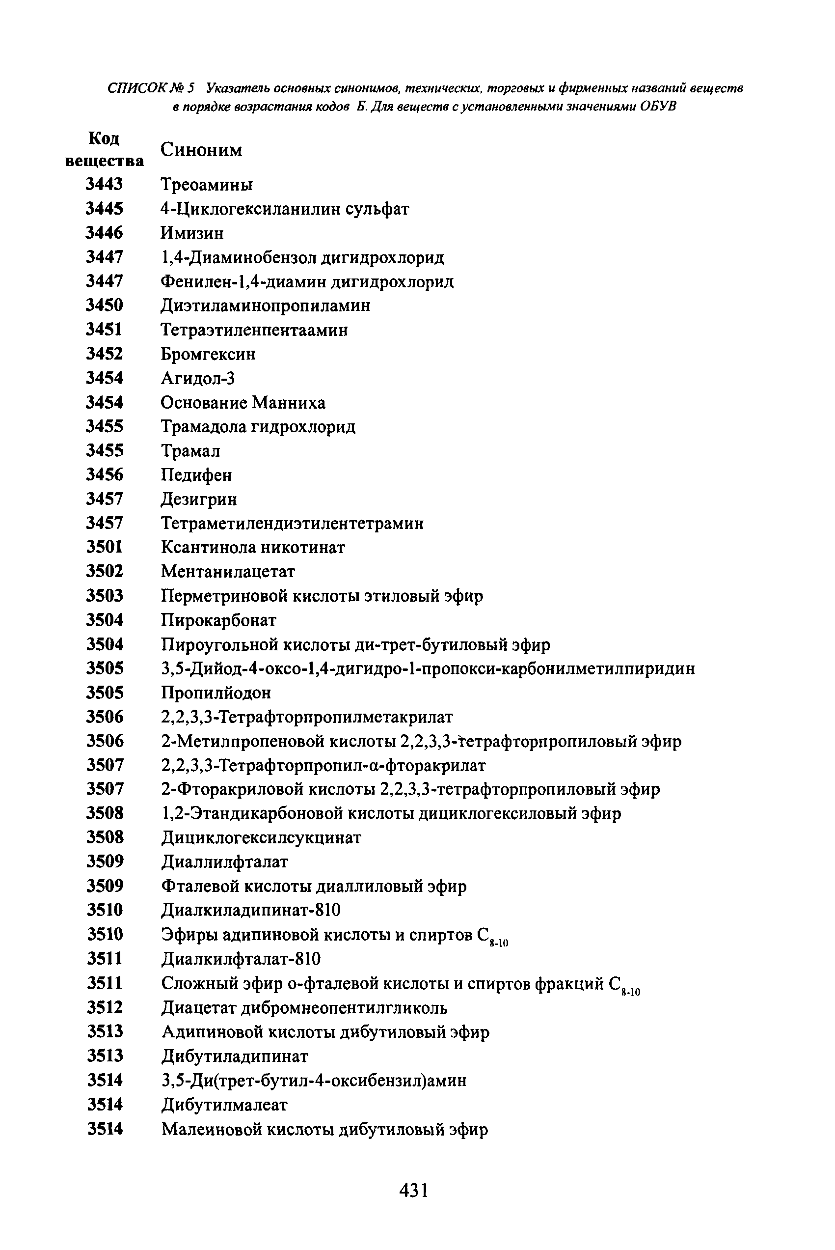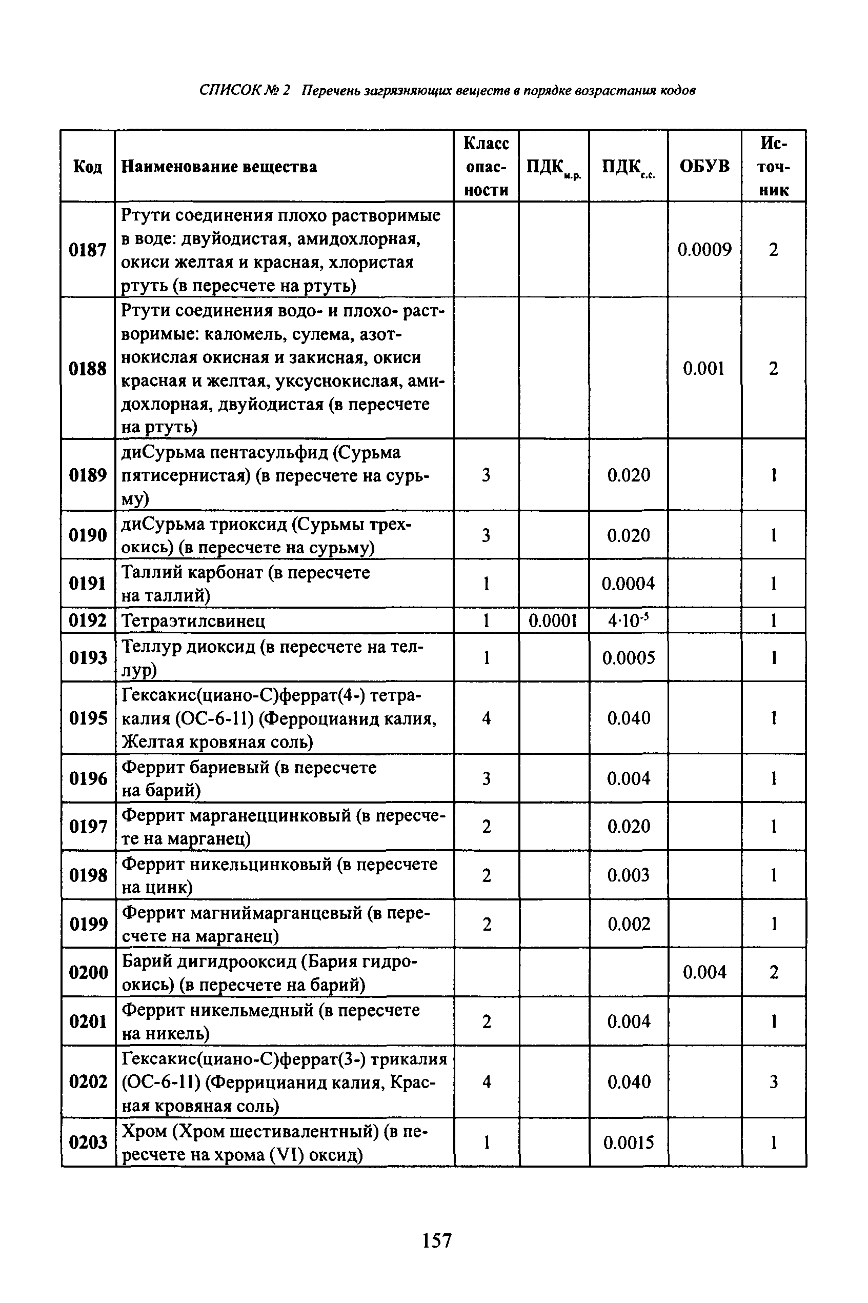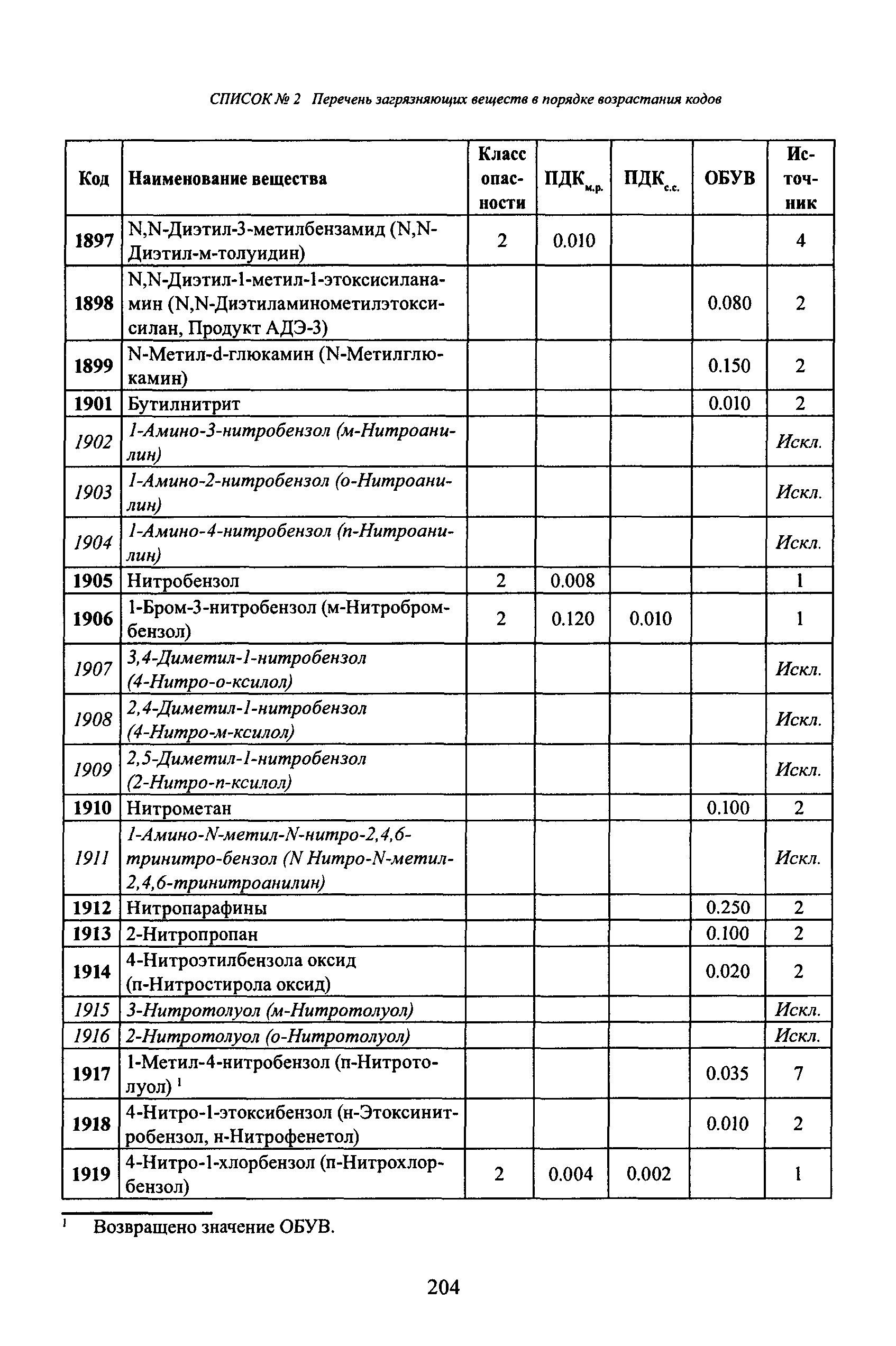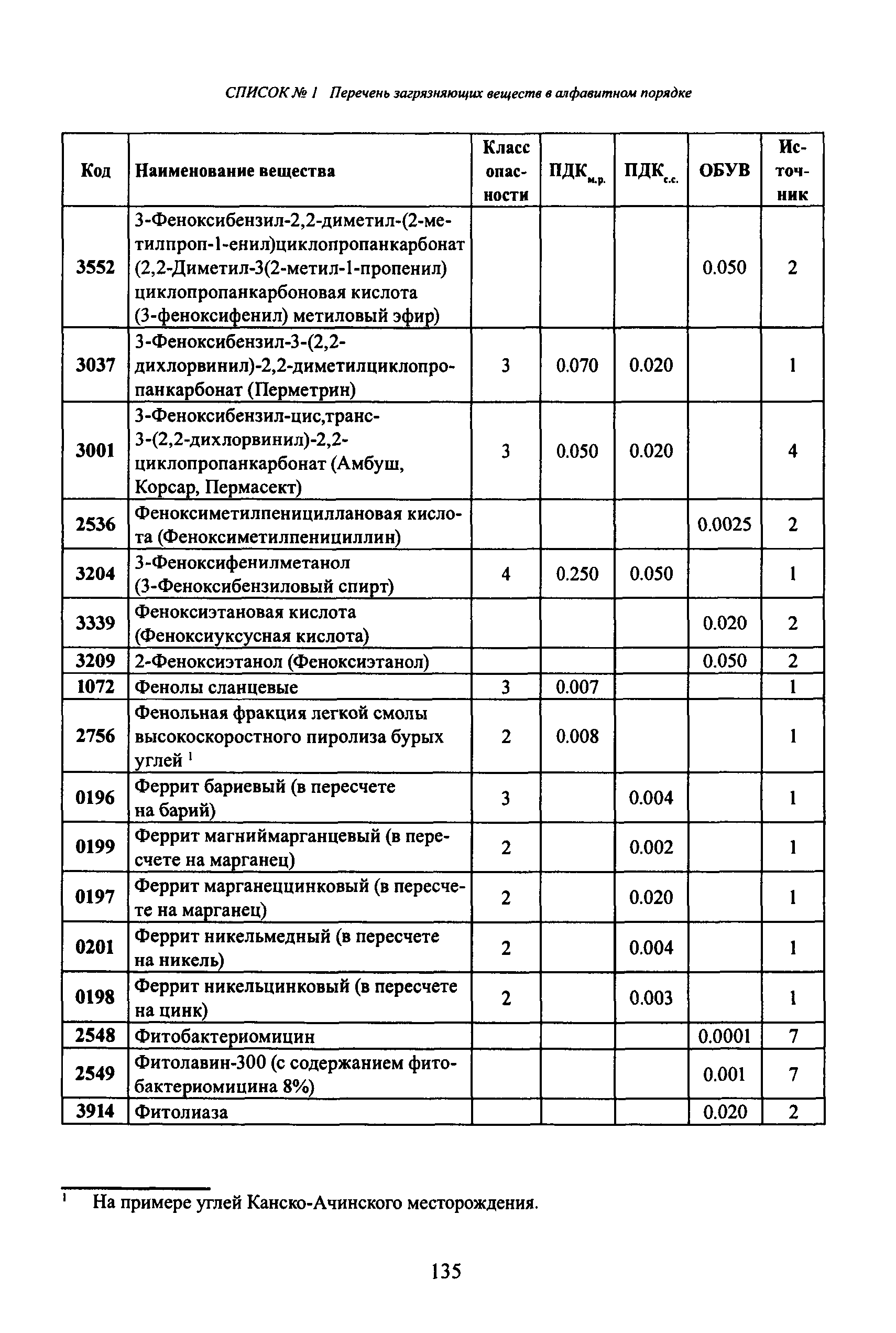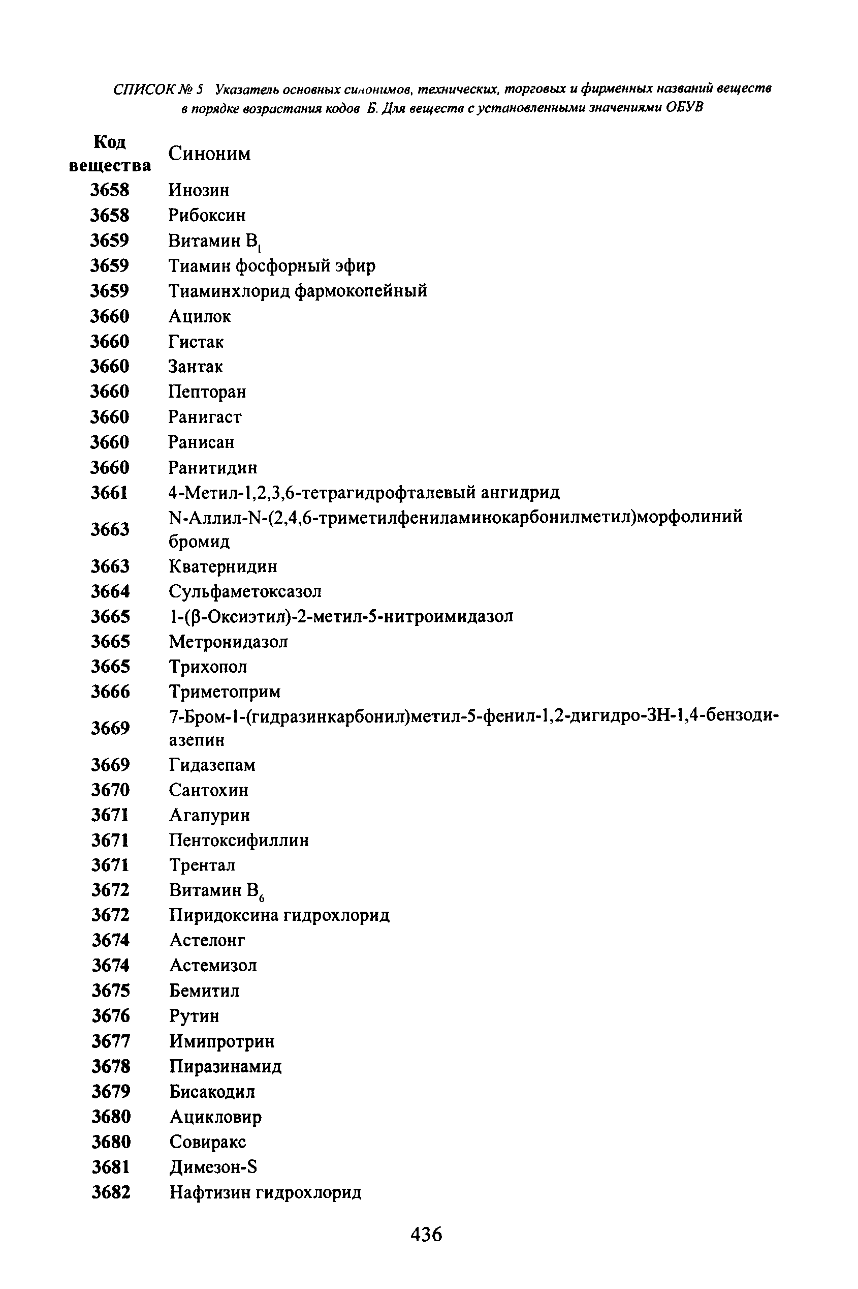 | Оглавление: | Введение Список № 1 Перечень загрязняющих веществ в алфавитном порядке Список № 2 Перечень загрязняющих веществ в порядке возрастания кодов Список № 3 Перечень ЛОС в порядке возрастания кодов Список № 4 Указатель основных синонимов, технических, торговых и фирменных названий веществ в алфавитном порядке А. Для веществ с установленными значениями ПДК Б. Для веществ с установленными значениями ОБУВ Список № 5 Указатель основных синонимов, технических, торговых и фирменных названий веществ в порядке возрастания кодов А. Для веществ с установленными значениями ПДК Б. Для веществ с установленными значениями ОБУВ |