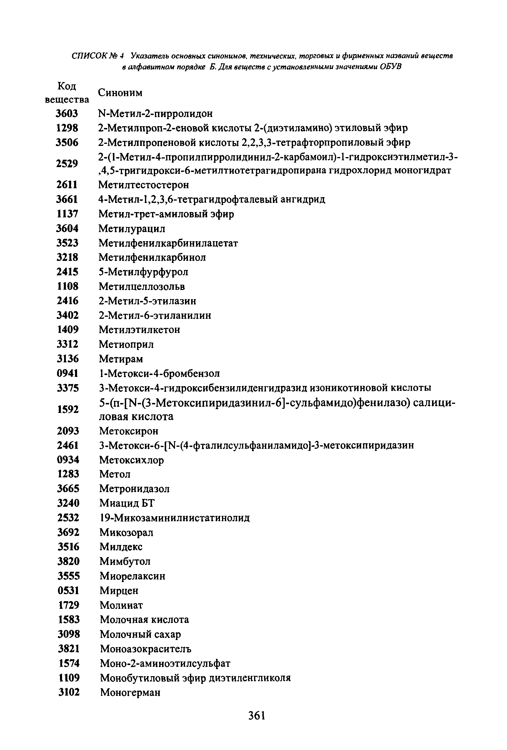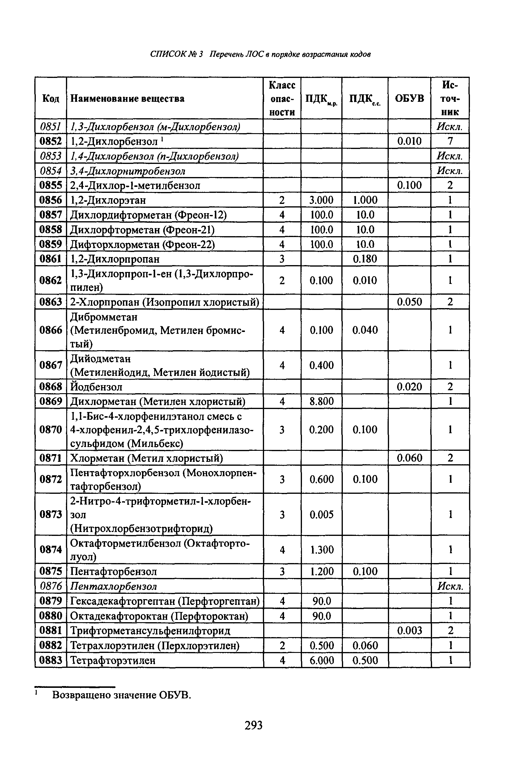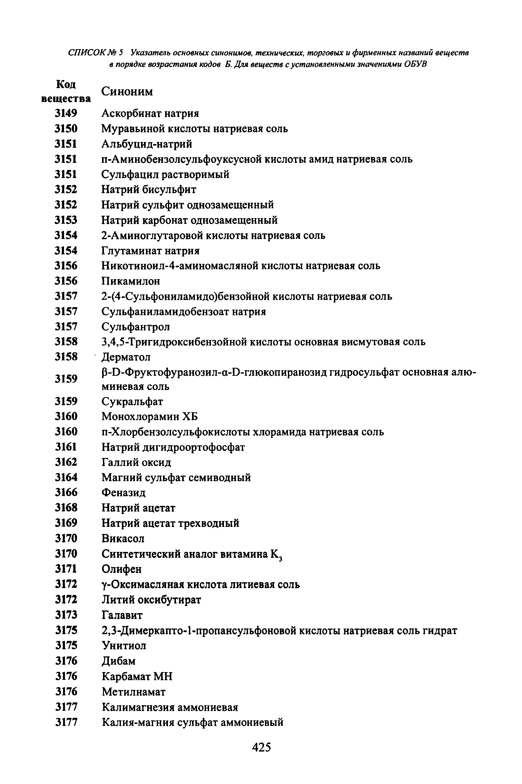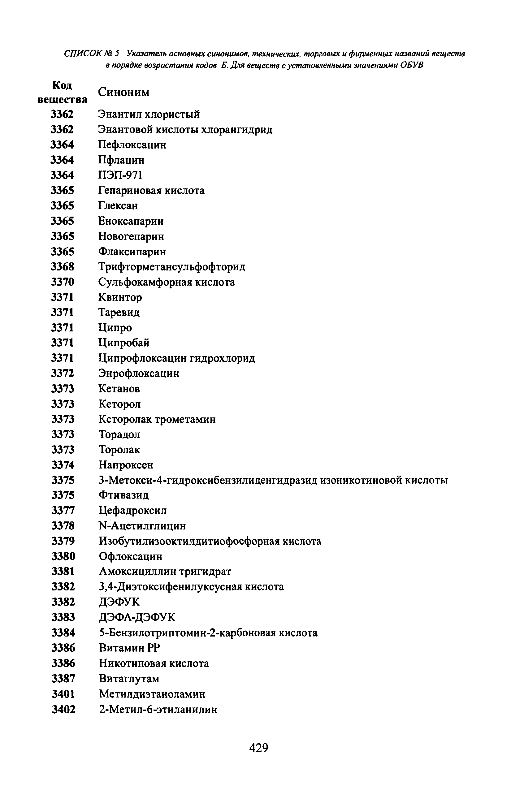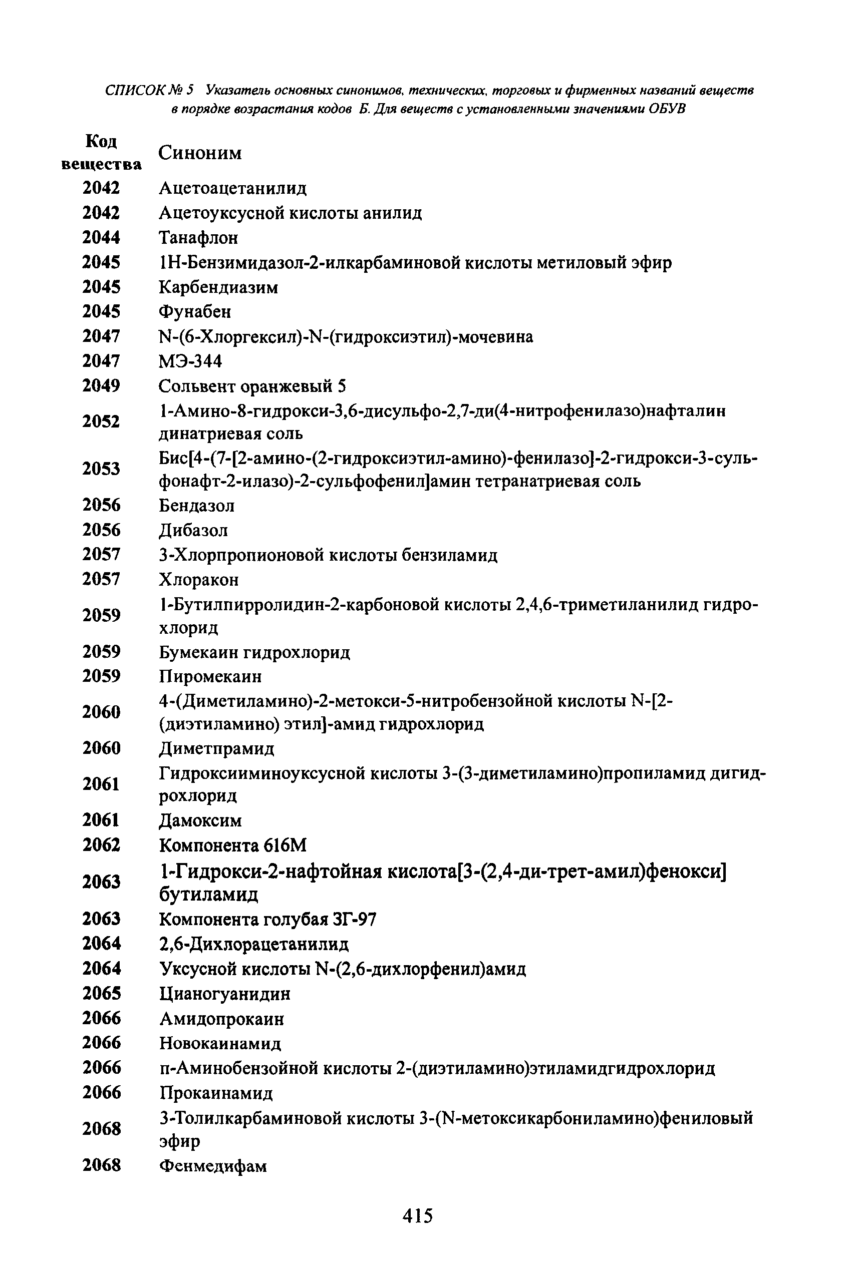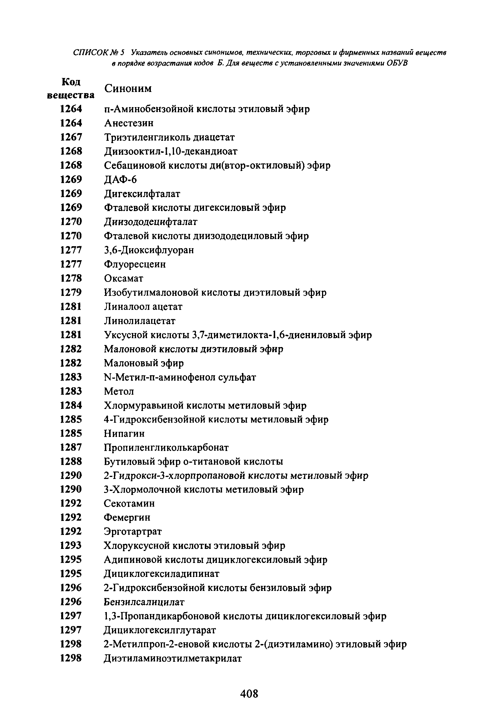 | Оглавление: | Введение Список № 1 Перечень загрязняющих веществ в алфавитном порядке Список № 2 Перечень загрязняющих веществ в порядке возрастания кодов Список № 3 Перечень ЛОС в порядке возрастания кодов Список № 4 Указатель основных синонимов, технических, торговых и фирменных названий веществ в алфавитном порядке А. Для веществ с установленными значениями ПДК Б. Для веществ с установленными значениями ОБУВ Список № 5 Указатель основных синонимов, технических, торговых и фирменных названий веществ в порядке возрастания кодов А. Для веществ с установленными значениями ПДК Б. Для веществ с установленными значениями ОБУВ |