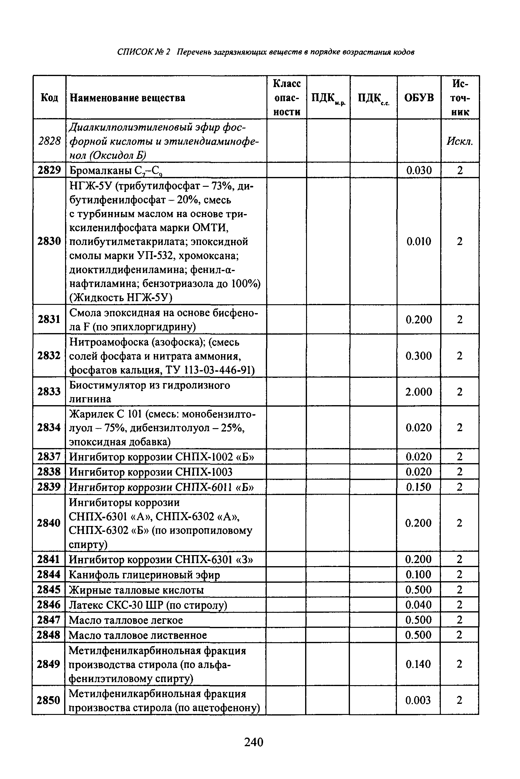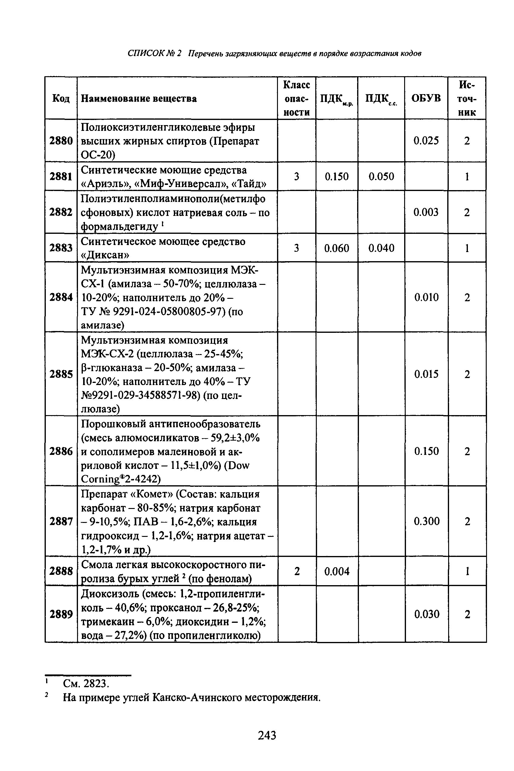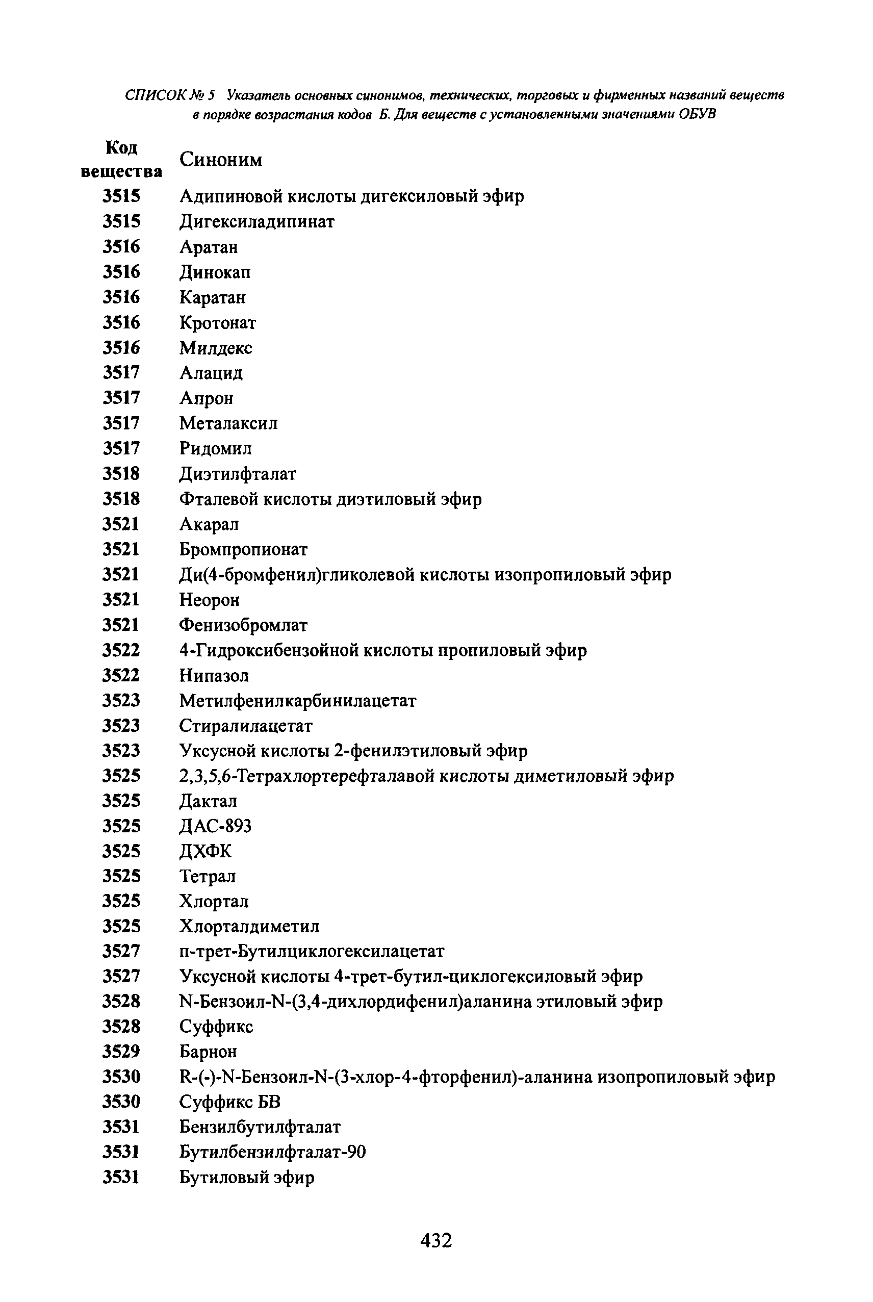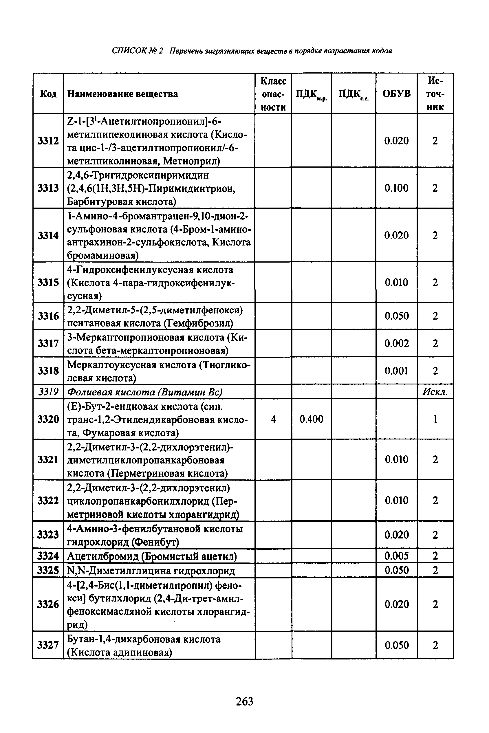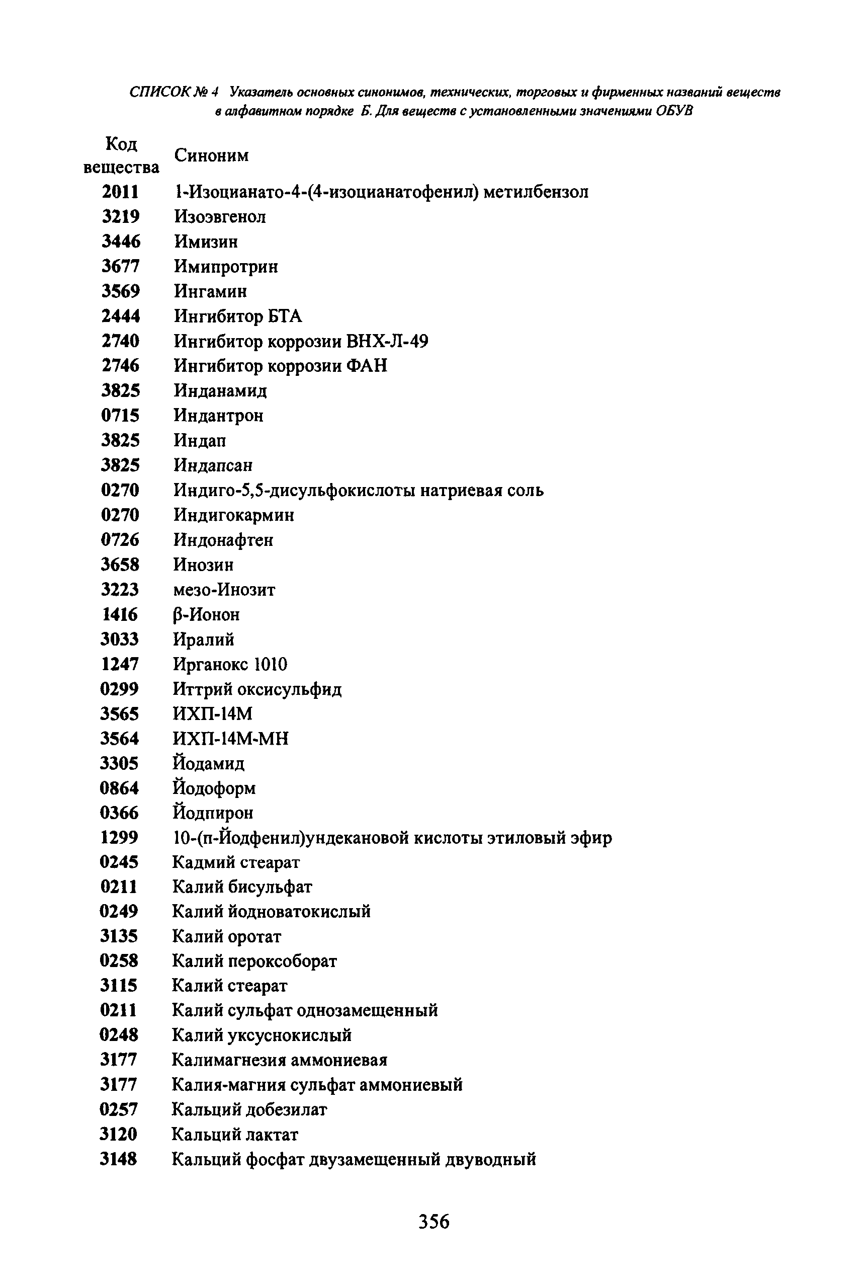 | Оглавление: | Введение Список № 1 Перечень загрязняющих веществ в алфавитном порядке Список № 2 Перечень загрязняющих веществ в порядке возрастания кодов Список № 3 Перечень ЛОС в порядке возрастания кодов Список № 4 Указатель основных синонимов, технических, торговых и фирменных названий веществ в алфавитном порядке А. Для веществ с установленными значениями ПДК Б. Для веществ с установленными значениями ОБУВ Список № 5 Указатель основных синонимов, технических, торговых и фирменных названий веществ в порядке возрастания кодов А. Для веществ с установленными значениями ПДК Б. Для веществ с установленными значениями ОБУВ |