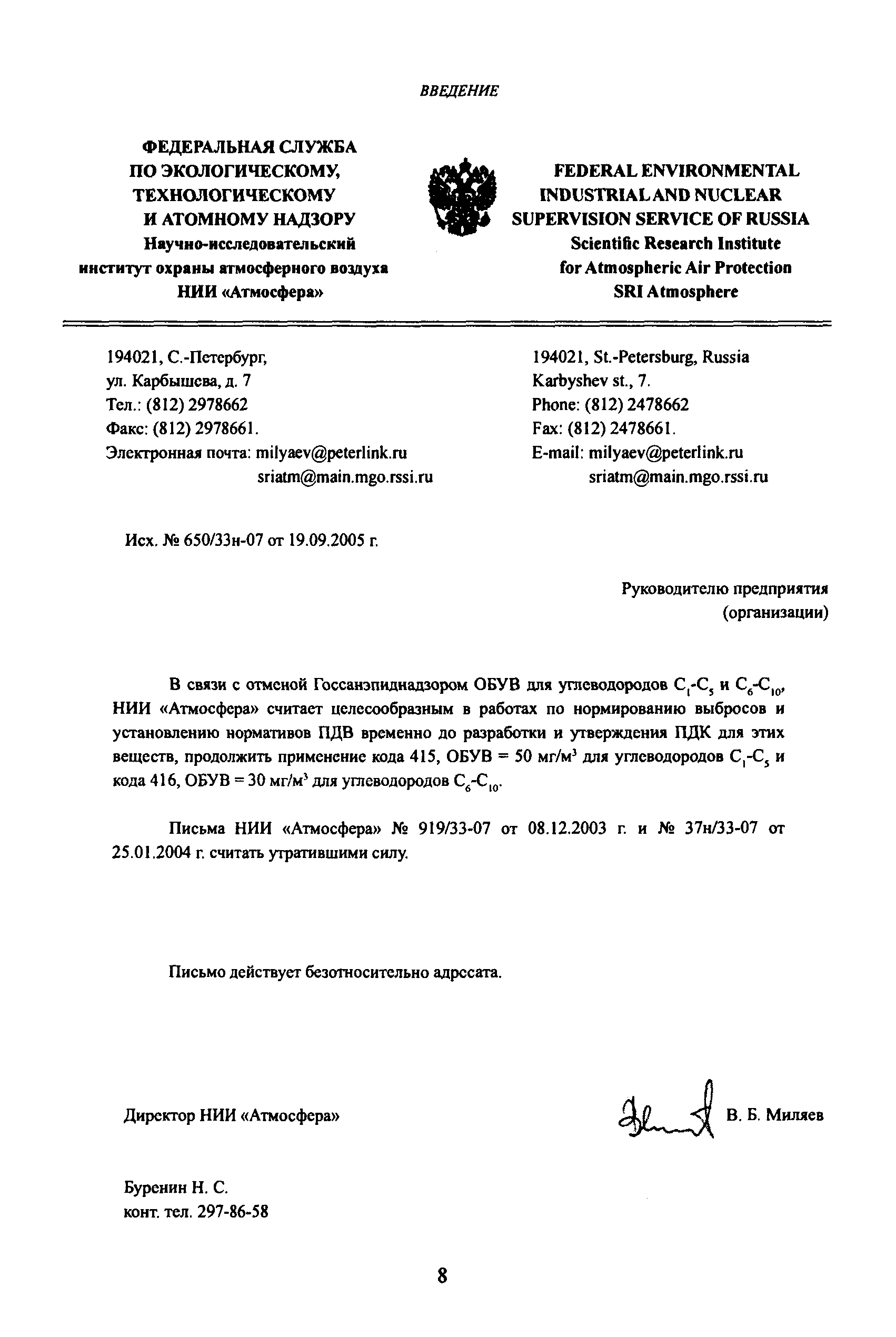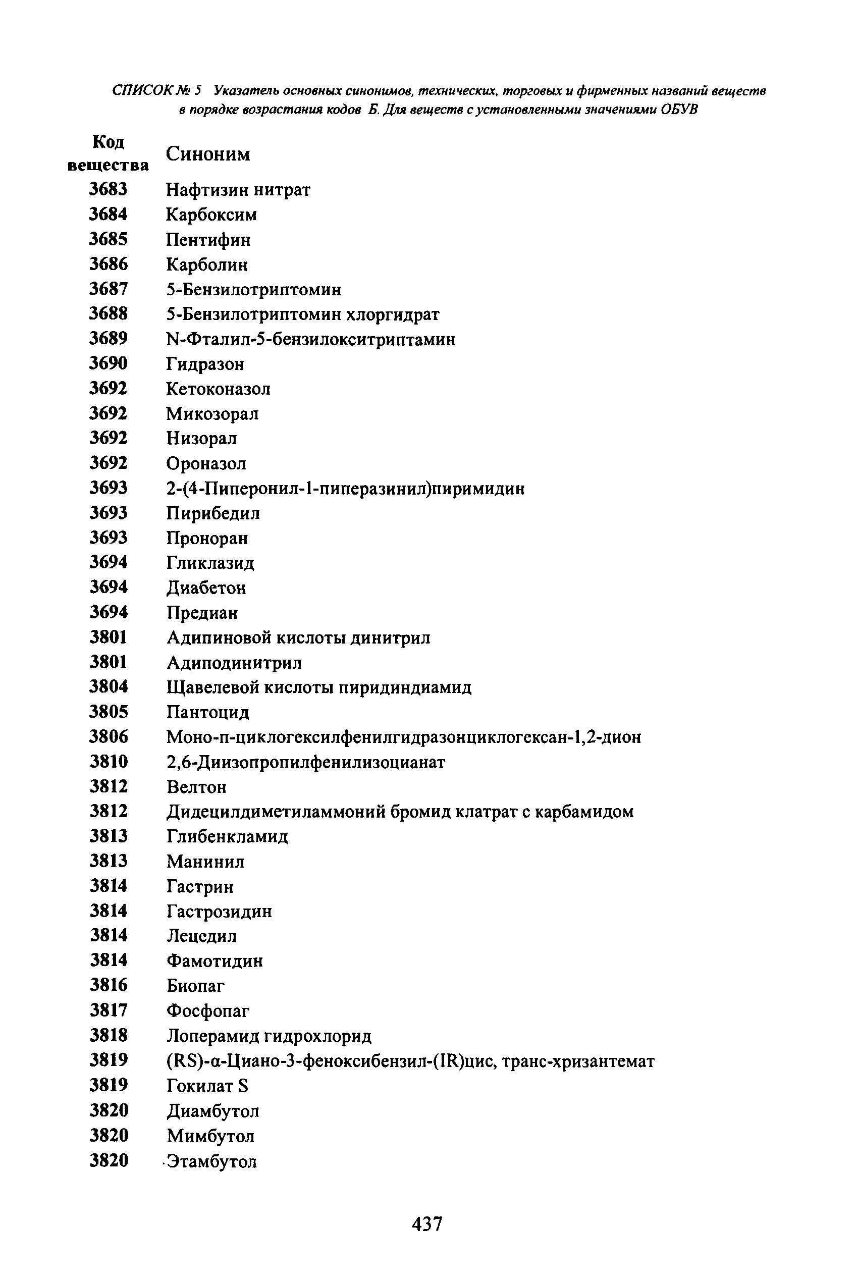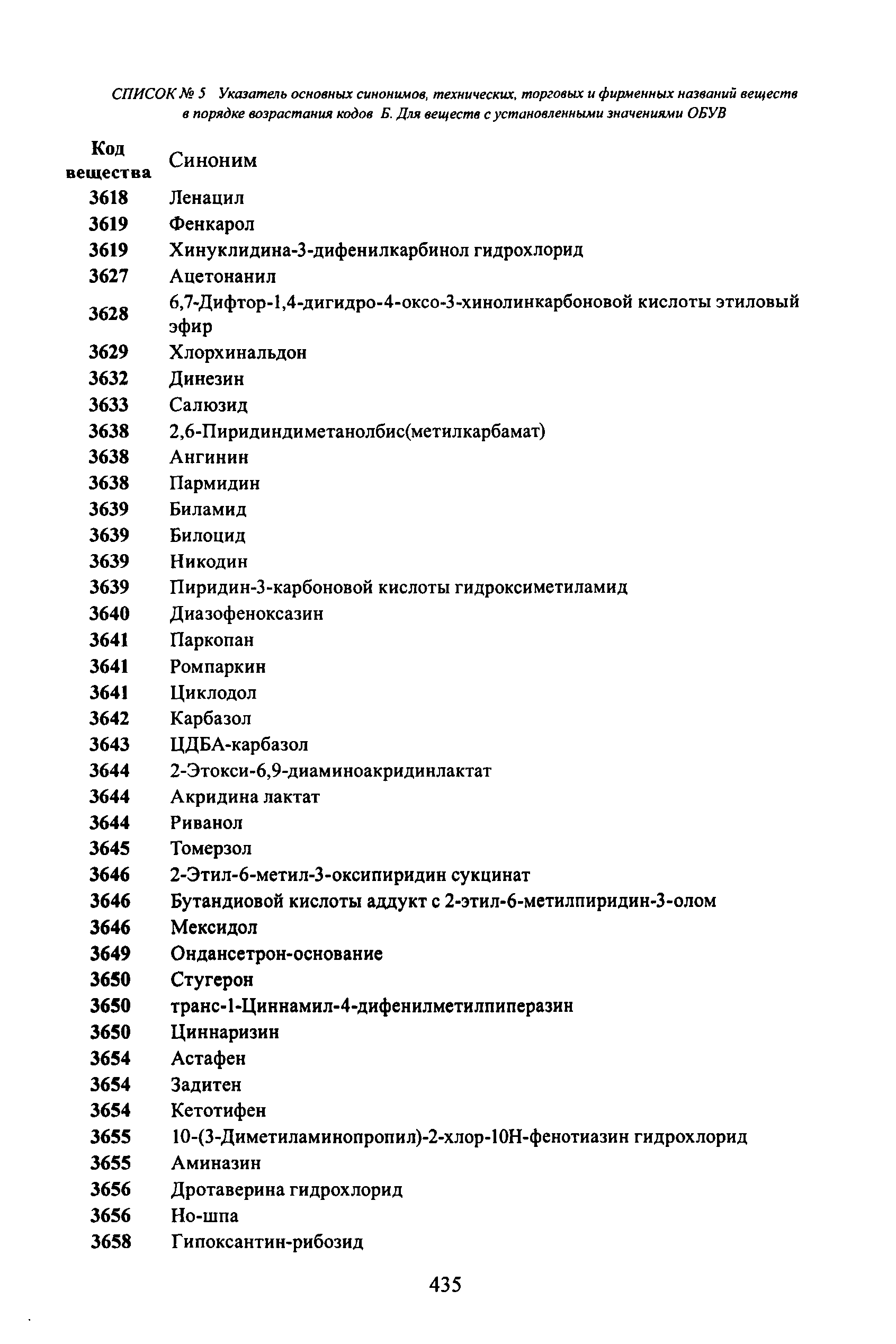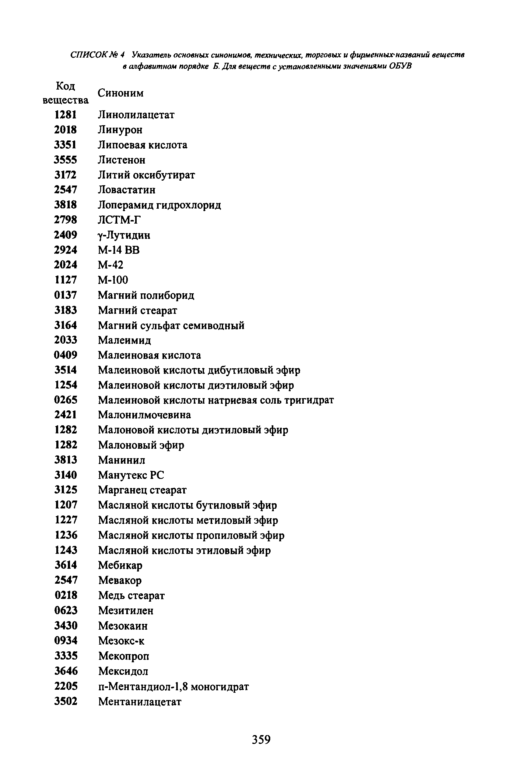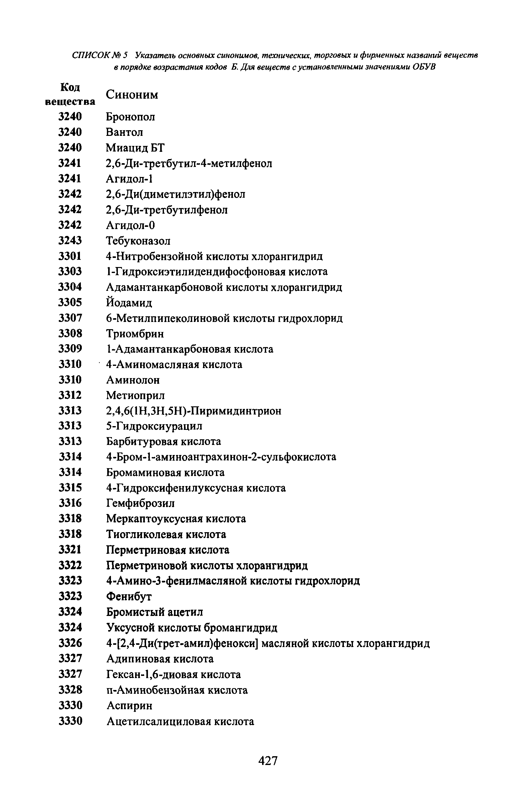 | Оглавление: | Введение Список № 1 Перечень загрязняющих веществ в алфавитном порядке Список № 2 Перечень загрязняющих веществ в порядке возрастания кодов Список № 3 Перечень ЛОС в порядке возрастания кодов Список № 4 Указатель основных синонимов, технических, торговых и фирменных названий веществ в алфавитном порядке А. Для веществ с установленными значениями ПДК Б. Для веществ с установленными значениями ОБУВ Список № 5 Указатель основных синонимов, технических, торговых и фирменных названий веществ в порядке возрастания кодов А. Для веществ с установленными значениями ПДК Б. Для веществ с установленными значениями ОБУВ |
