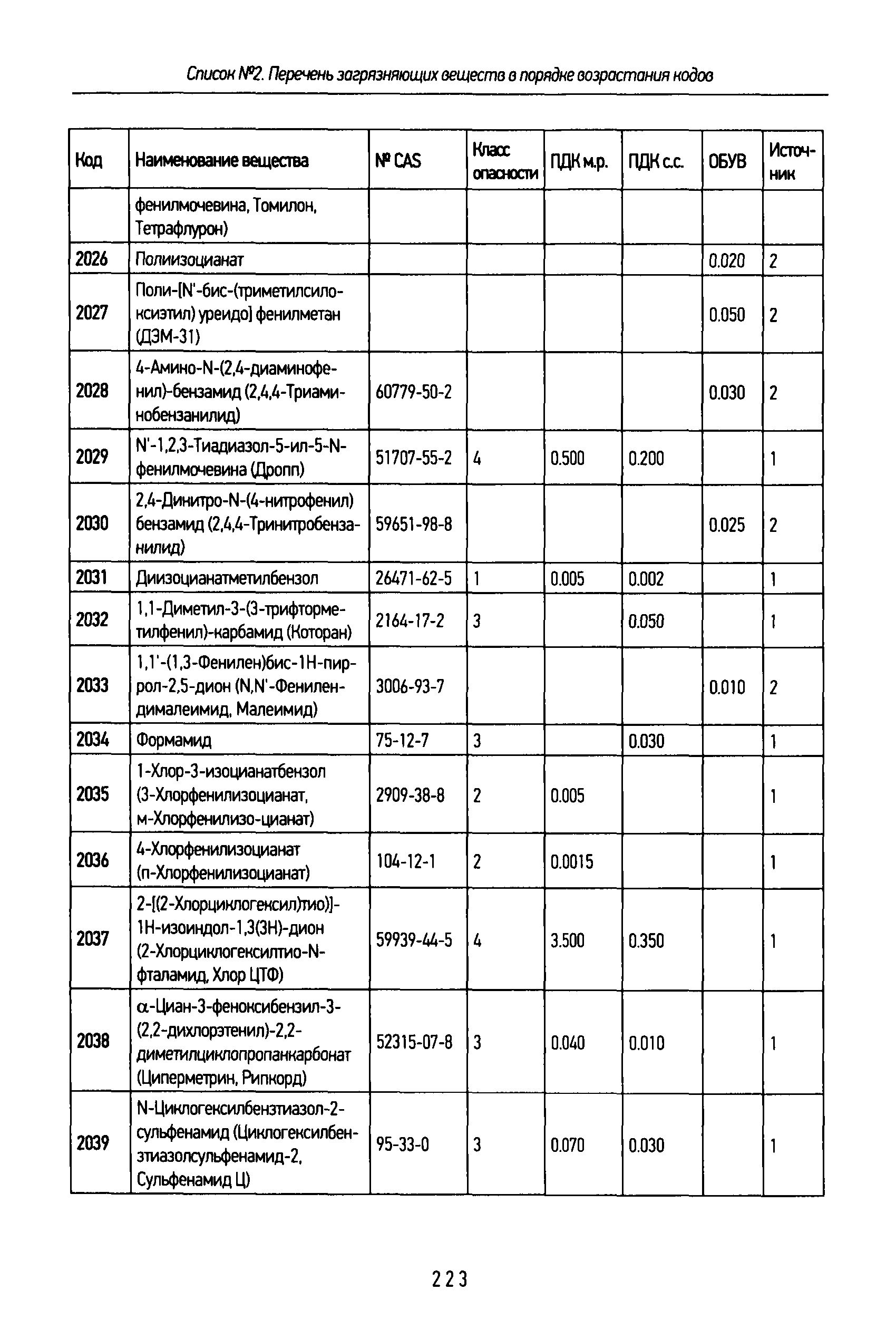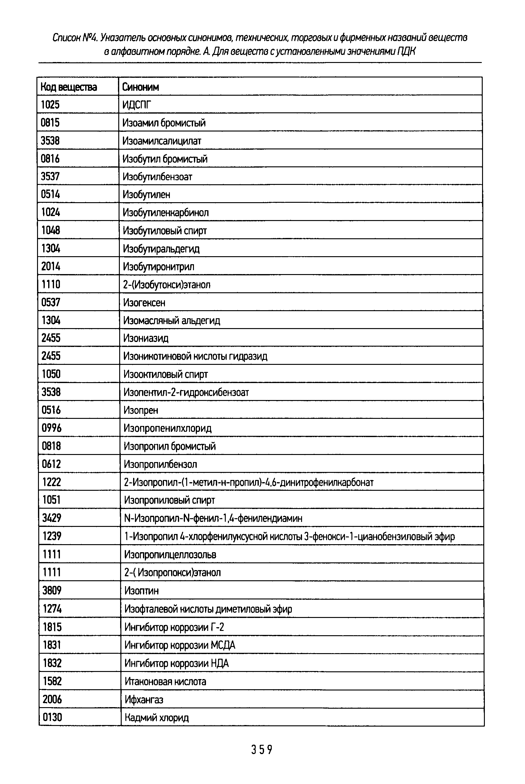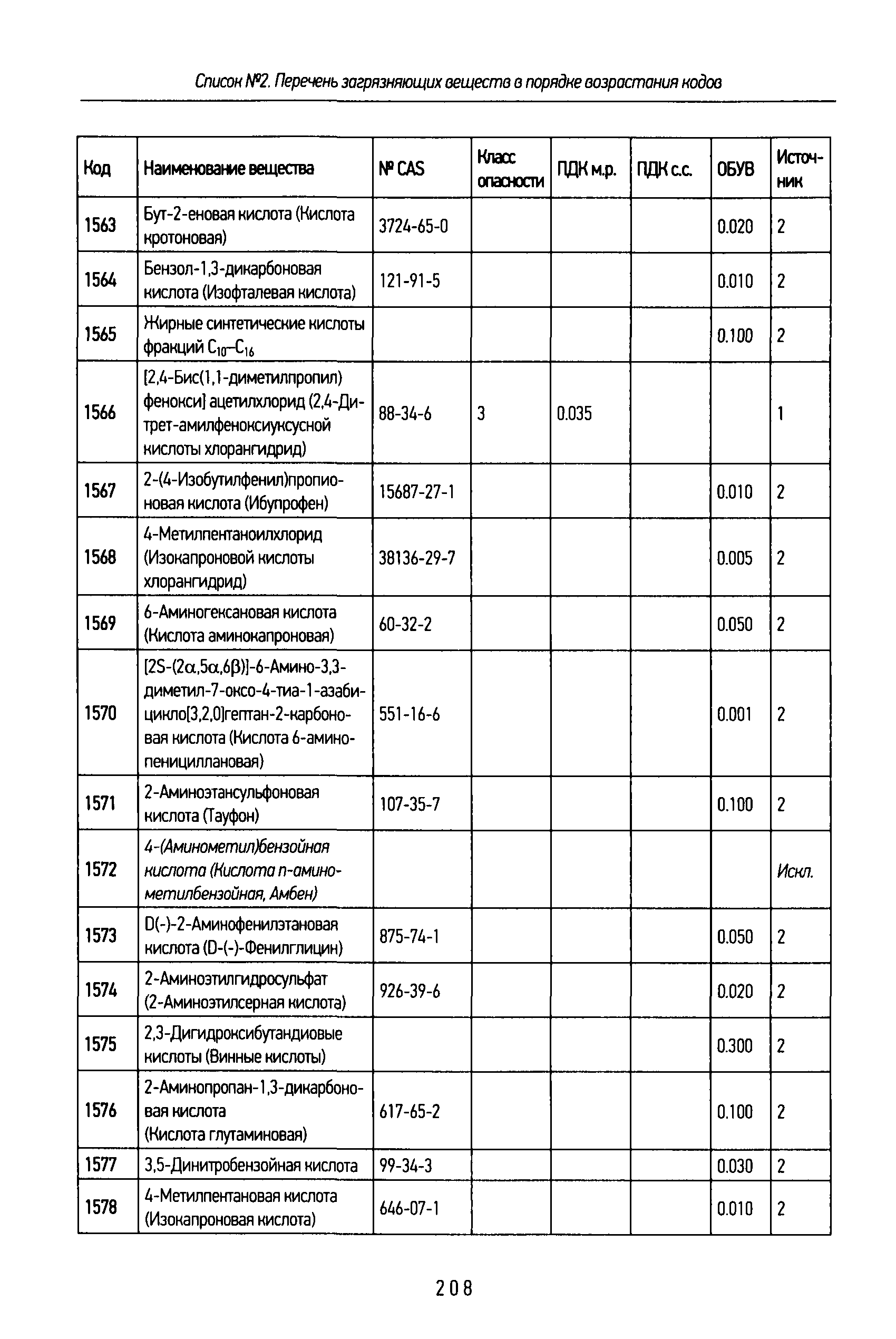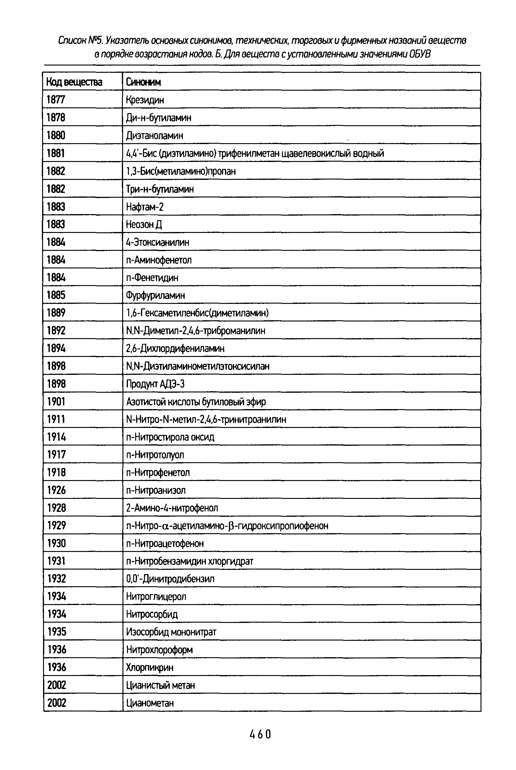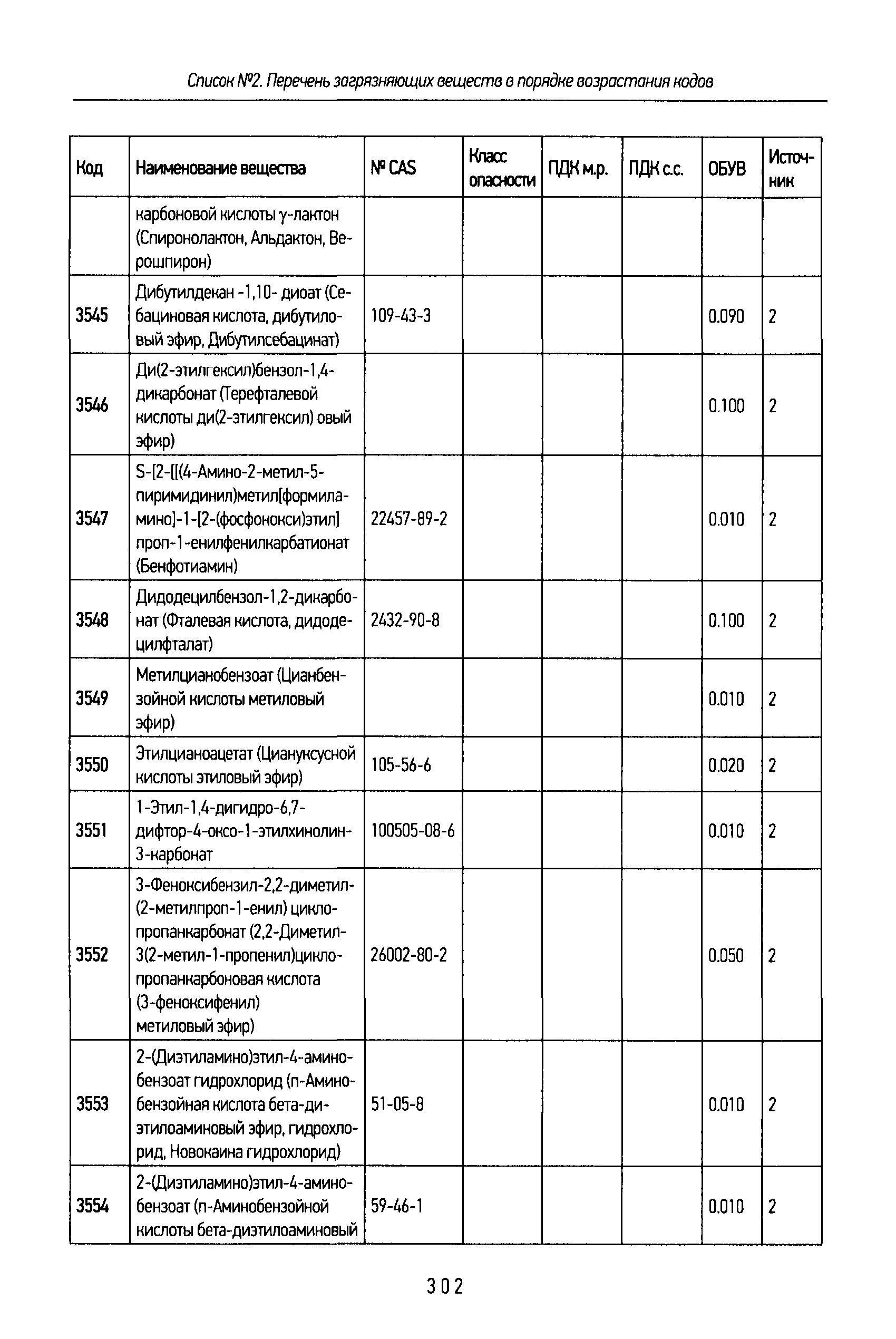 Перечень и коды веществ, загрязняющих атмосферный воздух (8 издание)| Статус: | заменен | | Название рус.: | Перечень и коды веществ, загрязняющих атмосферный воздух (8 издание) | | Дата добавления в базу: | 01.09.2013 | | Дата актуализации: | 01.01.2021 | | Область применения: | Перечень предназначен для территориальных и местных природоохранных органов, органов Роспотребнадзора и Ростехнадзора, предприятий и других организаций, в которых проводятся работы, связанные с охраной окружающей среды | | Оглавление: | 1. Введение 2. Список №1. Перечень загрязняющих веществ в алфавитном порядке 3. Список №2. Перечень загрязняющих веществ в порядке возрастания кодов 4. Список №3. Перечень ЛОС в порядке возрастания кодов 5. Список №4 Указатель основных синонимов, технических, торговых и фирменных названий веществ в алфавитном порядке A. Для веществ с установленными значениями ПДК B. Для веществ с установленными значениями ОБУВ 6. Список №5. Указатель основных синонимов, технических, торговых и фирменных названий веществ в порядке возрастания кодов A. Для веществ с установленными значениями ПДК B. Для веществ с установленными значениями ОБУВ | | Разработан: | НИИ Атмосфера Фирма Интеграл Научно-исследовательский институт экологии человека и окружающей среды им. А.И. Сысина
