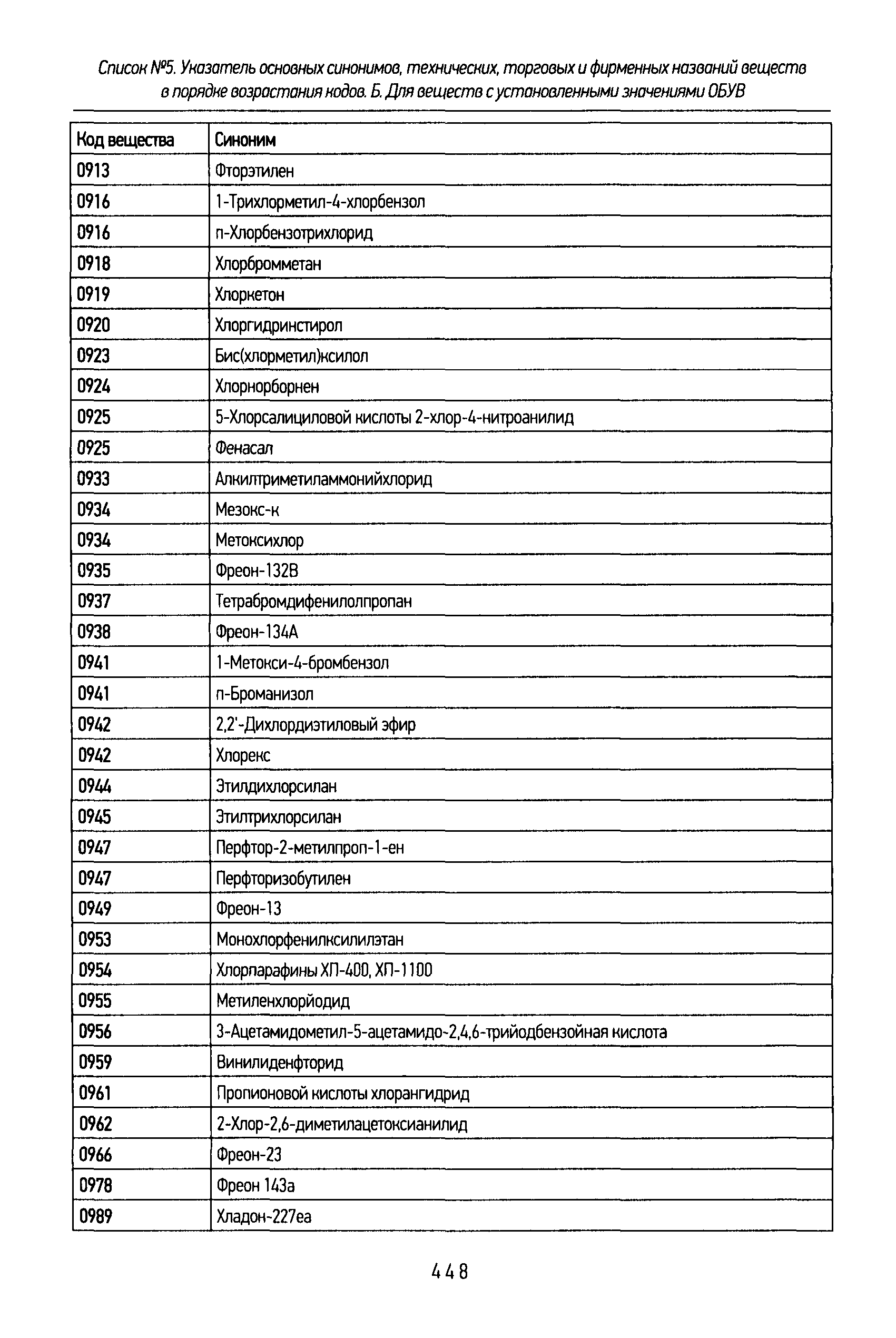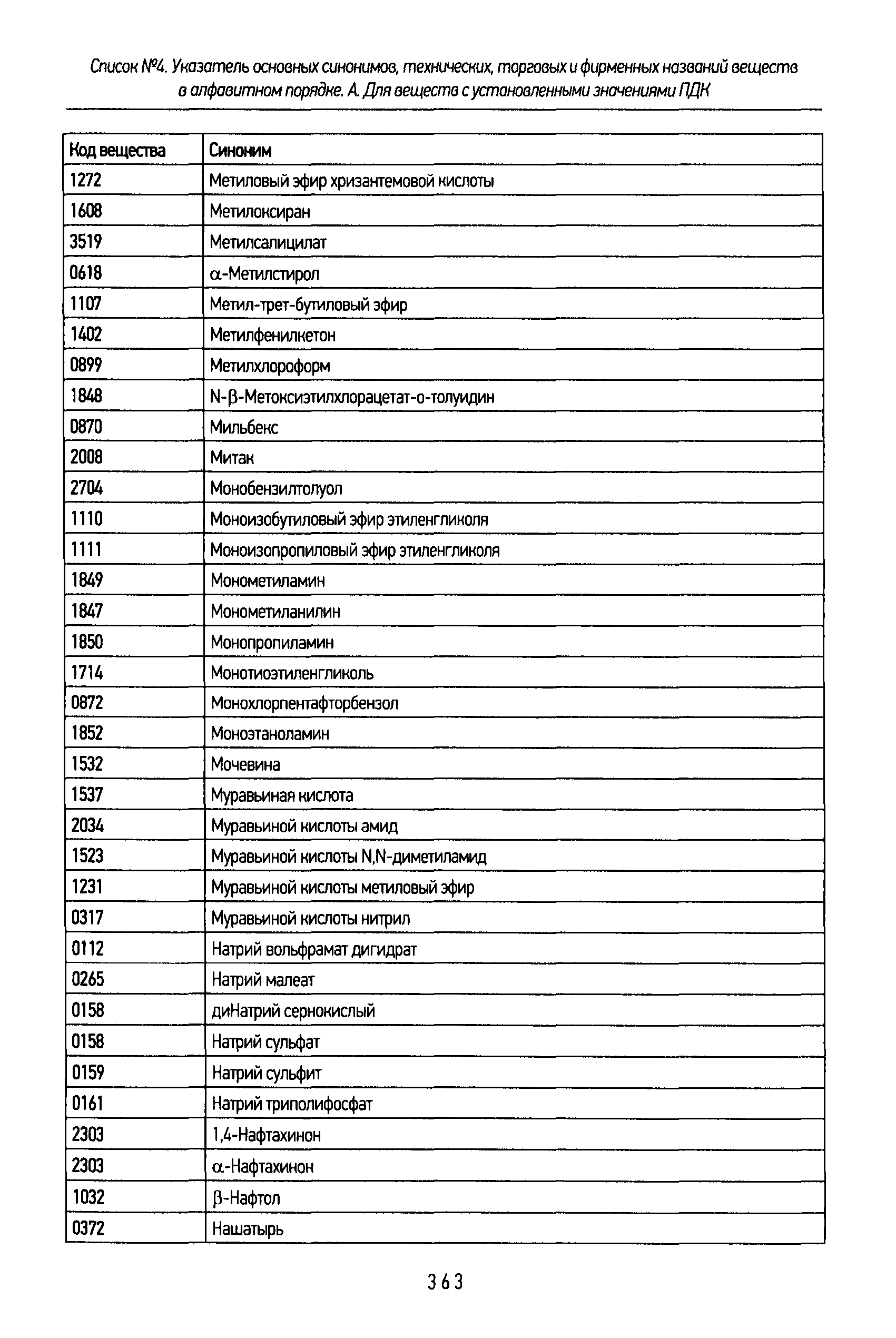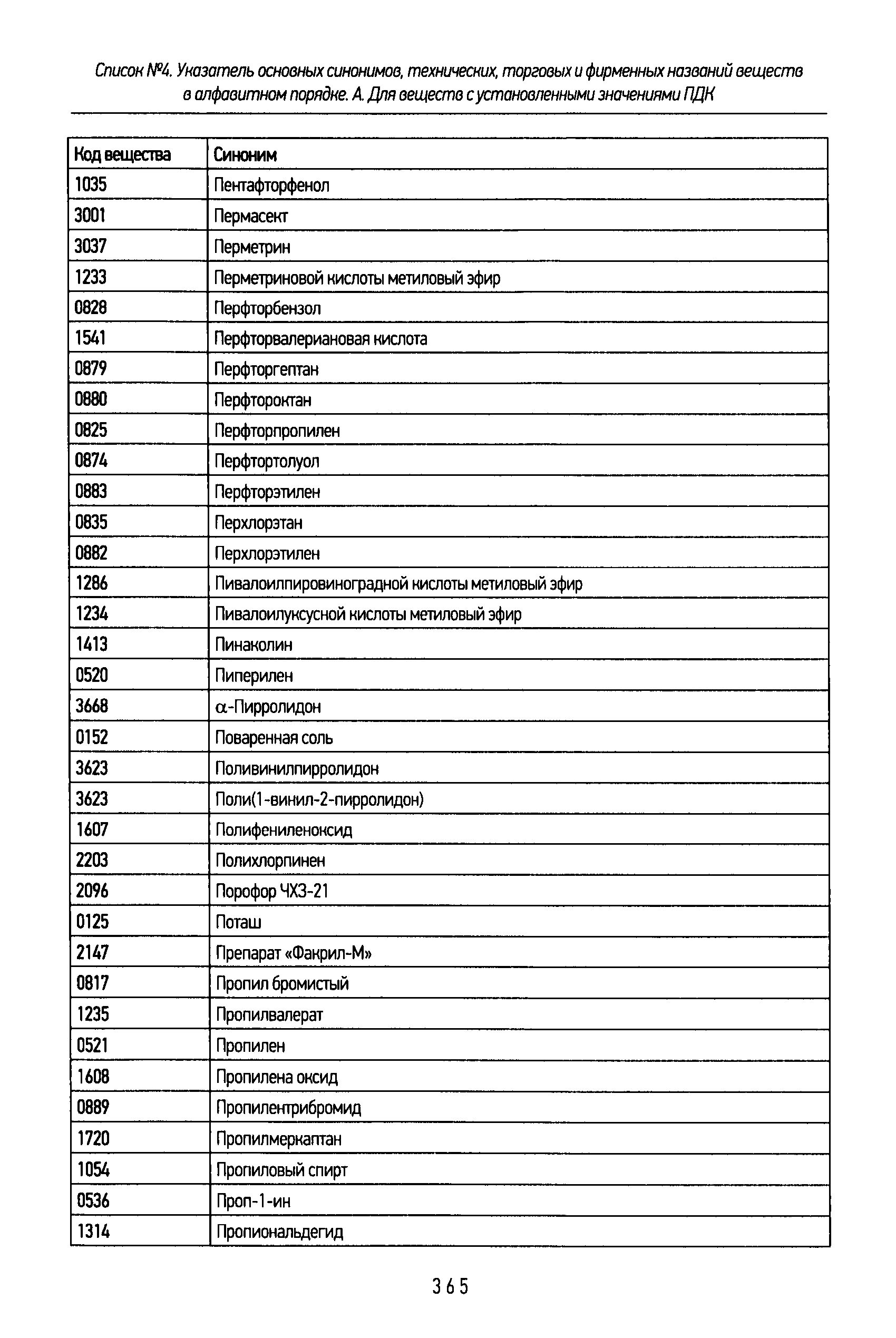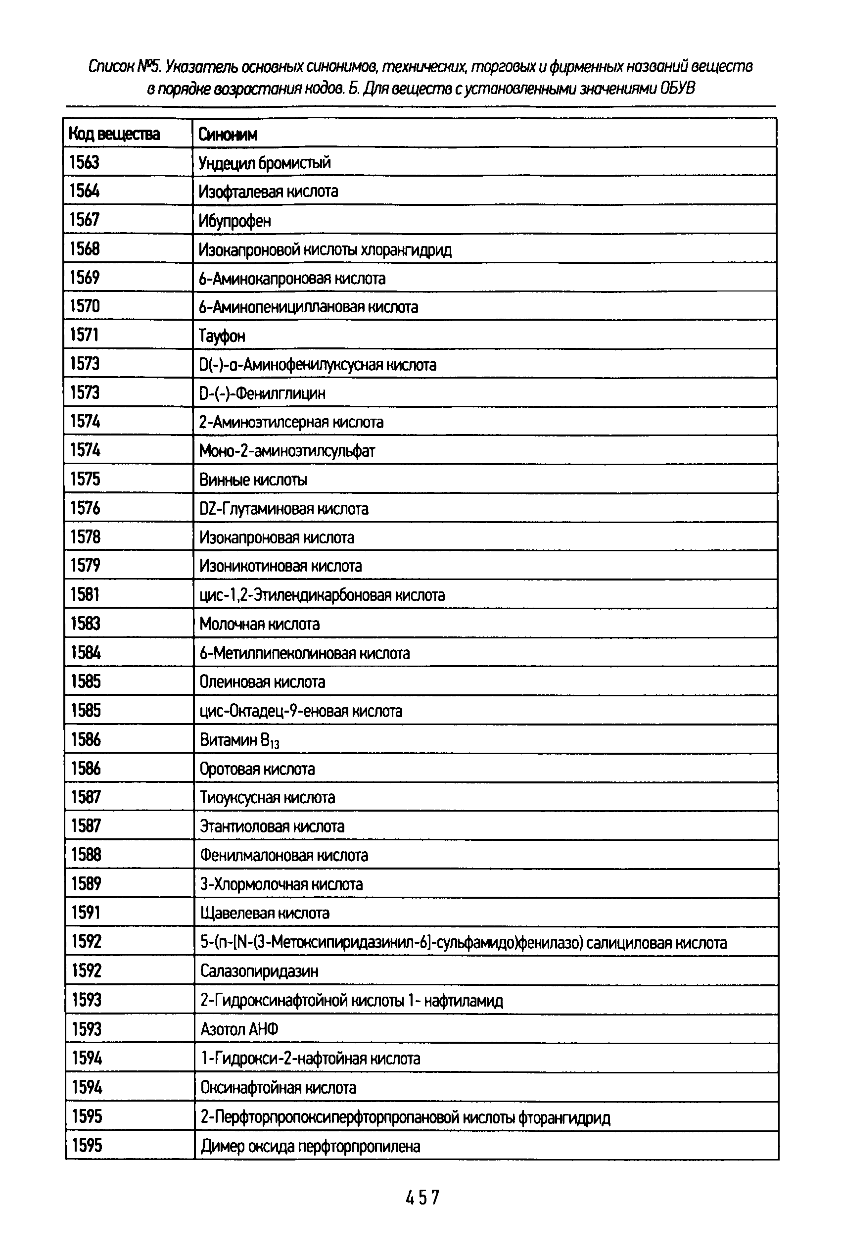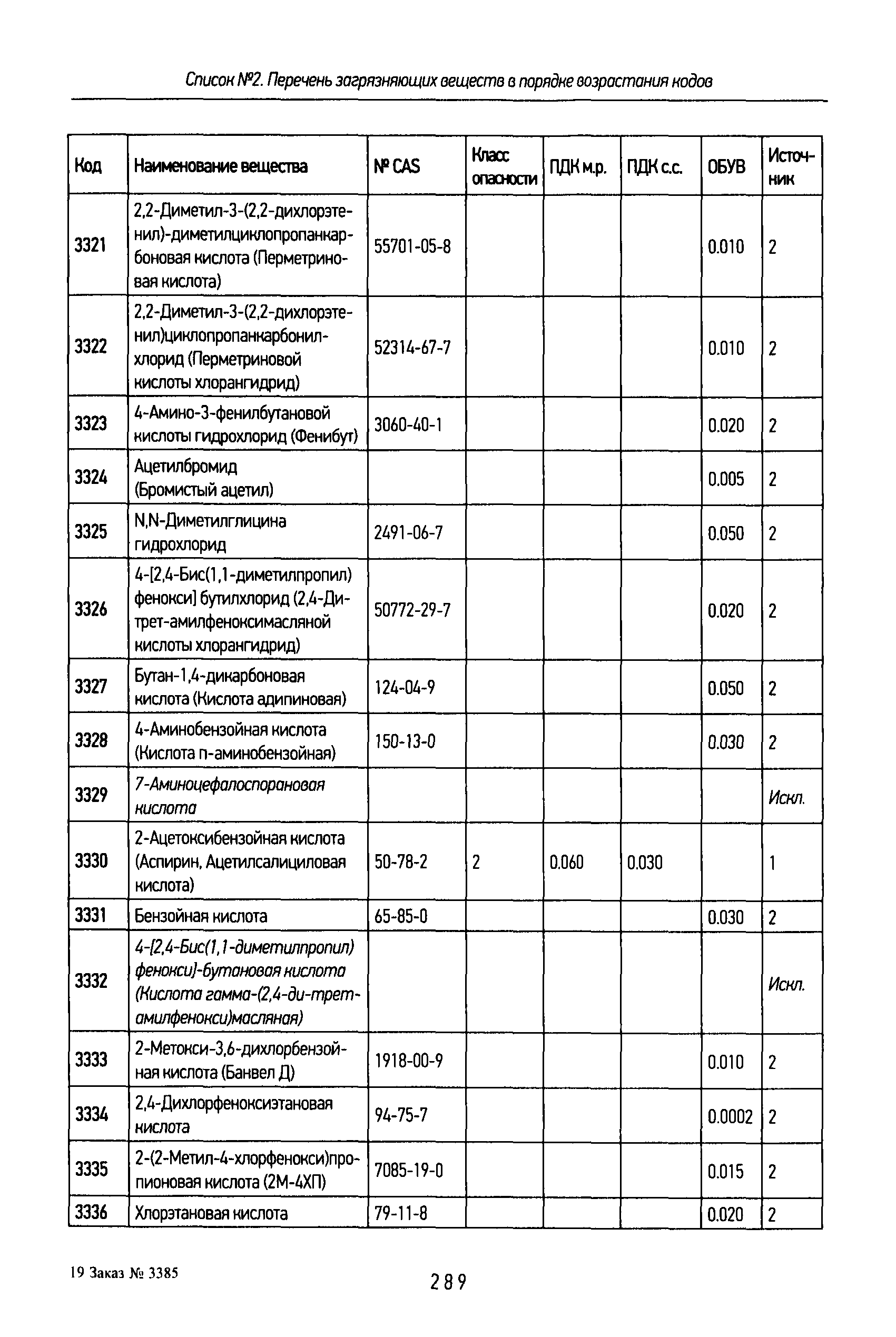 Перечень и коды веществ, загрязняющих атмосферный воздух (8 издание)| Статус: | заменен | | Название рус.: | Перечень и коды веществ, загрязняющих атмосферный воздух (8 издание) | | Дата добавления в базу: | 01.09.2013 | | Дата актуализации: | 01.01.2021 | | Область применения: | Перечень предназначен для территориальных и местных природоохранных органов, органов Роспотребнадзора и Ростехнадзора, предприятий и других организаций, в которых проводятся работы, связанные с охраной окружающей среды | | Оглавление: | 1. Введение 2. Список №1. Перечень загрязняющих веществ в алфавитном порядке 3. Список №2. Перечень загрязняющих веществ в порядке возрастания кодов 4. Список №3. Перечень ЛОС в порядке возрастания кодов 5. Список №4 Указатель основных синонимов, технических, торговых и фирменных названий веществ в алфавитном порядке A. Для веществ с установленными значениями ПДК B. Для веществ с установленными значениями ОБУВ 6. Список №5. Указатель основных синонимов, технических, торговых и фирменных названий веществ в порядке возрастания кодов A. Для веществ с установленными значениями ПДК B. Для веществ с установленными значениями ОБУВ | | Разработан: | НИИ Атмосфера Фирма Интеграл Научно-исследовательский институт экологии человека и окружающей среды им. А.И. Сысина