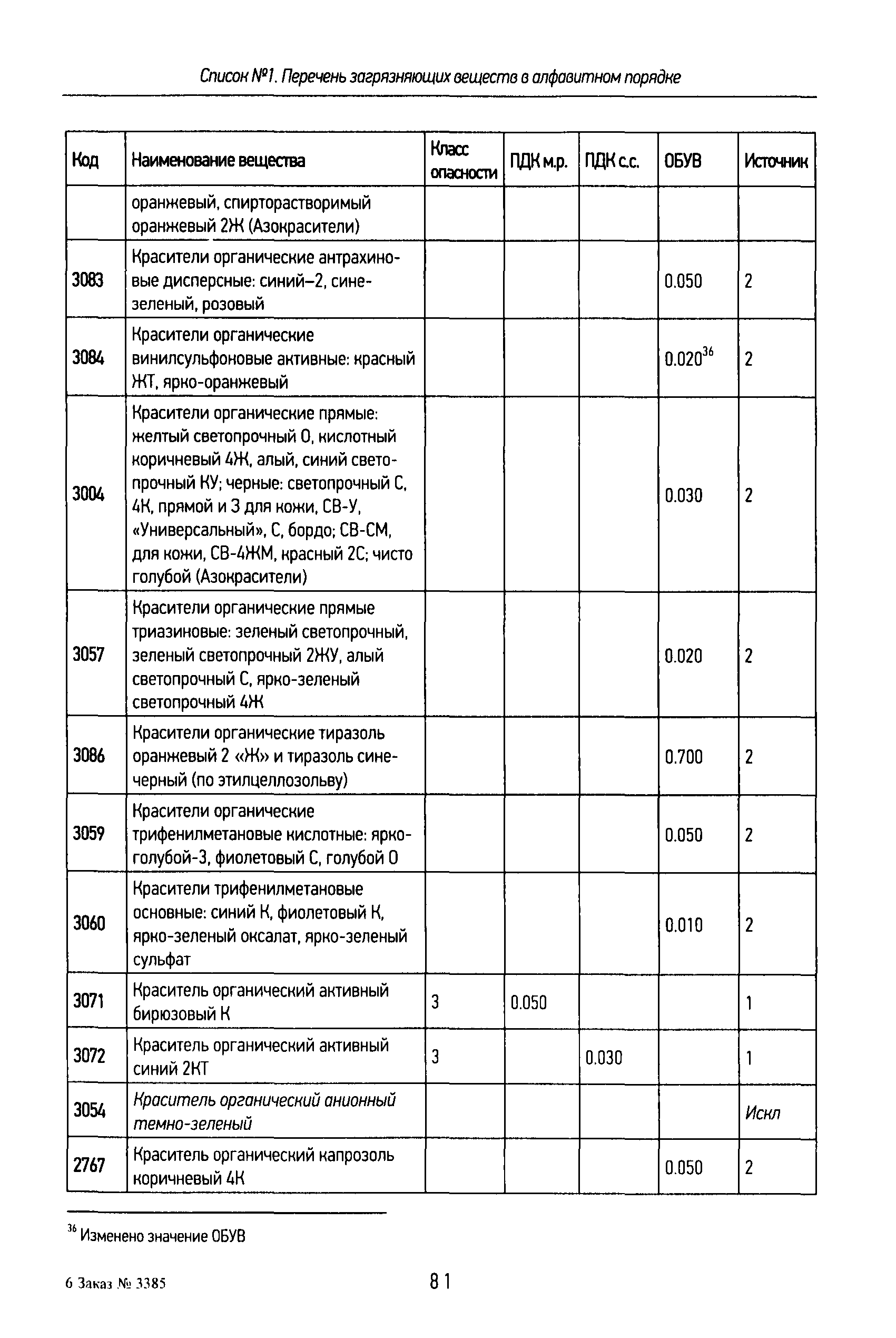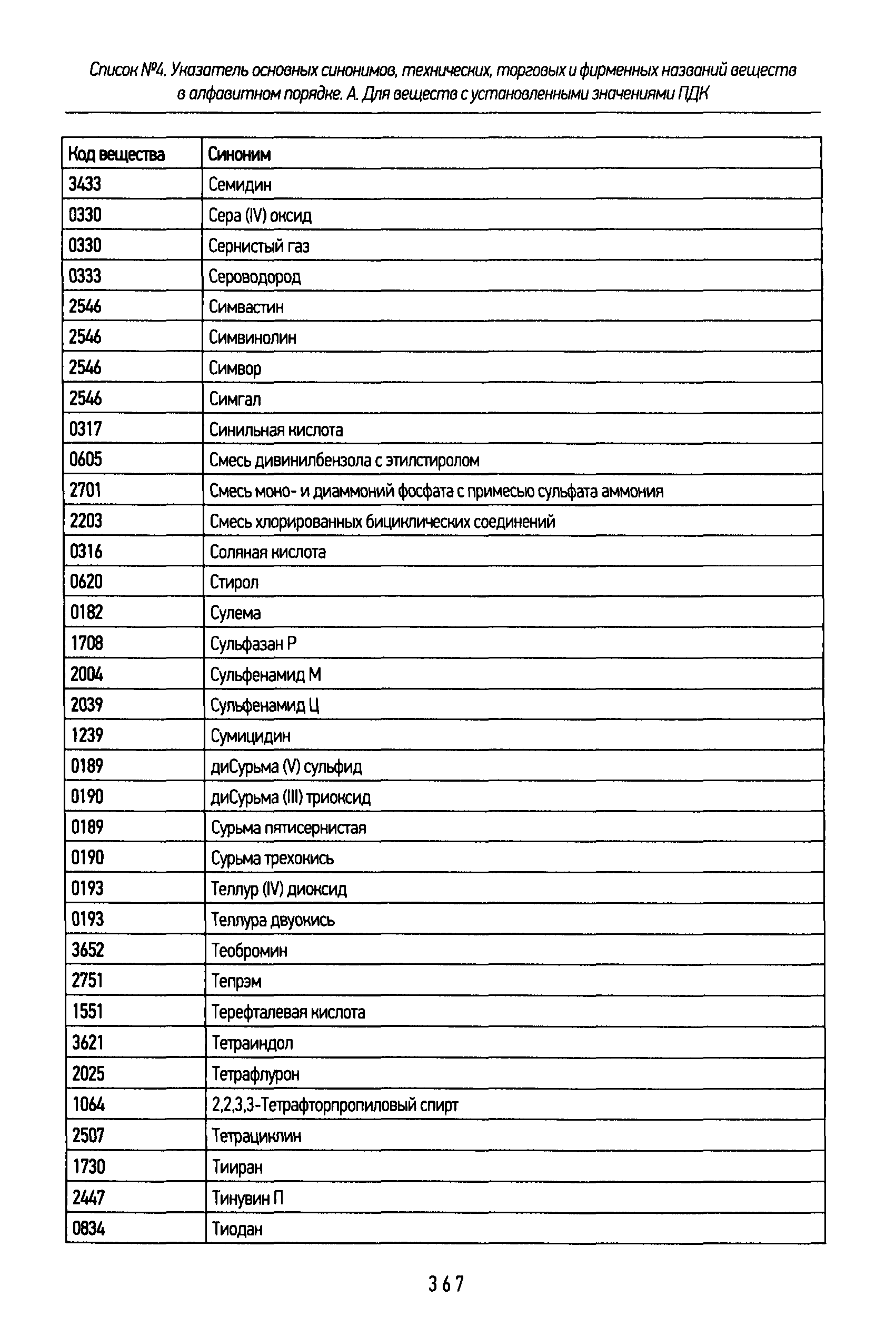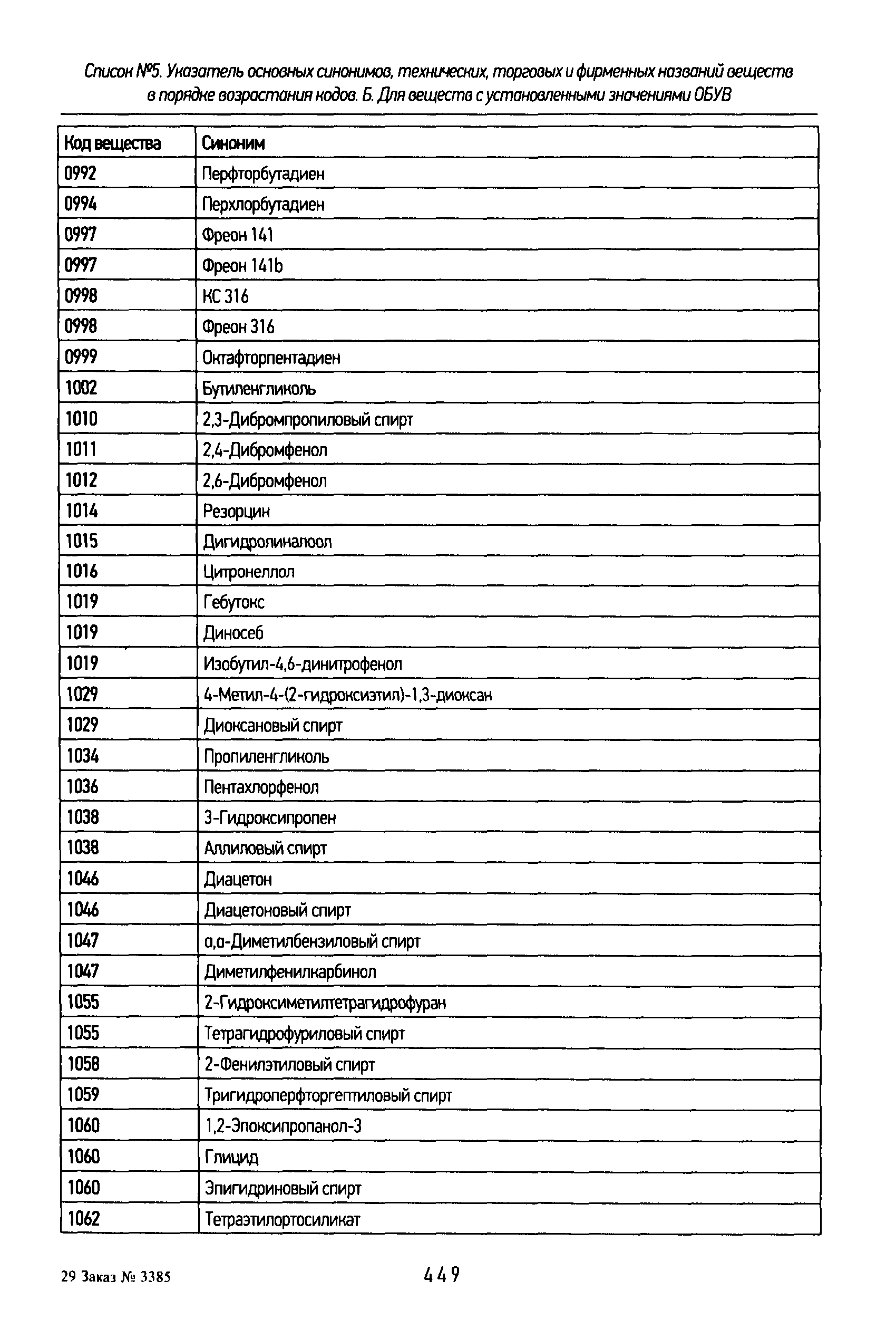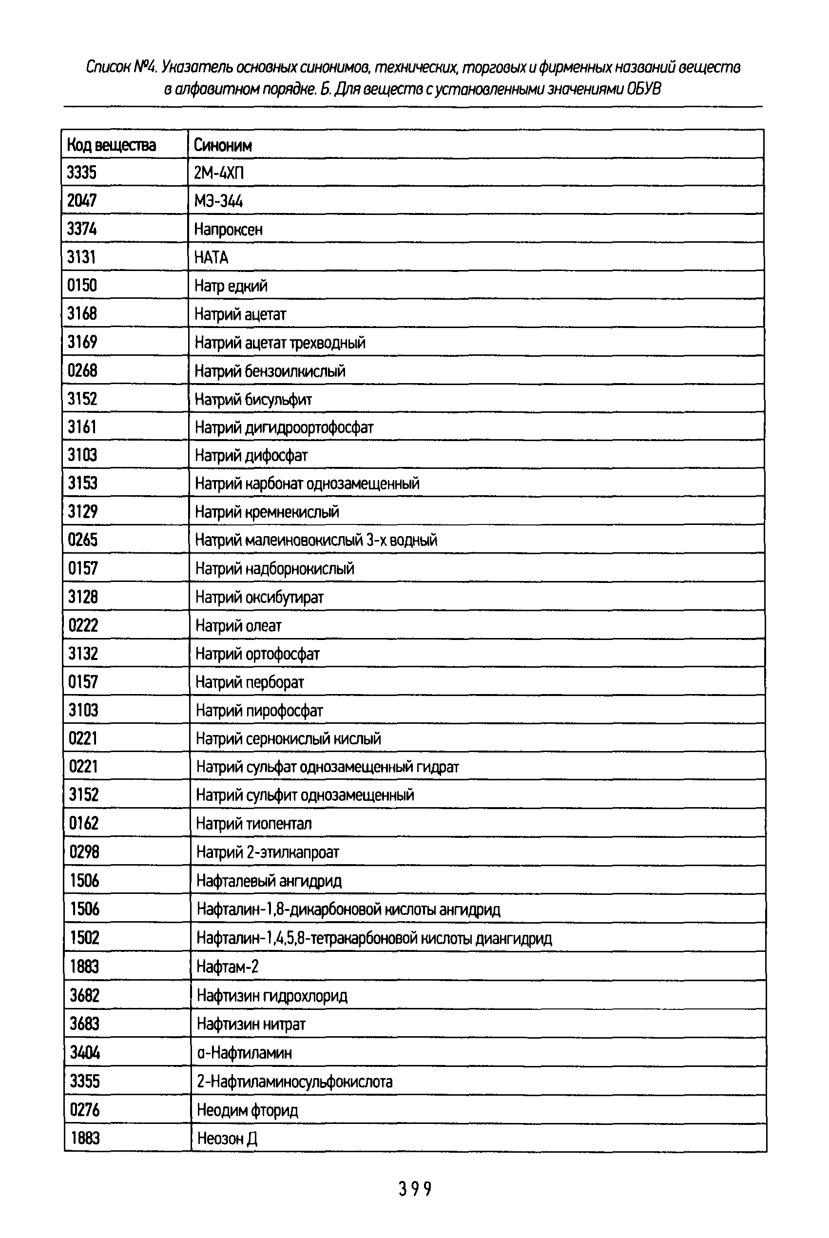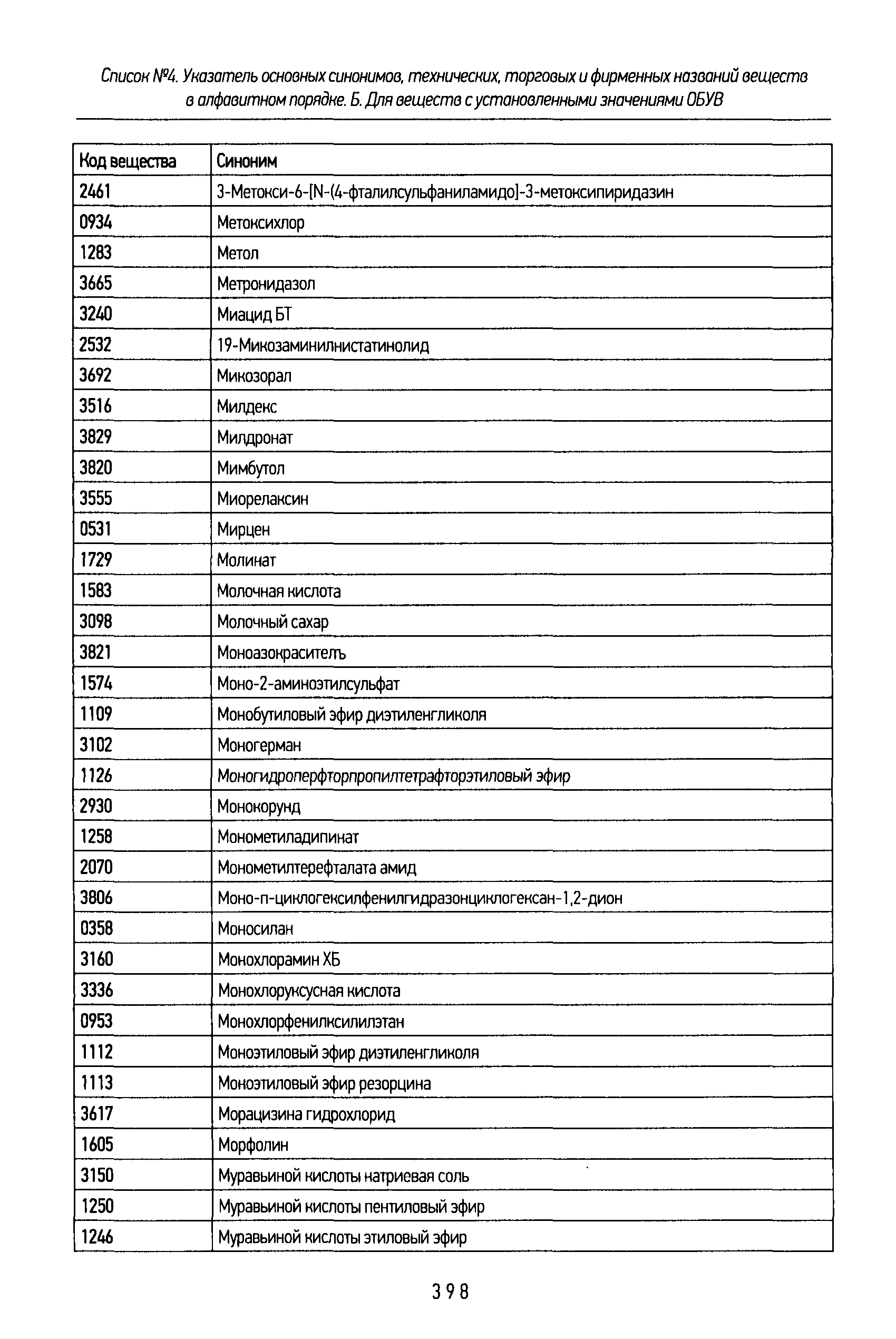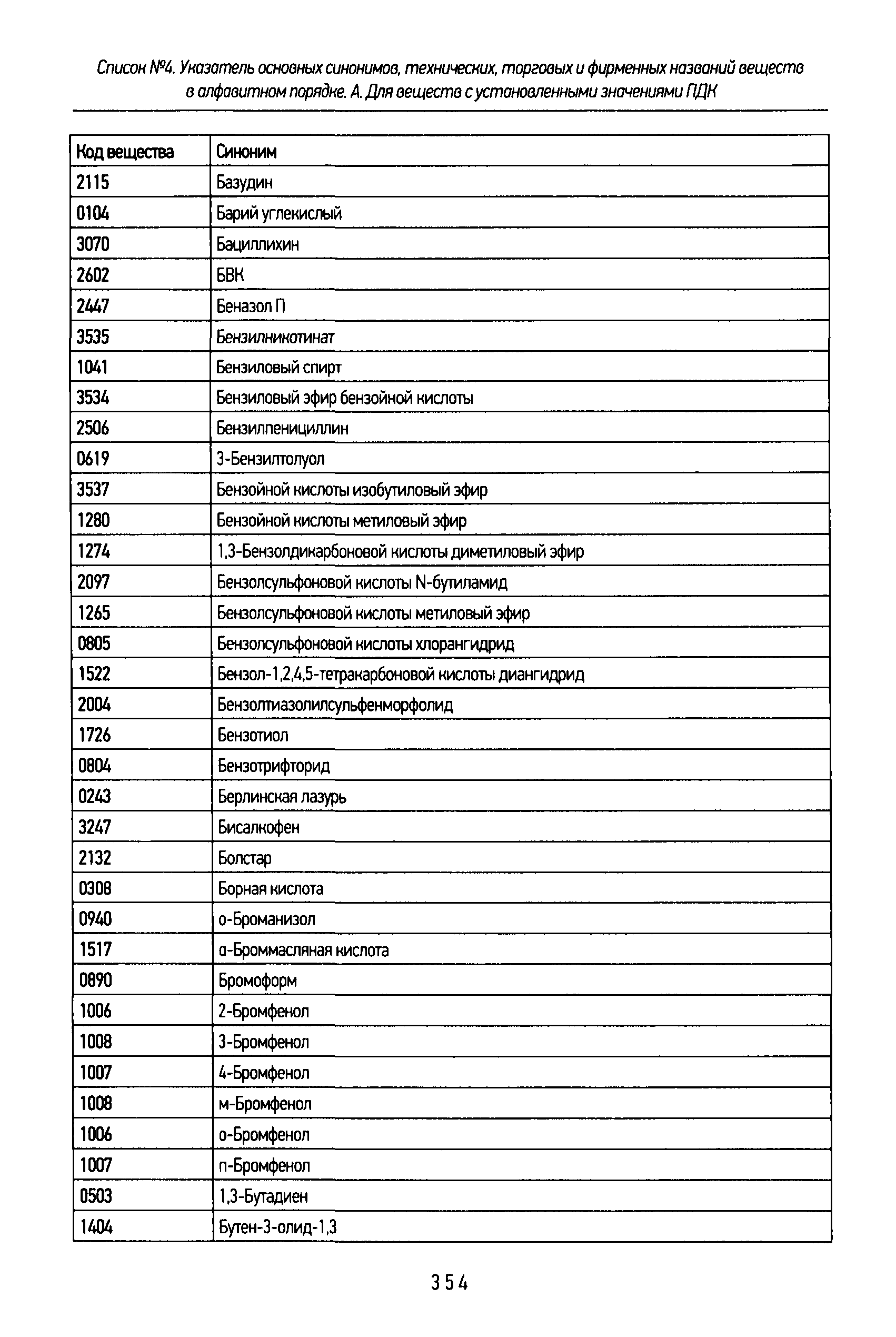 Перечень и коды веществ, загрязняющих атмосферный воздух (8 издание)| Статус: | заменен | | Название рус.: | Перечень и коды веществ, загрязняющих атмосферный воздух (8 издание) | | Дата добавления в базу: | 01.09.2013 | | Дата актуализации: | 01.01.2021 | | Область применения: | Перечень предназначен для территориальных и местных природоохранных органов, органов Роспотребнадзора и Ростехнадзора, предприятий и других организаций, в которых проводятся работы, связанные с охраной окружающей среды | | Оглавление: | 1. Введение 2. Список №1. Перечень загрязняющих веществ в алфавитном порядке 3. Список №2. Перечень загрязняющих веществ в порядке возрастания кодов 4. Список №3. Перечень ЛОС в порядке возрастания кодов 5. Список №4 Указатель основных синонимов, технических, торговых и фирменных названий веществ в алфавитном порядке A. Для веществ с установленными значениями ПДК B. Для веществ с установленными значениями ОБУВ 6. Список №5. Указатель основных синонимов, технических, торговых и фирменных названий веществ в порядке возрастания кодов A. Для веществ с установленными значениями ПДК B. Для веществ с установленными значениями ОБУВ | | Разработан: | НИИ Атмосфера Фирма Интеграл Научно-исследовательский институт экологии человека и окружающей среды им. А.И. Сысина