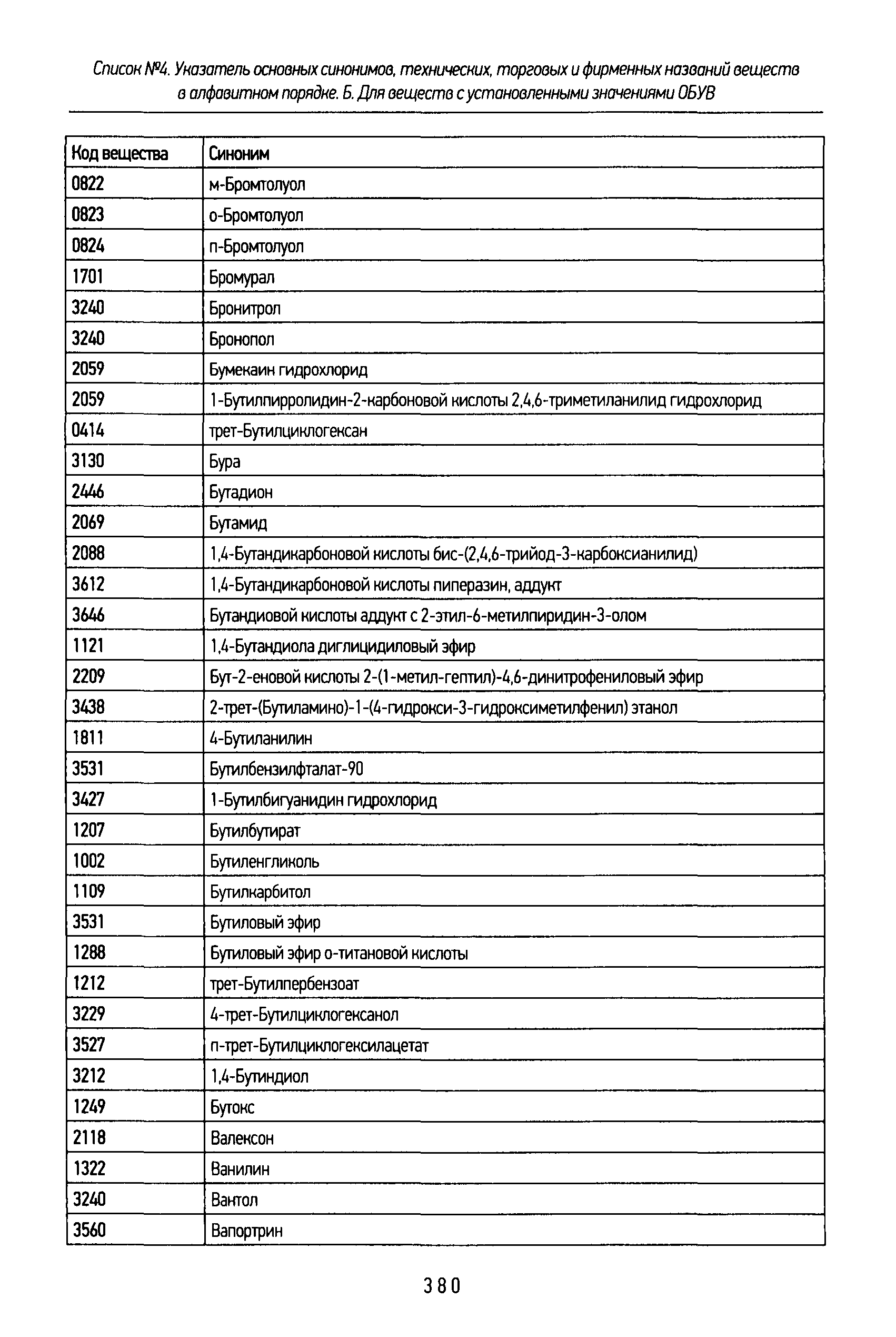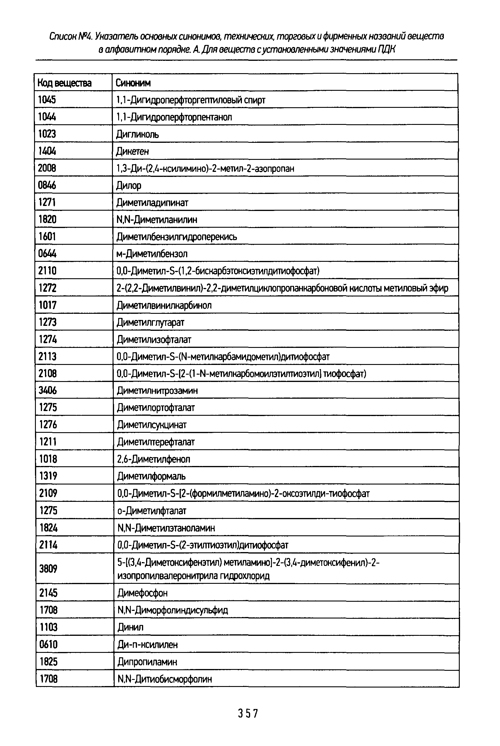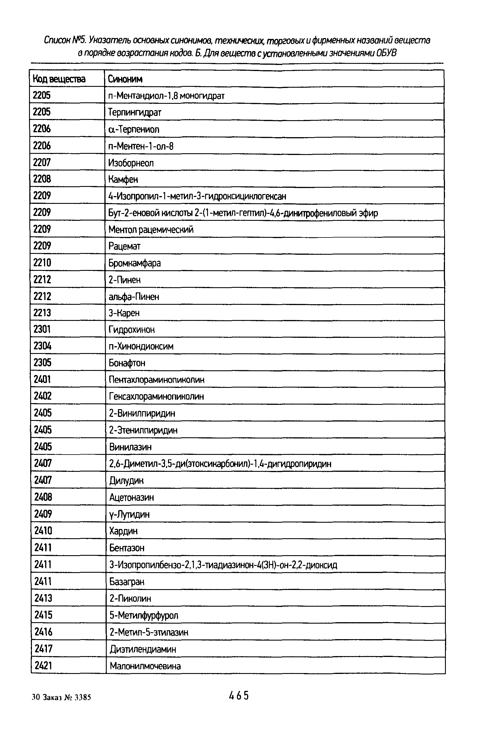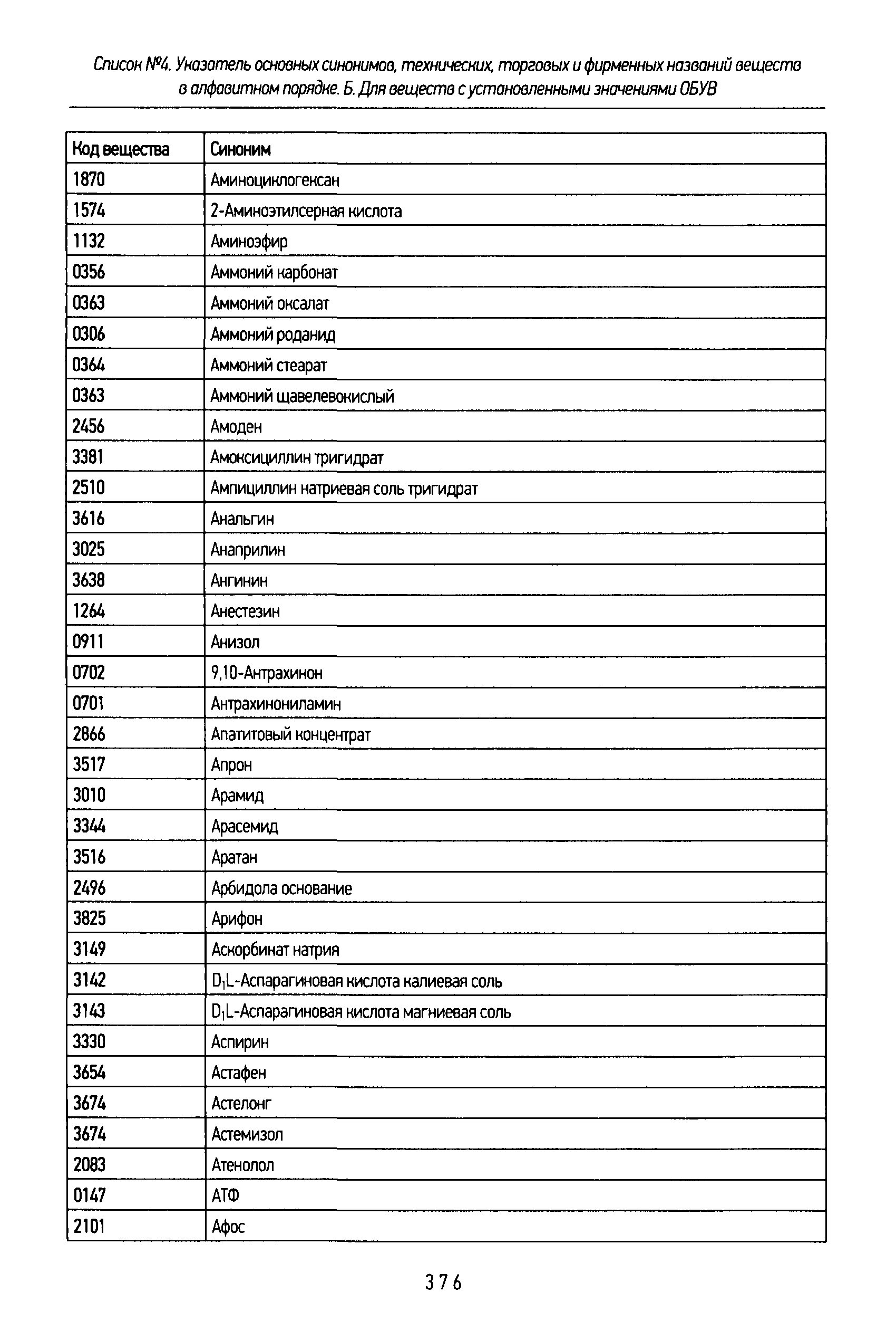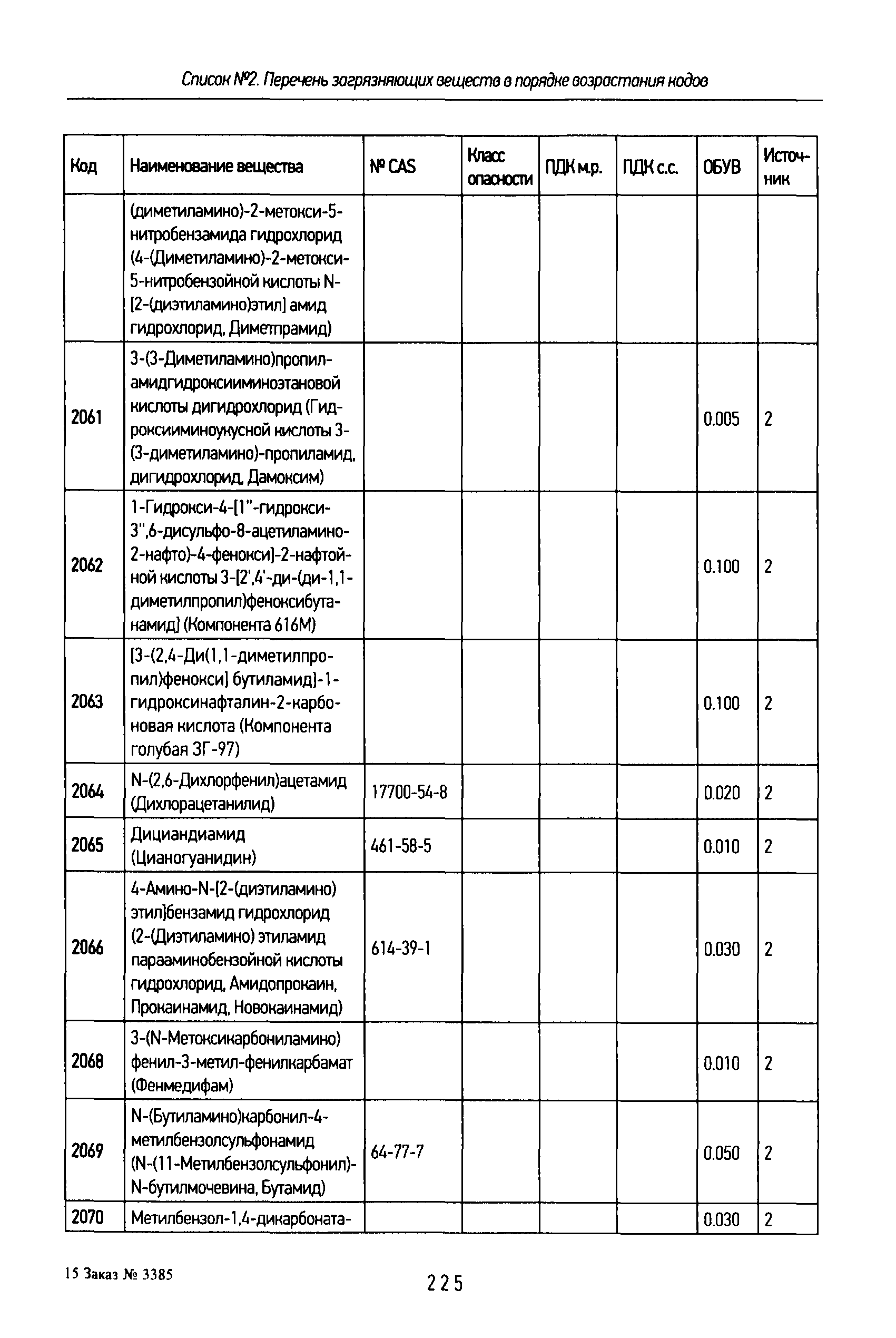 Перечень и коды веществ, загрязняющих атмосферный воздух (8 издание)| Статус: | заменен | | Название рус.: | Перечень и коды веществ, загрязняющих атмосферный воздух (8 издание) | | Дата добавления в базу: | 01.09.2013 | | Дата актуализации: | 01.01.2021 | | Область применения: | Перечень предназначен для территориальных и местных природоохранных органов, органов Роспотребнадзора и Ростехнадзора, предприятий и других организаций, в которых проводятся работы, связанные с охраной окружающей среды | | Оглавление: | 1. Введение 2. Список №1. Перечень загрязняющих веществ в алфавитном порядке 3. Список №2. Перечень загрязняющих веществ в порядке возрастания кодов 4. Список №3. Перечень ЛОС в порядке возрастания кодов 5. Список №4 Указатель основных синонимов, технических, торговых и фирменных названий веществ в алфавитном порядке A. Для веществ с установленными значениями ПДК B. Для веществ с установленными значениями ОБУВ 6. Список №5. Указатель основных синонимов, технических, торговых и фирменных названий веществ в порядке возрастания кодов A. Для веществ с установленными значениями ПДК B. Для веществ с установленными значениями ОБУВ | | Разработан: | НИИ Атмосфера Фирма Интеграл Научно-исследовательский институт экологии человека и окружающей среды им. А.И. Сысина
