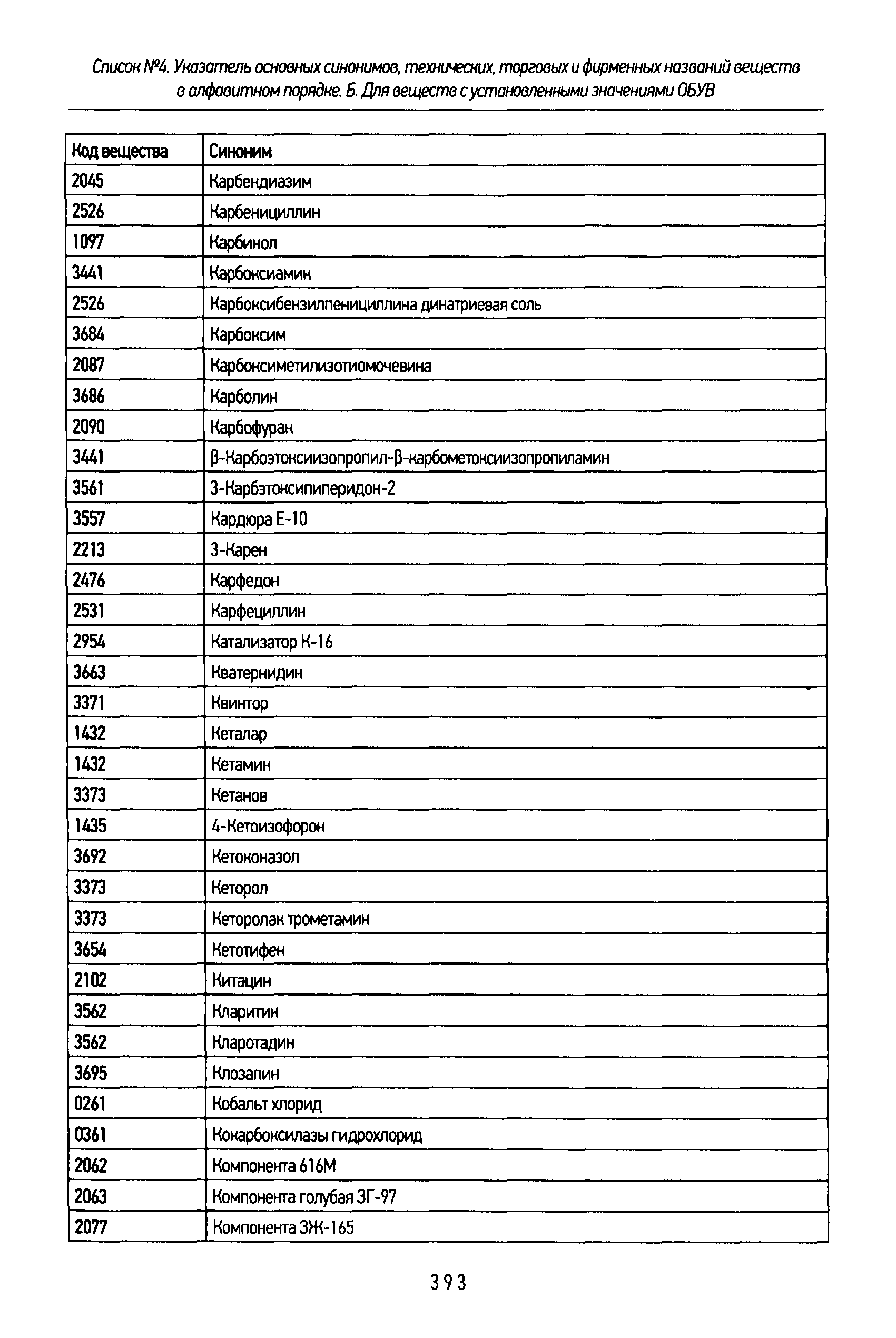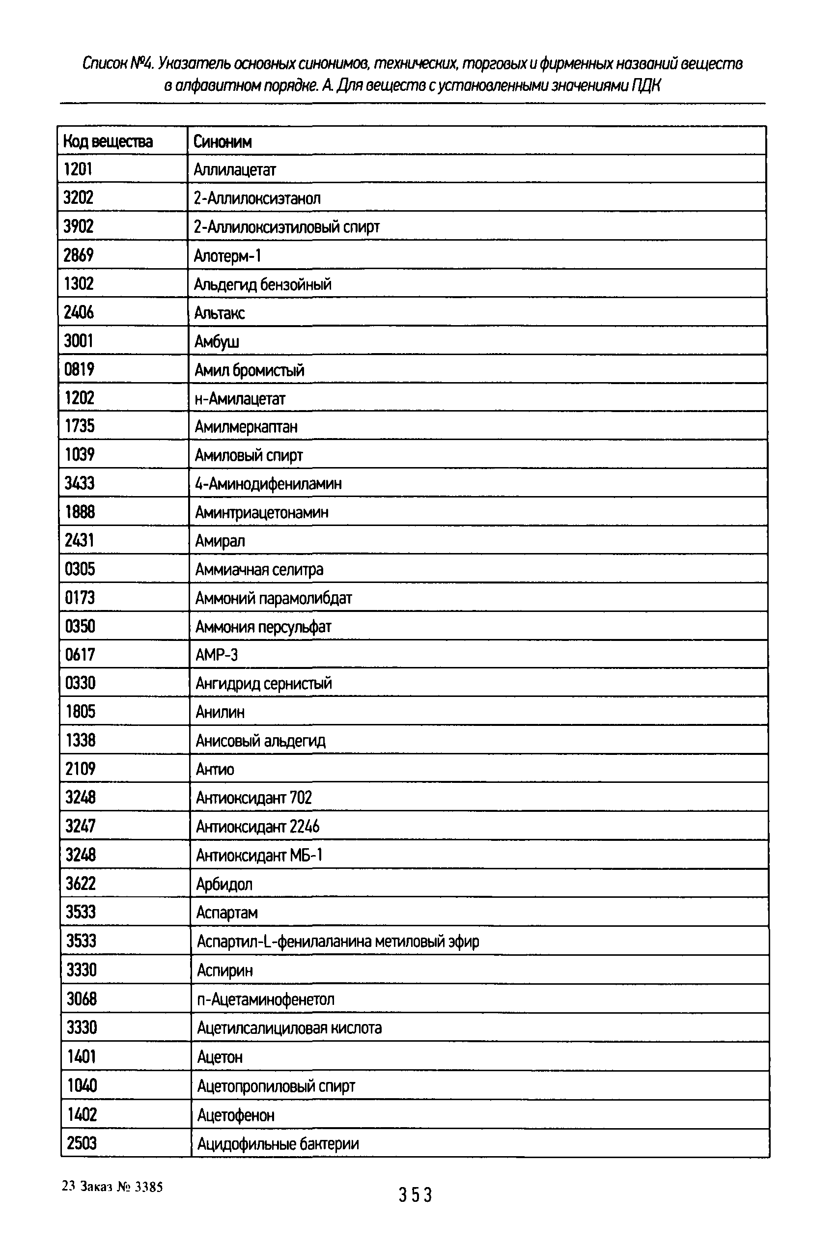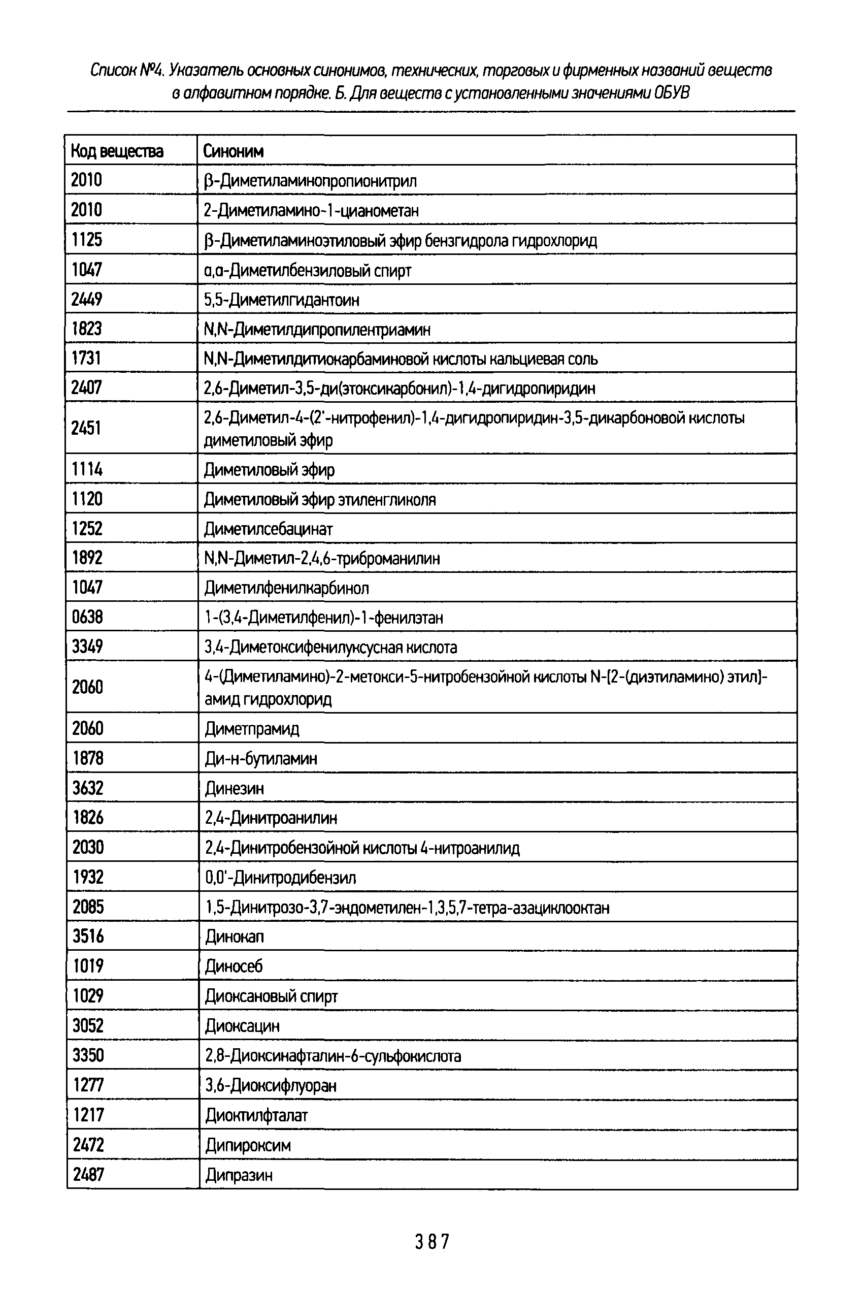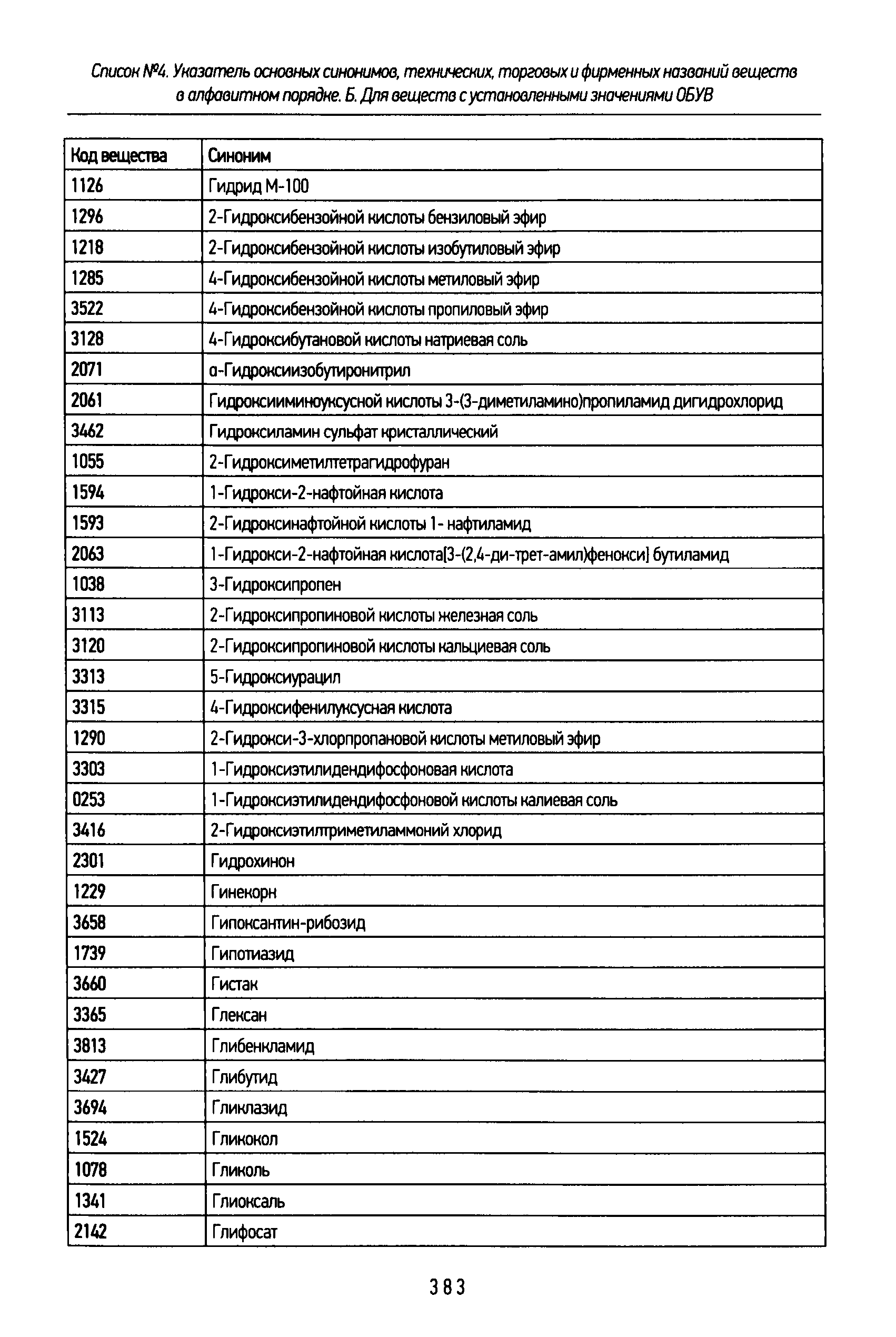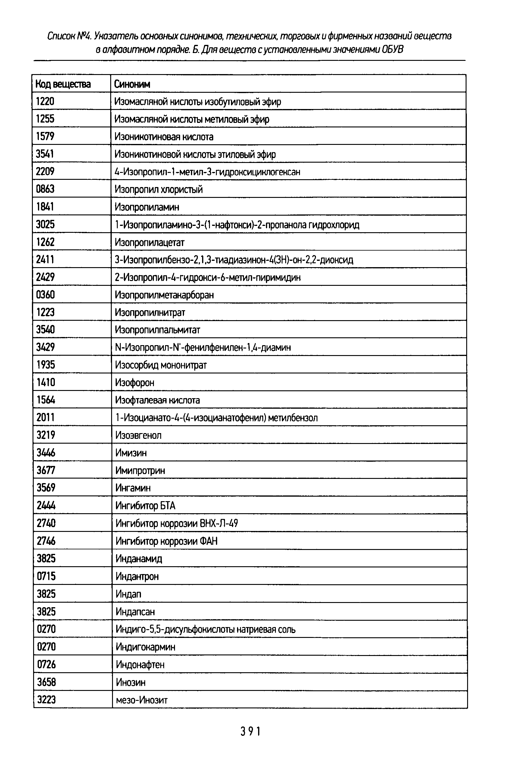 Перечень и коды веществ, загрязняющих атмосферный воздух (8 издание)| Статус: | заменен | | Название рус.: | Перечень и коды веществ, загрязняющих атмосферный воздух (8 издание) | | Дата добавления в базу: | 01.09.2013 | | Дата актуализации: | 01.01.2021 | | Область применения: | Перечень предназначен для территориальных и местных природоохранных органов, органов Роспотребнадзора и Ростехнадзора, предприятий и других организаций, в которых проводятся работы, связанные с охраной окружающей среды | | Оглавление: | 1. Введение 2. Список №1. Перечень загрязняющих веществ в алфавитном порядке 3. Список №2. Перечень загрязняющих веществ в порядке возрастания кодов 4. Список №3. Перечень ЛОС в порядке возрастания кодов 5. Список №4 Указатель основных синонимов, технических, торговых и фирменных названий веществ в алфавитном порядке A. Для веществ с установленными значениями ПДК B. Для веществ с установленными значениями ОБУВ 6. Список №5. Указатель основных синонимов, технических, торговых и фирменных названий веществ в порядке возрастания кодов A. Для веществ с установленными значениями ПДК B. Для веществ с установленными значениями ОБУВ | | Разработан: | НИИ Атмосфера Фирма Интеграл Научно-исследовательский институт экологии человека и окружающей среды им. А.И. Сысина