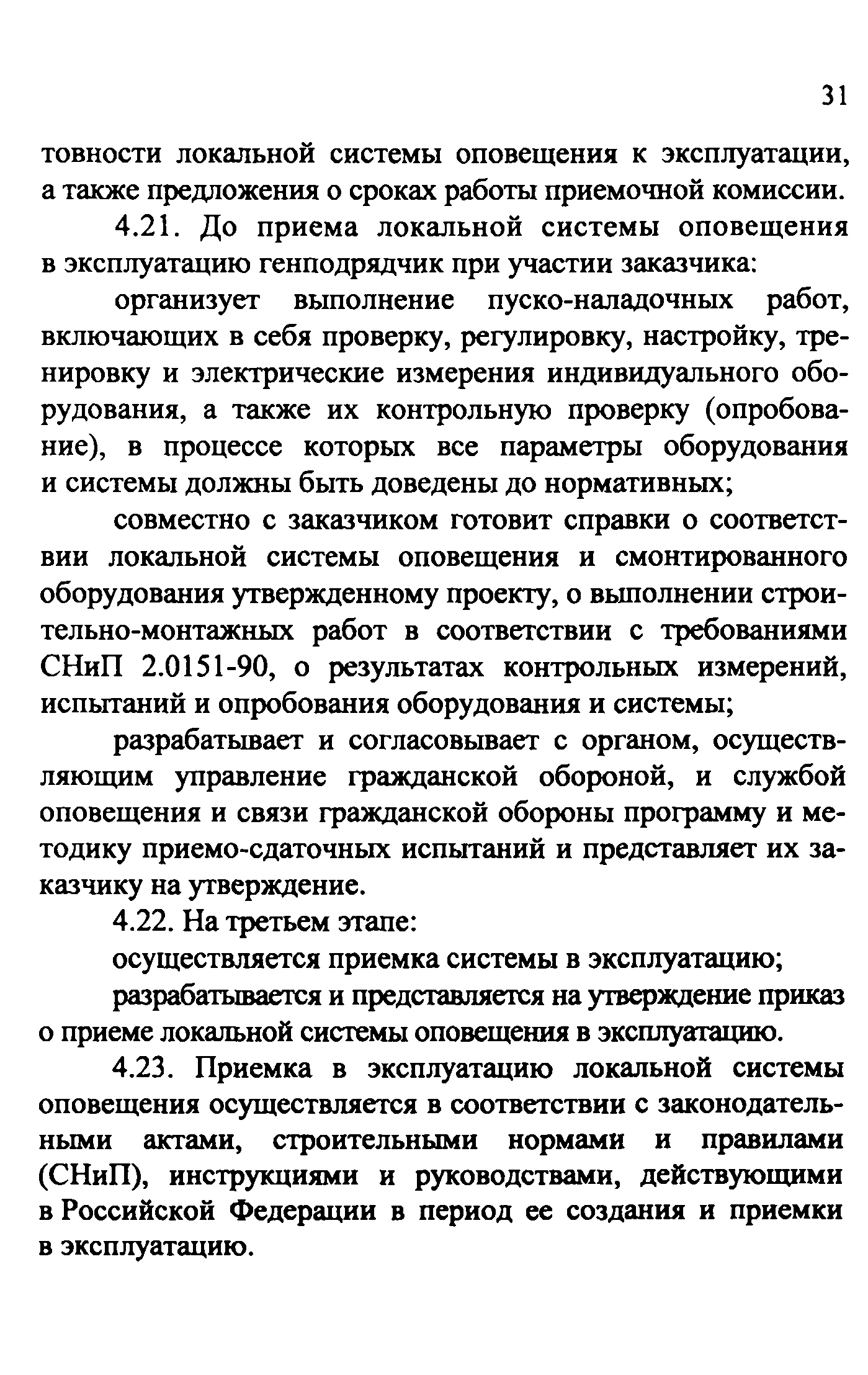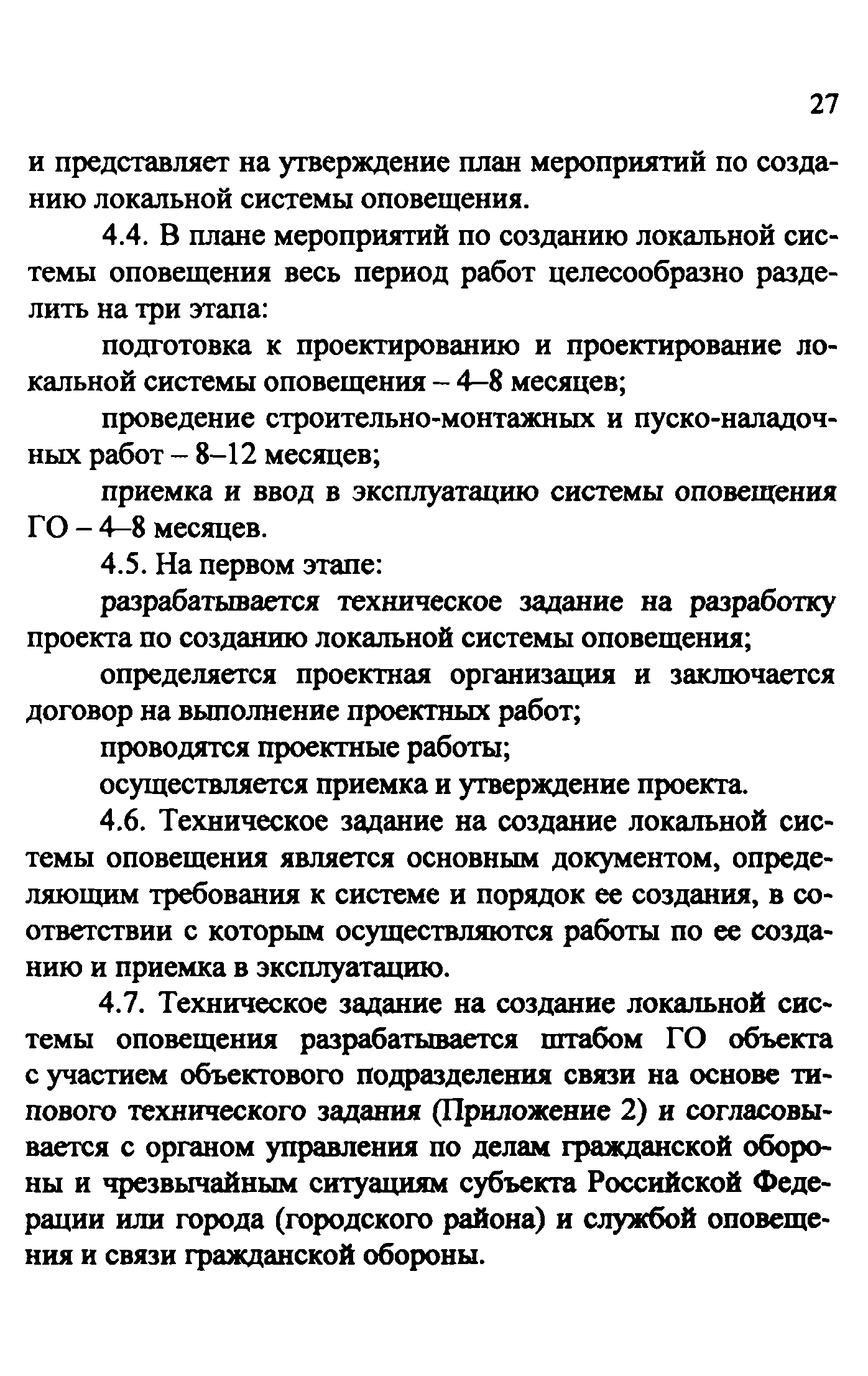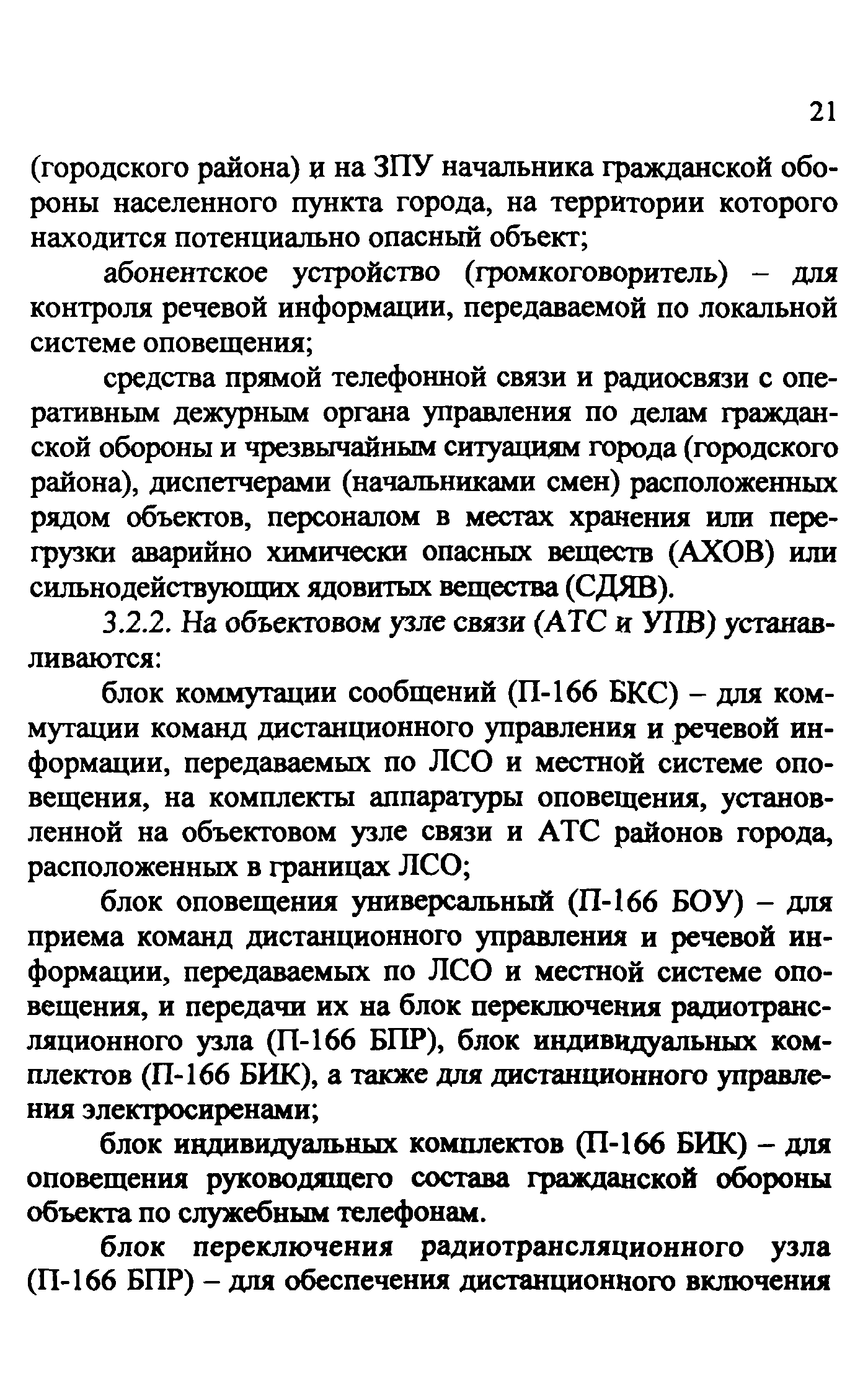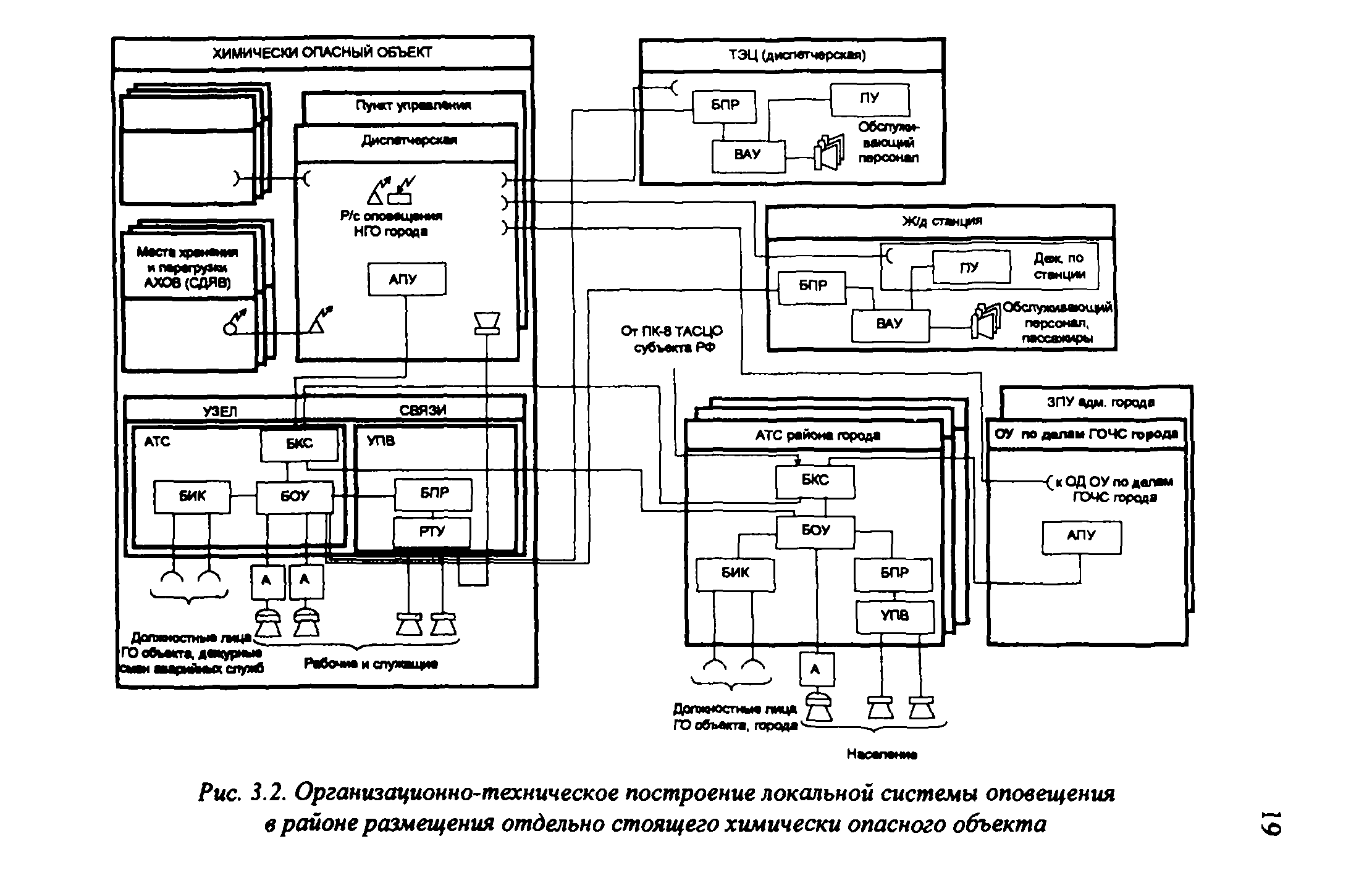 | Оглавление: | Перечень сокращений Условные обозначения 1. Общие положения 2. Назначение, организация и порядок задействования локальных систем оповещения 3. Организационно-техническое построение локальных систем оповещения в районах размещения потенциально опасных объектов 4. Организация и основные этапы создания локальных систем оповещения 5. Организация эксплуатационно-технического обслуживания технических средств локальных систем оповещения 6. Порядок финансирования работ по созданию и поддержанию в готовности локальных систем оповещения Приложение 1. Основные тактико-технические характеристики комплекса технических средств оповещения П-166 Приложение 2. Техническое задание на создание (реконструкцию) локальной системы оповещения Приложение 3. Паспорт локальной системы оповещения потенциально опасного объекта |