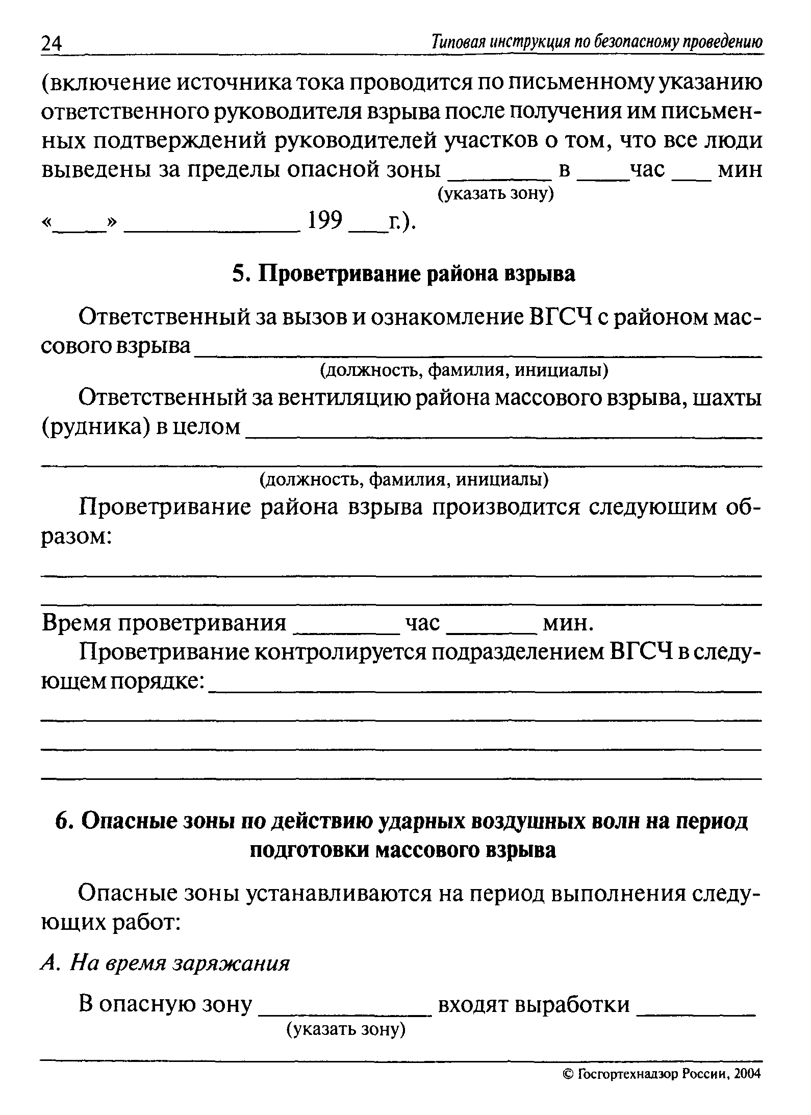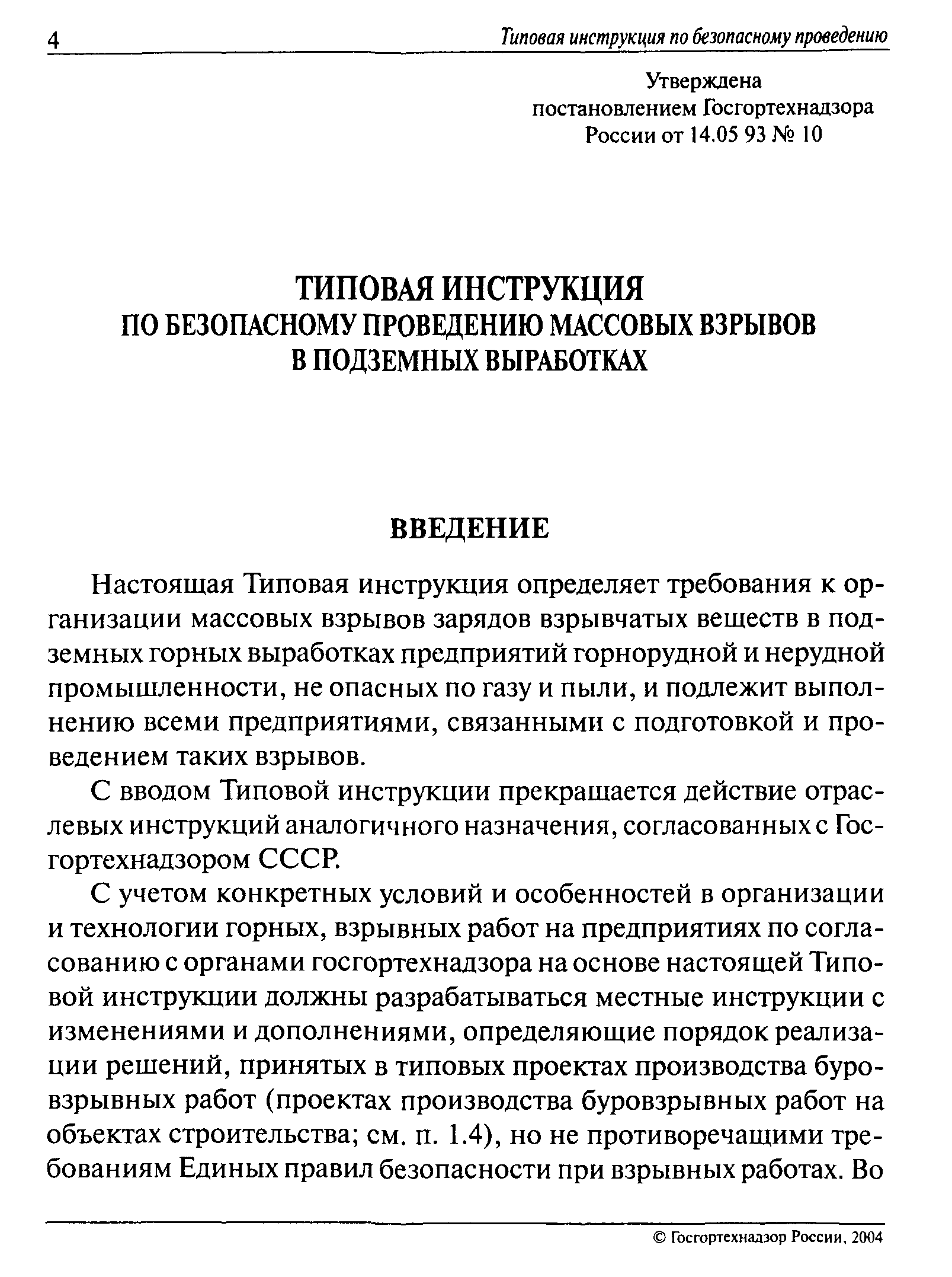 | Название рус.: | Типовая инструкция по безопасному проведению массовых взрывов в подземных выработках |