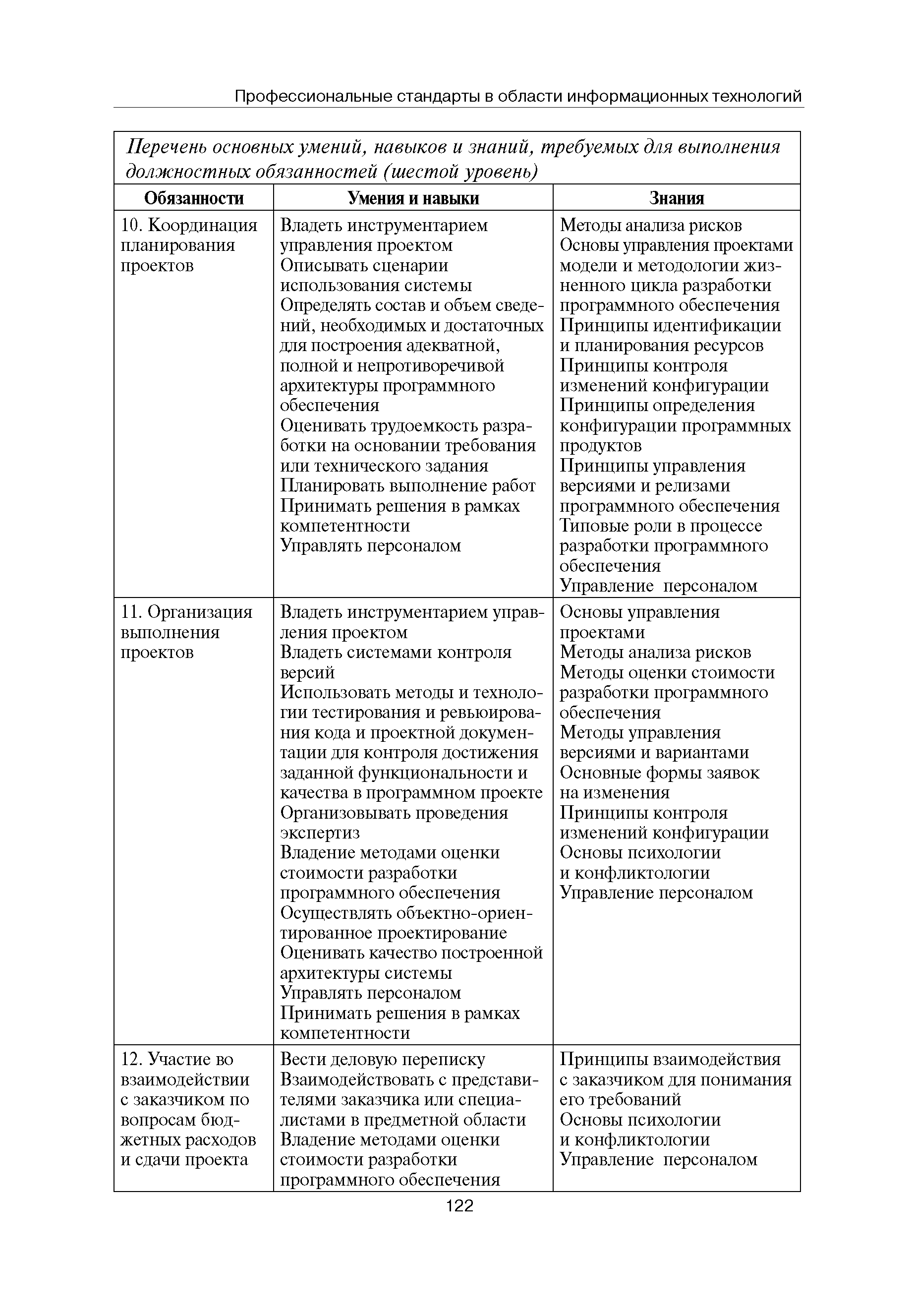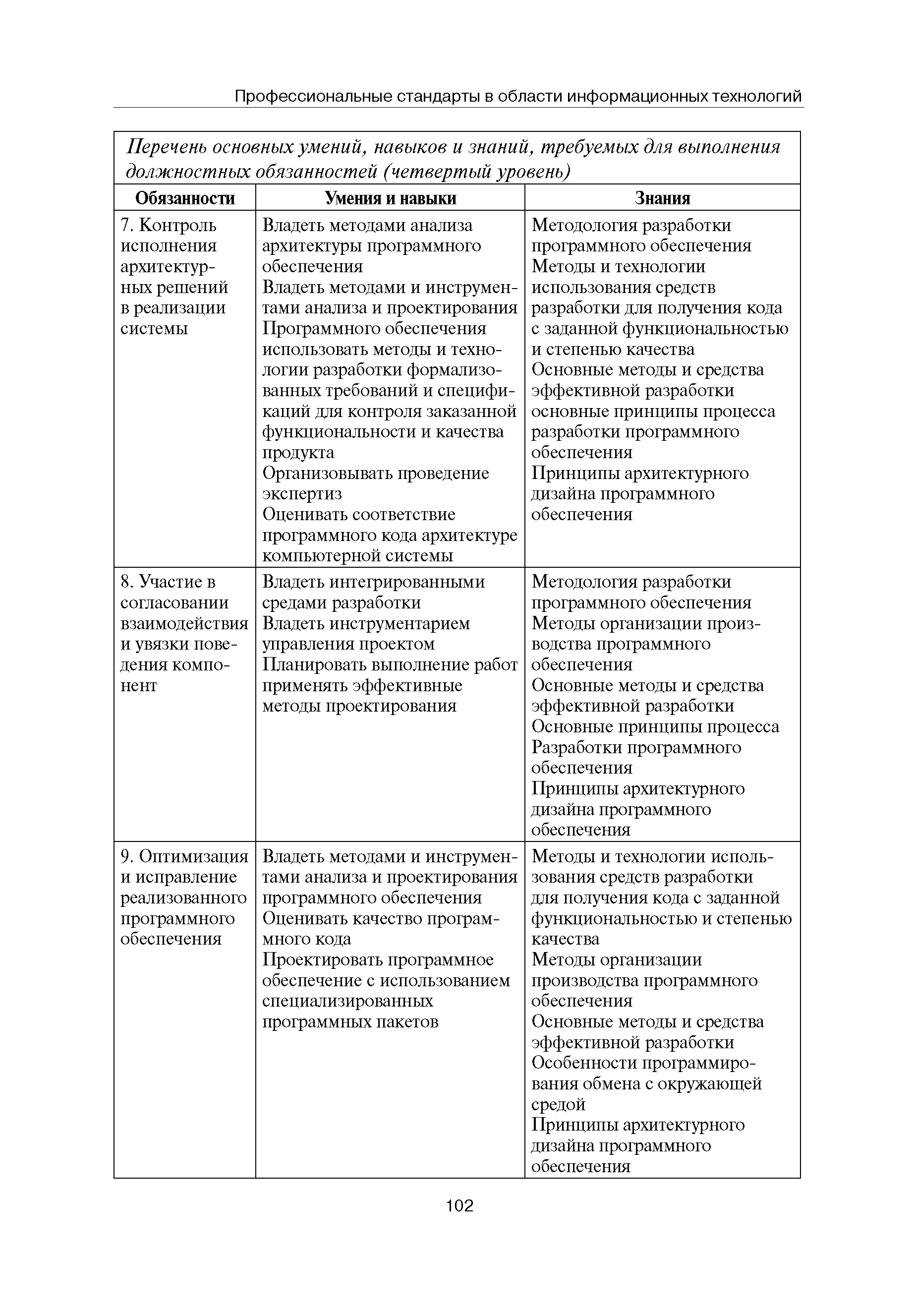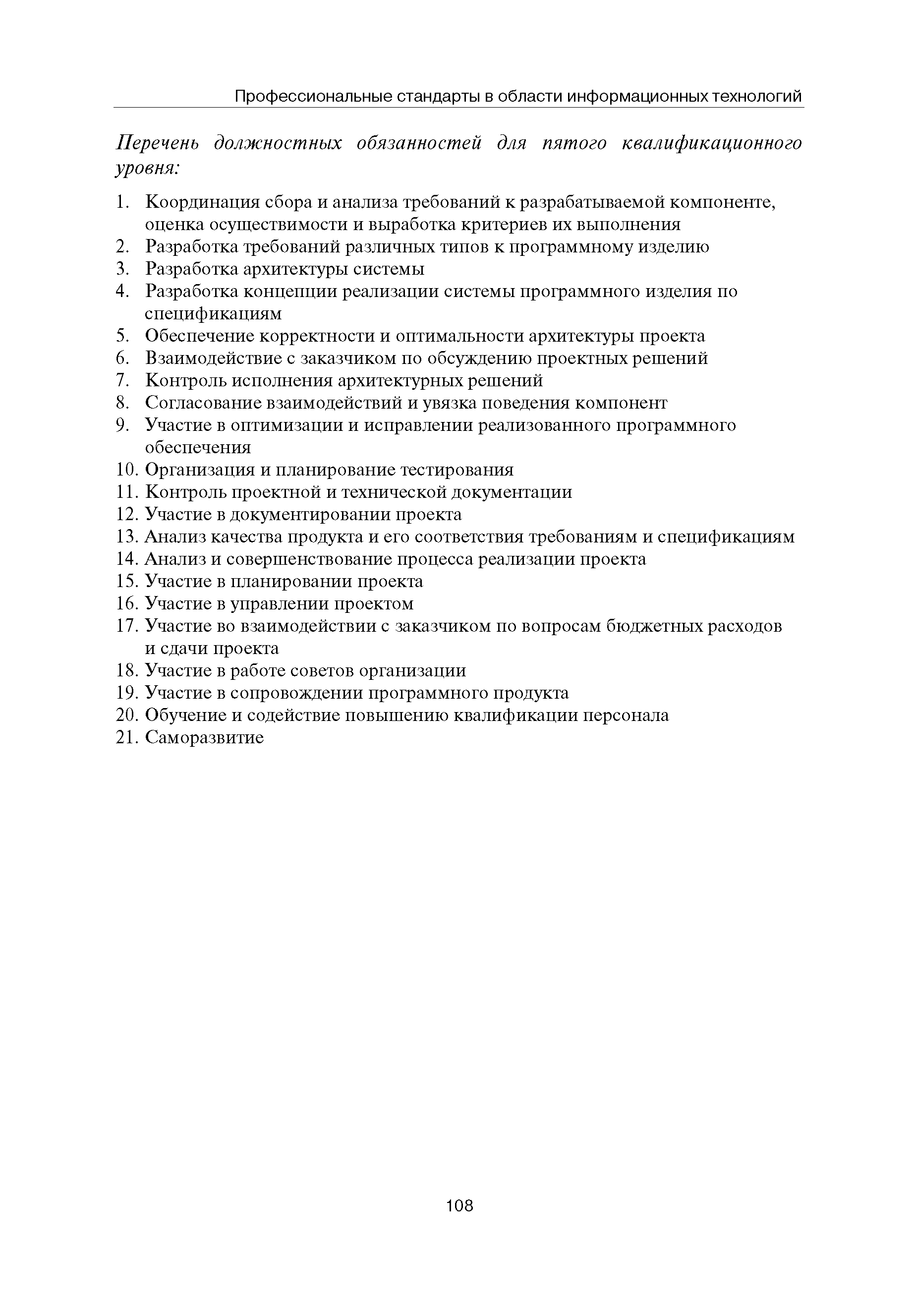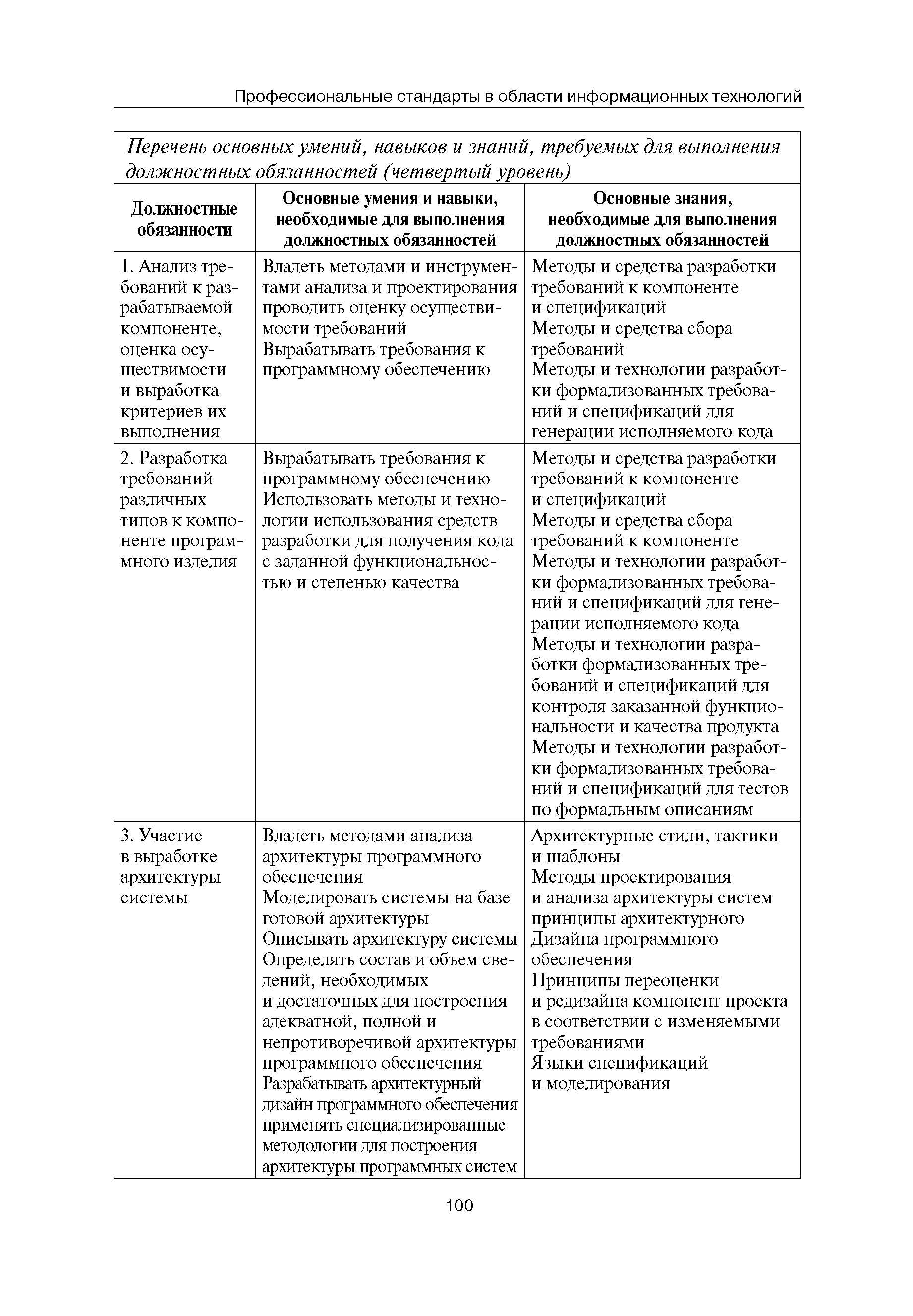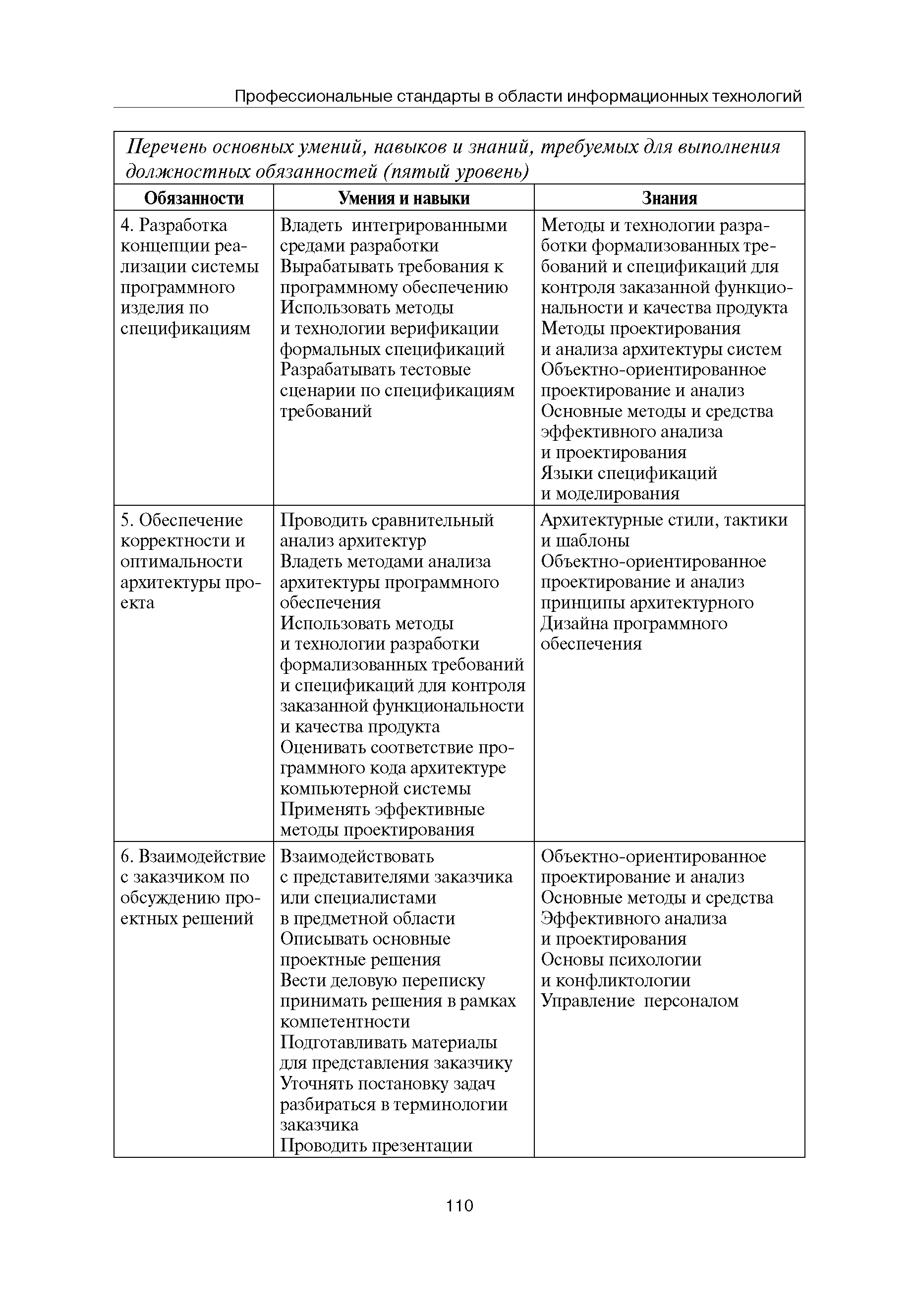 Квалификационные требования (профессиональный стандарт) в области информационных технологий "СИСТЕМНЫЙ АРХИТЕКТОР"| Статус: | действует | | Название рус.: | Квалификационные требования (профессиональный стандарт) в области информационных технологий "СИСТЕМНЫЙ АРХИТЕКТОР" | | Дата добавления в базу: | 01.09.2013 | | Дата актуализации: | 01.01.2021 | | Область применения: | Стандарт устанавливает требования к профессиональным компетенциям по квалификационным уровням. Рекомендован для применения в организациях всех форм собственности; для организаций крупного, среднего и малого бизнеса. Стандарт применяется в качестве нормативного документа, применяемого для подбора и расстановки кадров; планирования и нормирования труда; развития систем управления персоналом; для решения задач по профессиональной ориентации; для создания системы добровольной сертификации персонала и оценки уровня компетентности работников; для разработки образовательных стандартов и программ обучения в соответствии с требованиями работодателей; для проведения профессиональной подготовки, переподготовки и повышения квалификации персонала. | | Оглавление: | Авторский коллектив Область применения Указание сегмента сферы труда Профессиональный стандарт по профессии "Системный архитектор" Третий квалификационный уровень Перечень должностных обязанностей для третьего квалификационного уровня Перечень основных умений, навыков и знаний, требуемых для выполнения должностных обязанностей (3 уровень) Четвертый квалификационный уровень Перечень должностных обязанностей для четвертого квалификационного уровня Перечень основных умений, навыков и знаний, требуемых для выполнения должностных обязанностей (4 уровень) Пятый квалификационный уровень Перечень должностных обязанностей для пятого квалификационного уровня Перечень основных умений, навыков и знаний, требуемых для выполнения должностных обязанностей (5 уровень) Шестой квалификационный уровень Перечень должностных обязанностей для шестого квалификационного уровня Перечень основных умений, навыков и знаний, требуемых для выполнения должностных обязанностей (6 уровень) | | Разработан: | Аналитический центр REAL-IT Государственный университет - Высшая школа экономики Motorola ИСП РАН Группа компаний IBS Лаборатория Касперского 1С