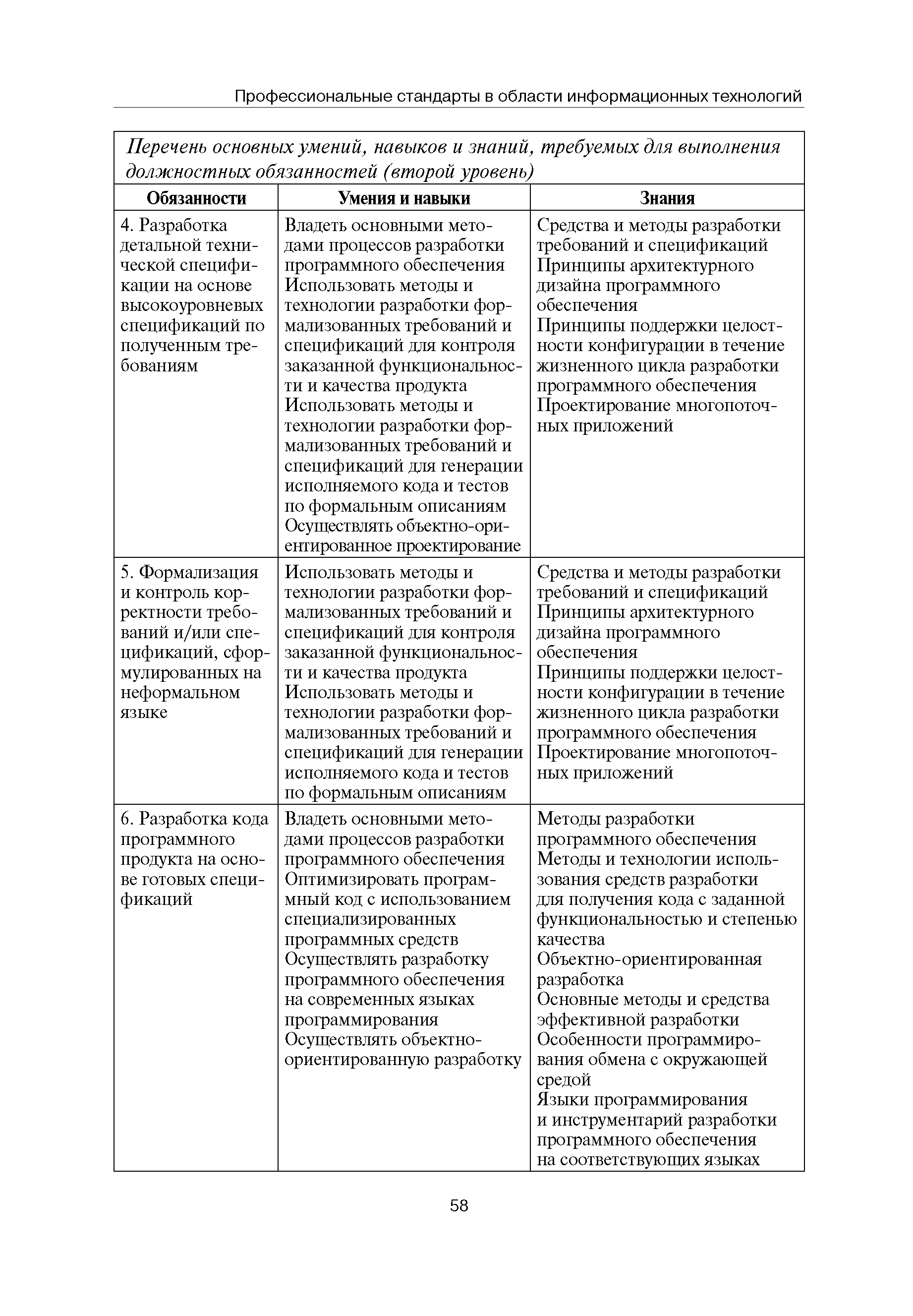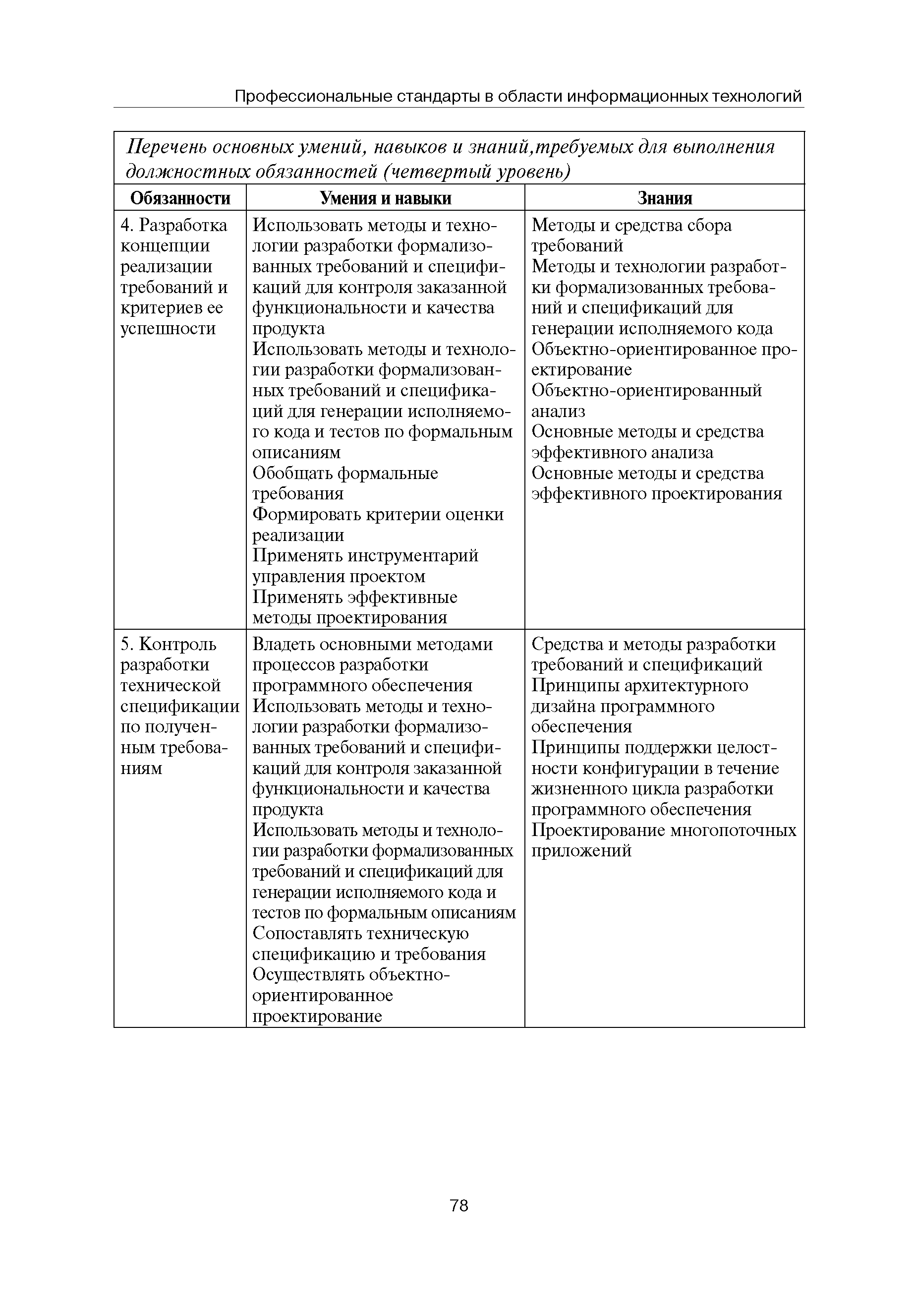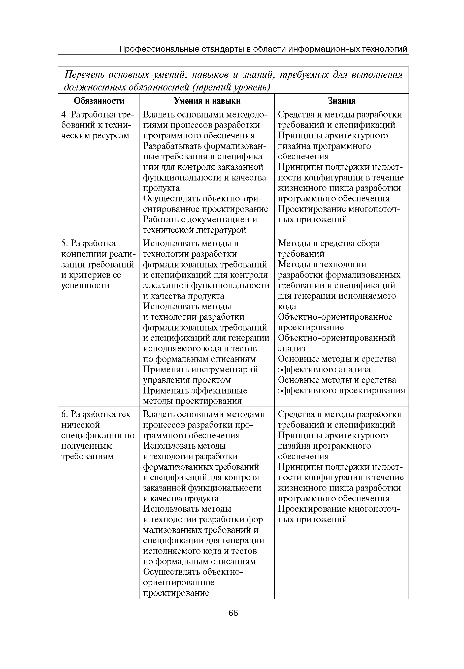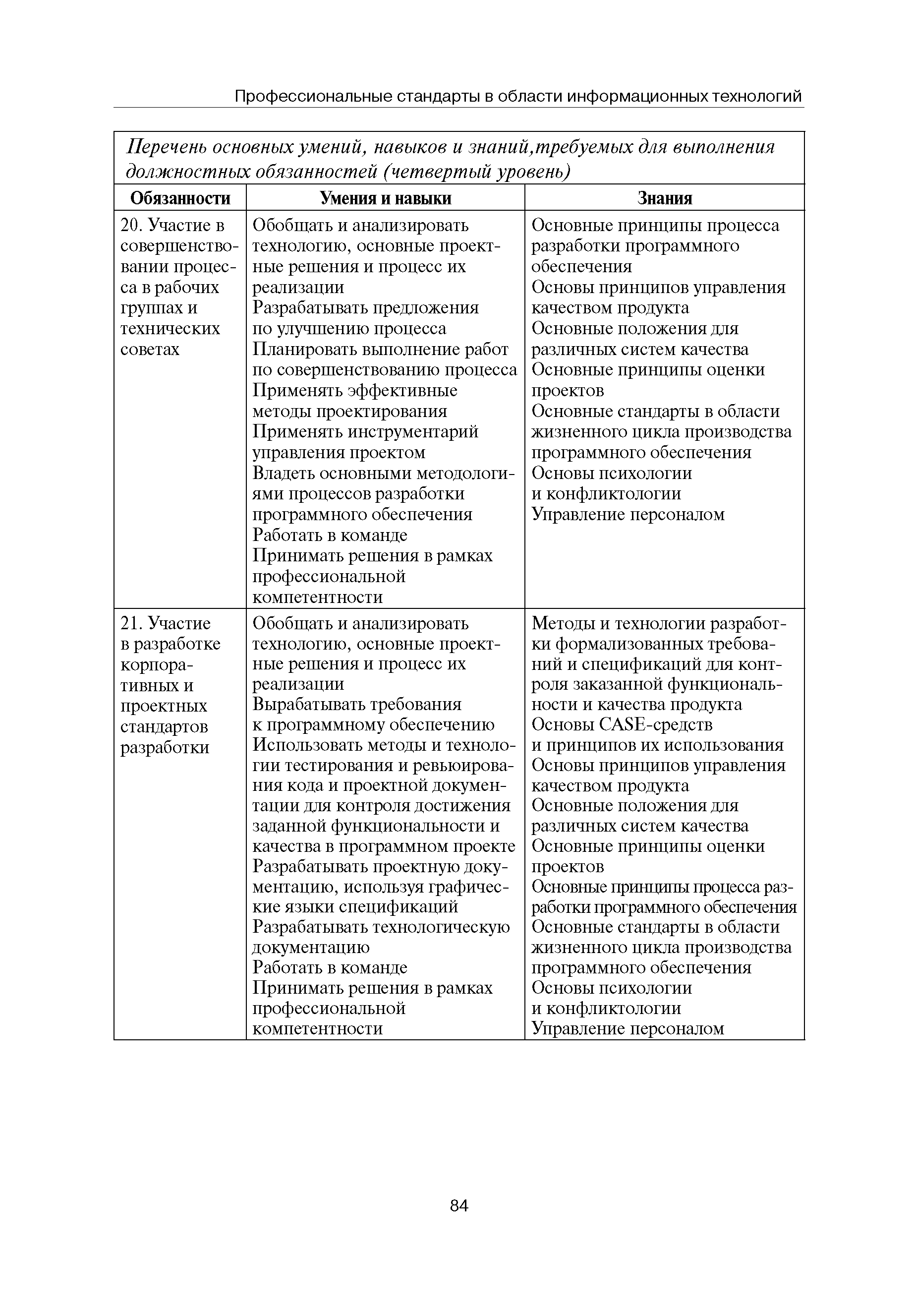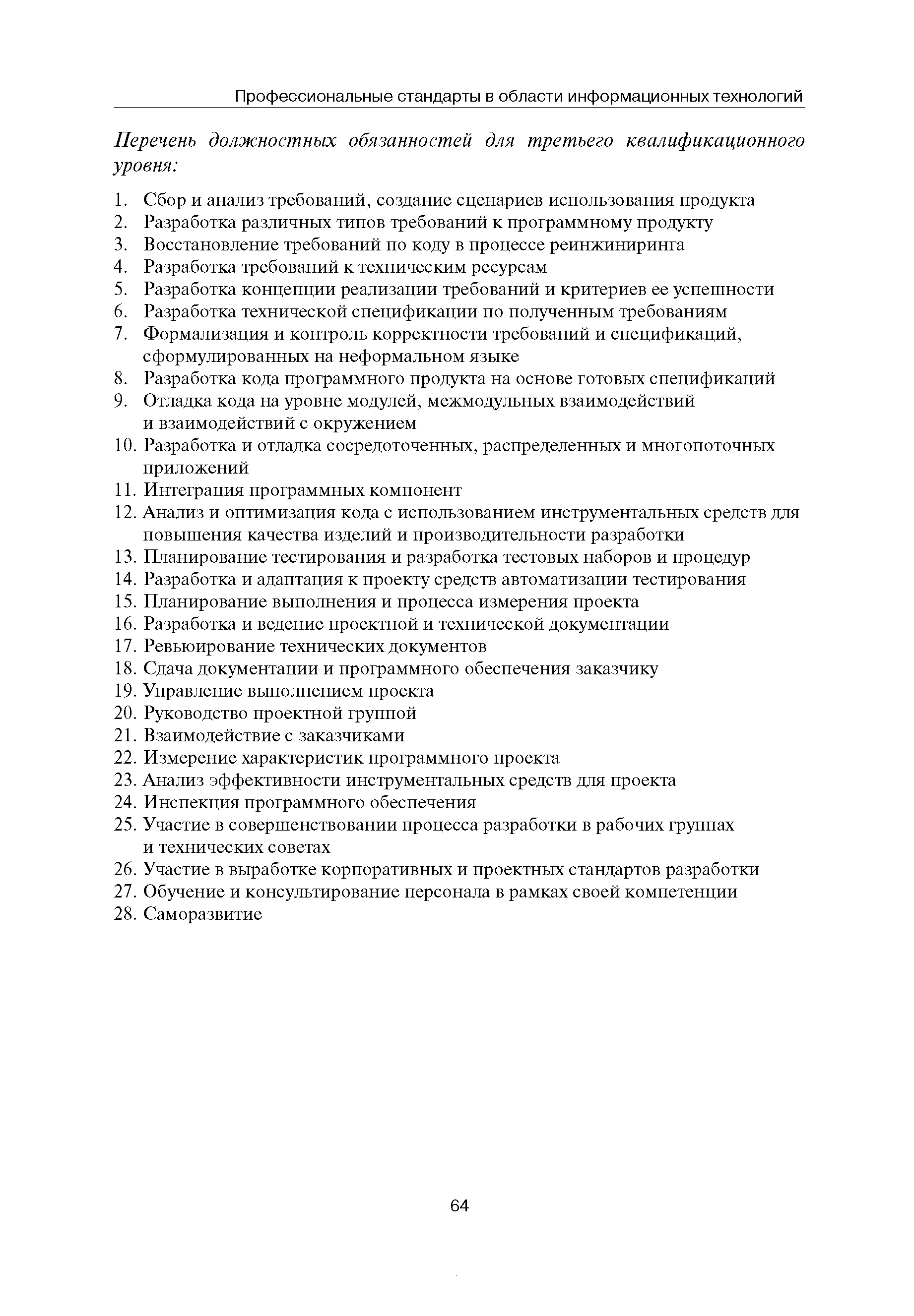 Квалификационные требования (профессиональный стандарт) в области информационных технологий "ПРОГРАММИСТ"| Статус: | действует | | Название рус.: | Квалификационные требования (профессиональный стандарт) в области информационных технологий "ПРОГРАММИСТ" | | Дата добавления в базу: | 01.09.2013 | | Дата актуализации: | 01.01.2021 | | Область применения: | Стандарт устанавливает требования к профессиональным компетенциям по квалификационным уровням. Рекомендован для применения в организациях всех форм собственности; для организаций крупного, среднего и малого бизнеса. Стандарт применяется в качестве нормативного документа, применяемого для подбора и расстановки кадров; планирования и нормирования труда; развития систем управления персоналом; для решения задач по профессиональной ориентации; для создания системы добровольной сертификации персонала и оценки уровня компетентности работников; для разработки образовательных стандартов и программ обучения в соответствии с требованиями работодателей; для проведения профессиональной подготовки, переподготовки и повышения квалификации персонала. | | Оглавление: | Авторский коллектив Область применения Указание сегмента сферы труда Профессиональный стандарт по профессии "ПРОГРАММИСТ" Первый квалификационный уровень Перечень должностных обязанностей для первого квалификационного уровня Перечень основных умений, навыков и знаний, требуемых для выполнения должностных обязанностей (1 уровень) Второй квалификационный уровень Перечень должностных обязанностей для второго квалификационного уровня Перечень основных умений, навыков и знаний, требуемых для выполнения должностных обязанностей (2 уровень) Третий квалификационный уровень Перечень должностных обязанностей для третьего квалификационного уровня Перечень основных умений, навыков и знаний, требуемых для выполнения должностных обязанностей (3 уровень) Четвертый квалификационный уровень Перечень должностных обязанностей для четвертого квалификационного уровня Перечень основных умений, навыков и знаний, требуемых для выполнения должностных обязанностей (4 уровень) | | Разработан: | Аналитический центр REAL-IT Государственный университет - Высшая школа экономики Motorola ИСП РАН Группа компаний IBS Лаборатория Касперского 1С