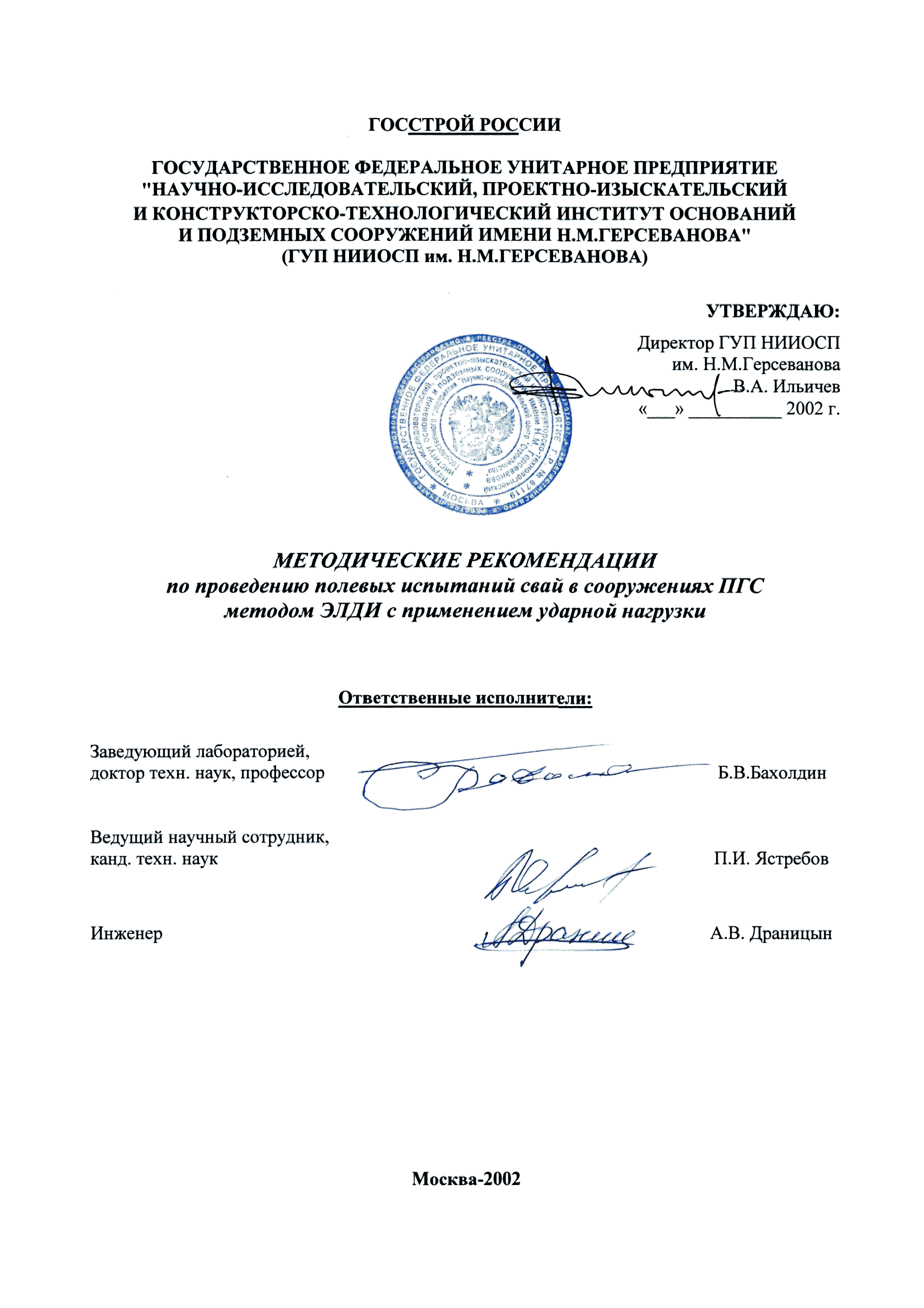 | Название рус.: | Методические рекомендации по проведению полевых испытаний свай в сооружениях ПГС методом ЭЛДИ с применением ударной нагрузки |