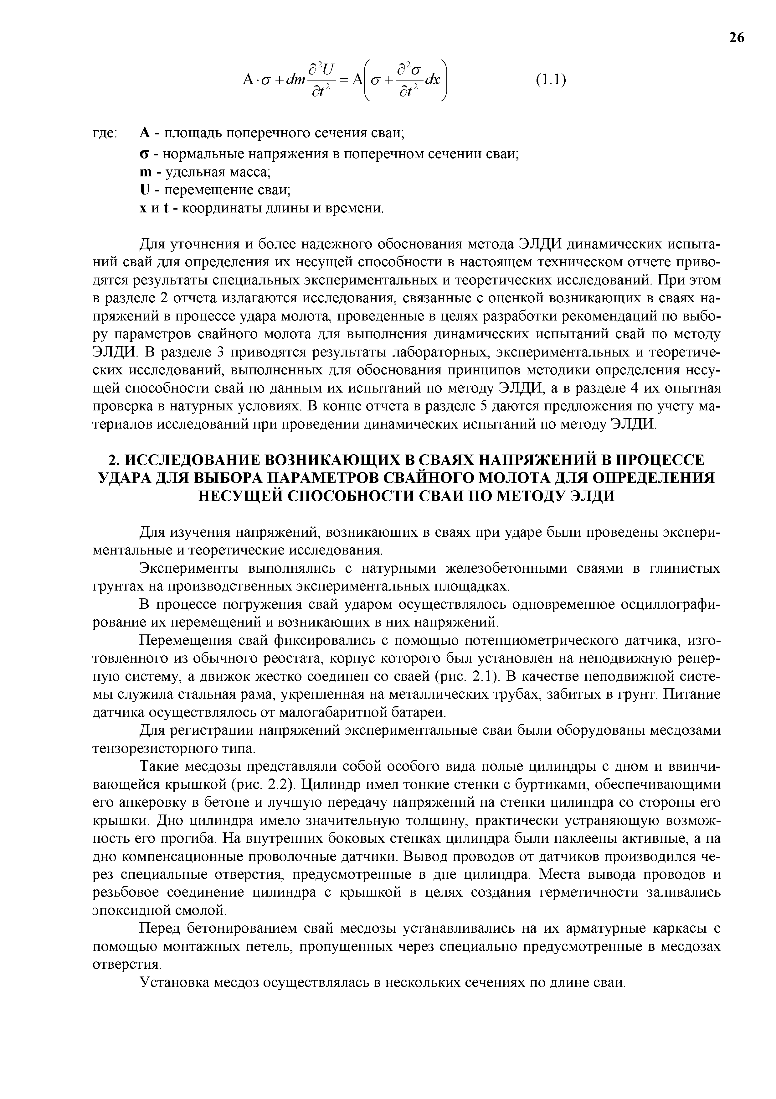 | Оглавление: | Предисловие 1. Общие положения 2. Принципы и теоретические основы метода ЭЛДИ 3. Нагружающие устройства ударного действия 4. Измерительные приборы и регистрирующая аппаратура 5. Подготовка свай к испытаниям 6. Проведение испытаний свай ударной нагрузкой 7. Обработка и представление результатов испытаний 8. Техника безопасности при производстве работ 9. Технический контроль и приемка работ 10. Приложения |