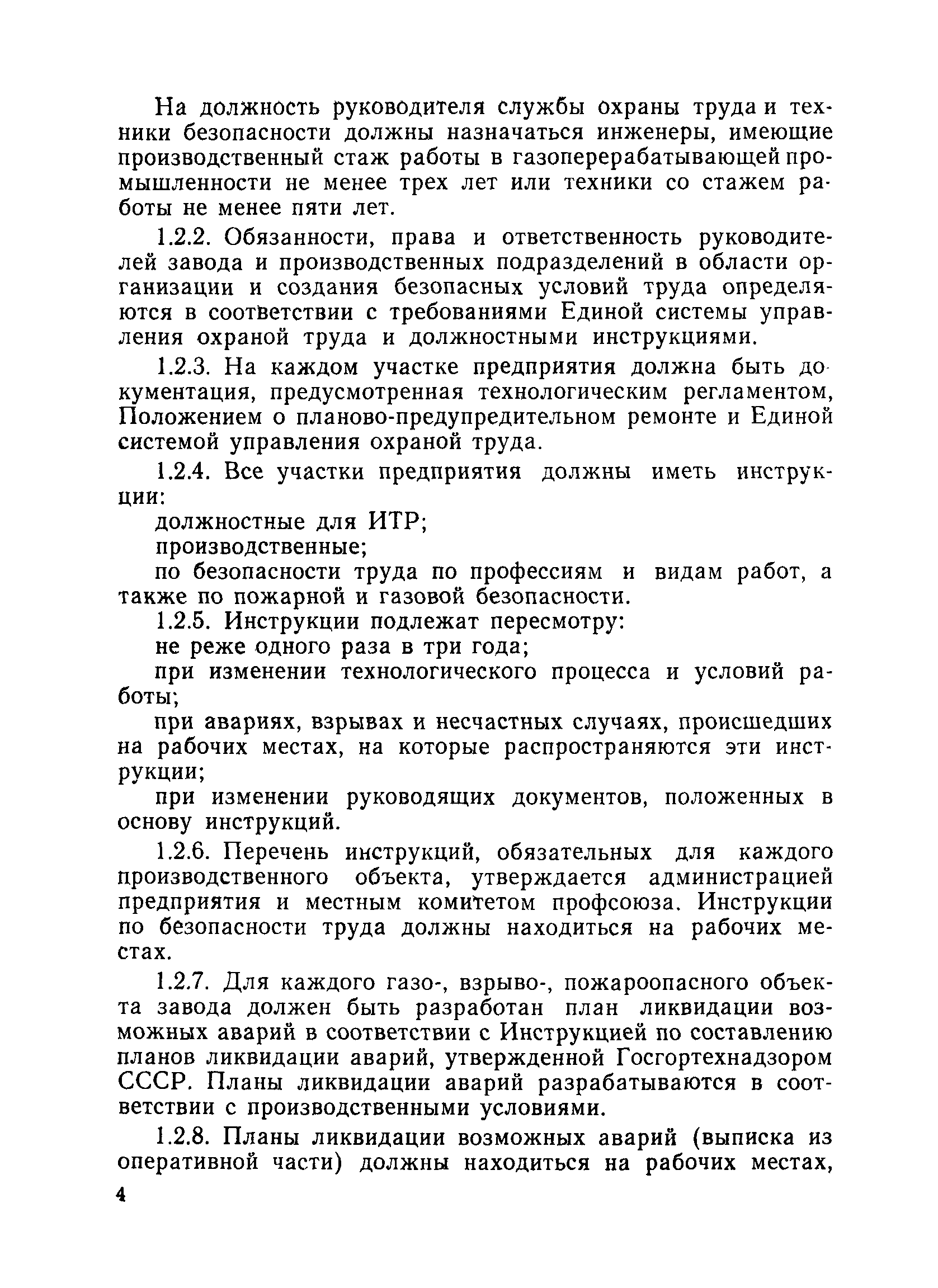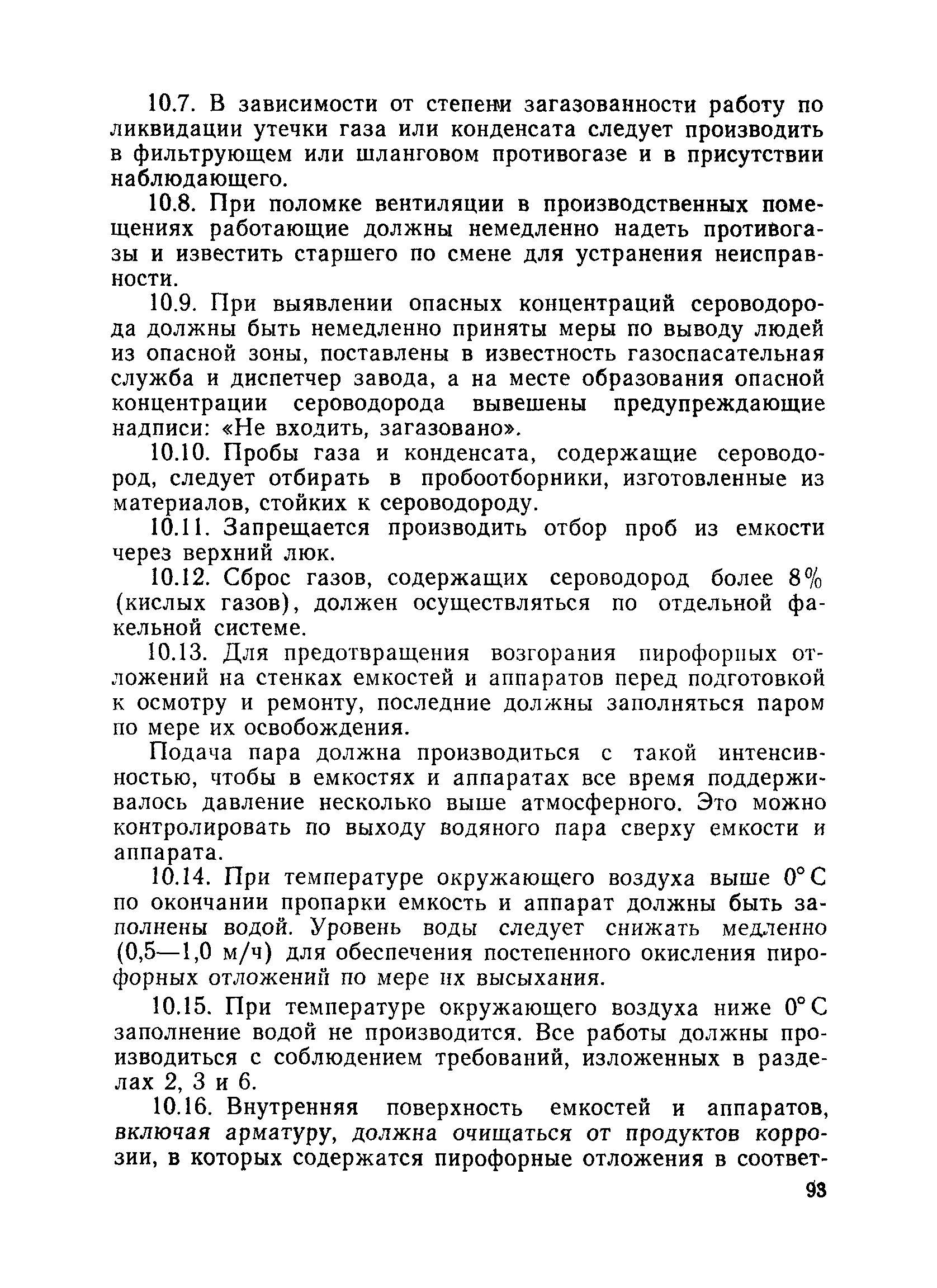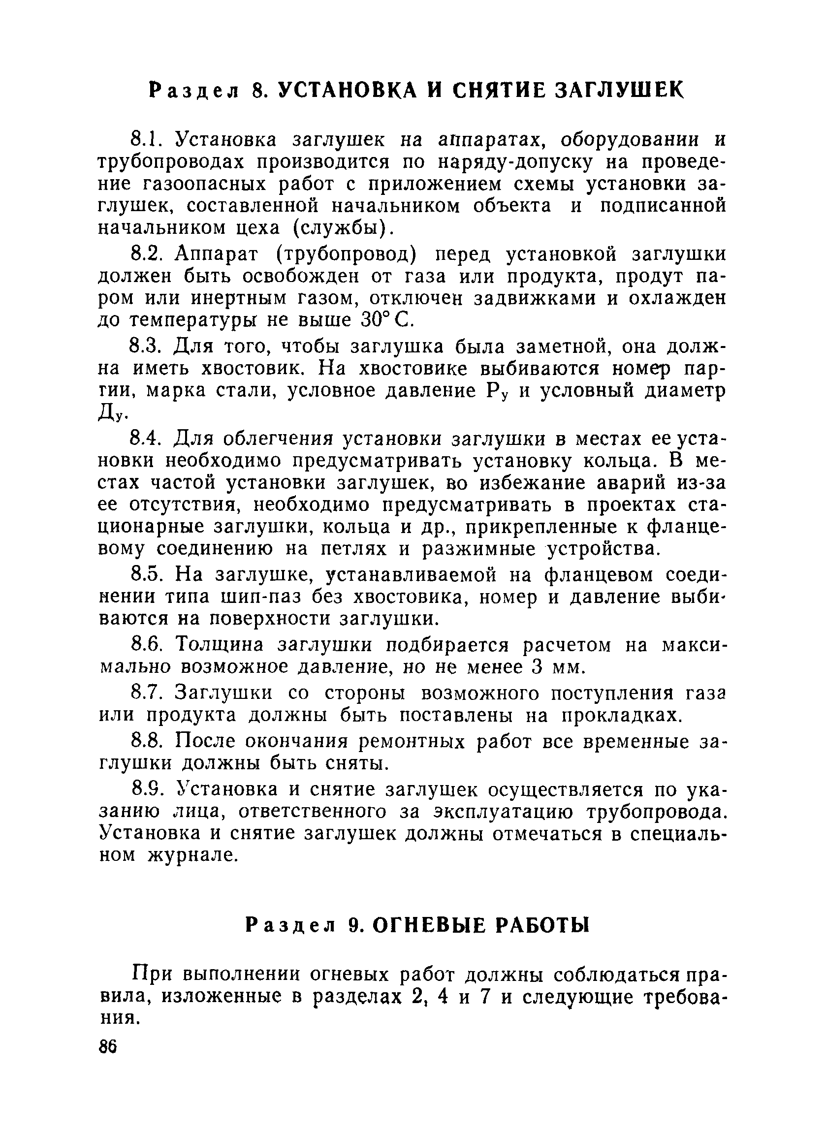 | Оглавление: | Раздел 1. Общие положения Раздел 2. Общие правила безопасности Раздел 3. Меры безопасности при работе с вредными веществами Раздел 4. Правила безопасности при эксплуатации технологических установок Раздел 5. Правила безопасности при эксплуатации вспомогательных устройств и сооружений Раздел 6. Правила безопасности при внутреннем осмотре и очистке аппаратов, резервуаров и оборудования Раздел 7. Правила безопасности при ремонте аппаратов, резервуаров и оборудования Раздел 8. Установка и снятие заглушек Раздел 9. Огневые работы Раздел 10. Дополнительные требования безопасности при переработке газа и конденсата, содержащих сероводород Раздел 11. Дополнительные требования безопасности при работе в зимних условиях Раздел 12. Ответственность за нарушение правил Приложения |