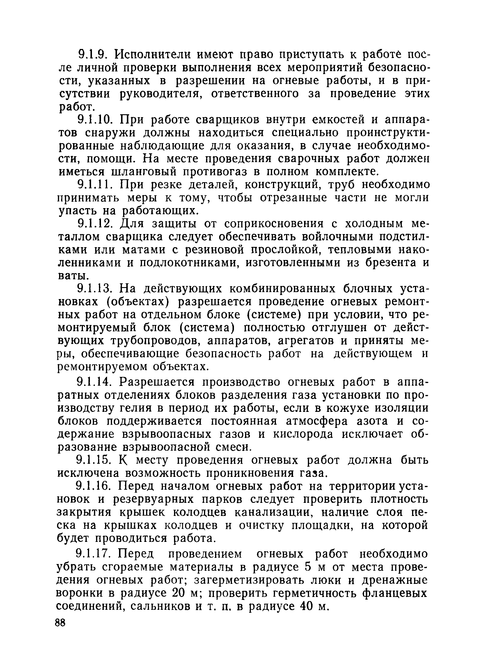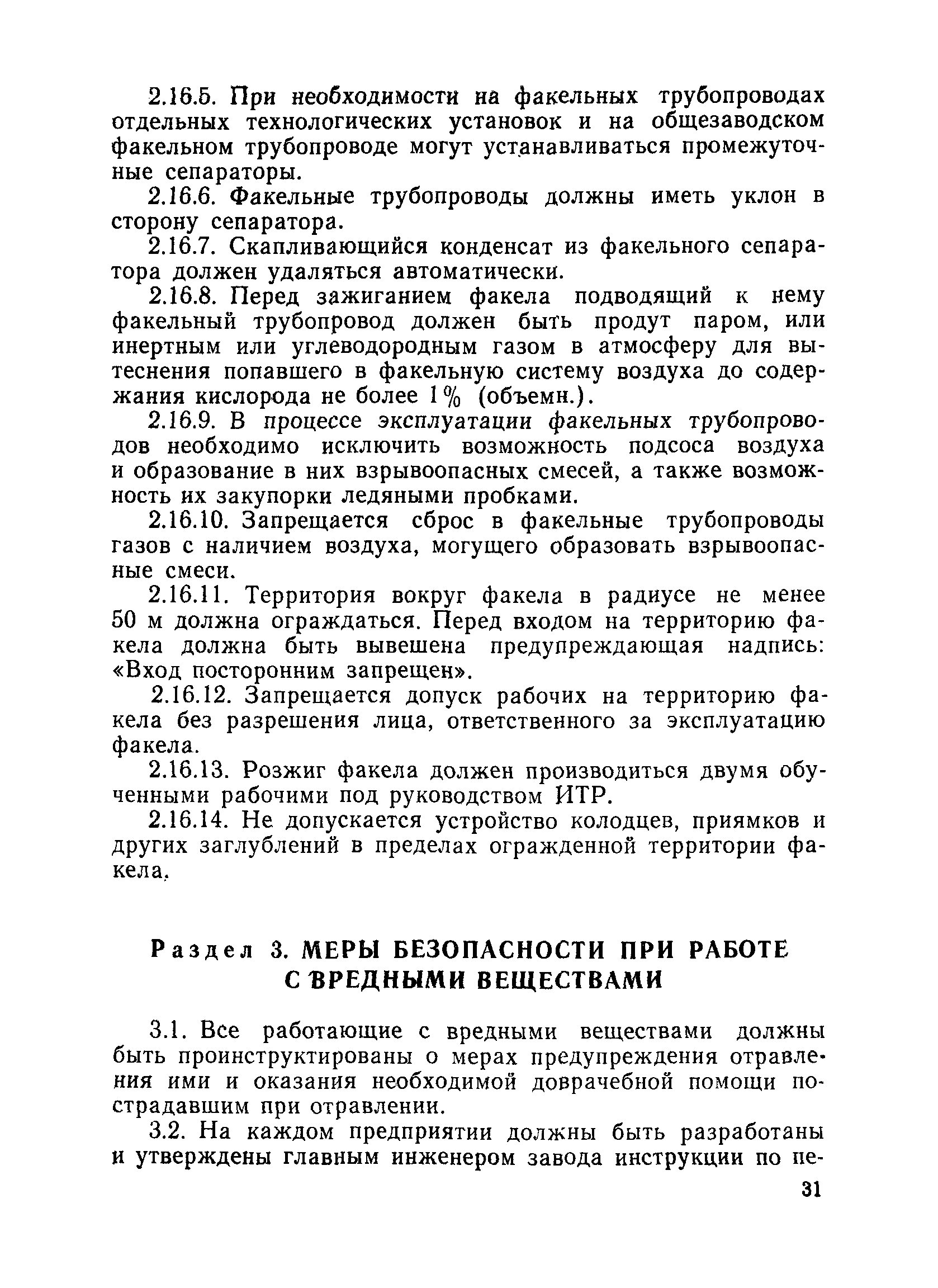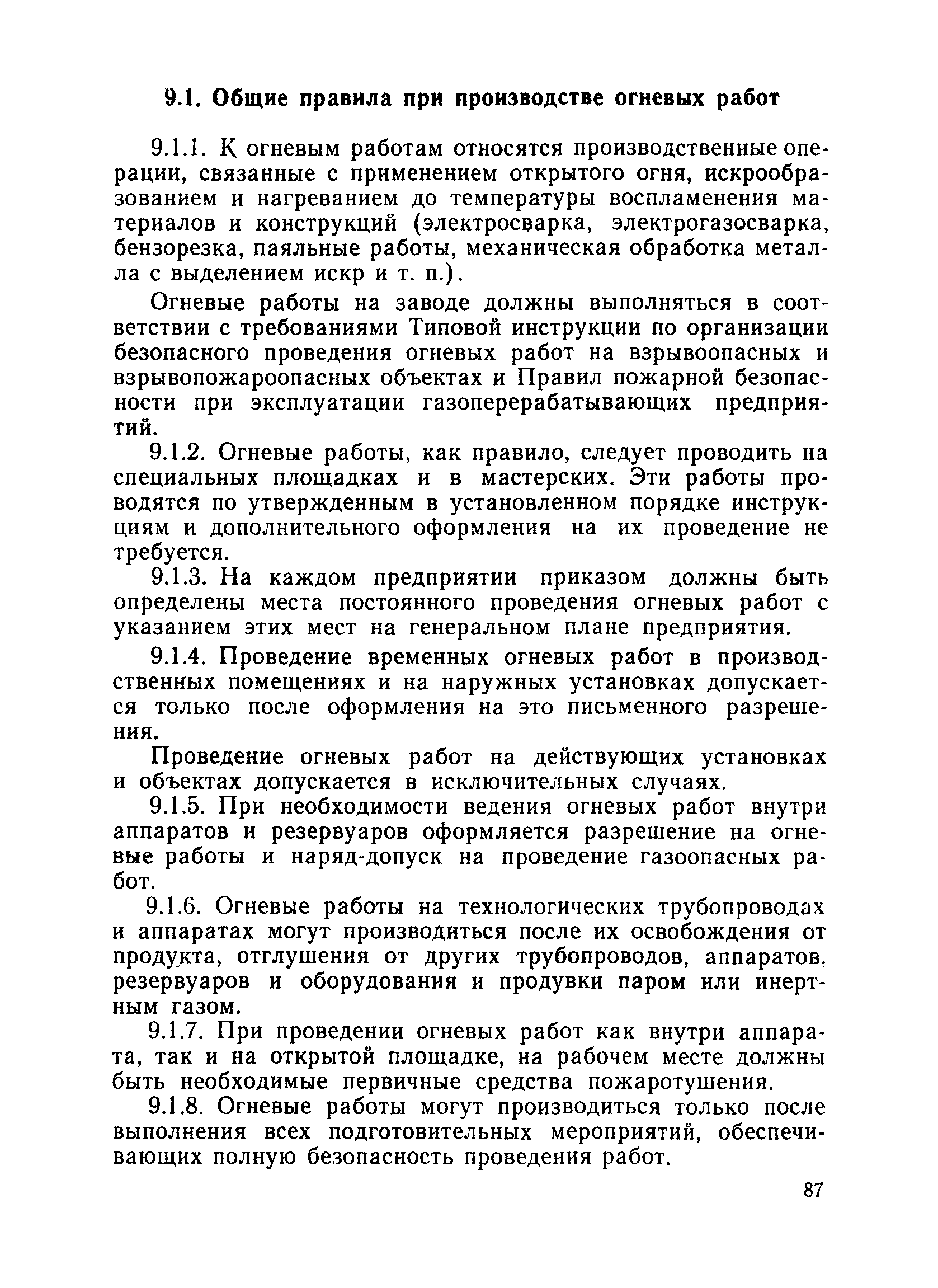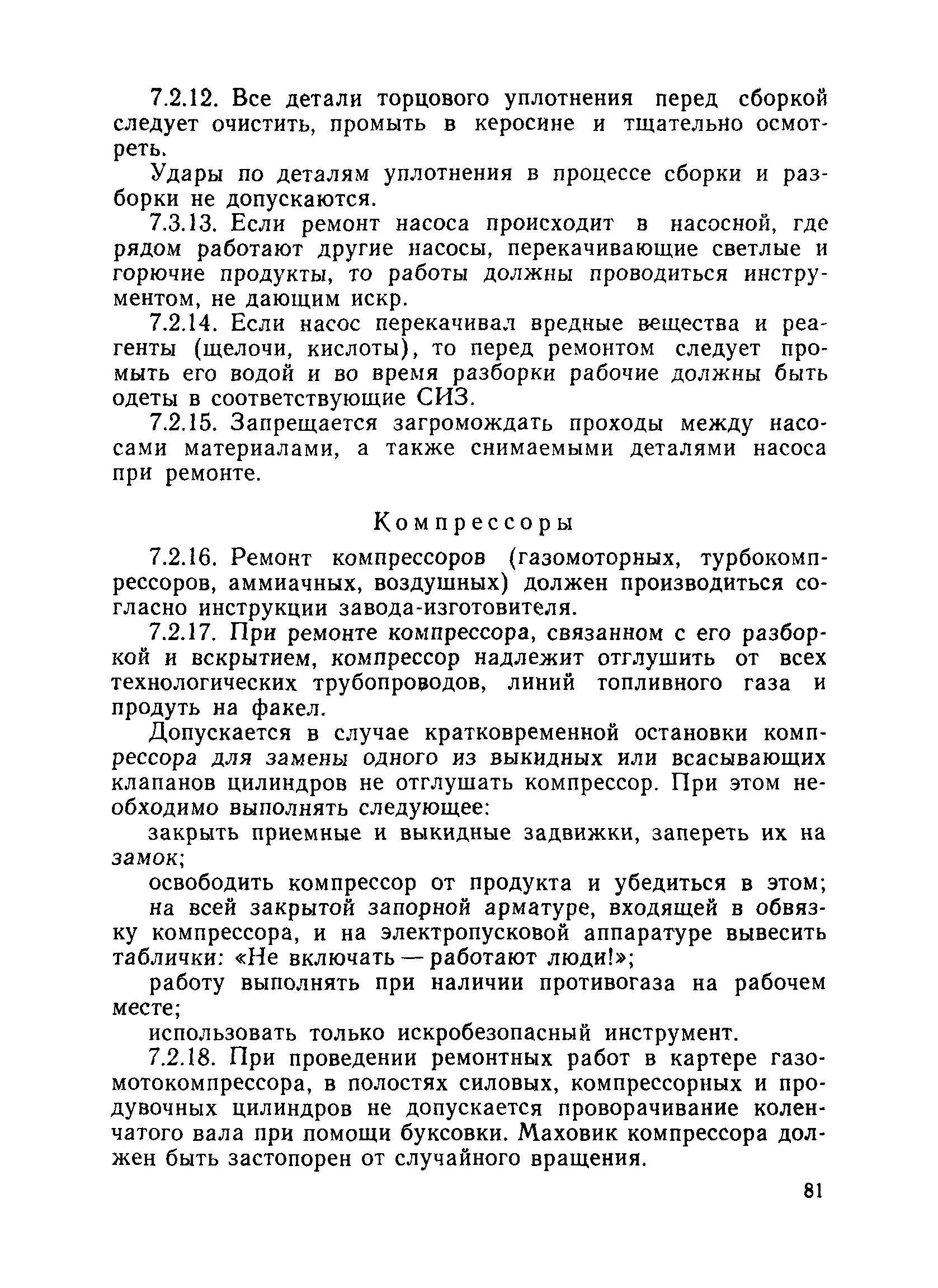 | Оглавление: | Раздел 1. Общие положения Раздел 2. Общие правила безопасности Раздел 3. Меры безопасности при работе с вредными веществами Раздел 4. Правила безопасности при эксплуатации технологических установок Раздел 5. Правила безопасности при эксплуатации вспомогательных устройств и сооружений Раздел 6. Правила безопасности при внутреннем осмотре и очистке аппаратов, резервуаров и оборудования Раздел 7. Правила безопасности при ремонте аппаратов, резервуаров и оборудования Раздел 8. Установка и снятие заглушек Раздел 9. Огневые работы Раздел 10. Дополнительные требования безопасности при переработке газа и конденсата, содержащих сероводород Раздел 11. Дополнительные требования безопасности при работе в зимних условиях Раздел 12. Ответственность за нарушение правил Приложения |