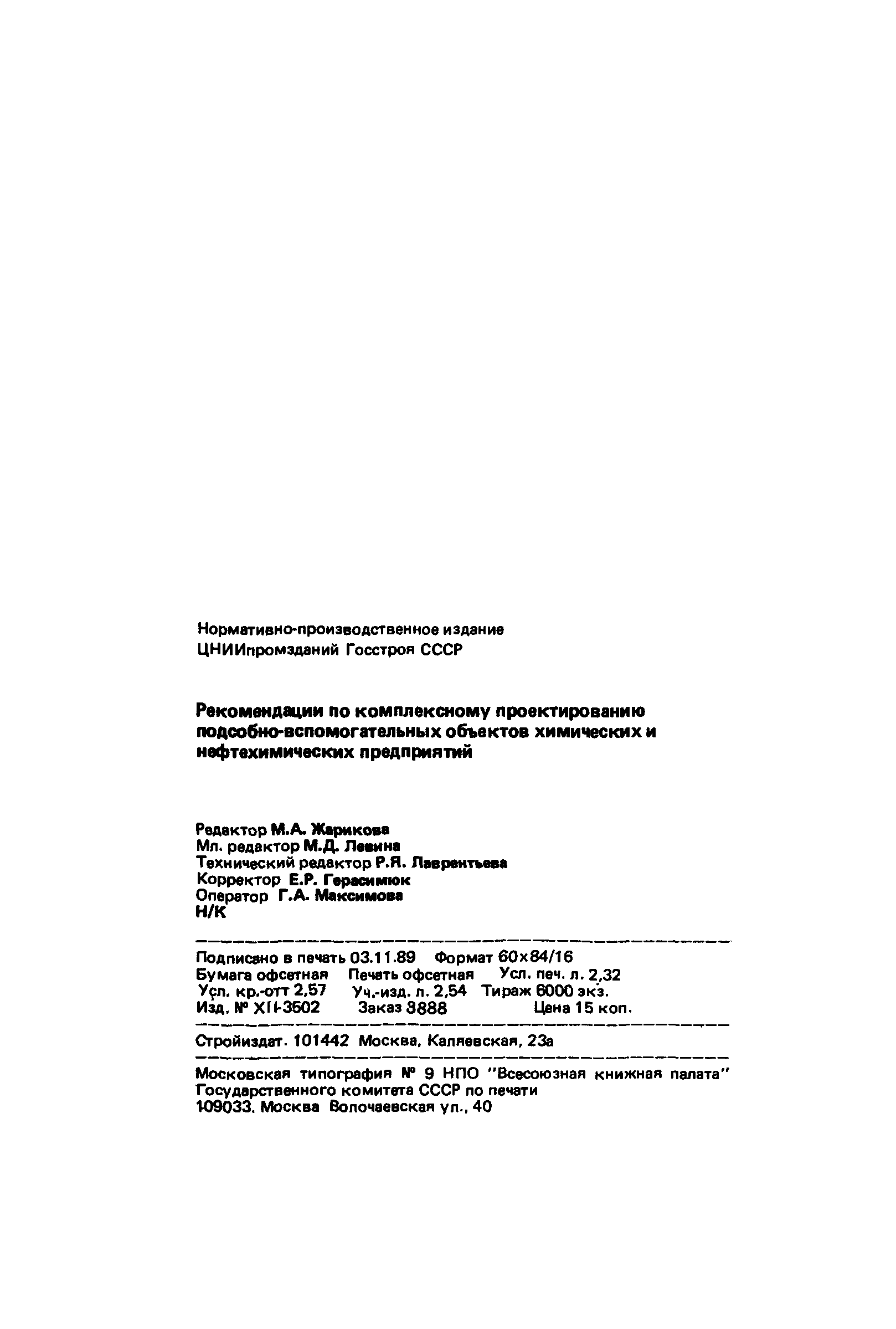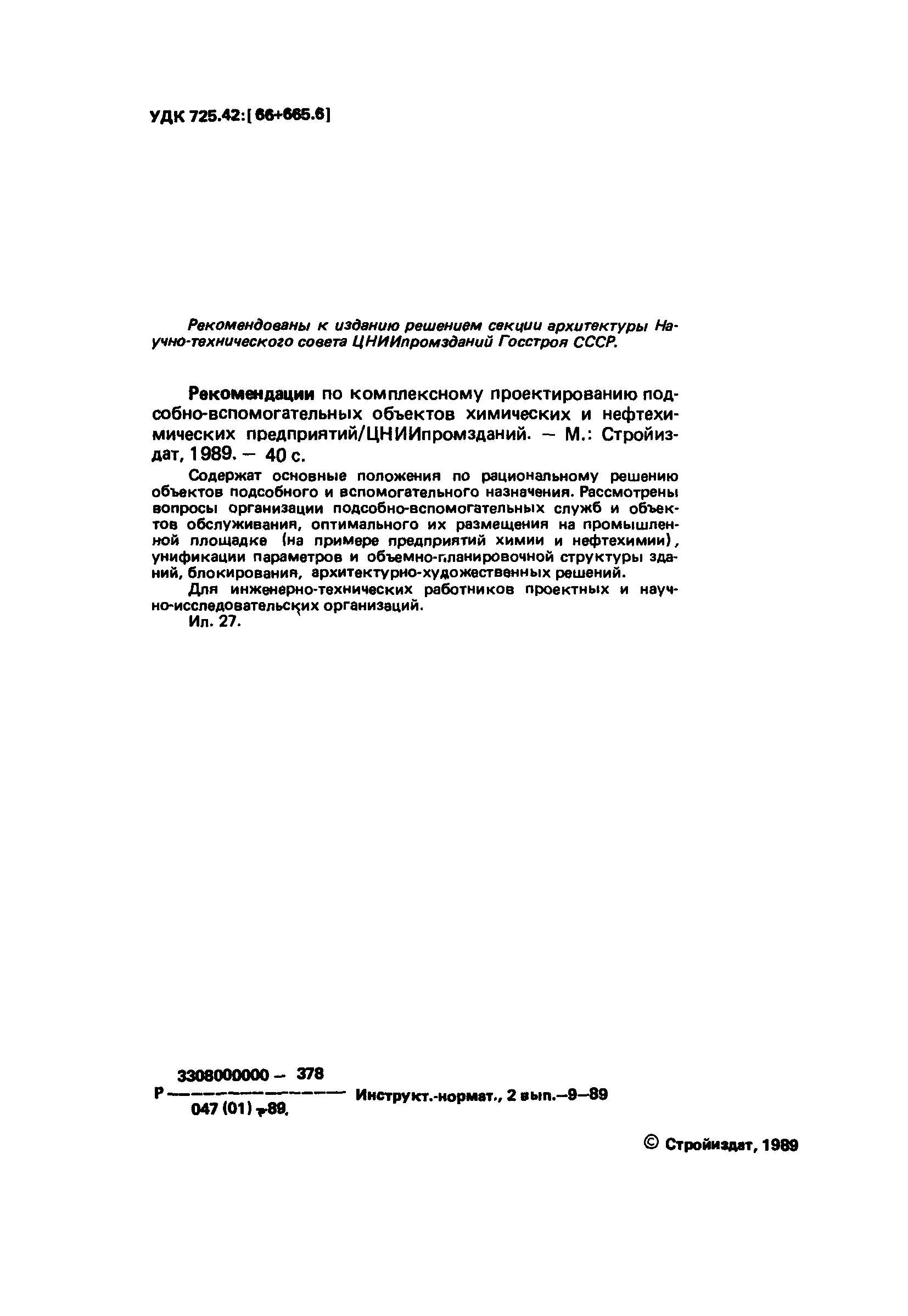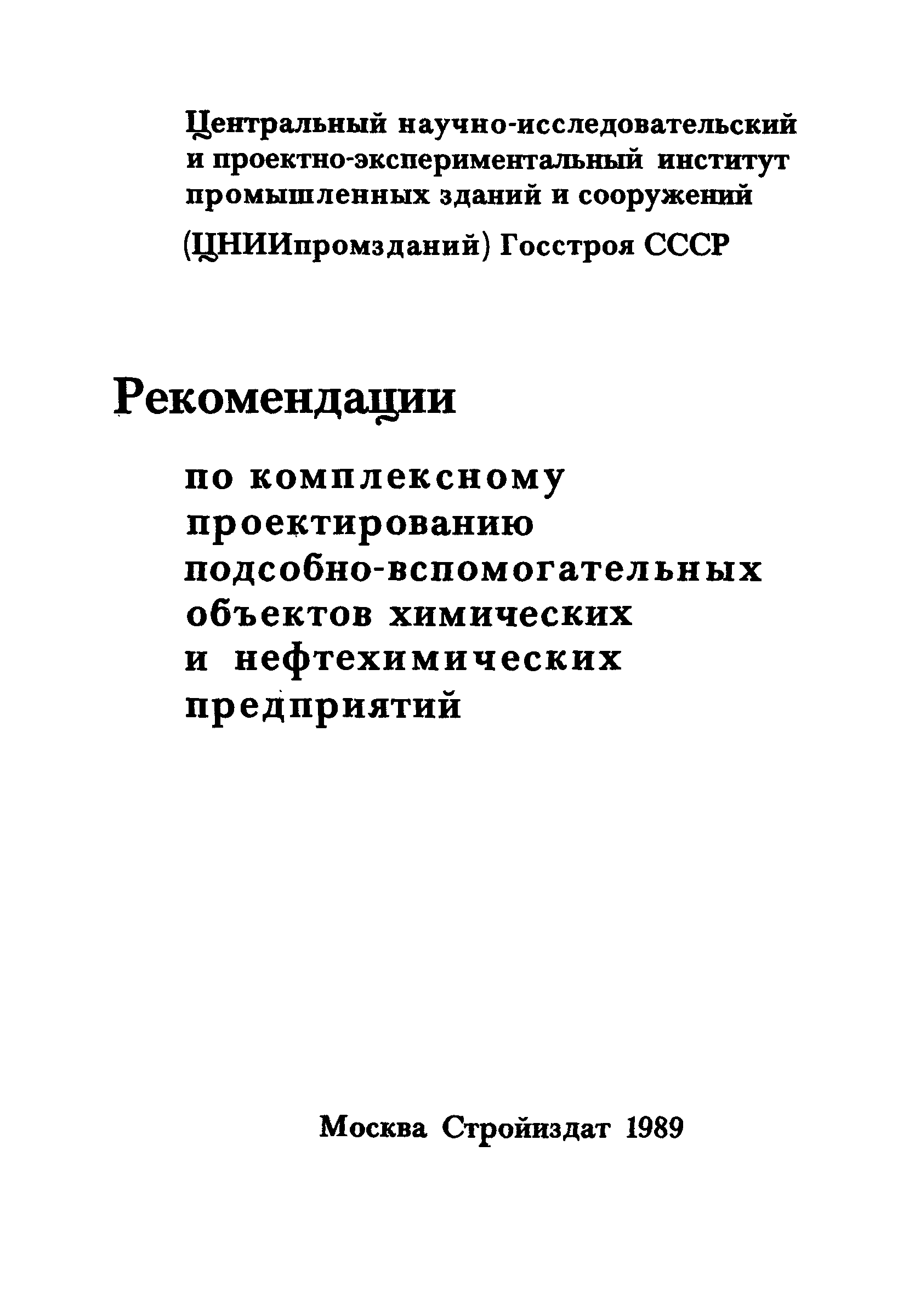 | Название рус.: | Рекомендации по комплексному проектированию подсобно-вспомогательных объектов химических и нефтехимических предприятий |