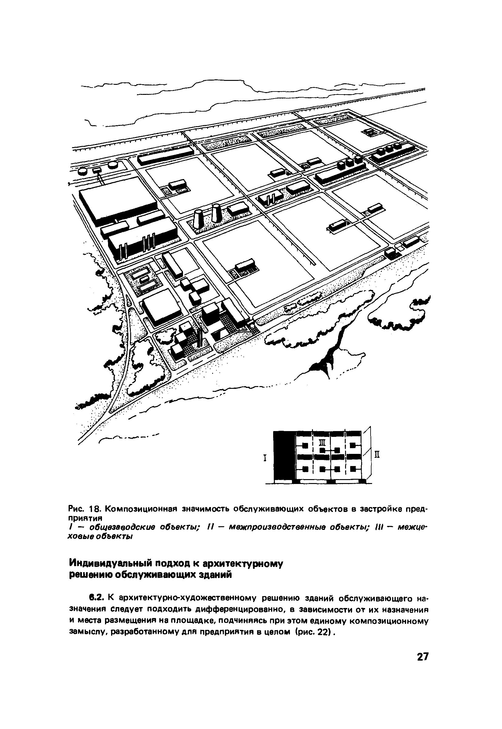 | Оглавление: | Введение 1 Функциональная организация системы обслуживания предприятий 2 Размещение объектов на промышленной площадке 3 Унификация объемно-планировочных и конструктивных решений объектов 4 Блокирование объектов 5 Применение типовой проектной документации 6 Повышение архитектурной выразительности объектов |