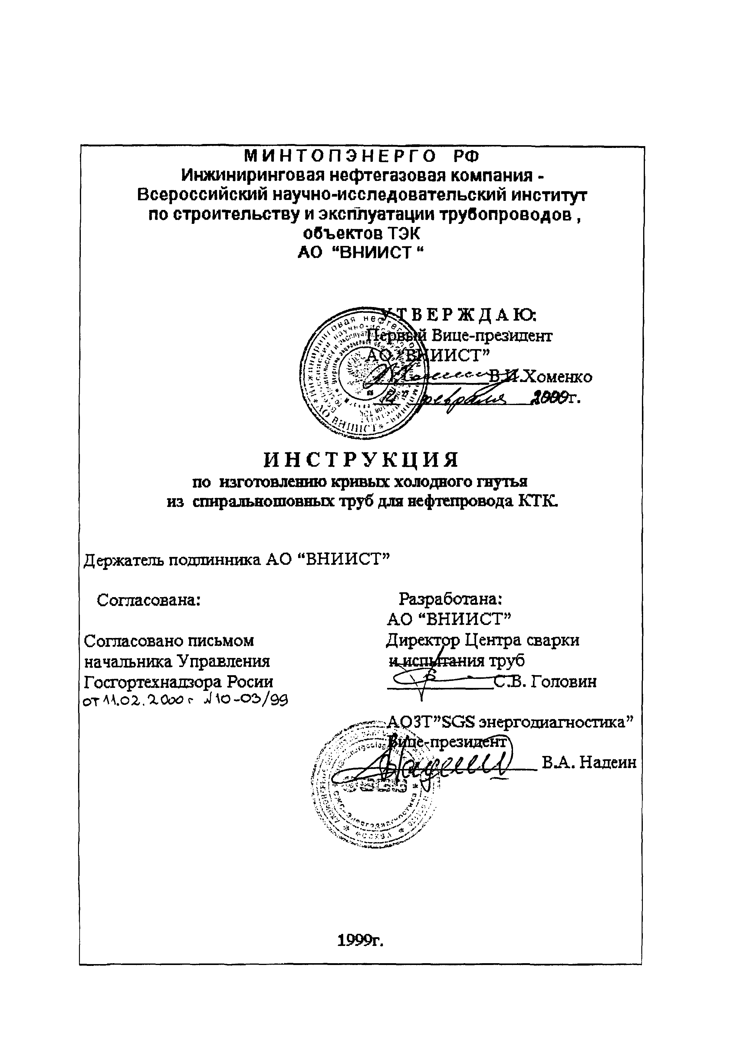 | Утверждён: | 14.02.2000 АО ВНИИСТ (VNIIST AO ) |