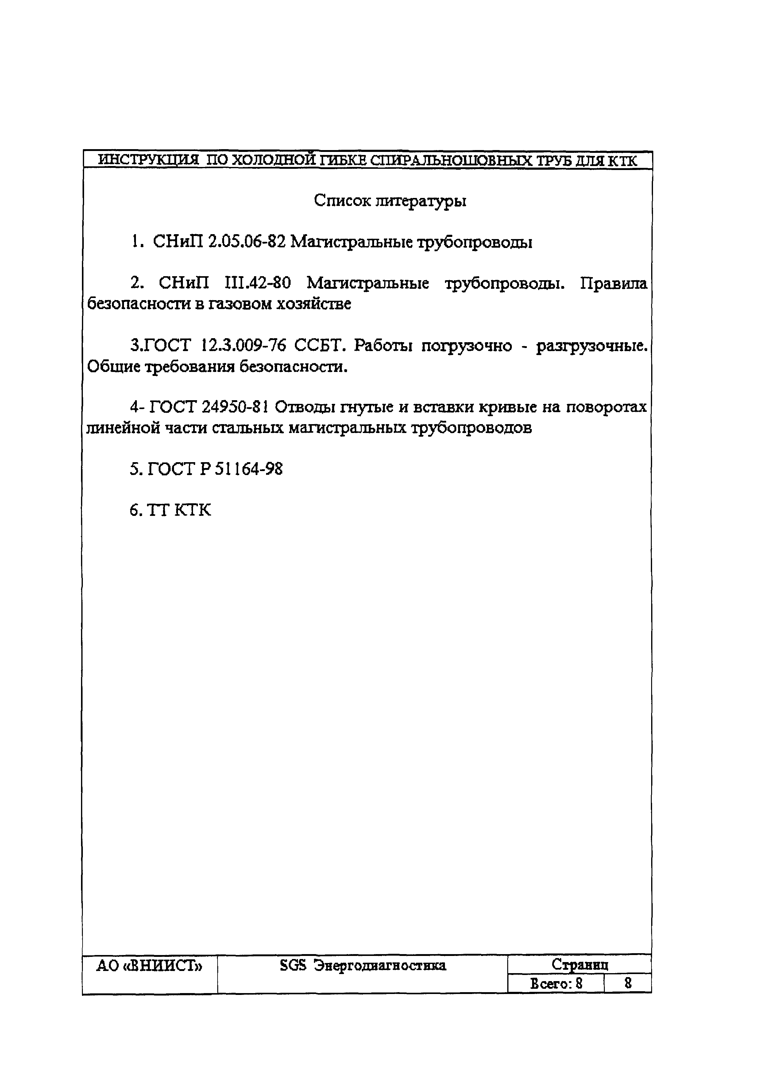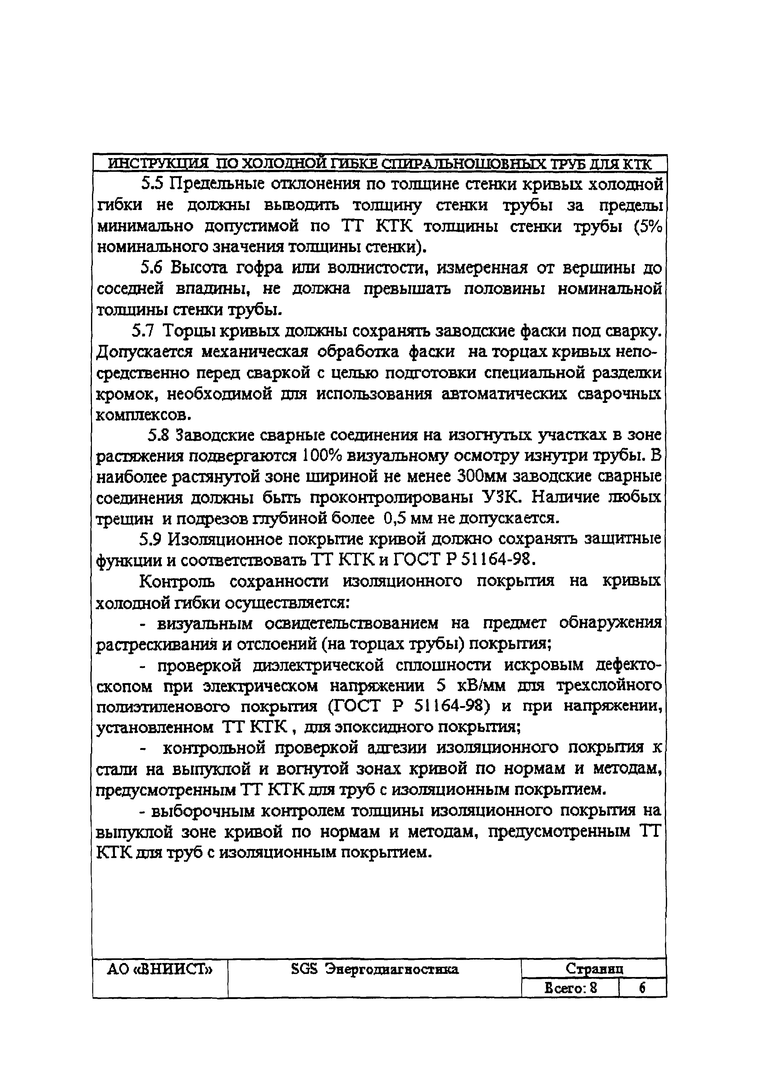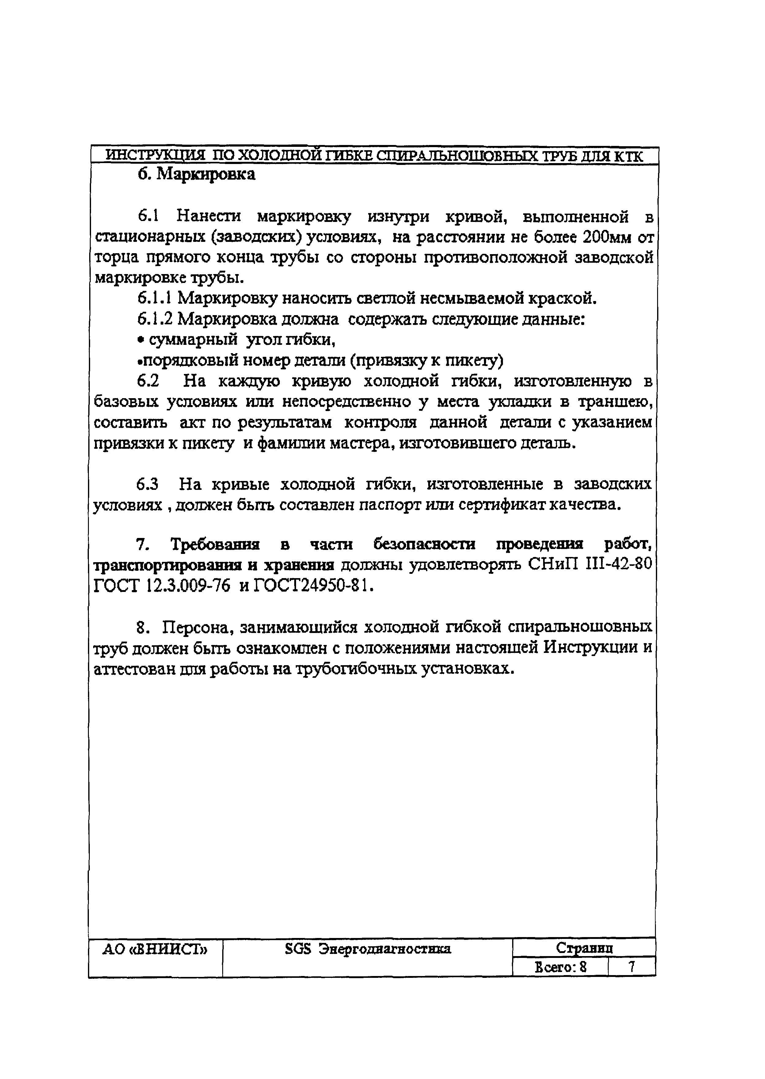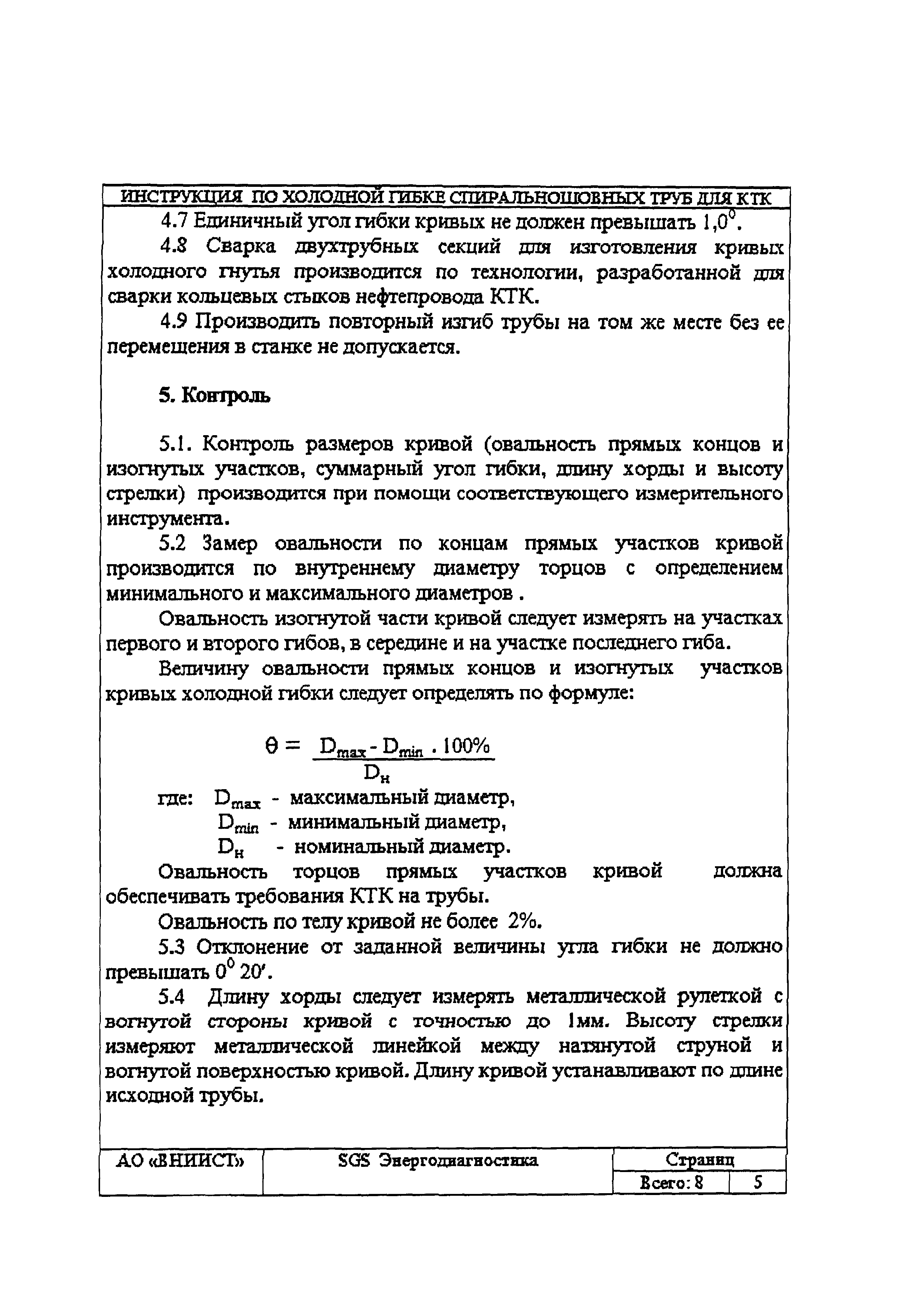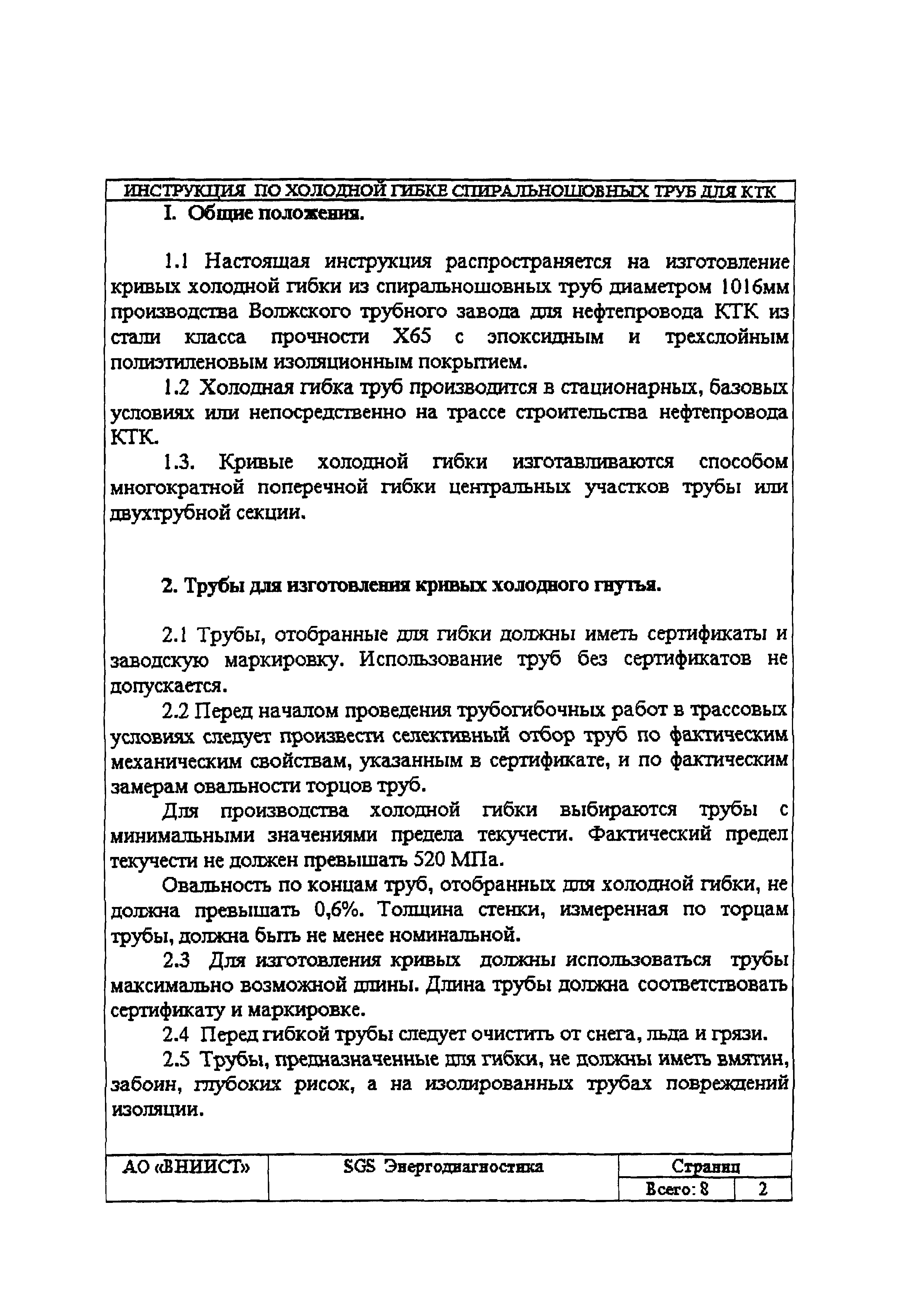 | Название рус.: | Инструкция по изготовлению кривых холодного гнутья из спиральношовных труб для нефтепровода КТК |