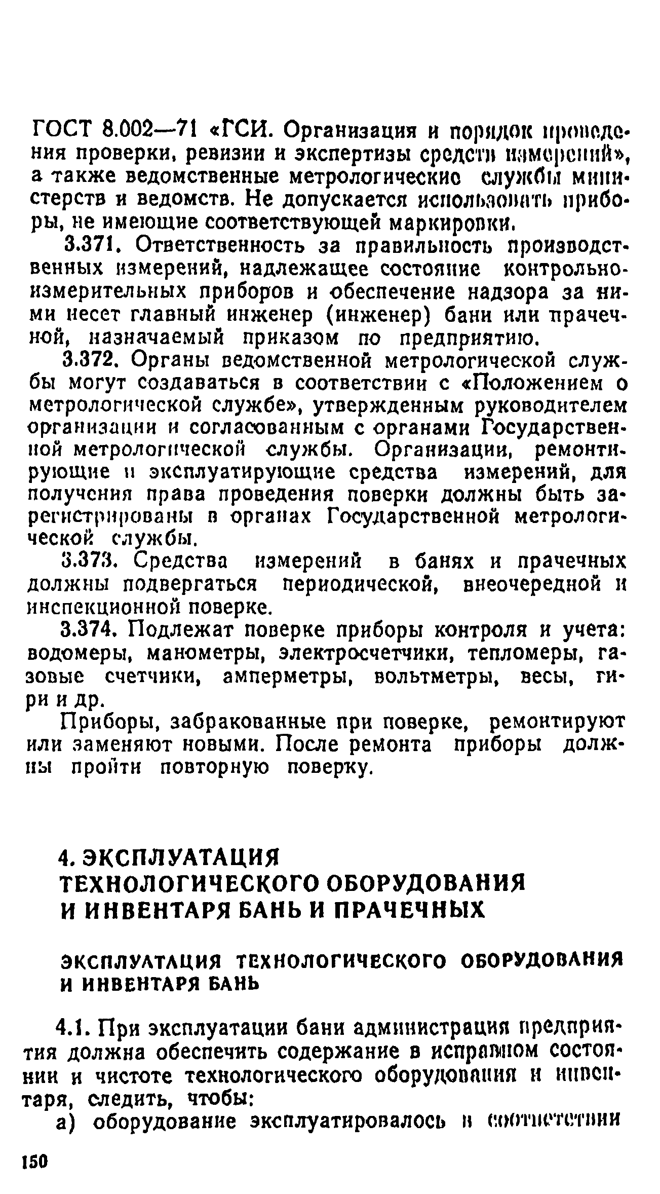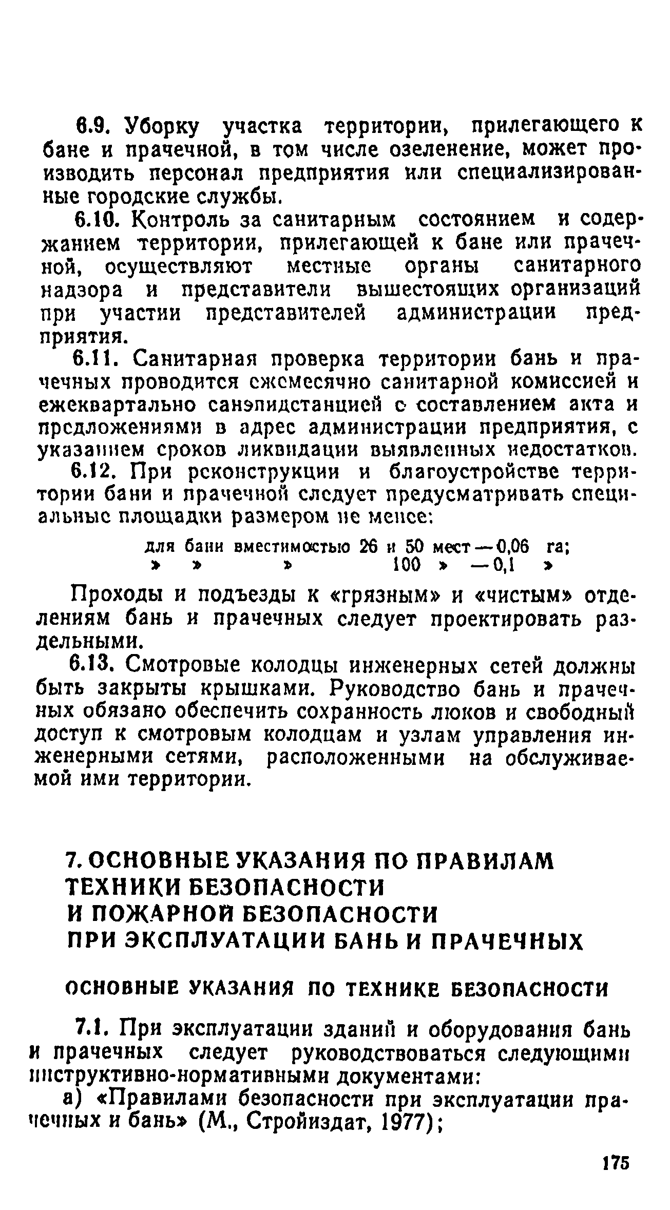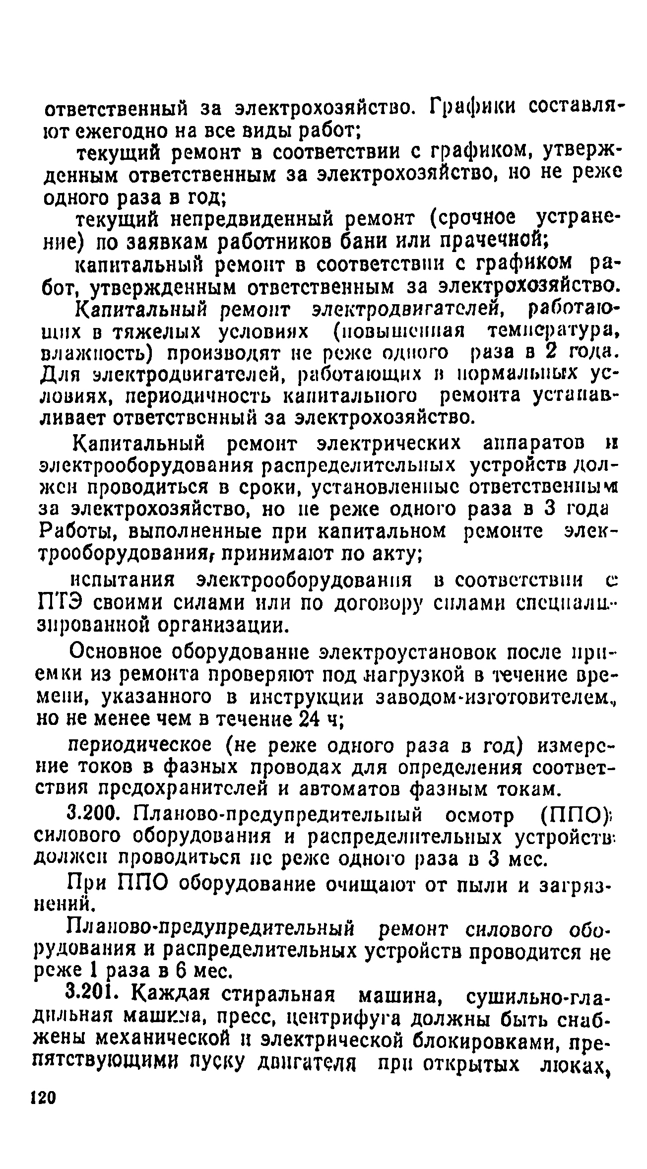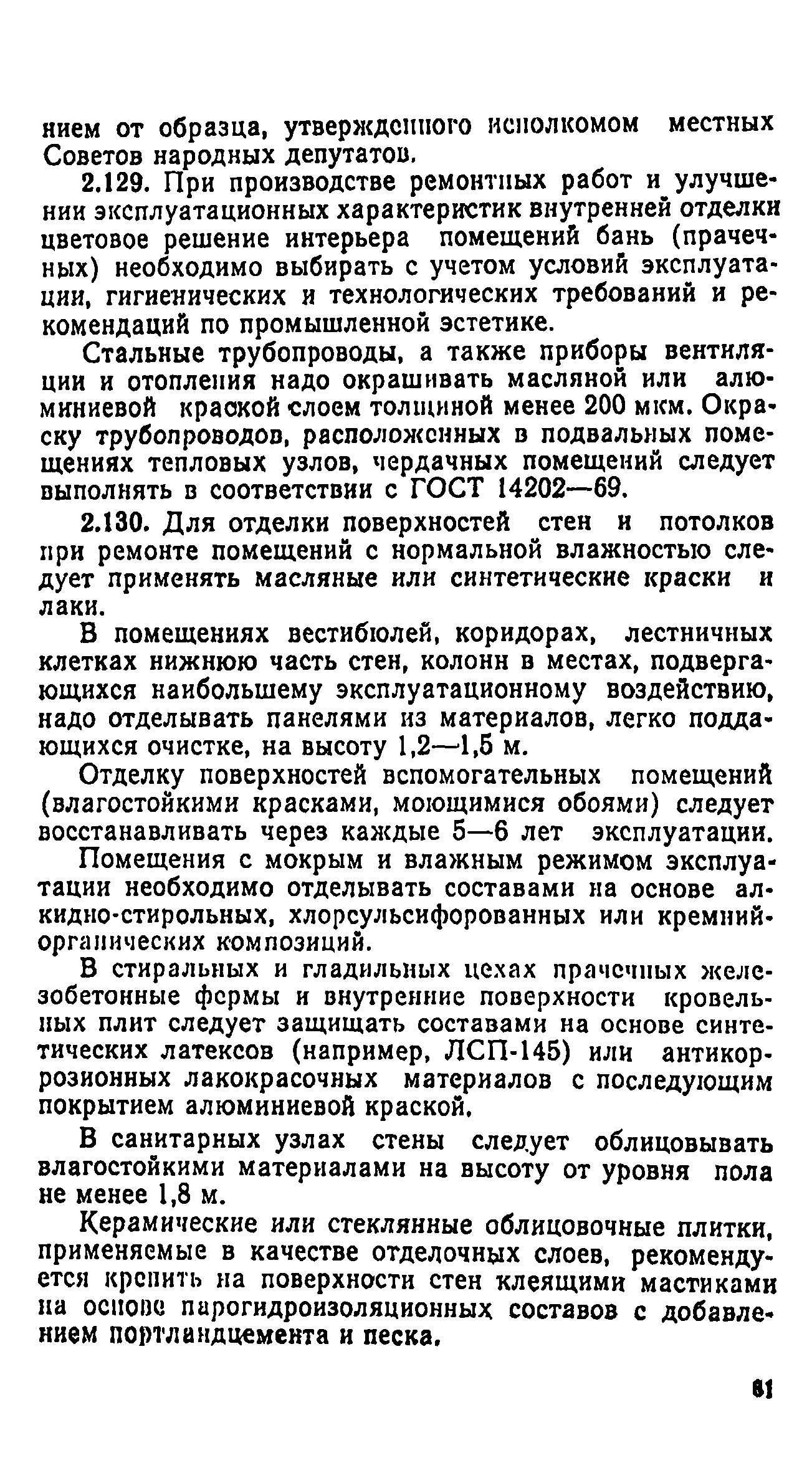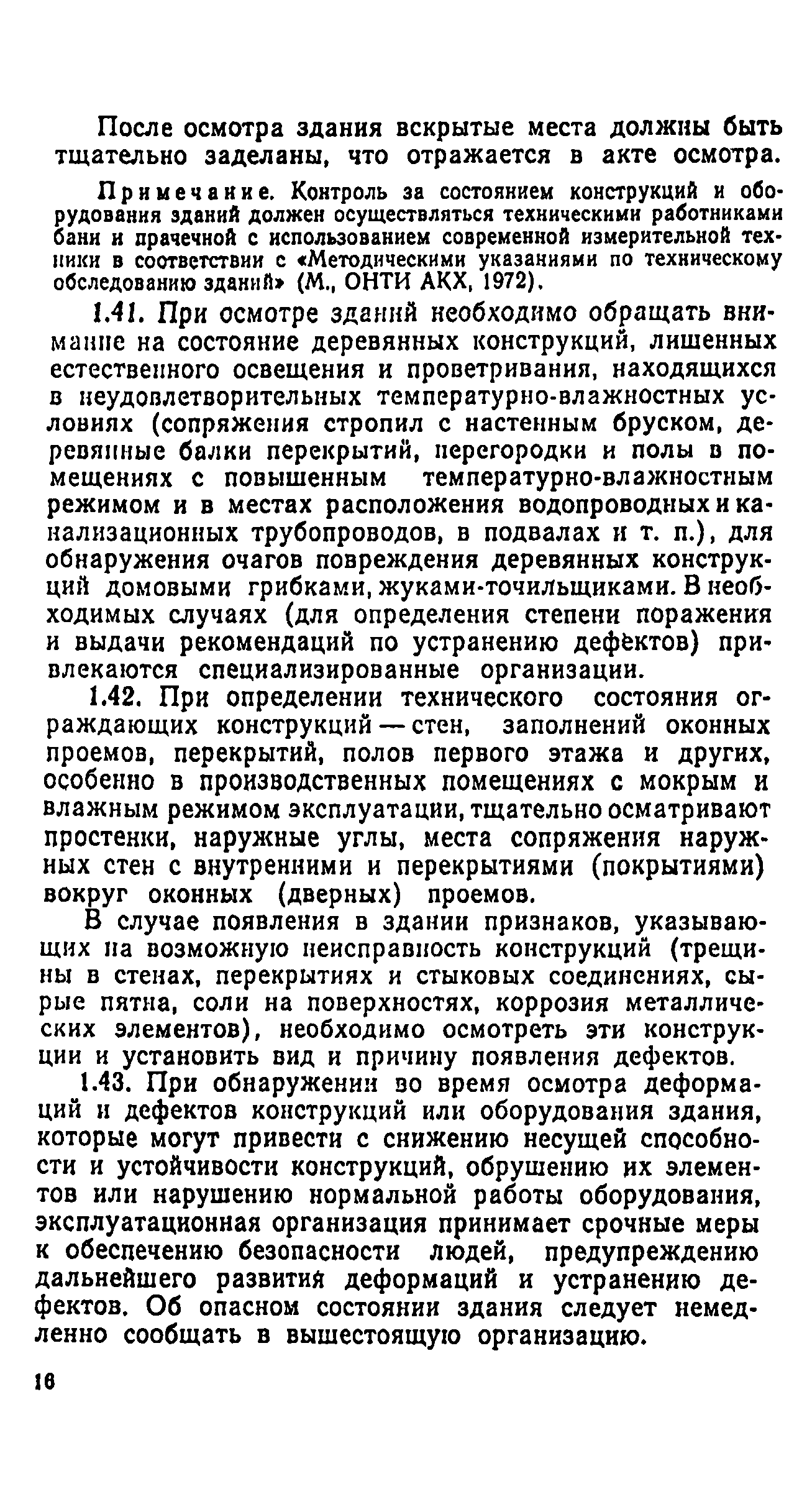 | Оглавление: | Предисловие 1. Общие положения Основные указания Управление банно-прачечным хозяйством Приемка в эксплуатацию бань и прачечных, вновь построенных и после капитального ремонта Приемка банно-прачечного хозяйства при смене руководства Система осмотра и контроля за состоянием зданий бань и прачечных Организация и планирование текущего ремонта зданий бань и прачечных Организация и планирование капитального ремонта и повышения уровня благоустройства зданий бань и прачечных Основные положения по реконструкции зданий бань и прачечных Пути повышения рентабельности бань и прачечных 2. Эксплуатация строительных конструкций и помещений Фундаменты и стены подвальных помещений Стены Перекрытия и полы Перегородки Крыши и водоотводящие устройства Окна и двери Лестницы Специальные мероприятия по технической эксплуатации зданий бань и прачечных 3. Эксплуатация инженерного оборудования Источники теплоснабжения бань и прачечных Центральное отопление Горячее водоснабжение, технологическое пароснабжение, сжатый воздух и сосуды работающие под давлением Водопровод Канализация Вентиляция Газоснабжение Электроснабжение и электрооборудование Подъемники и другие средства механизации Радиотрансляционные и телефонные сети и электрочасификация Средства автоматизации, диспетчеризации инженерного оборудования, средства связи и КИП 4. Эксплуатация технологического оборудования и инвентаря бань и прачечных Эксплуатация технологического оборудования и инвентаря бань Эксплуатация технологического оборудования и инвентаря прачечных 5. Санитарные правила содержания бань и прачечных Санитарные правила содержания бань Санитарные правила содержания прачечных 6. Эксплуатация участка территории, прилегающего к зданиям бань и прачечных 7. Основные указания по правилам техники безопасности и пожарной безопасности при эксплуатации бант и прачечных Основные указания по технике безопасности Основные указания по пожарной безопасности Приложение 1 Приложение 2 Приложение 3 Приложение 4 Приложение 5 Приложение 6 Приложение 7 Приложение 8 Приложение 9 Приложение 10 Приложение 11 Приложение 12 Приложение 13 Приложени 14 Приложение 15 |