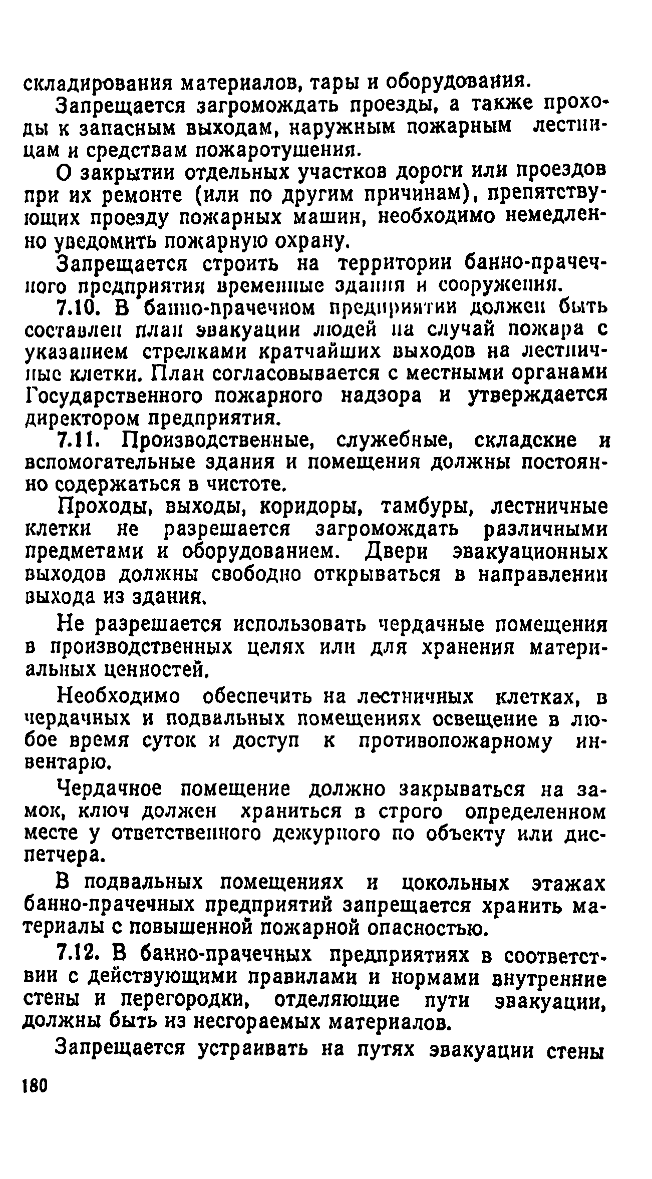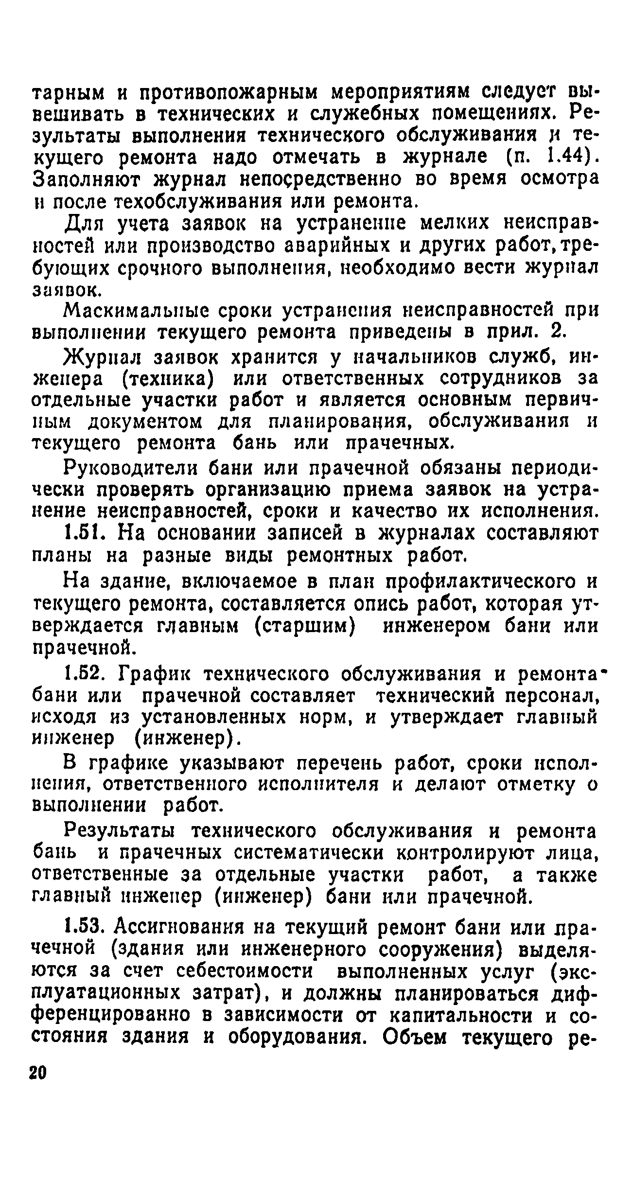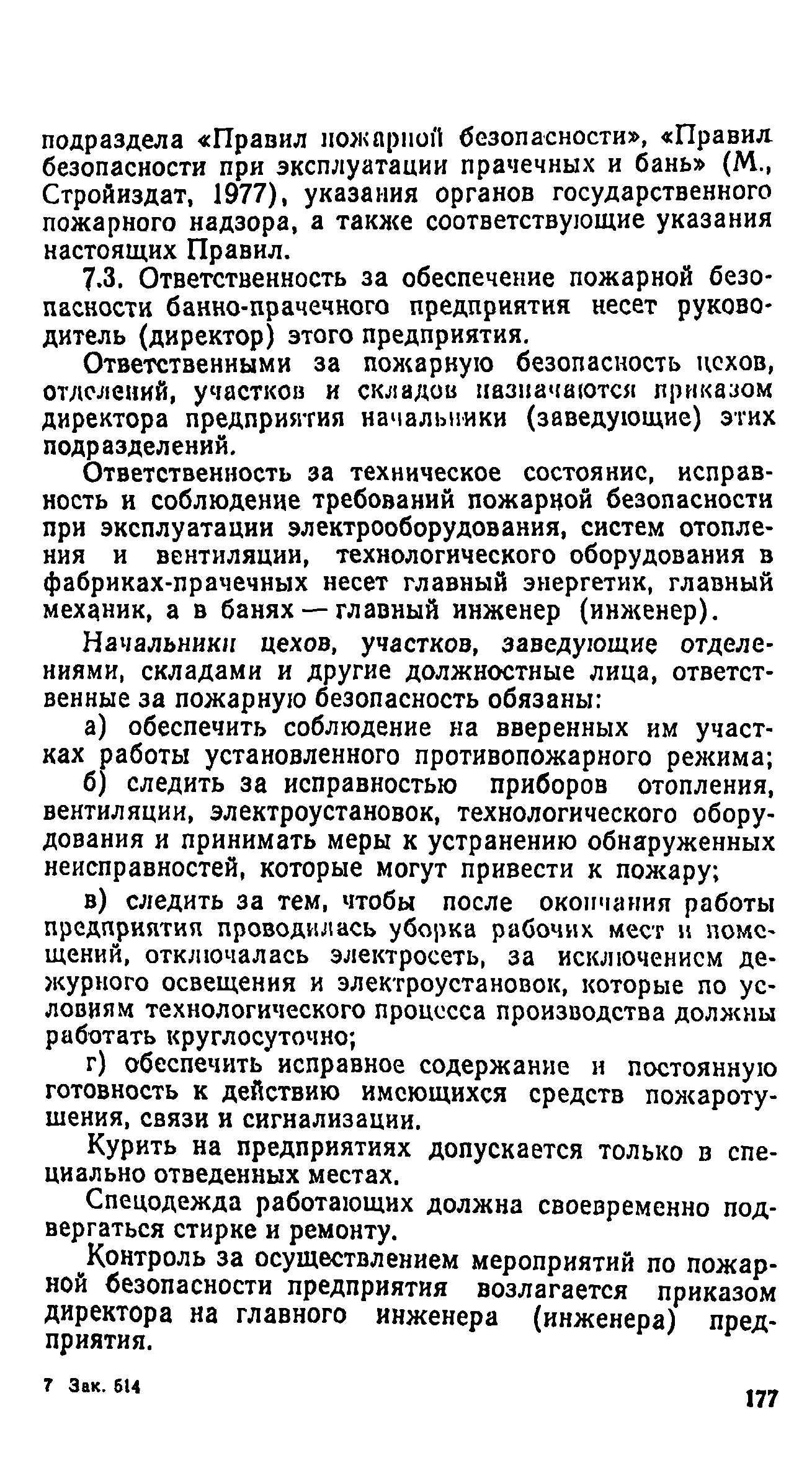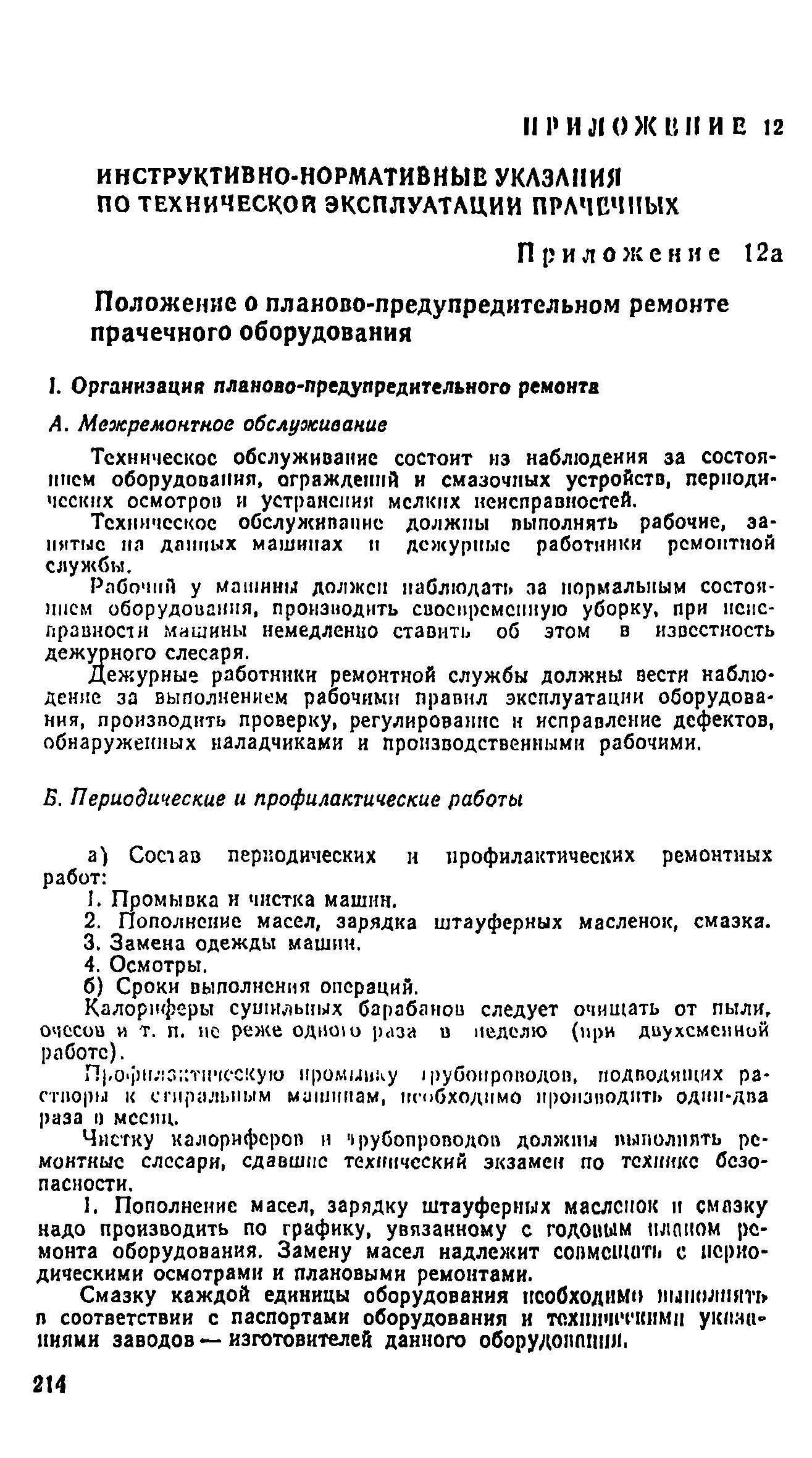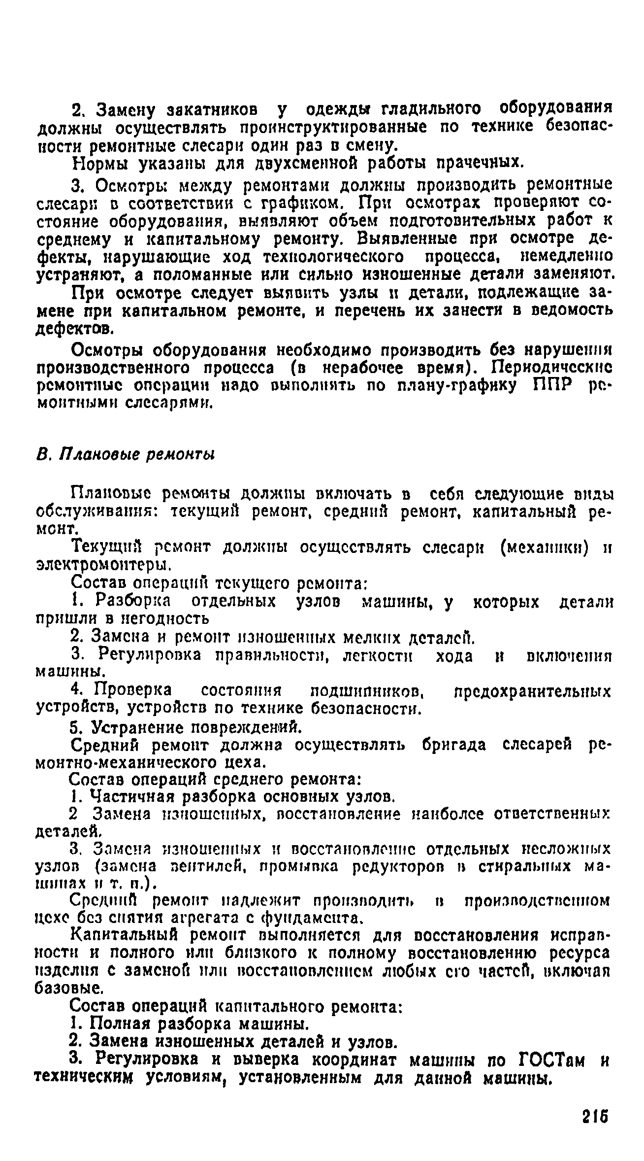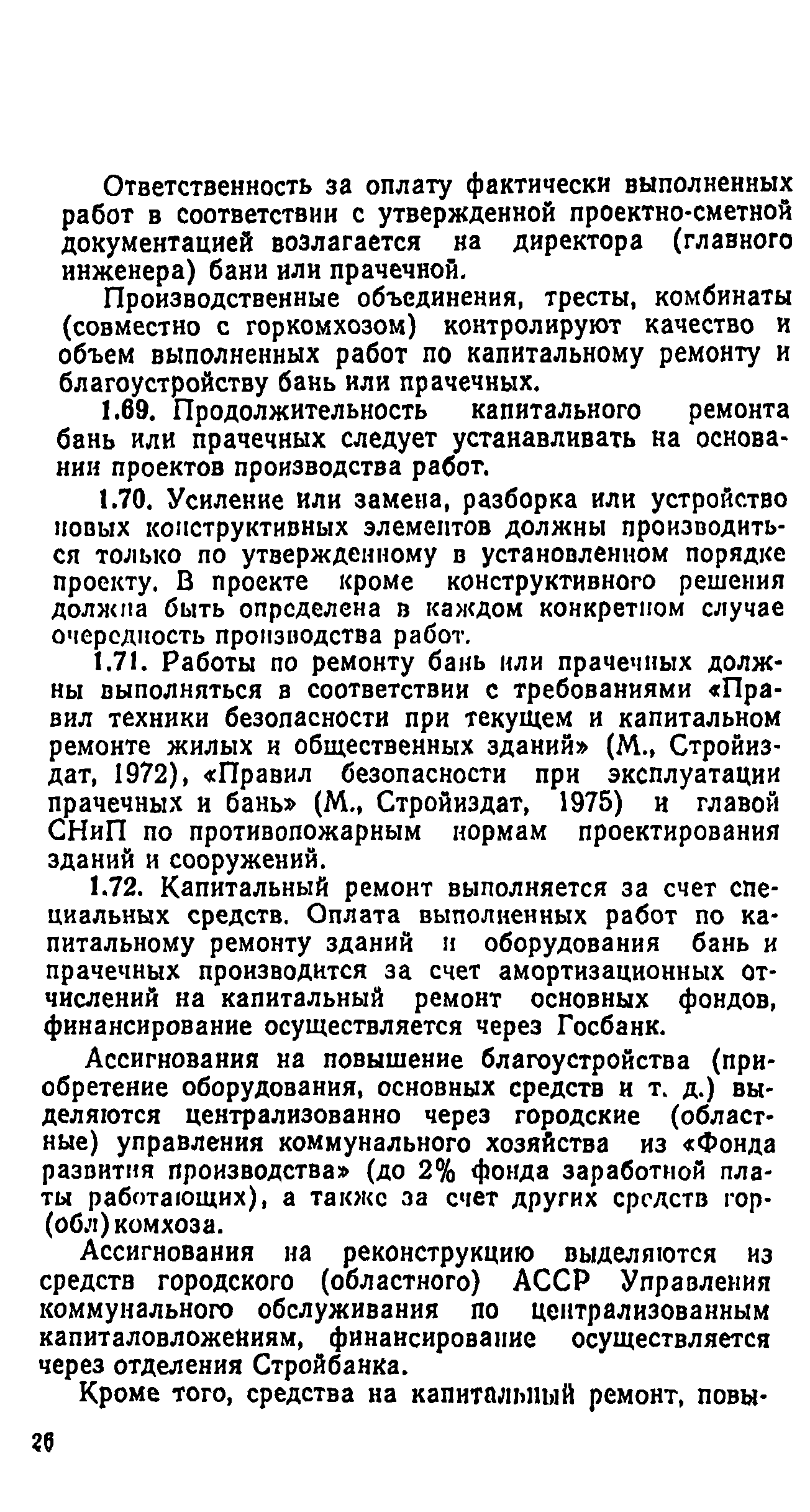 | Оглавление: | Предисловие 1. Общие положения Основные указания Управление банно-прачечным хозяйством Приемка в эксплуатацию бань и прачечных, вновь построенных и после капитального ремонта Приемка банно-прачечного хозяйства при смене руководства Система осмотра и контроля за состоянием зданий бань и прачечных Организация и планирование текущего ремонта зданий бань и прачечных Организация и планирование капитального ремонта и повышения уровня благоустройства зданий бань и прачечных Основные положения по реконструкции зданий бань и прачечных Пути повышения рентабельности бань и прачечных 2. Эксплуатация строительных конструкций и помещений Фундаменты и стены подвальных помещений Стены Перекрытия и полы Перегородки Крыши и водоотводящие устройства Окна и двери Лестницы Специальные мероприятия по технической эксплуатации зданий бань и прачечных 3. Эксплуатация инженерного оборудования Источники теплоснабжения бань и прачечных Центральное отопление Горячее водоснабжение, технологическое пароснабжение, сжатый воздух и сосуды работающие под давлением Водопровод Канализация Вентиляция Газоснабжение Электроснабжение и электрооборудование Подъемники и другие средства механизации Радиотрансляционные и телефонные сети и электрочасификация Средства автоматизации, диспетчеризации инженерного оборудования, средства связи и КИП 4. Эксплуатация технологического оборудования и инвентаря бань и прачечных Эксплуатация технологического оборудования и инвентаря бань Эксплуатация технологического оборудования и инвентаря прачечных 5. Санитарные правила содержания бань и прачечных Санитарные правила содержания бань Санитарные правила содержания прачечных 6. Эксплуатация участка территории, прилегающего к зданиям бань и прачечных 7. Основные указания по правилам техники безопасности и пожарной безопасности при эксплуатации бант и прачечных Основные указания по технике безопасности Основные указания по пожарной безопасности Приложение 1 Приложение 2 Приложение 3 Приложение 4 Приложение 5 Приложение 6 Приложение 7 Приложение 8 Приложение 9 Приложение 10 Приложение 11 Приложение 12 Приложение 13 Приложени 14 Приложение 15 |