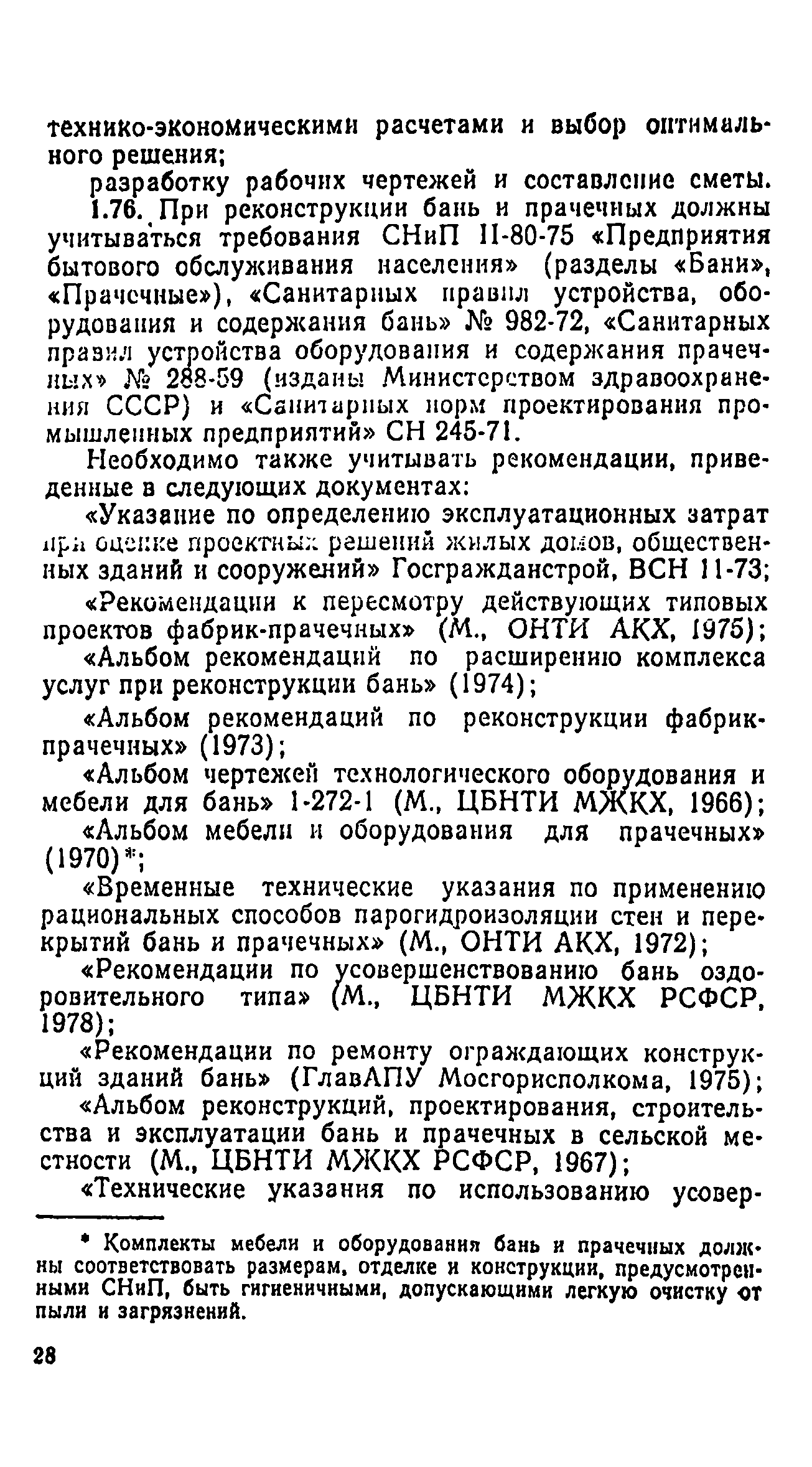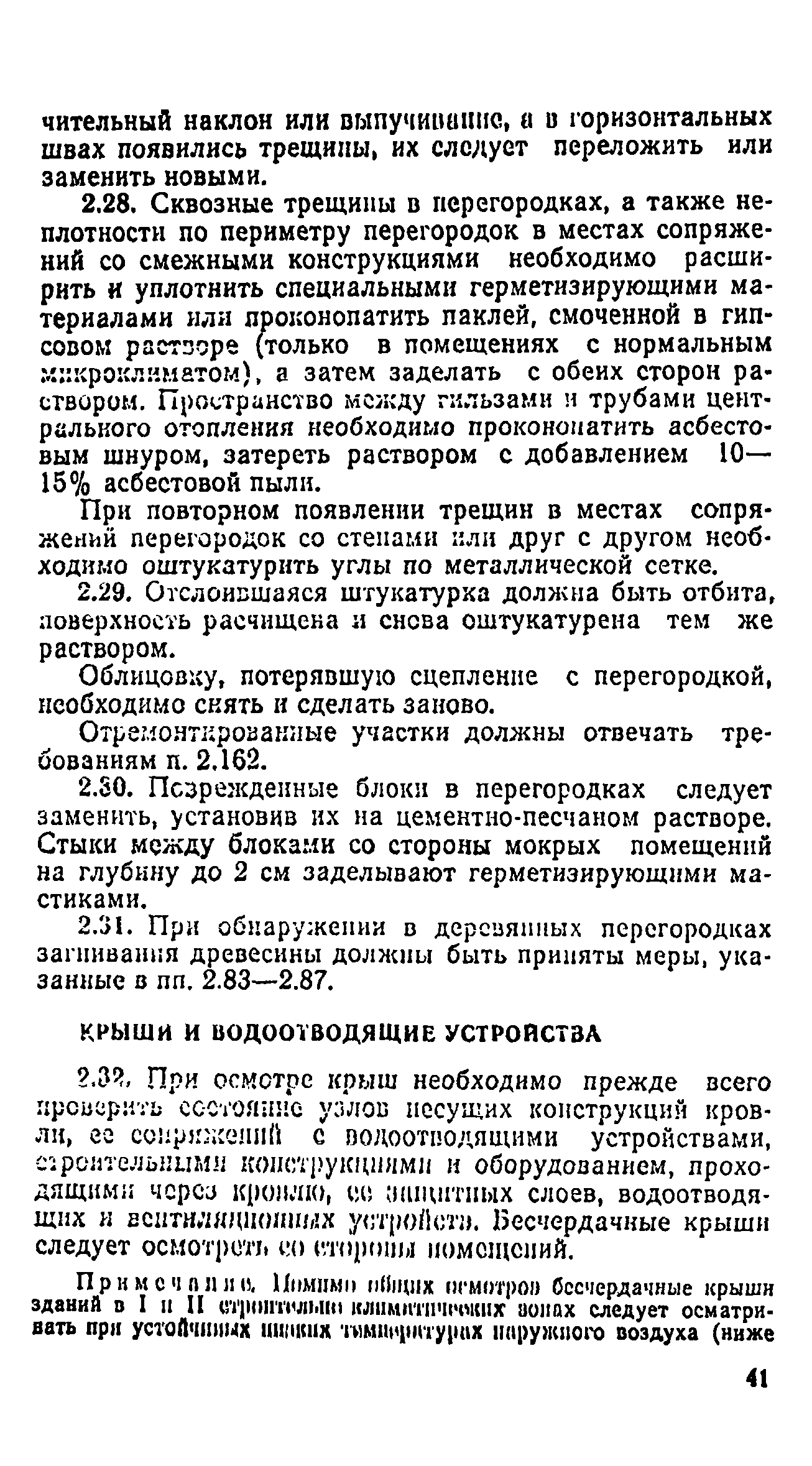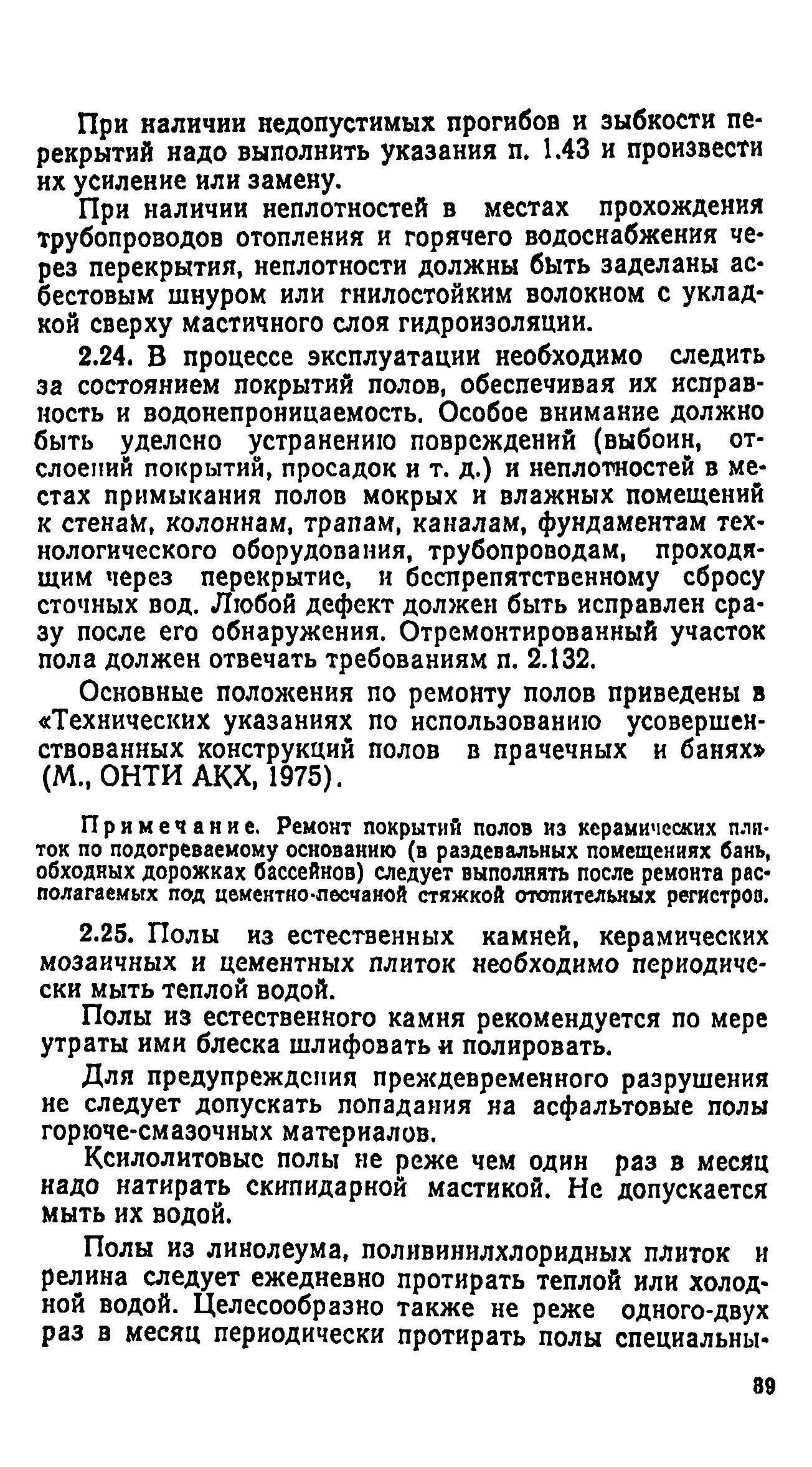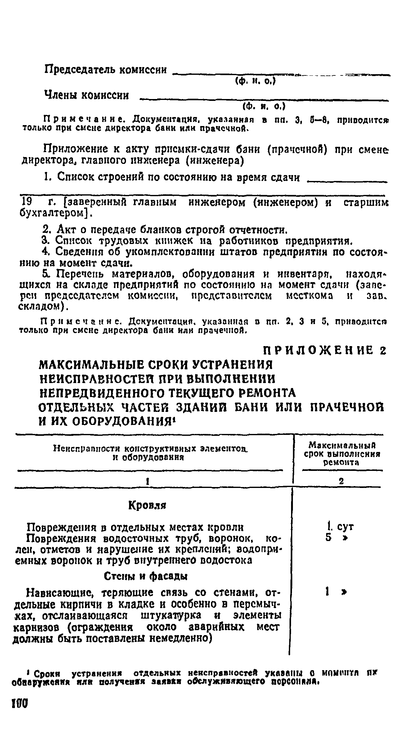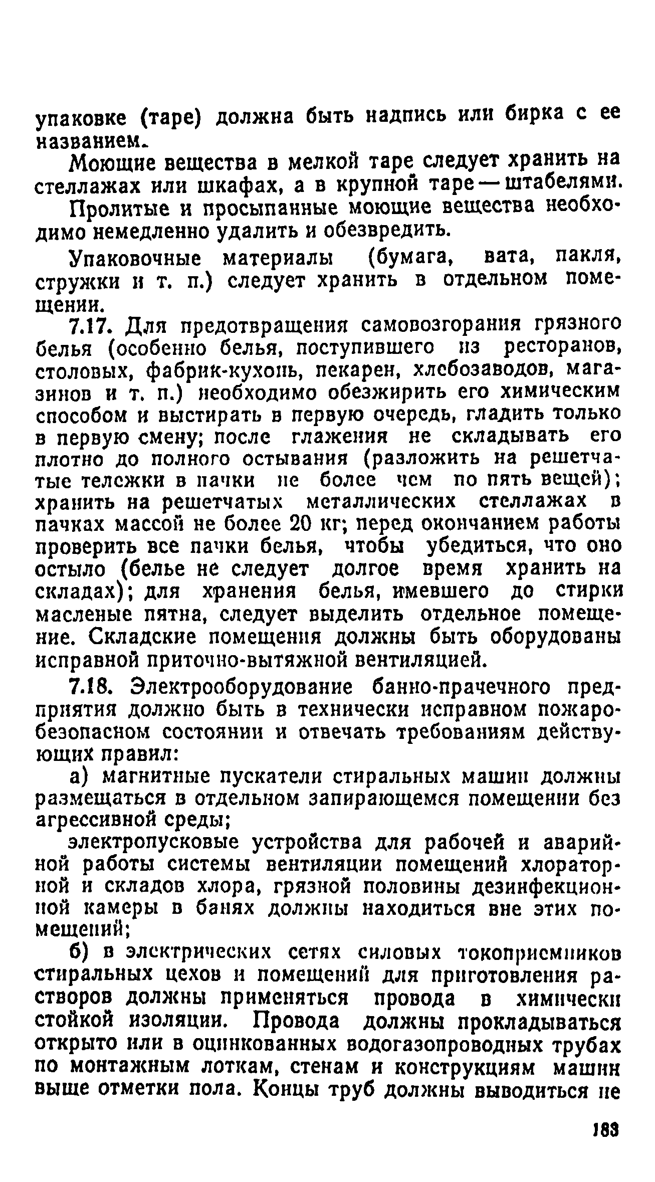 | Оглавление: | Предисловие 1. Общие положения Основные указания Управление банно-прачечным хозяйством Приемка в эксплуатацию бань и прачечных, вновь построенных и после капитального ремонта Приемка банно-прачечного хозяйства при смене руководства Система осмотра и контроля за состоянием зданий бань и прачечных Организация и планирование текущего ремонта зданий бань и прачечных Организация и планирование капитального ремонта и повышения уровня благоустройства зданий бань и прачечных Основные положения по реконструкции зданий бань и прачечных Пути повышения рентабельности бань и прачечных 2. Эксплуатация строительных конструкций и помещений Фундаменты и стены подвальных помещений Стены Перекрытия и полы Перегородки Крыши и водоотводящие устройства Окна и двери Лестницы Специальные мероприятия по технической эксплуатации зданий бань и прачечных 3. Эксплуатация инженерного оборудования Источники теплоснабжения бань и прачечных Центральное отопление Горячее водоснабжение, технологическое пароснабжение, сжатый воздух и сосуды работающие под давлением Водопровод Канализация Вентиляция Газоснабжение Электроснабжение и электрооборудование Подъемники и другие средства механизации Радиотрансляционные и телефонные сети и электрочасификация Средства автоматизации, диспетчеризации инженерного оборудования, средства связи и КИП 4. Эксплуатация технологического оборудования и инвентаря бань и прачечных Эксплуатация технологического оборудования и инвентаря бань Эксплуатация технологического оборудования и инвентаря прачечных 5. Санитарные правила содержания бань и прачечных Санитарные правила содержания бань Санитарные правила содержания прачечных 6. Эксплуатация участка территории, прилегающего к зданиям бань и прачечных 7. Основные указания по правилам техники безопасности и пожарной безопасности при эксплуатации бант и прачечных Основные указания по технике безопасности Основные указания по пожарной безопасности Приложение 1 Приложение 2 Приложение 3 Приложение 4 Приложение 5 Приложение 6 Приложение 7 Приложение 8 Приложение 9 Приложение 10 Приложение 11 Приложение 12 Приложение 13 Приложени 14 Приложение 15 |
