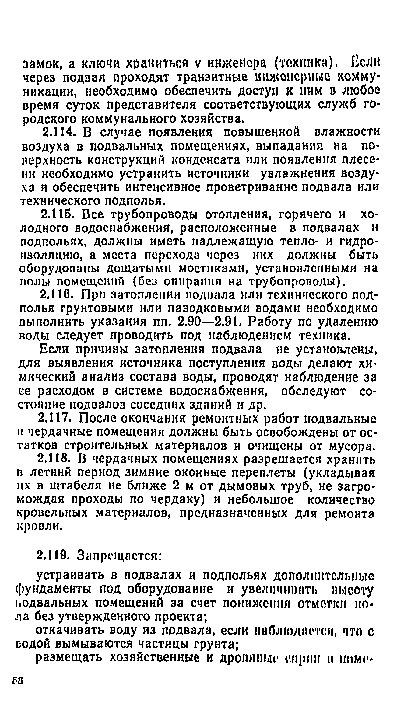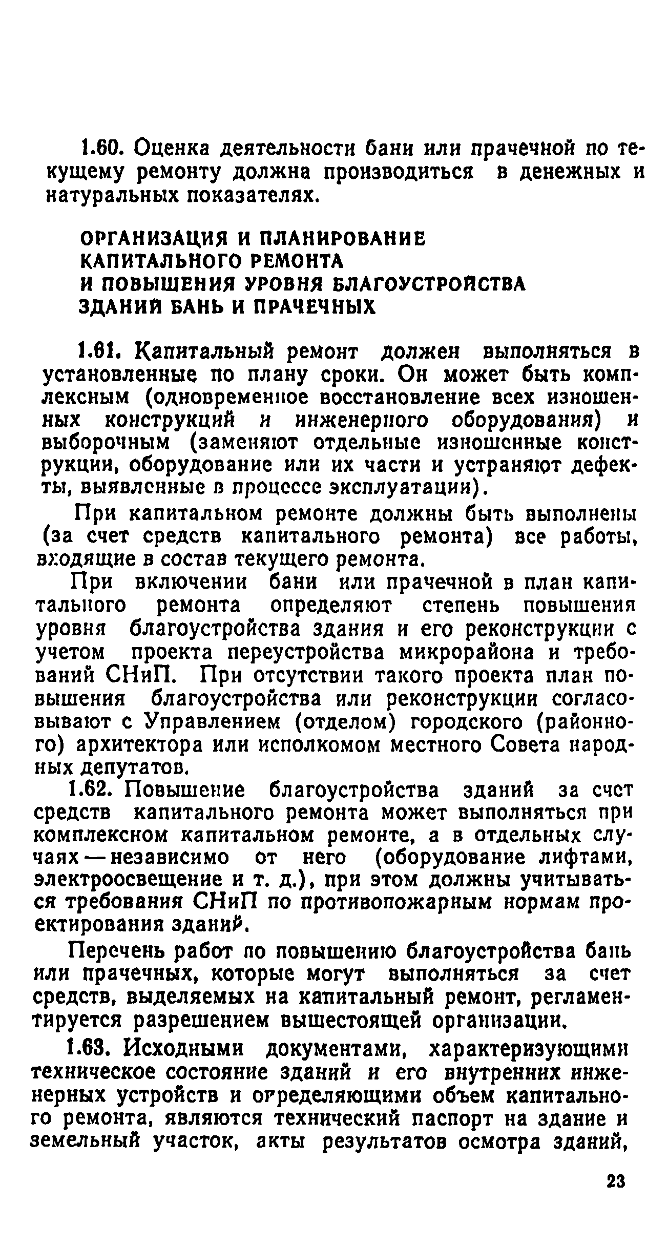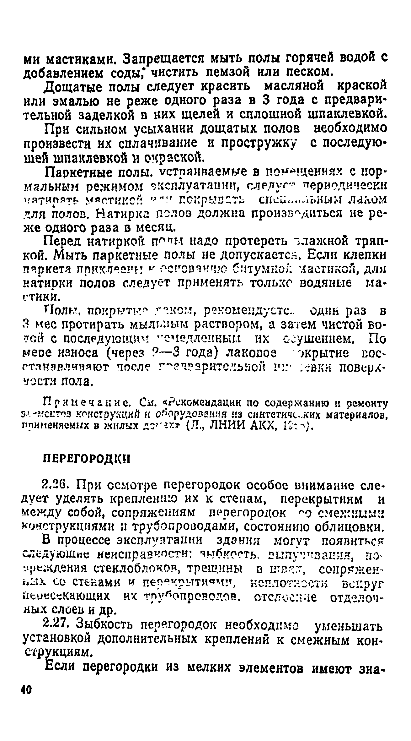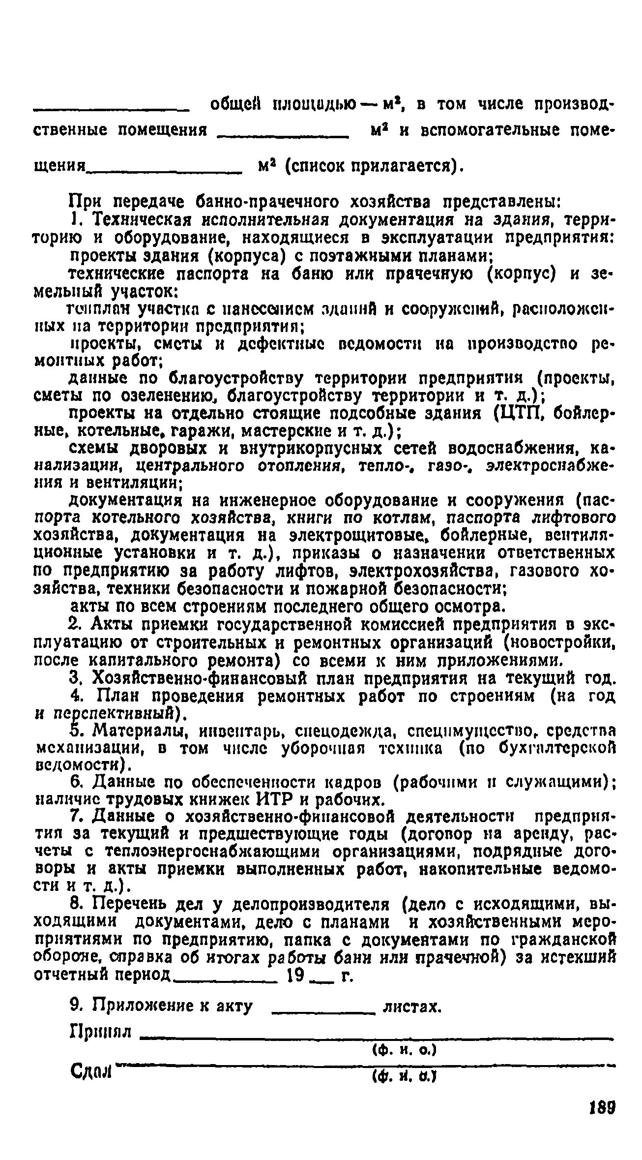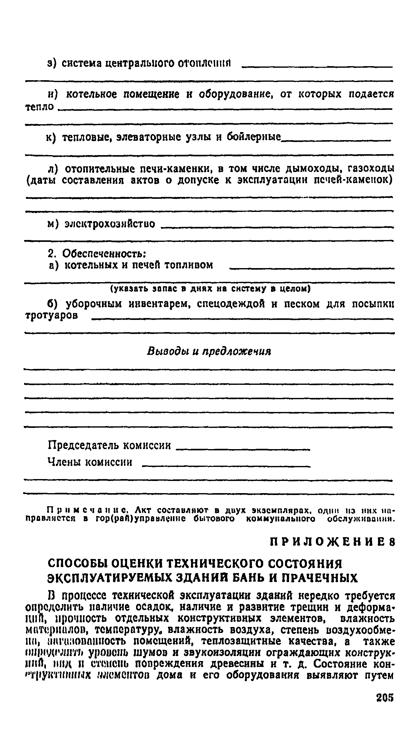 | Оглавление: | Предисловие 1. Общие положения Основные указания Управление банно-прачечным хозяйством Приемка в эксплуатацию бань и прачечных, вновь построенных и после капитального ремонта Приемка банно-прачечного хозяйства при смене руководства Система осмотра и контроля за состоянием зданий бань и прачечных Организация и планирование текущего ремонта зданий бань и прачечных Организация и планирование капитального ремонта и повышения уровня благоустройства зданий бань и прачечных Основные положения по реконструкции зданий бань и прачечных Пути повышения рентабельности бань и прачечных 2. Эксплуатация строительных конструкций и помещений Фундаменты и стены подвальных помещений Стены Перекрытия и полы Перегородки Крыши и водоотводящие устройства Окна и двери Лестницы Специальные мероприятия по технической эксплуатации зданий бань и прачечных 3. Эксплуатация инженерного оборудования Источники теплоснабжения бань и прачечных Центральное отопление Горячее водоснабжение, технологическое пароснабжение, сжатый воздух и сосуды работающие под давлением Водопровод Канализация Вентиляция Газоснабжение Электроснабжение и электрооборудование Подъемники и другие средства механизации Радиотрансляционные и телефонные сети и электрочасификация Средства автоматизации, диспетчеризации инженерного оборудования, средства связи и КИП 4. Эксплуатация технологического оборудования и инвентаря бань и прачечных Эксплуатация технологического оборудования и инвентаря бань Эксплуатация технологического оборудования и инвентаря прачечных 5. Санитарные правила содержания бань и прачечных Санитарные правила содержания бань Санитарные правила содержания прачечных 6. Эксплуатация участка территории, прилегающего к зданиям бань и прачечных 7. Основные указания по правилам техники безопасности и пожарной безопасности при эксплуатации бант и прачечных Основные указания по технике безопасности Основные указания по пожарной безопасности Приложение 1 Приложение 2 Приложение 3 Приложение 4 Приложение 5 Приложение 6 Приложение 7 Приложение 8 Приложение 9 Приложение 10 Приложение 11 Приложение 12 Приложение 13 Приложени 14 Приложение 15 |