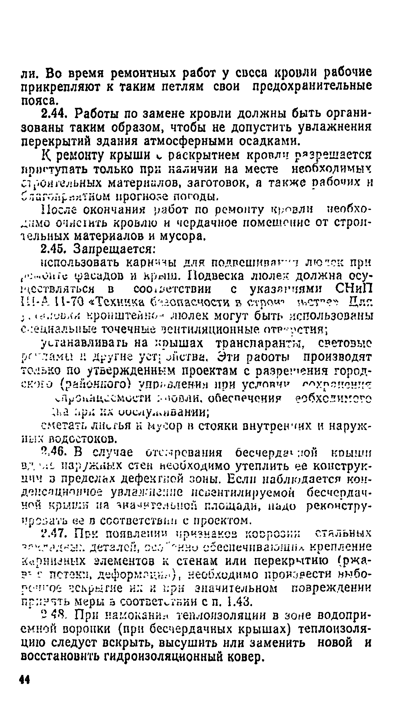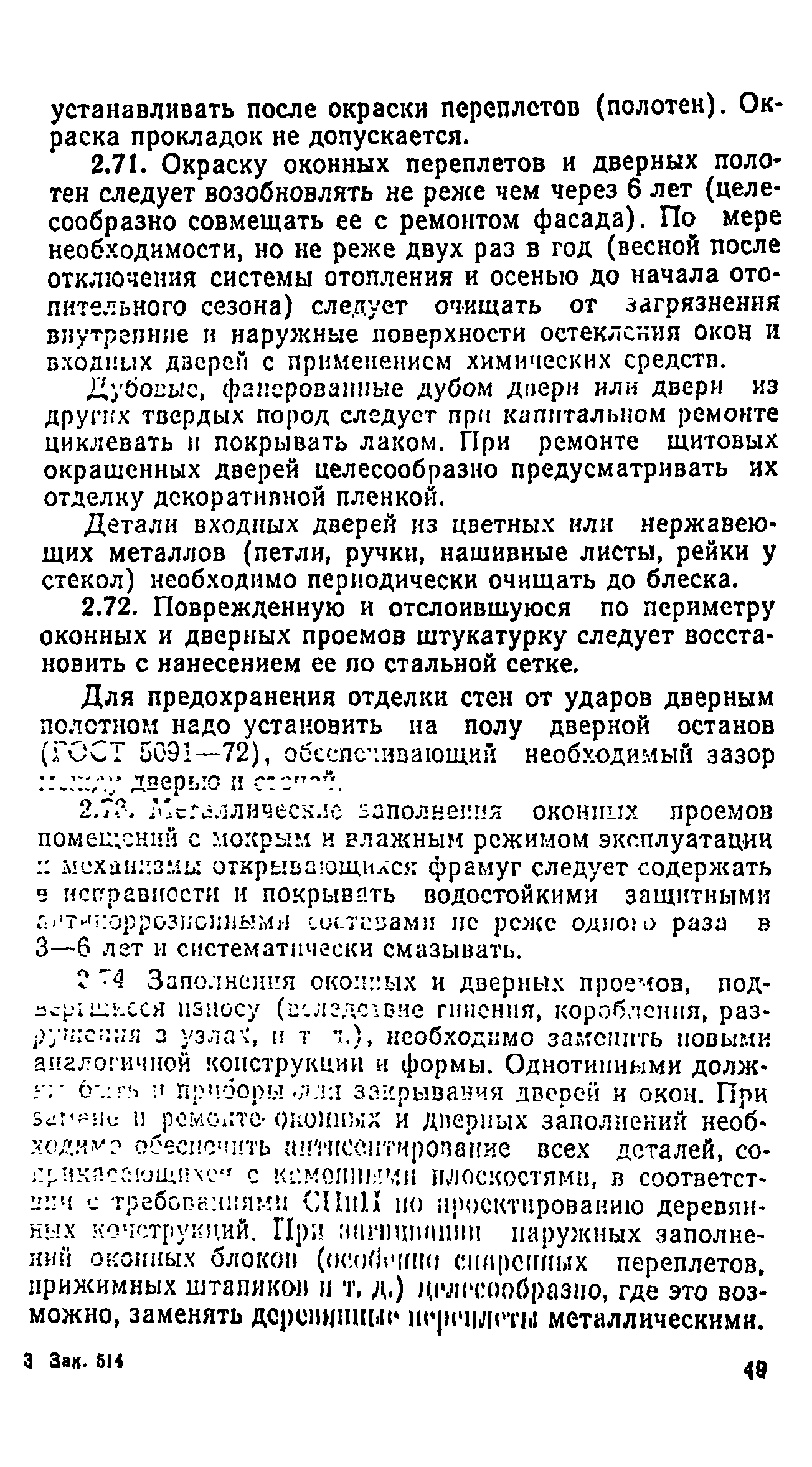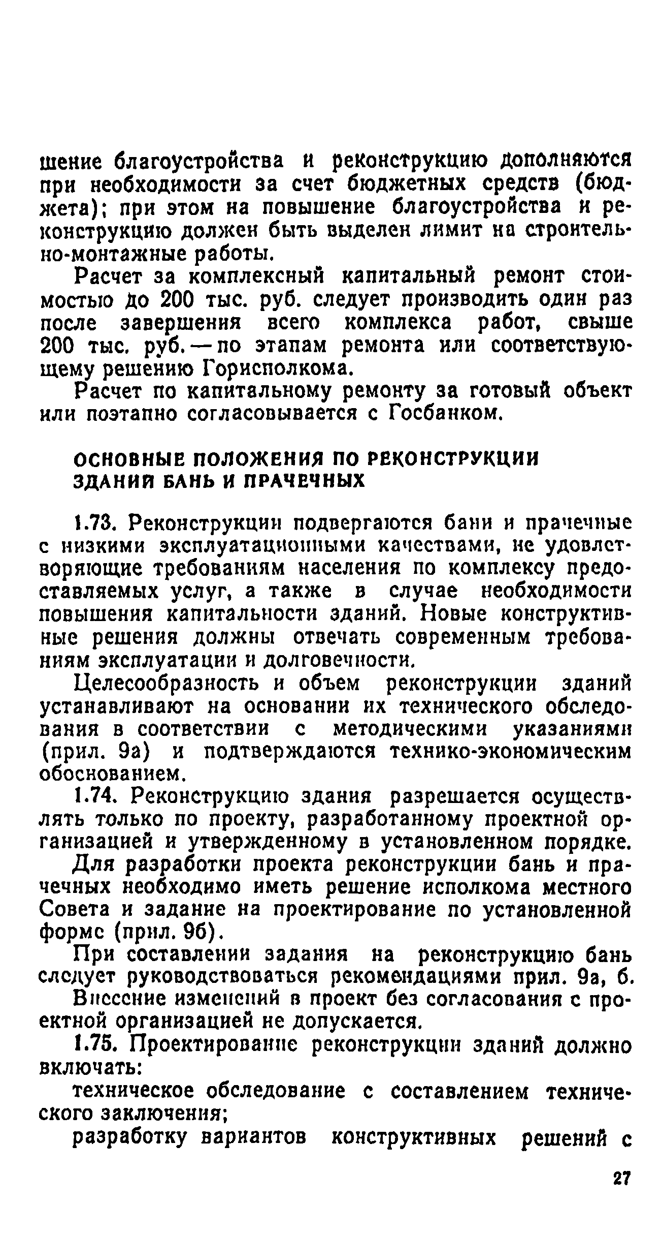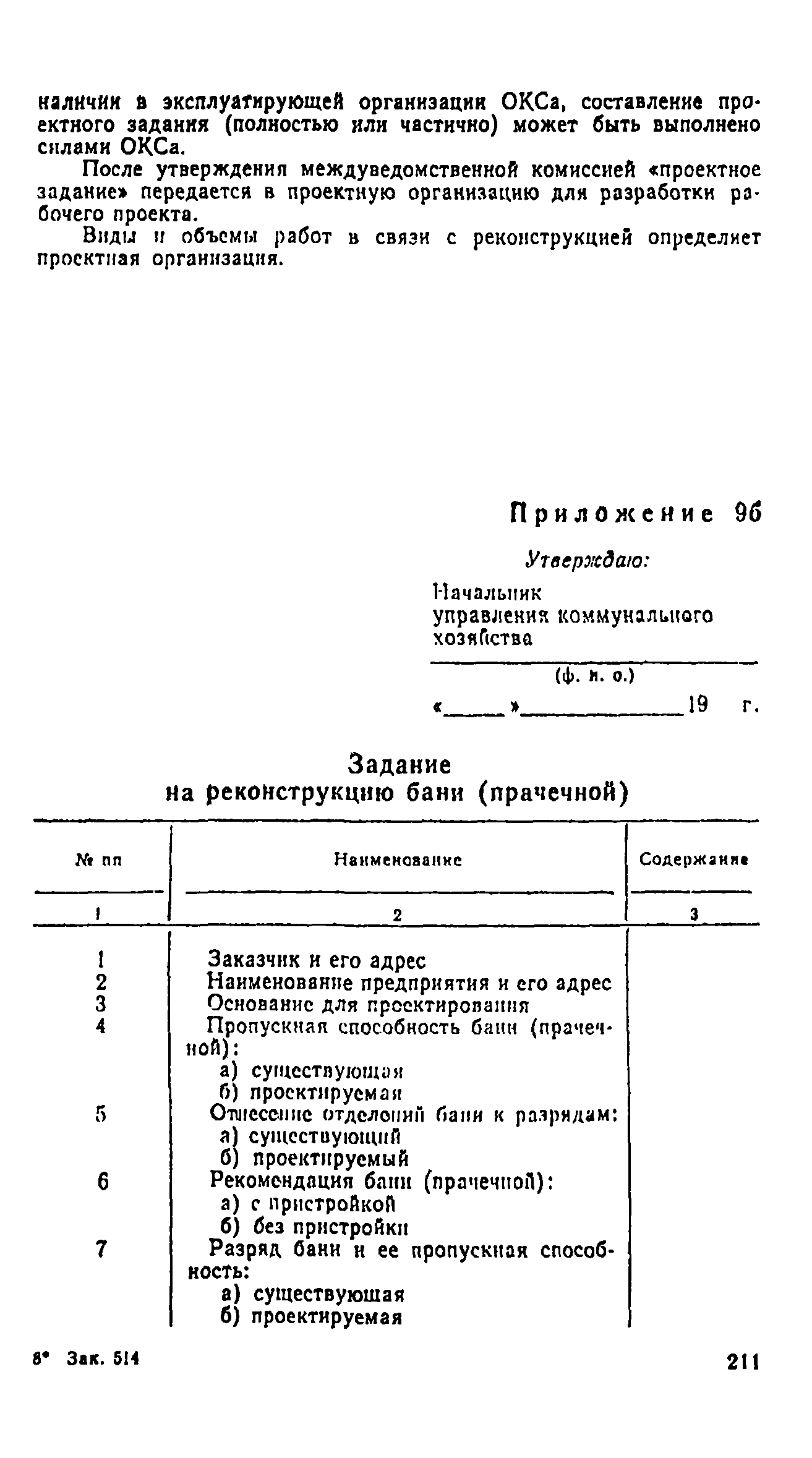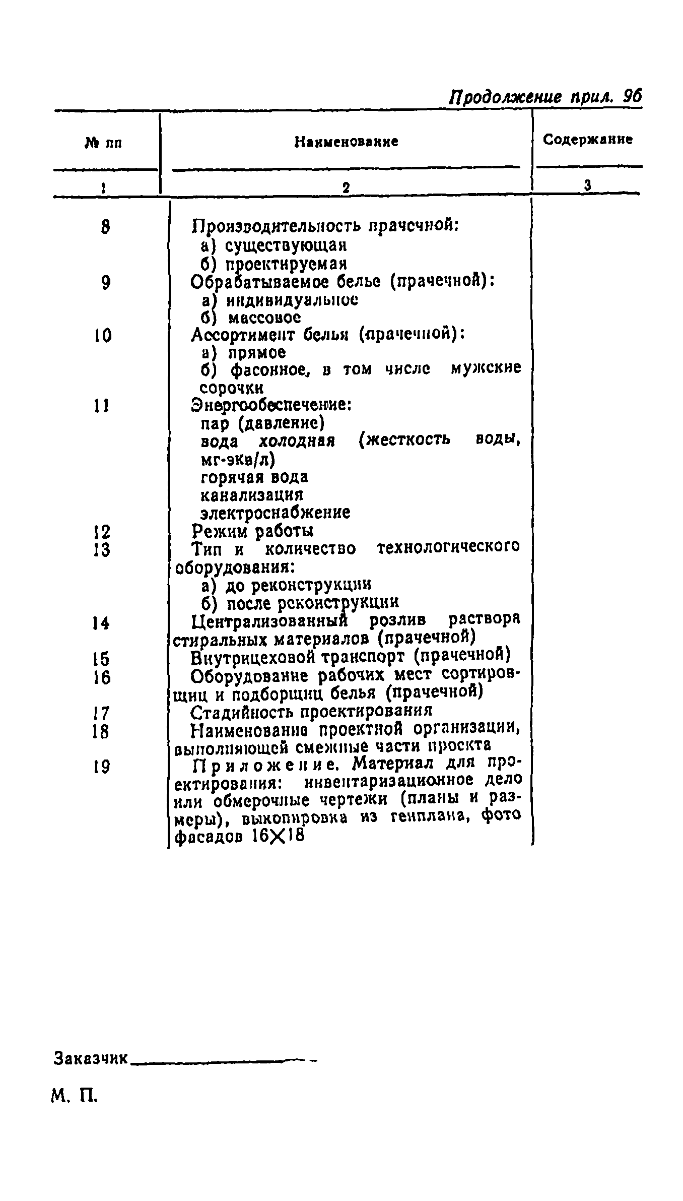 | Оглавление: | Предисловие 1. Общие положения Основные указания Управление банно-прачечным хозяйством Приемка в эксплуатацию бань и прачечных, вновь построенных и после капитального ремонта Приемка банно-прачечного хозяйства при смене руководства Система осмотра и контроля за состоянием зданий бань и прачечных Организация и планирование текущего ремонта зданий бань и прачечных Организация и планирование капитального ремонта и повышения уровня благоустройства зданий бань и прачечных Основные положения по реконструкции зданий бань и прачечных Пути повышения рентабельности бань и прачечных 2. Эксплуатация строительных конструкций и помещений Фундаменты и стены подвальных помещений Стены Перекрытия и полы Перегородки Крыши и водоотводящие устройства Окна и двери Лестницы Специальные мероприятия по технической эксплуатации зданий бань и прачечных 3. Эксплуатация инженерного оборудования Источники теплоснабжения бань и прачечных Центральное отопление Горячее водоснабжение, технологическое пароснабжение, сжатый воздух и сосуды работающие под давлением Водопровод Канализация Вентиляция Газоснабжение Электроснабжение и электрооборудование Подъемники и другие средства механизации Радиотрансляционные и телефонные сети и электрочасификация Средства автоматизации, диспетчеризации инженерного оборудования, средства связи и КИП 4. Эксплуатация технологического оборудования и инвентаря бань и прачечных Эксплуатация технологического оборудования и инвентаря бань Эксплуатация технологического оборудования и инвентаря прачечных 5. Санитарные правила содержания бань и прачечных Санитарные правила содержания бань Санитарные правила содержания прачечных 6. Эксплуатация участка территории, прилегающего к зданиям бань и прачечных 7. Основные указания по правилам техники безопасности и пожарной безопасности при эксплуатации бант и прачечных Основные указания по технике безопасности Основные указания по пожарной безопасности Приложение 1 Приложение 2 Приложение 3 Приложение 4 Приложение 5 Приложение 6 Приложение 7 Приложение 8 Приложение 9 Приложение 10 Приложение 11 Приложение 12 Приложение 13 Приложени 14 Приложение 15 |