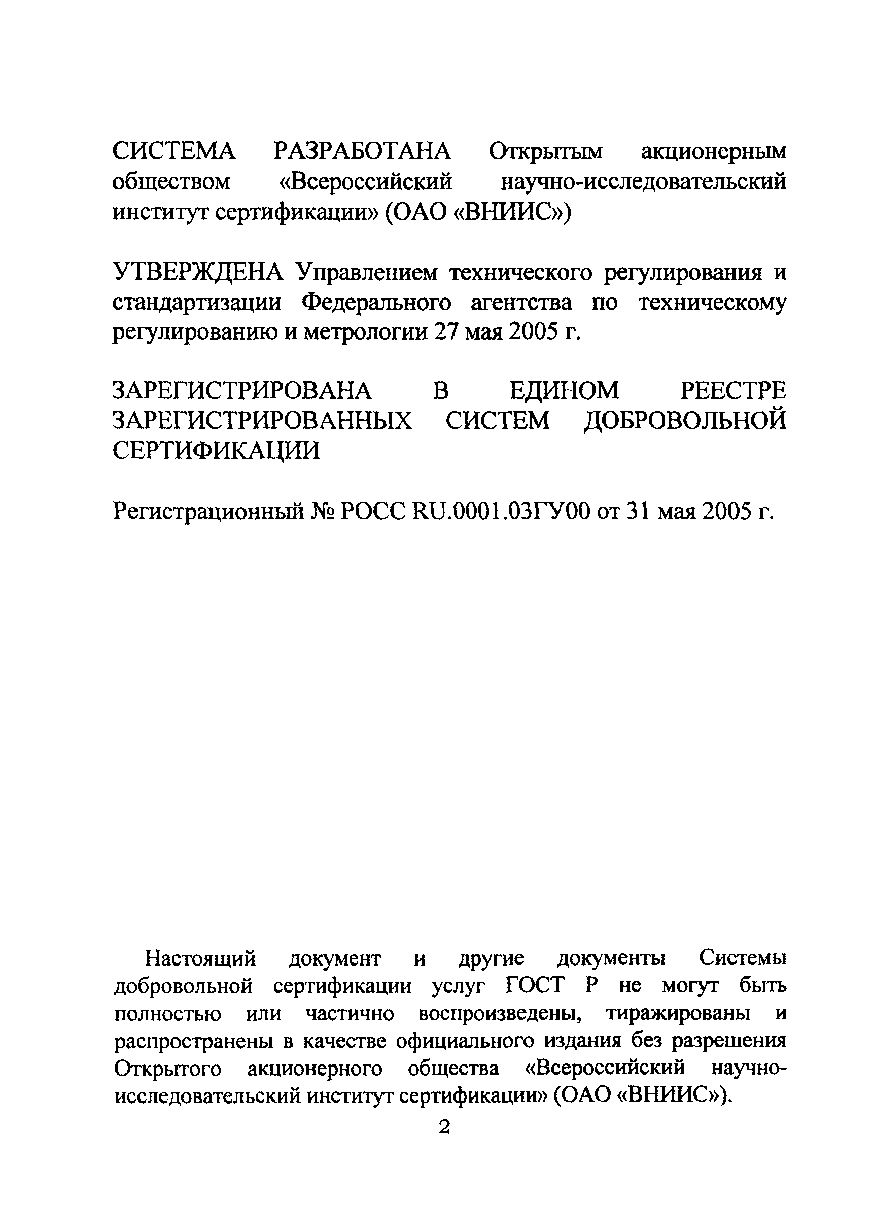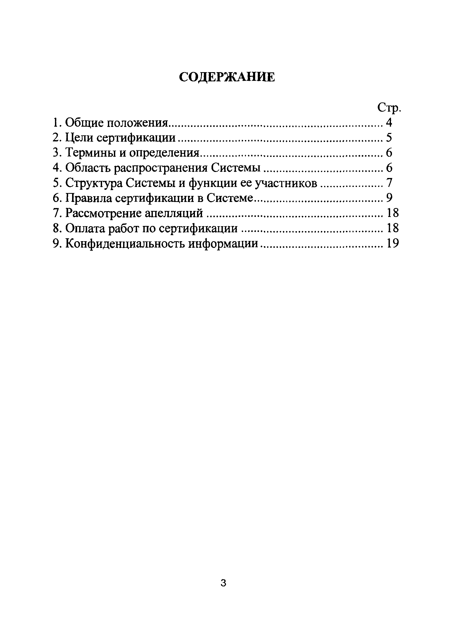 | Оглавление: | 1. Общие положения 2. Цели сертификации 3. Термины и определения 4. Область распространения Системы 5. Структура Системы и функции ее участников 6. Правила сертификации в Системе 7. Рассмотрение апелляций 8. Оплата работ по сертификации 9. Конфиденциальность информации |