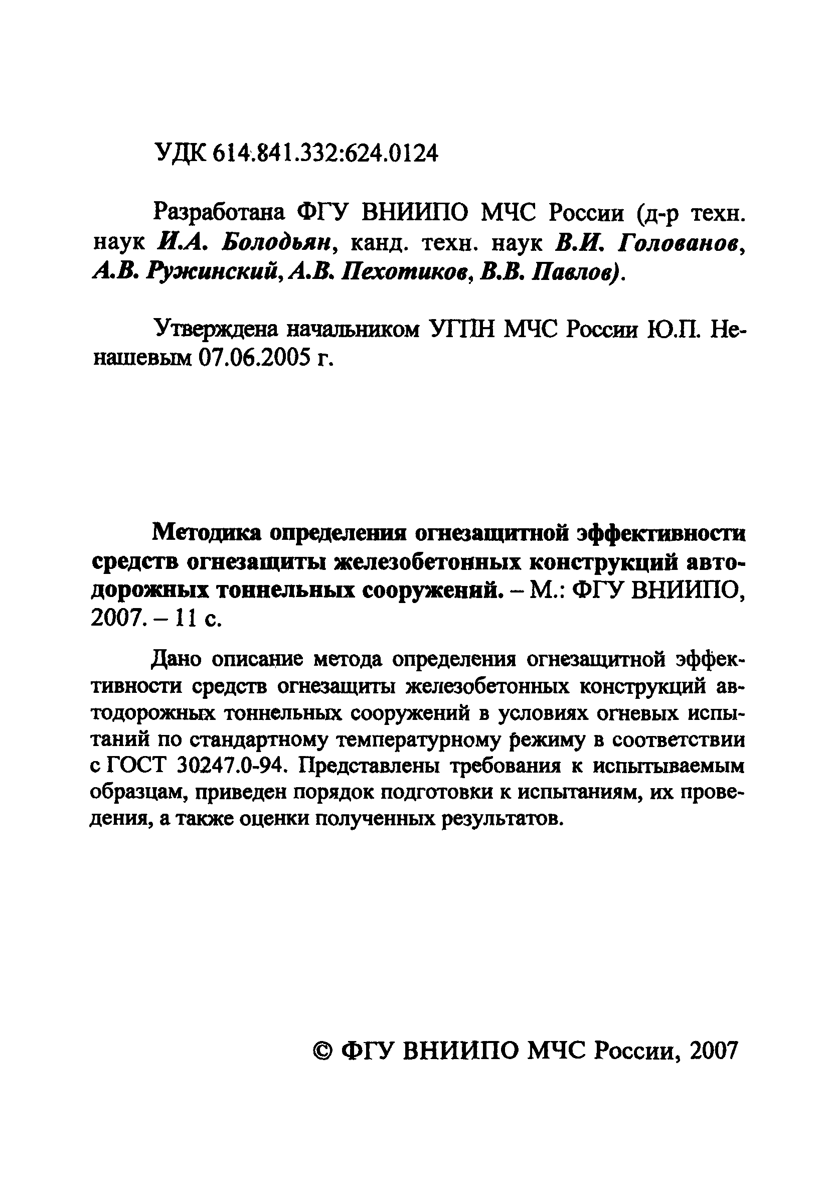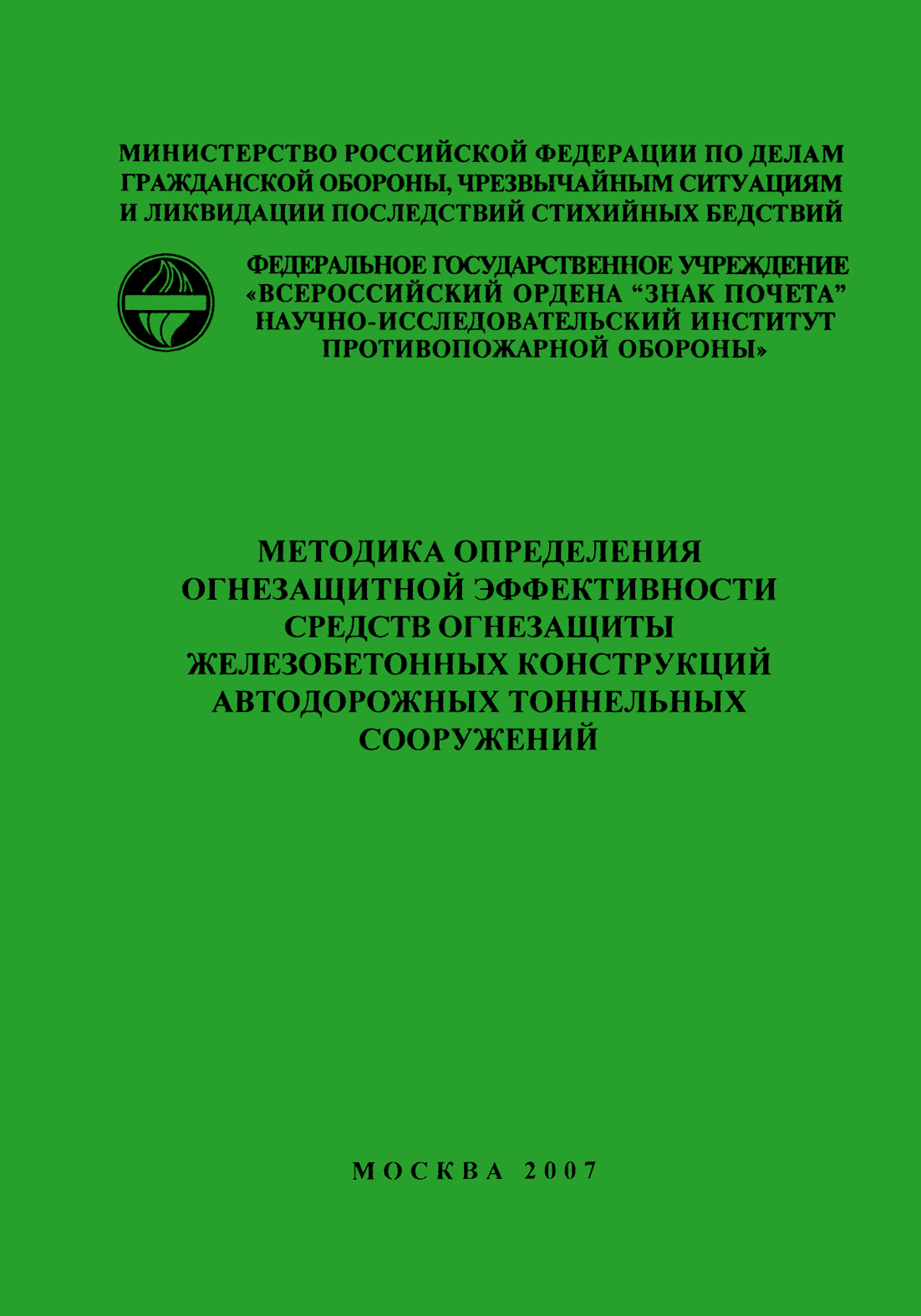 | Название рус.: | Методика определения огнезащитной эффективности средств огнезащиты железобетонных конструкций автодорожных тоннельных сооружений |