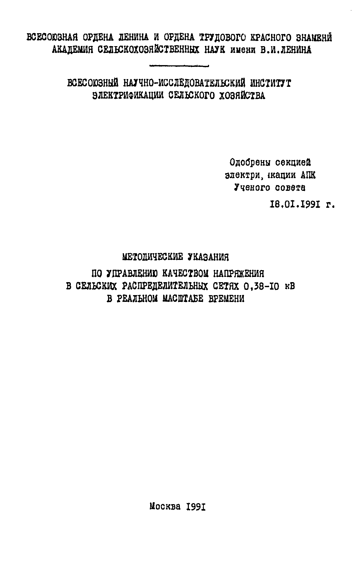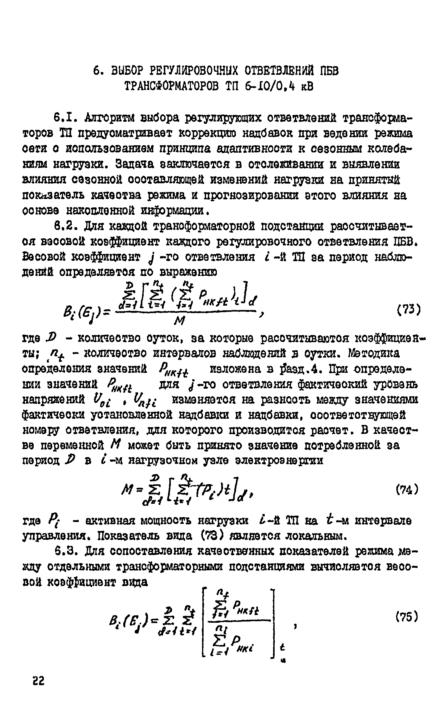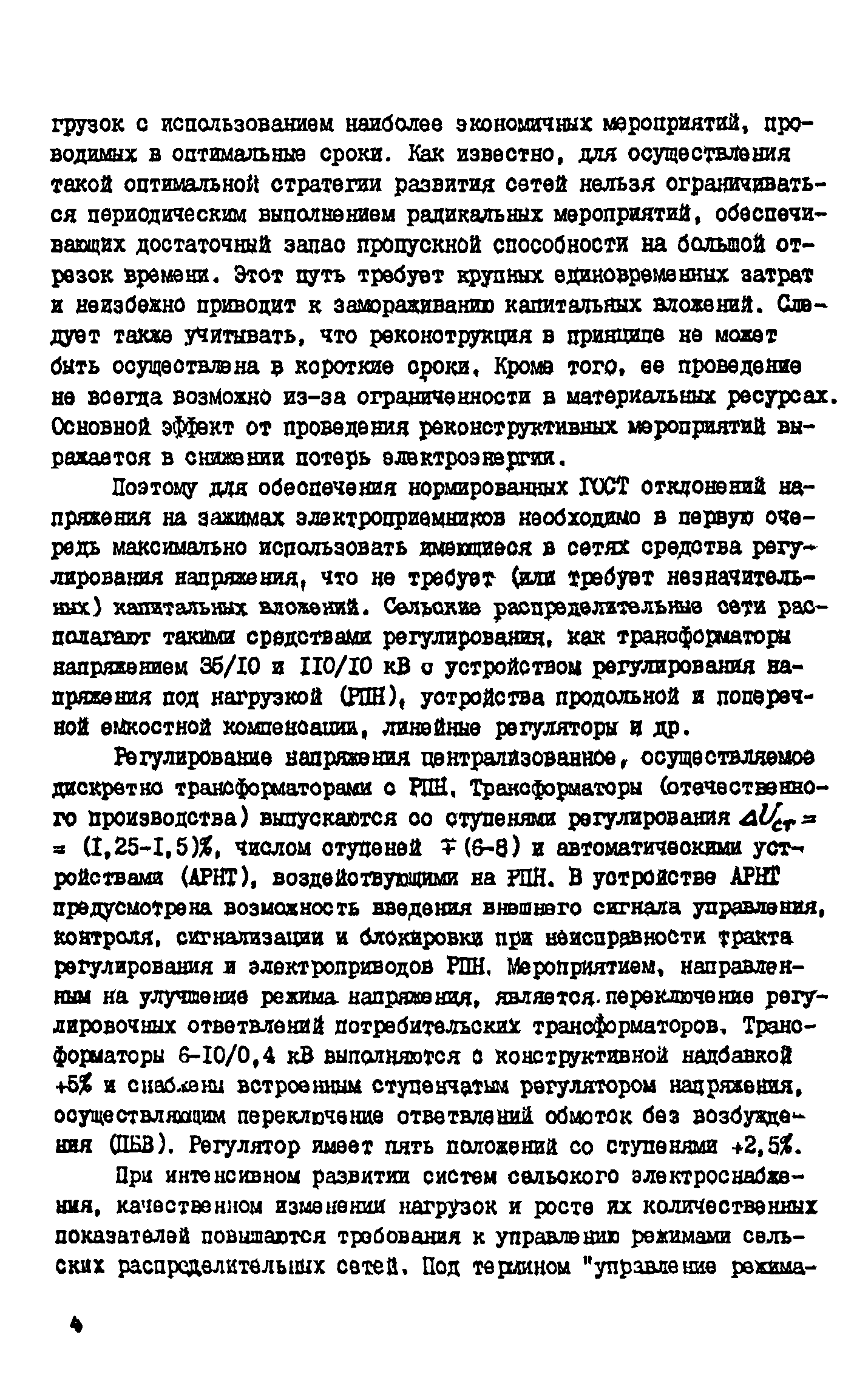 Методические указания по управлению качеством напряжения в сельских распределительных сетях 0,38 - 10 кВ в реальном масштабе времени| Статус: | действует | | Название рус.: | Методические указания по управлению качеством напряжения в сельских распределительных сетях 0,38 - 10 кВ в реальном масштабе времени | | Дата добавления в базу: | 01.09.2013 | | Дата актуализации: | 01.01.2021 | | Область применения: | В методических указаниях рассматриваются вопросы оценки качества напряжения в сельской распределительной сети 0,38 - 10 кВ и управления режимом напряжения в реальном масштабе времени. Методика ориентирована на использование современных средств телеконтроля, телеуправления и вычислительной техники. Указания предназначены для специалистов, занимающихся эксплуатацией сельских электрических сетей 0,38 - 10 кВ. | | Оглавление: | Введение I. Общие положения методики управления текущим режимом напряжения в сельских распределительных сетях 0,38 - 10 кВ 2. Модель объекта управления 3. Идентификация линий электропередачи низкого напряжения 4. Оценка качества текущего режима распределительной сети 5. Алгоритм выбора управляющих воздействий на режим напряжения распределительной сети 6. Выбор регулировочных ответвлений ПБВ трансформаторов ТП 6 - 10/0,4 кВ 7. Корректировка моделей при изменении условий функционирования действующей электрической распределительной сети Список литературы | | Разработан: | ВИЭСХ