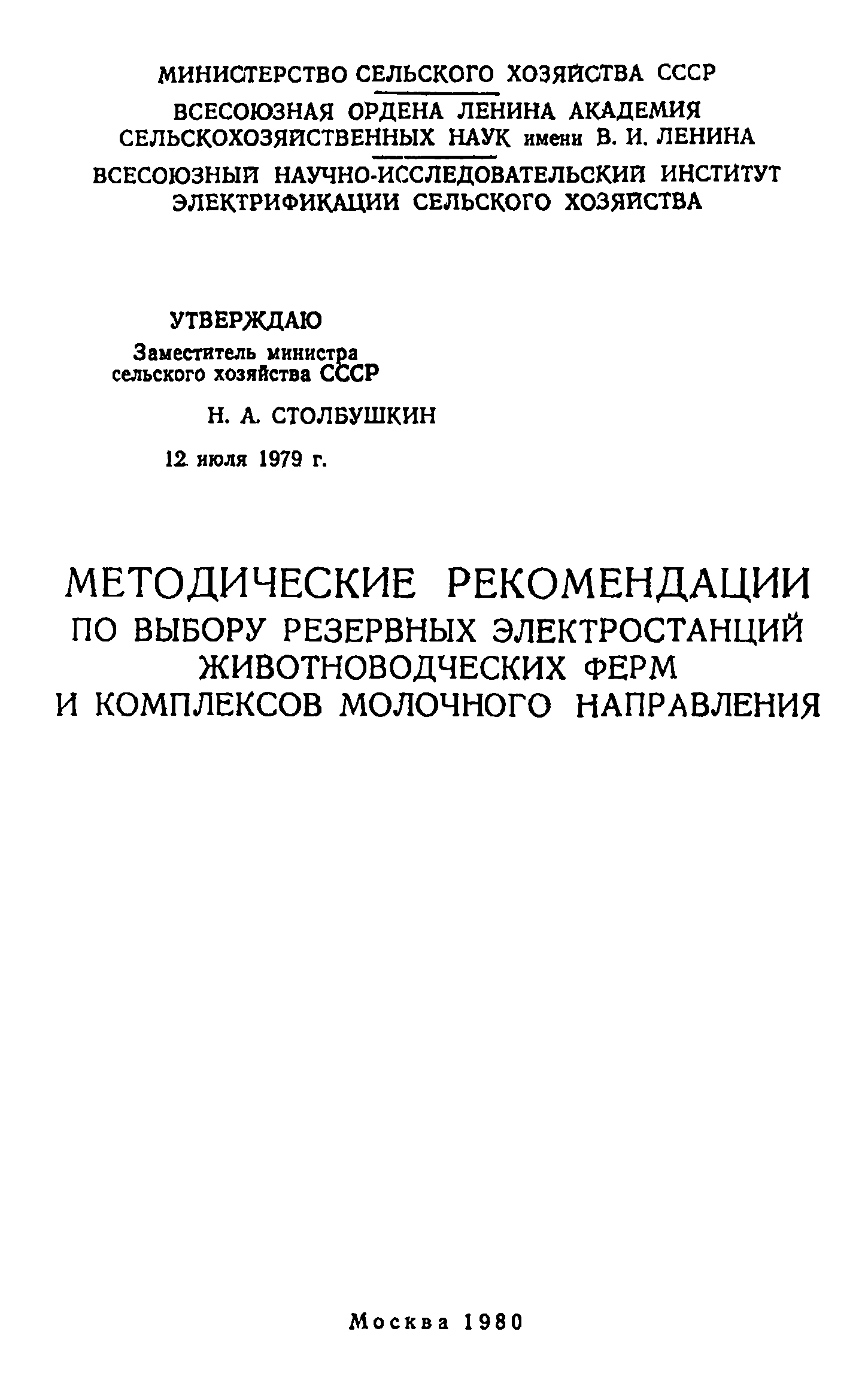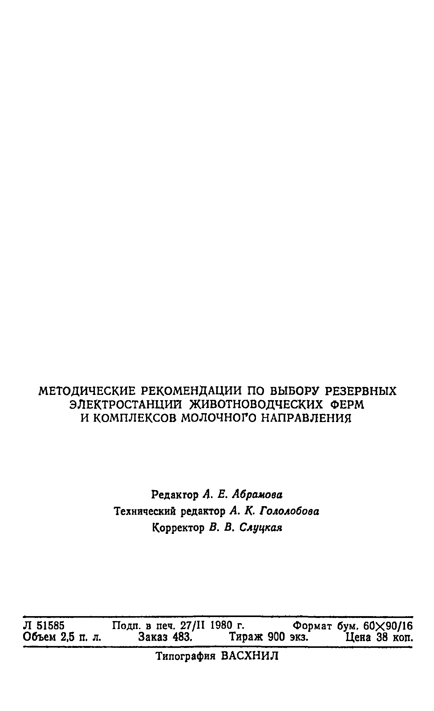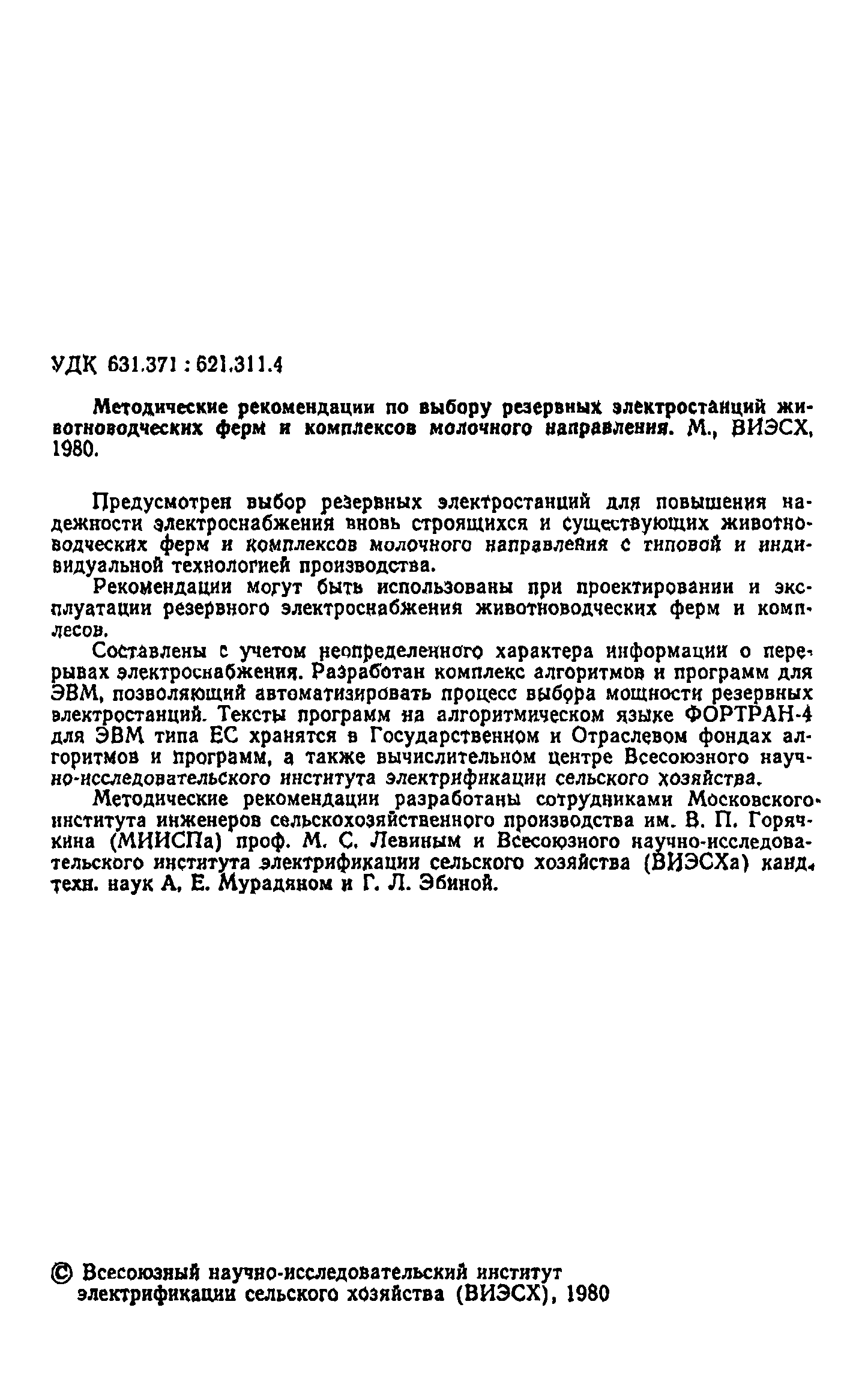 | Название рус.: | Методические рекомендации по выбору резервных электростанций животноводческих ферм и комплексов молочного направления |
