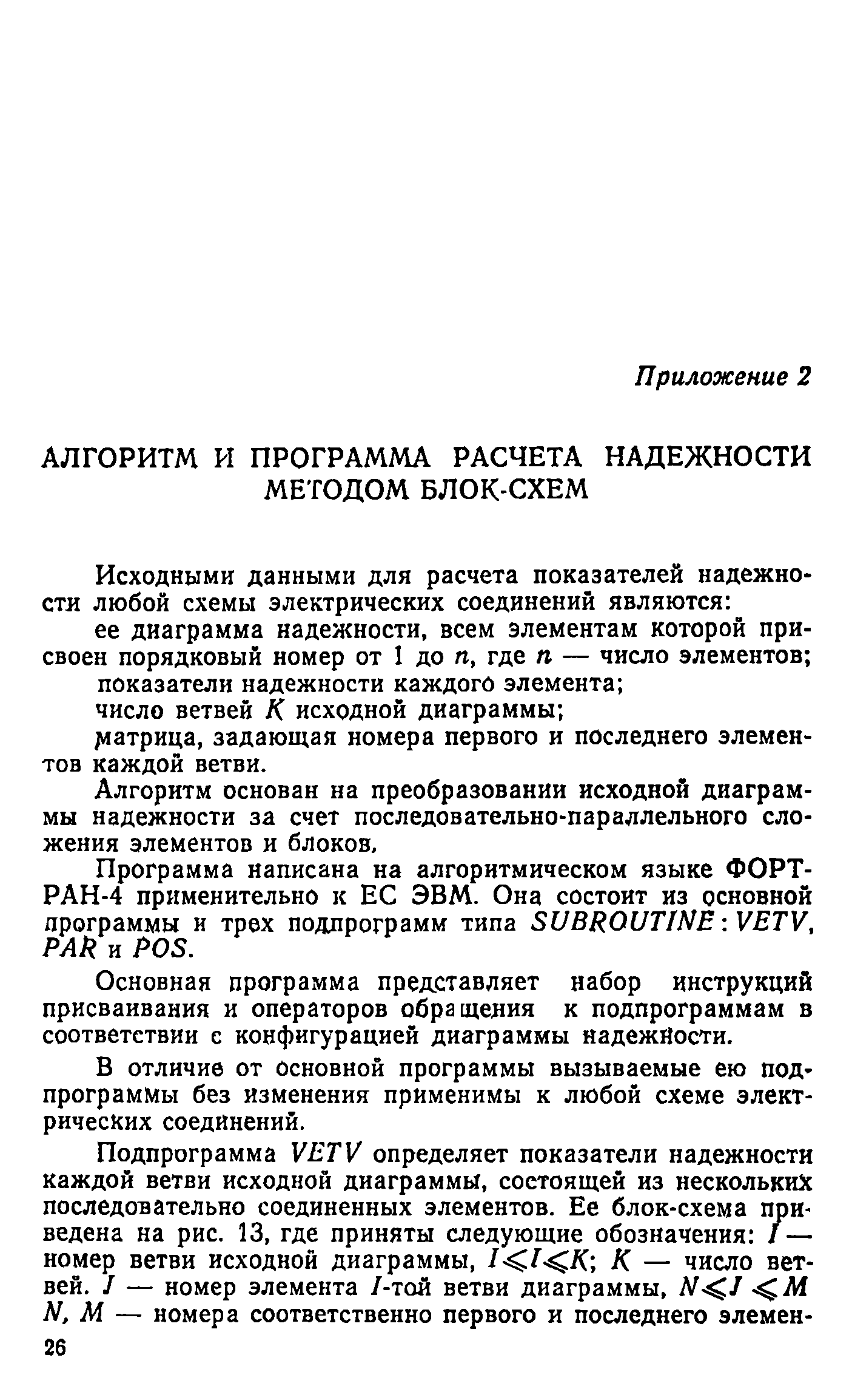 | Оглавление: | Введение Основные положения и их обоснование Приложения: 1. Определение области изменения показателей надежности схем централизованного электроснабжения и ущербов при отсутствии резервных автономных источников 2. Алгоритм и программа расчета надежности методом блок-схем 3. Алгоритм и программа определения оптимальной мощности резервной электростанции методом районирования 4. Расчет статической устойчивости электроприводов Литература |