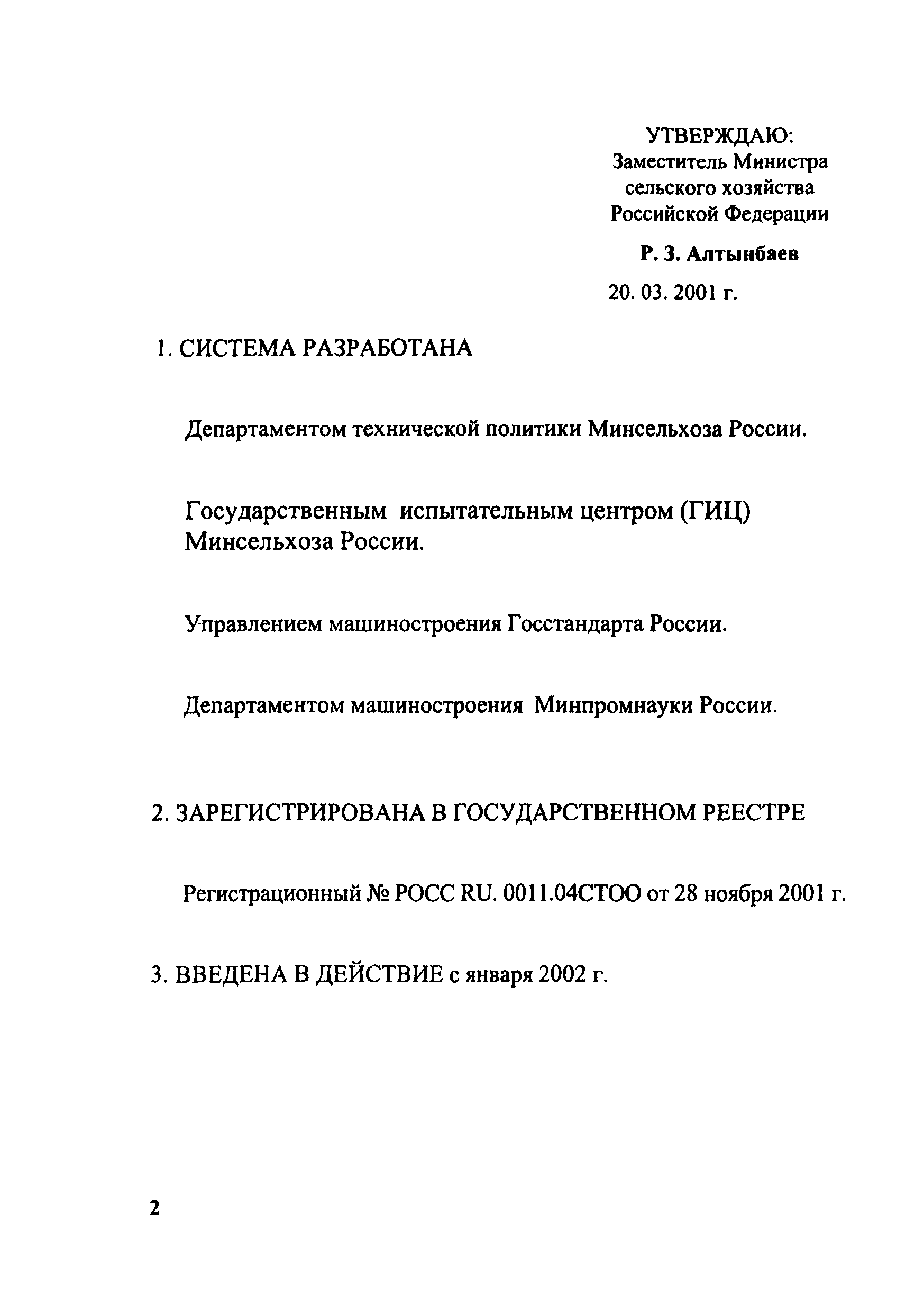 | | Утверждён: | 20.03.2001 Министерство сельского хозяйства России