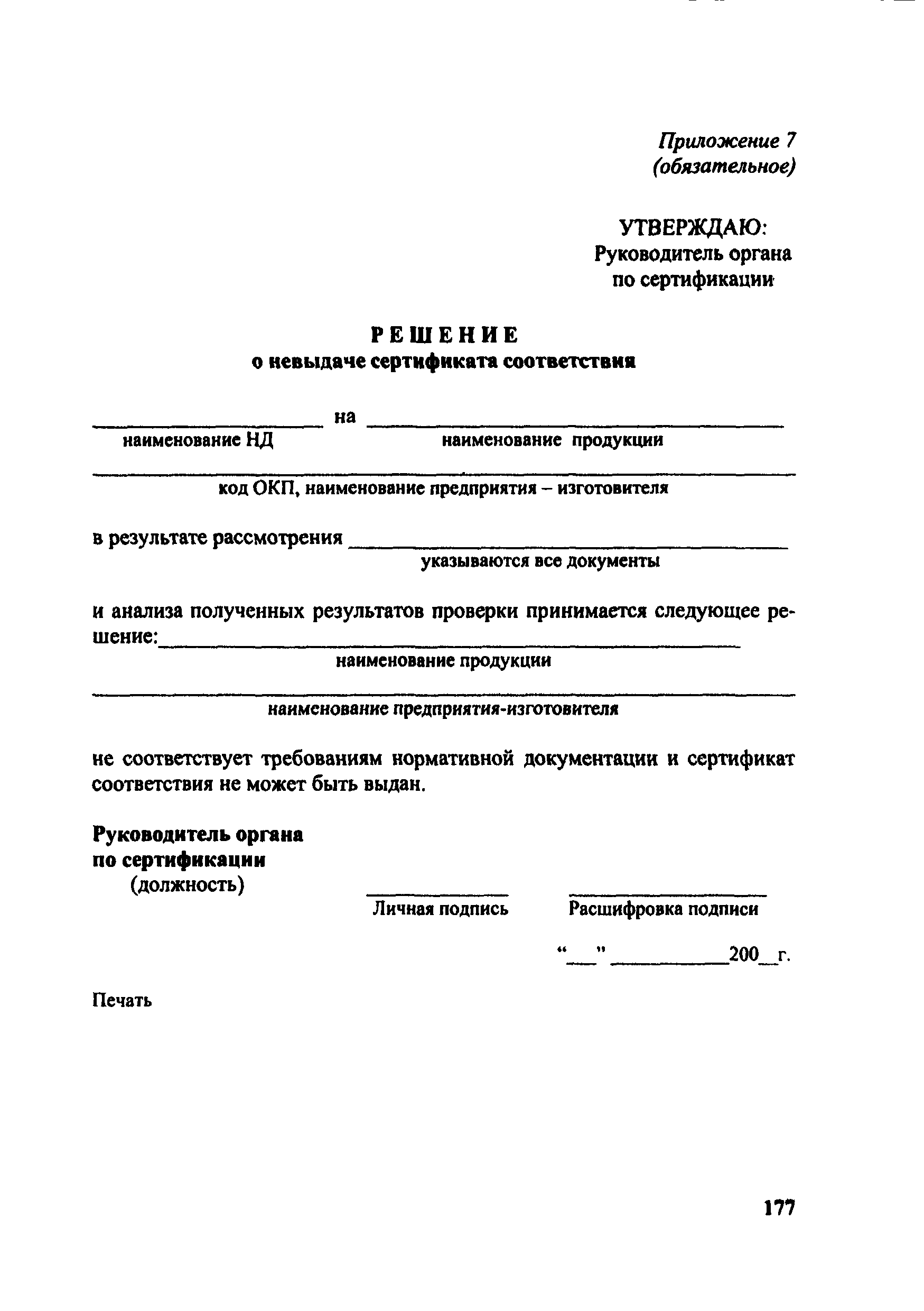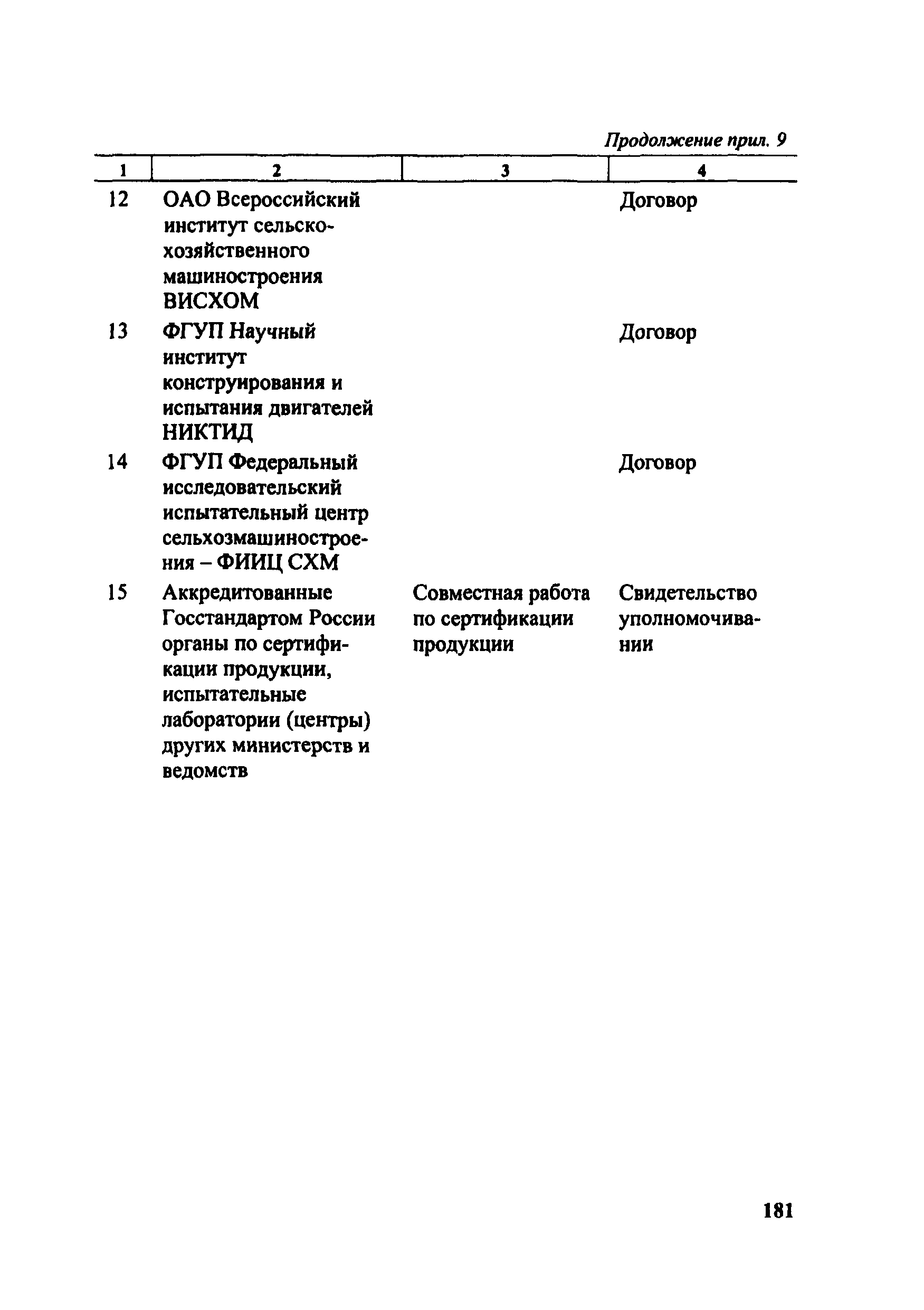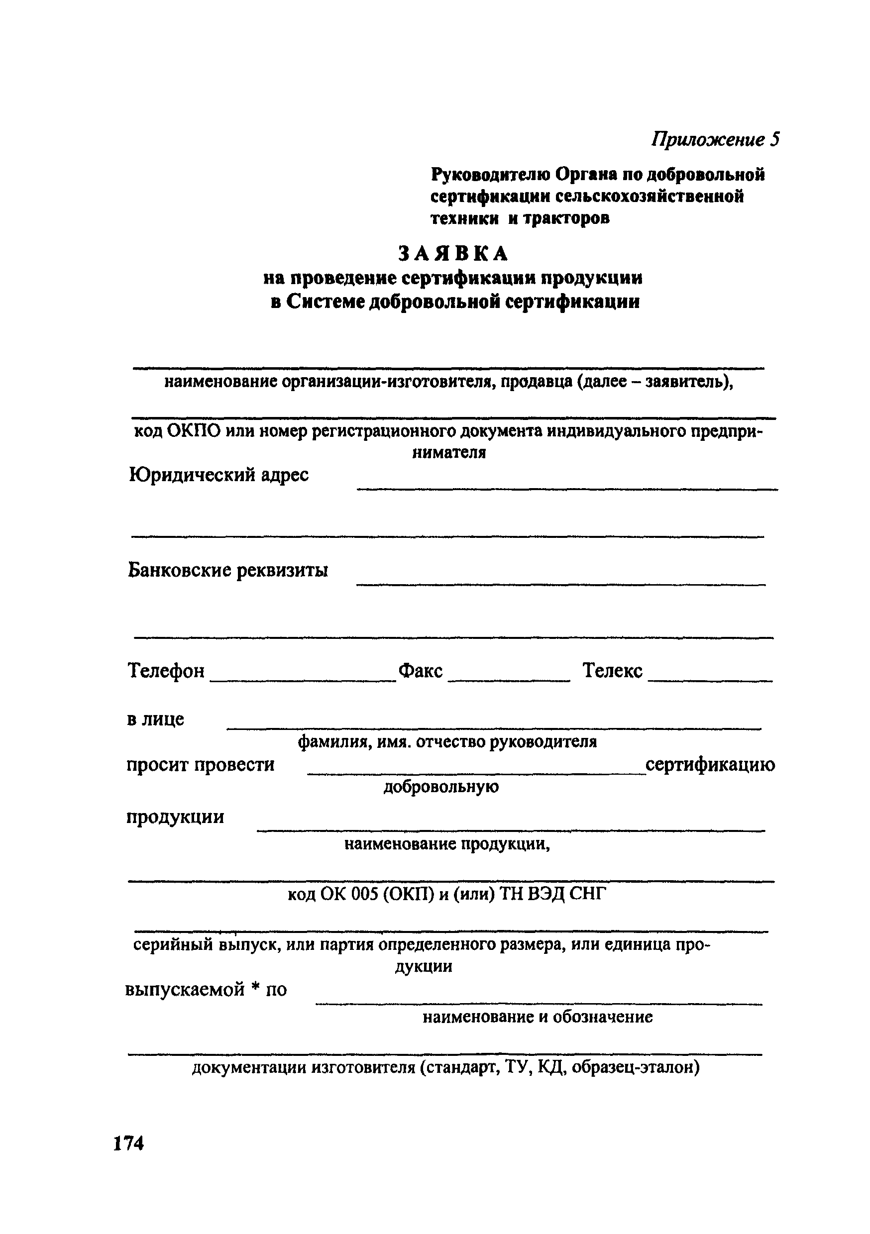 Положение о добровольной сертификации сельскохозяйственной техники и тракторов по показателям назначения (СДС СХТ ПН)| Статус: | действует | | Название рус.: | Положение о добровольной сертификации сельскохозяйственной техники и тракторов по показателям назначения (СДС СХТ ПН) | | Дата добавления в базу: | 01.09.2013 | | Дата актуализации: | 01.01.2021 | | Дата введения: | 01.01.2002 | | Область применения: | Система распространяется на сельскохозяйственные тракторы, машины для растениеводства, животноводства, птицеводства, кормопроизводства, лесного хозяйства, возделывания растений в закрытом грунте, транспортные средства и средства малой механизации сельскохозяйственного назначения. | | Оглавление: | 1. Общие положения 2. Цель сертификации 3. Термины и определения 4. Область распространения Системы 5. Организационная структура, состав участников Системы и их функции 6. Порядок проведения сертификации 7. Инспекционный контроль за сертифицированной продукцией 8. Рассмотрение апелляций 9. Оплата работ по сертификации 10. Взаимодействие СДС СХТ ПН с организациями Приложение 1. Область распространения (объекты сертификации) Системы добровольной сертификации тракторов и сельскохозяйственной техники по показателям назначения Приложение 2. Перечень научно-технической документации (ГОСТы, ОСТы, РТМ, РД, СТП) Приложение 3. Перечень основных показателей сельскохозяйственной техники, определяемых по типам машин при добровольной сертификации Приложение 4. Свидетельство Приложение 5. Заявка на проведение сертификации продукции в Системе добровольной сертификации Приложение 6. Решение по заявке на проведение добровольной сертификации Приложение 7. Решение о невыдаче сертификата соответствия Приложение 8. Сертификат соответствия Приложение 9. Перечень организаций, взаимодействующих с СДС СХТ ПН Министерства сельского хозяйства Российской Федерации | | Разработан: | Департамент технической политики Минсельхоза России ГИЦ Минсельхоза России