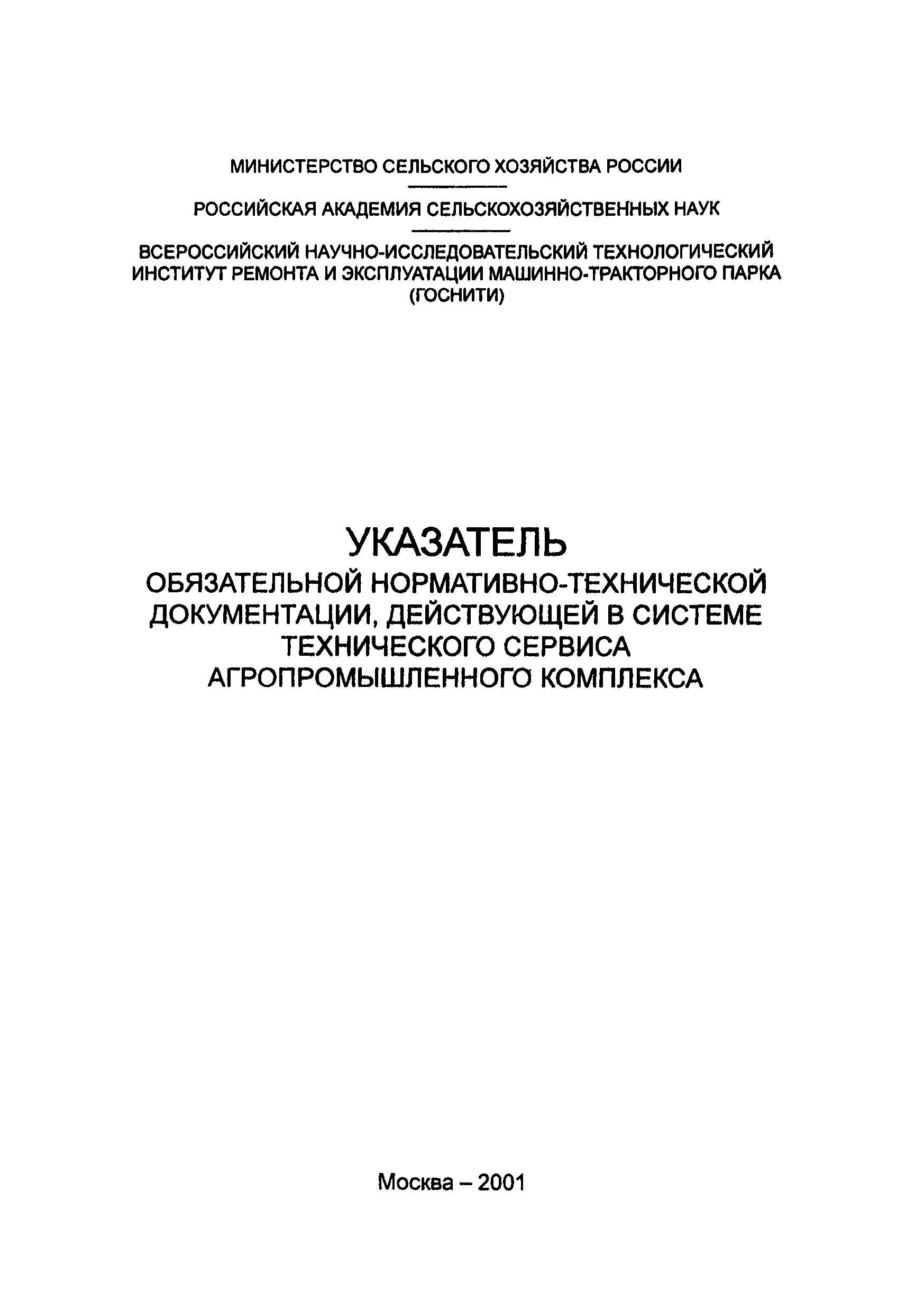 Скачать Указатель обязательной нормативно-технической документации, действующей в системе технического сервиса агропромышленного комплексаДата актуализации: 01.01.2021