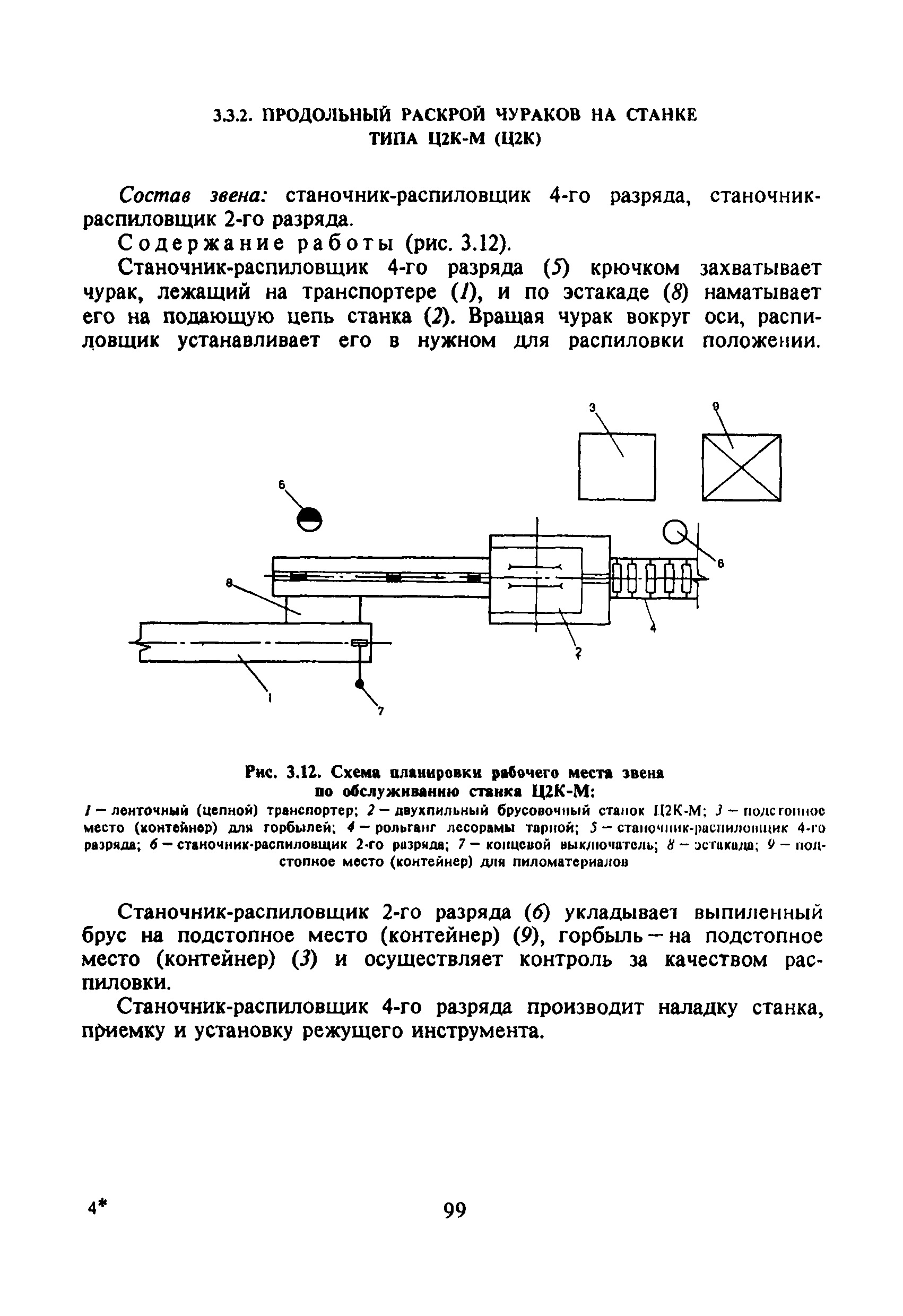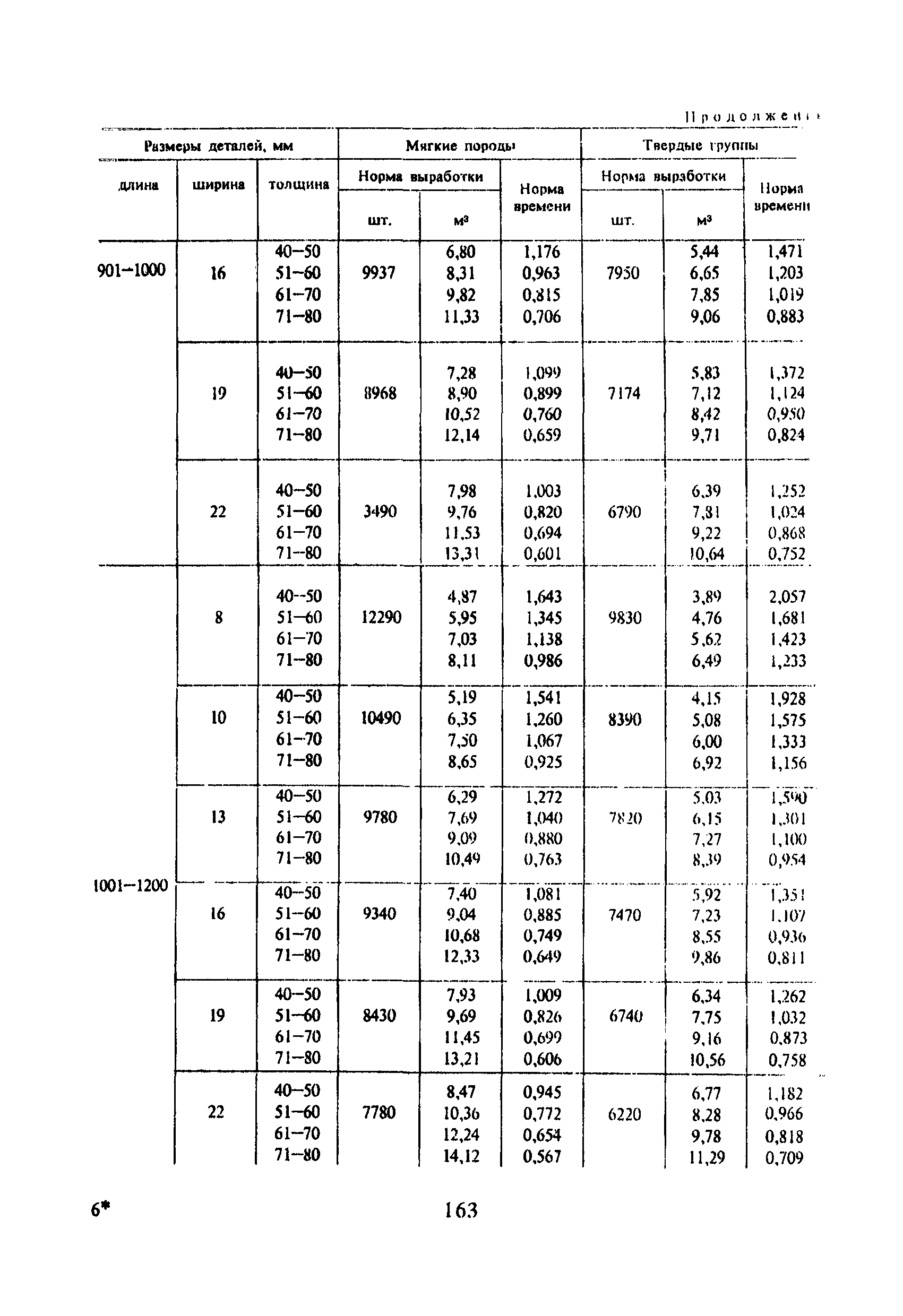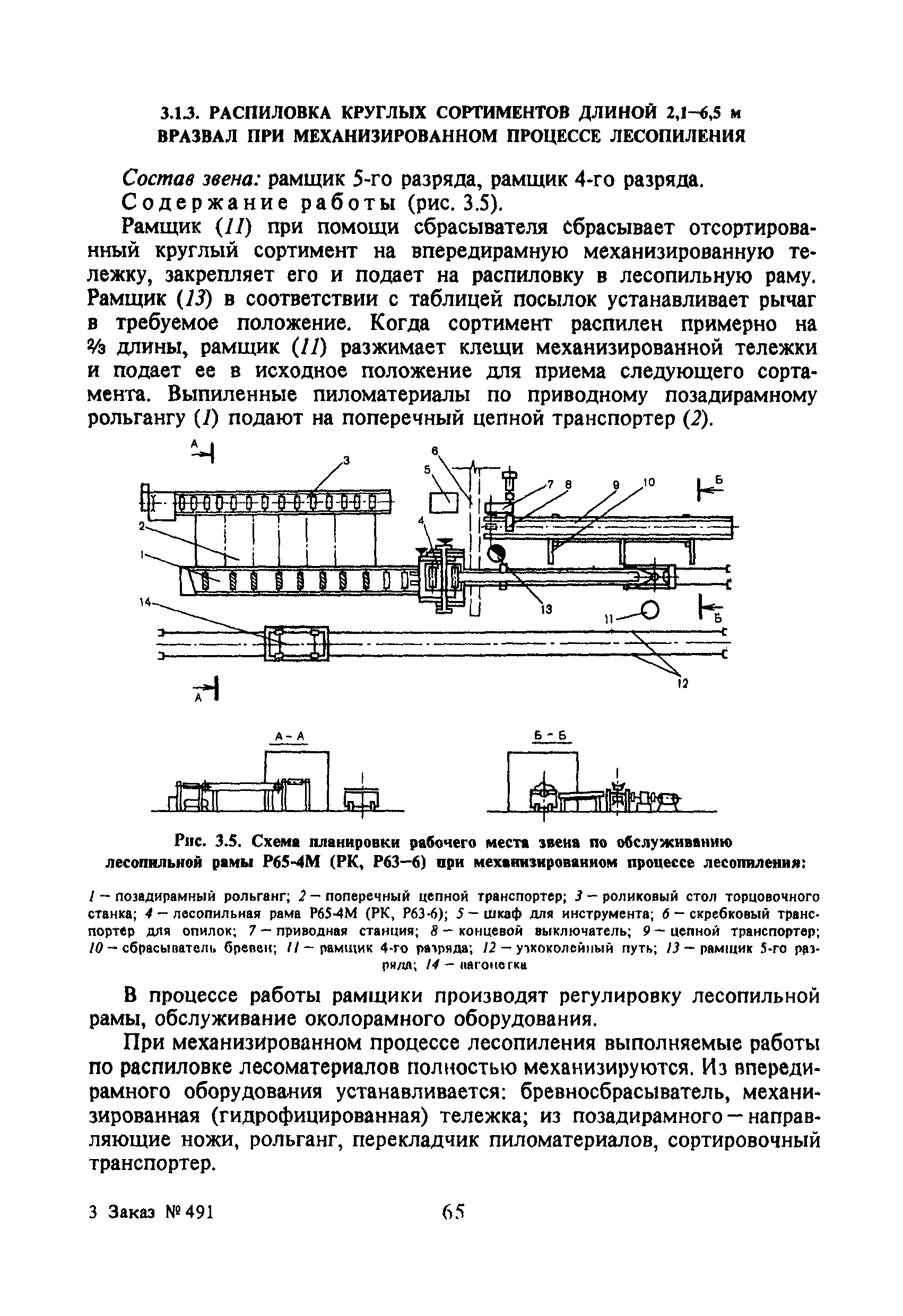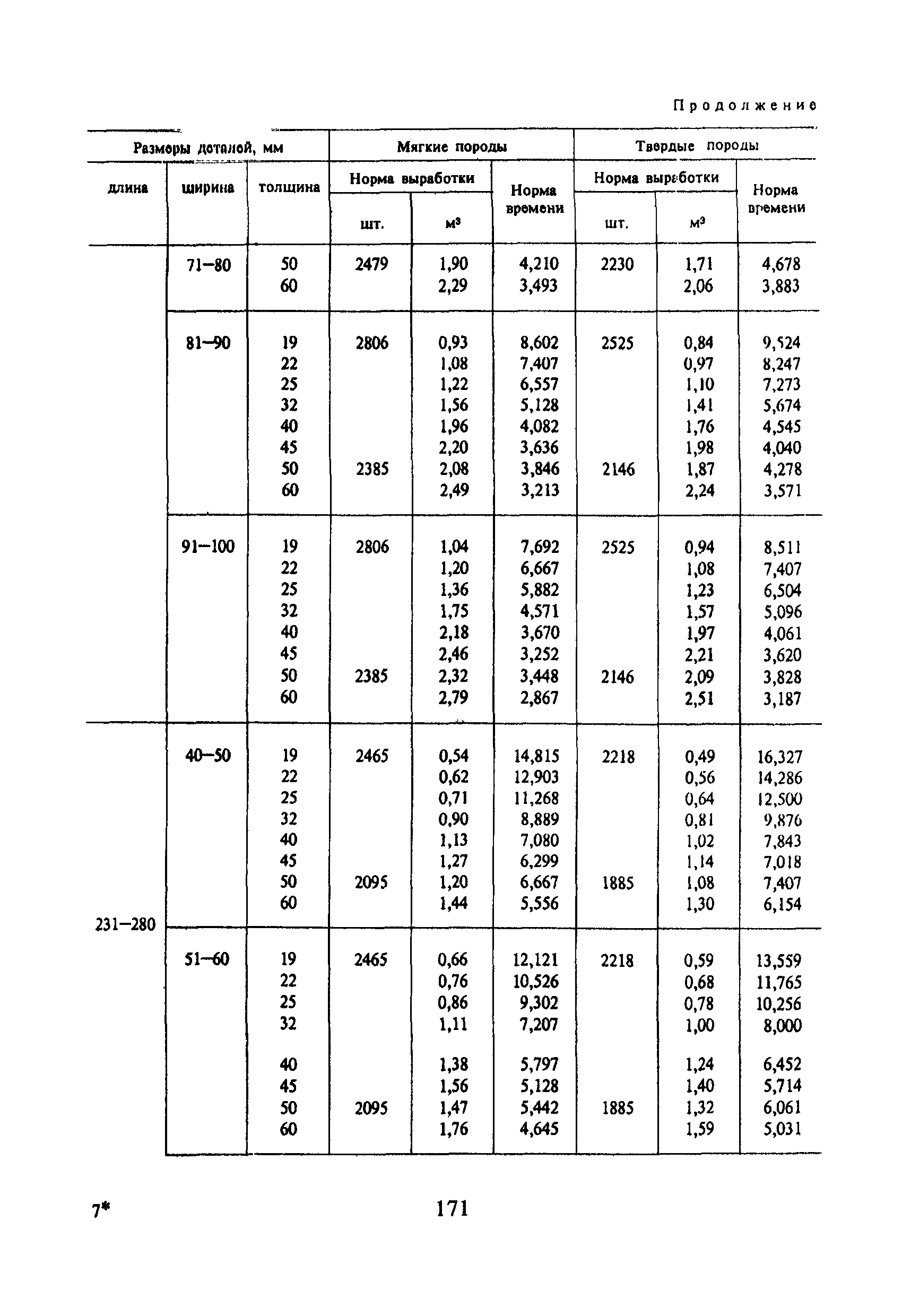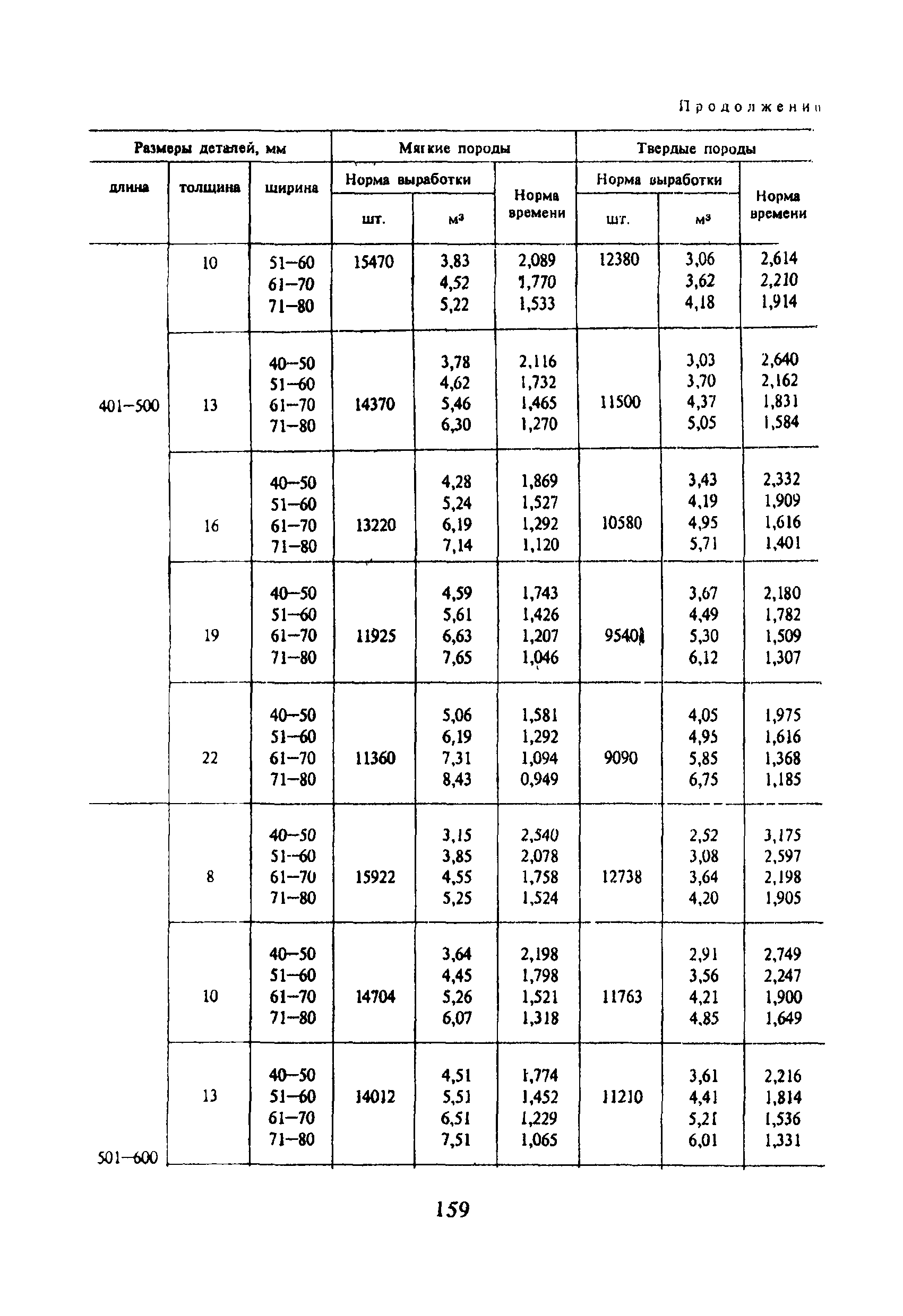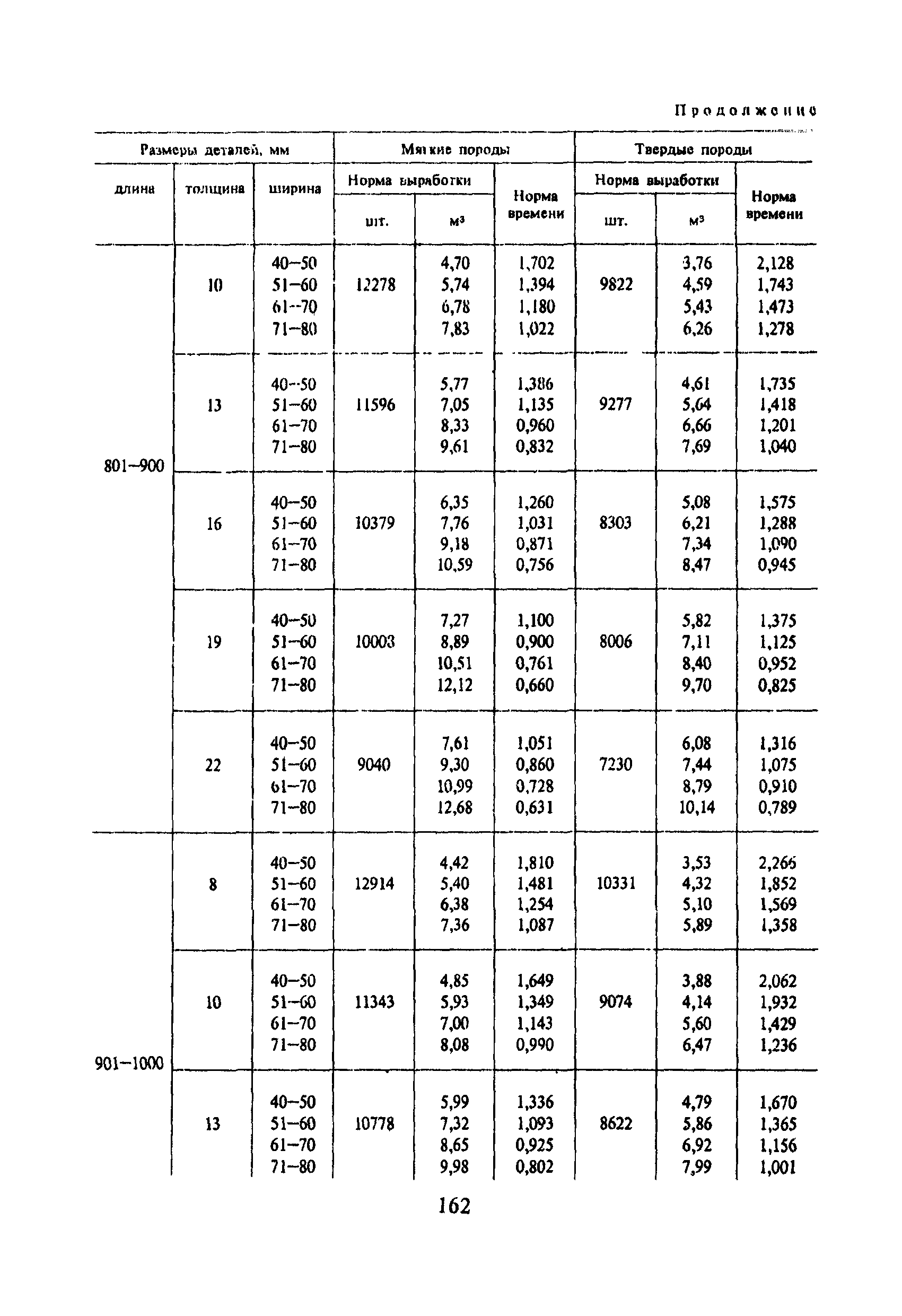 Типовые нормы выработки и времени на лесопильные работы (Работы, выполняемые на одноэтажных лесопильных рамах и круглопильных станках)| Статус: | справочные материалы, мп, тпр | | Название рус.: | Типовые нормы выработки и времени на лесопильные работы (Работы, выполняемые на одноэтажных лесопильных рамах и круглопильных станках) | | Дата добавления в базу: | 01.10.2014 | | Дата актуализации: | 01.01.2021 | | Область применения: | Типовые нормы предназначены для нормирования труда рабочих, выполняющих работы на лесопильных и тарных рамах, круглопильных станках, а также работы по перемещению, увязке и укладке сырья и изделий деревообработки, на всех предприятиях независимо от их ведомственной подчиненности | | Оглавление: | 1. Общая часть 2. Технология работы и организация труда 2.1. Переработка круглых сортиментов мягких пород 2.2. Переработка круглых сортиментов твердых пород 2.3. Переработка круглых короткомерных сортиментов 3. Нормативная часть 3.1. Нормы выработки и времени на распиловку круглых лесоматериалов на одноэтажных лесопильных рамах 3.1.1. Распиловка круглых сортиментов длиной 2,1 - 6,5 м вразвал при немеханизированном и полумеханизированном процессах лесопиления 3.1.2. Распиловка круглых сортиментов длиной 2,1 - 6,5 м на обрезные пиломатериалы при немеханизированном и полумеханизированном процессах лесопиления 3.1.3. Распиловка круглых сортиментов длиной 2,1 - 6,5 м вразвал при механизированном процессе лесопиления 3.1.4. Распиловка круглых сортиментов длиной 2,1 - 6,5 м на обрезные пиломатериалы при механизированном процессе лесопиления 3.1.5. Распиловка круглых сортиментов длиной 1 - 2 м на лесопильной раме РК 3.2. Нормы выработки и времени на поперечный раскрой древесины на круглопильных станках 3.2.1. Поперечный раскрой/круглых сортиментов на станке ЦБ-5 3.2.2. Поперечный раскрой пиломатериалов на станках типа ЦКБ-40 (ЦМЭ-3А, ЦМЭ-2), оборудованных поперечным транспортером для подачи пиломатериалов на стол станка 3.3. Нормы выработки и времени на продольный раскрой чураков на круглопильных станках 3.3.1. Продольный раскрой чураков на станке ЦДТ5-2 3.3.2. Продольный раскрой чураков на станке типа Ц2К- (Ц2К) 3.4. Нормы выработки и времени на продольный раскрой заготовок из пиломатериалов на круглопильных станках 3.4.1. Продольный раскрой необрезных пиломатериалов на станке ЦА-2 3.4.2. Продольный раскрой необрезных пиломатериалов на станках типа ЦДК4-3 (ЦДК4-2, ЦДК-4) 3.4.3. Продольный раскрой необрезных пиломатериалов на круглопильном станке ЦВП-1 3.4.4. Продольный раскрой необрезных пиломатериалов на станке типа Ц6-2 (Ц-6, Ц-5) 3.4 5. Продольный раскрой необрезных пиломатериалов на многопильных станках ЦА-2А, ЦДК5-2, ЦМ-80, ЦМ-120, ЦМР-2 3.5. Нормы выработки и времени на продольную распиловку пиломатериалов на тарной раме 3.5.1. Продольная распиловка пиломатериалов на тарных рамах РТ-2, РТ-36 3.6. Нормы выработки и времени на торцовку и поперечный раскрой заготовок кратной длины на детали на круглопильных станках 3.6.1. Пакетная торцовка деталей с одного конца на станке типа ЦПА-40 (ЦПА-2) 3.6.2. Групповой раскрой заготовок кратной длины на детали на станке ЦПА-40 3.6.3. Индивидуальный раскрой заготовок кратной длины на детали на станке Ц6-2 3.7. Нормы выработки на вспомогательные работы 3.7.1. Подача сырья в лесопильный цех вагонетками УЖД при погрузке мостовым краном 3.7.2. Подача сырья в лесопильный цех и вывозка п