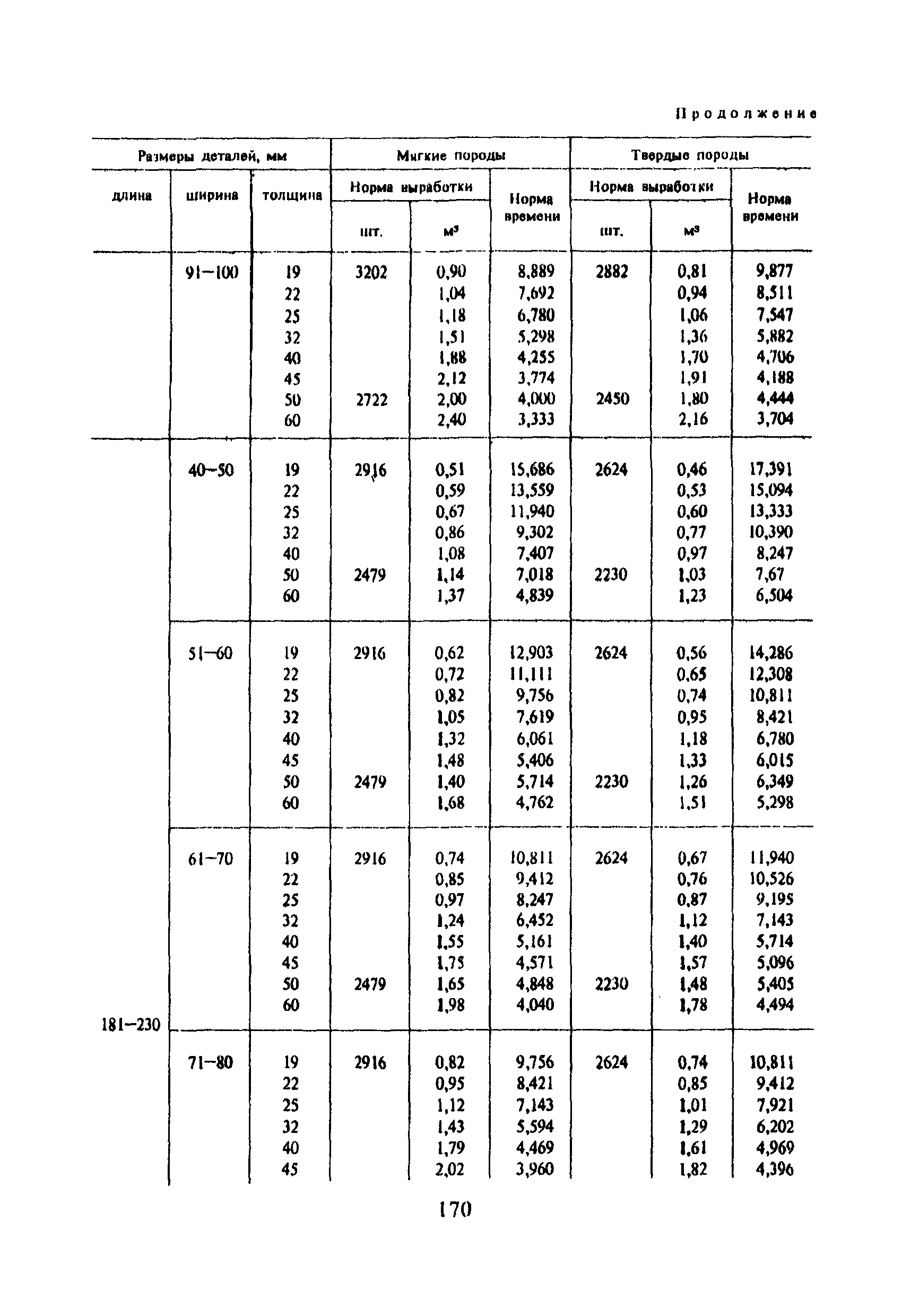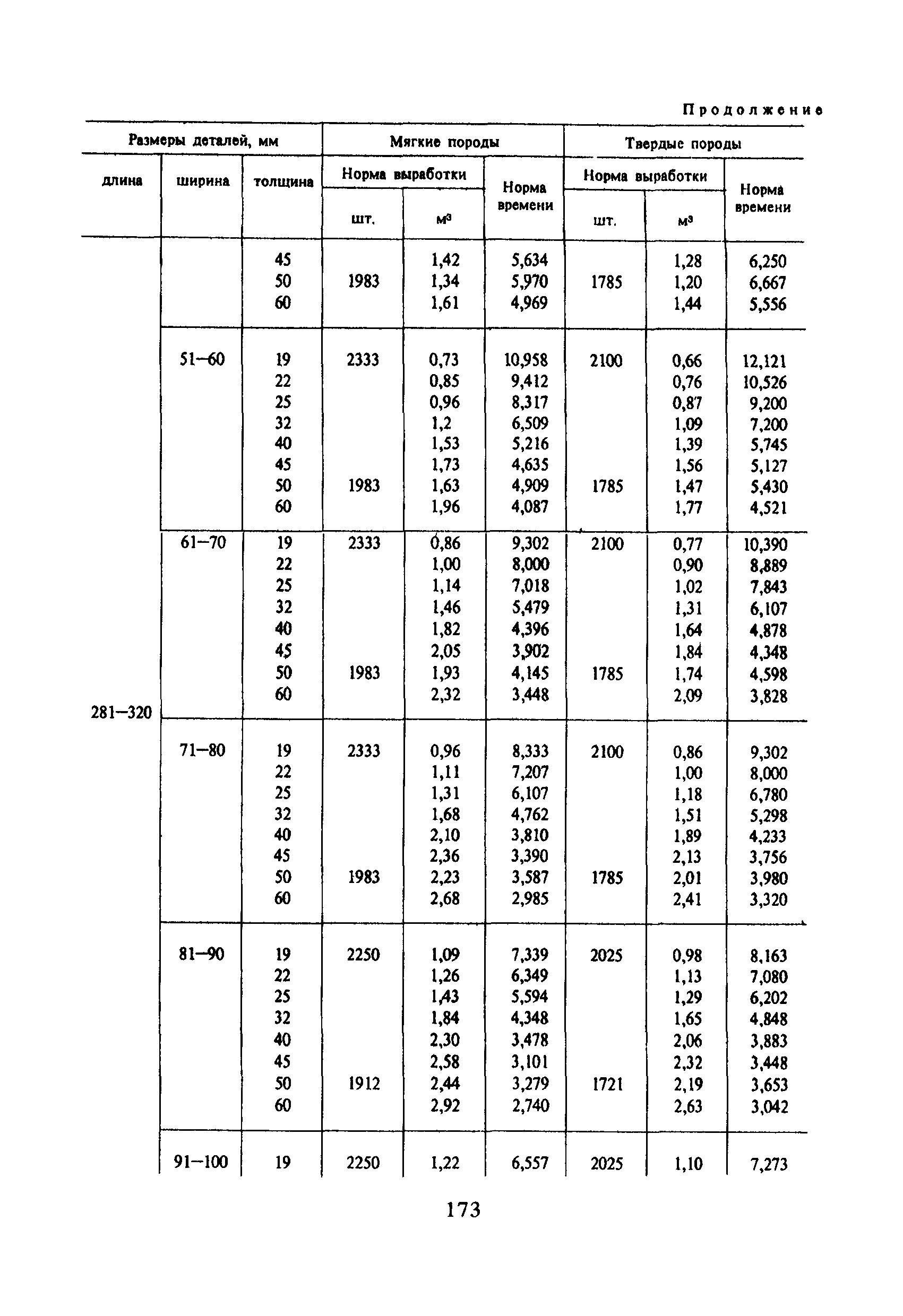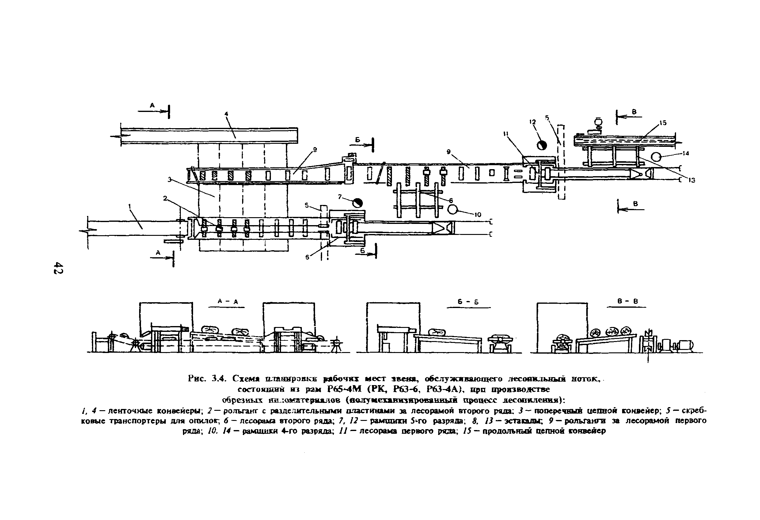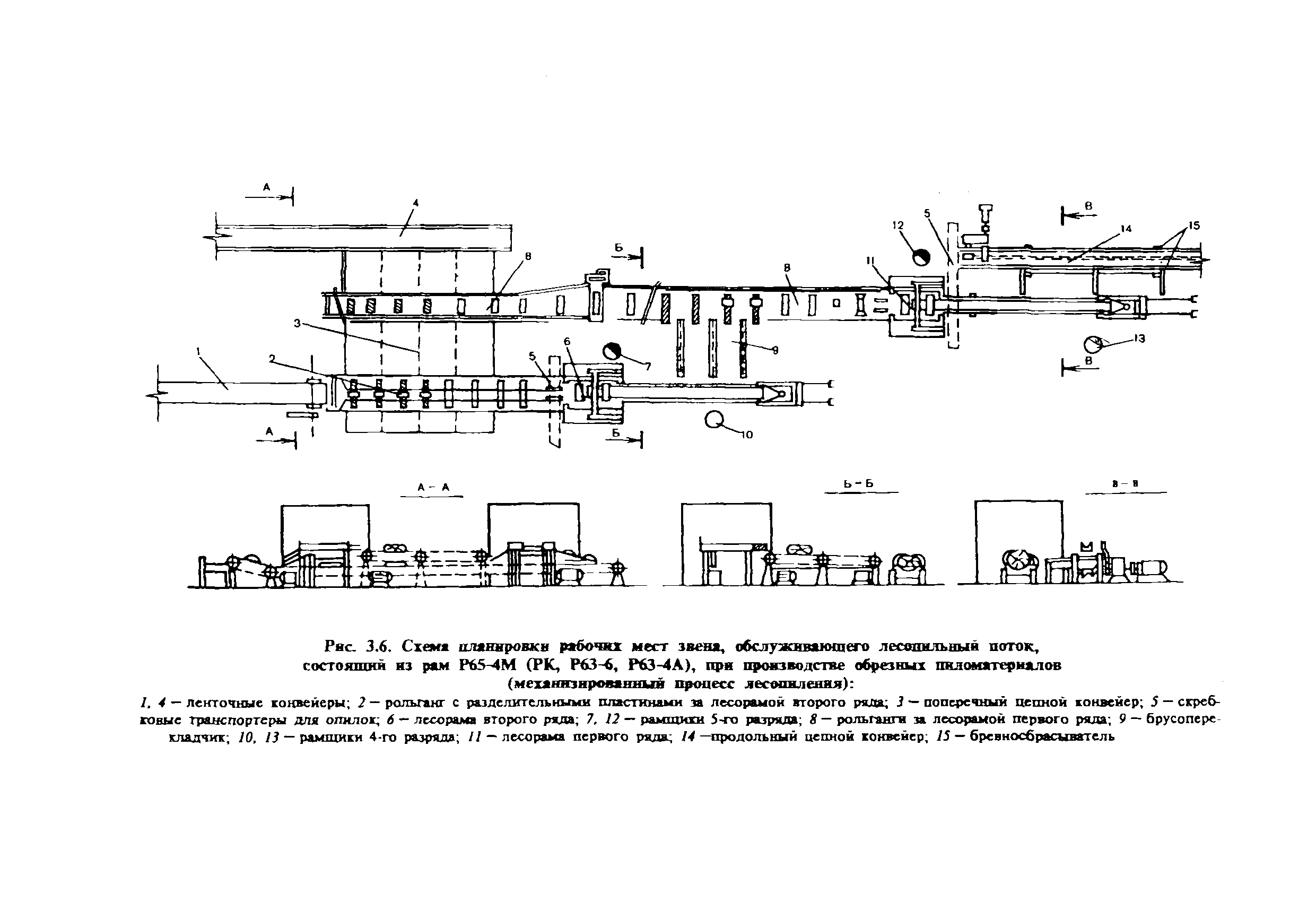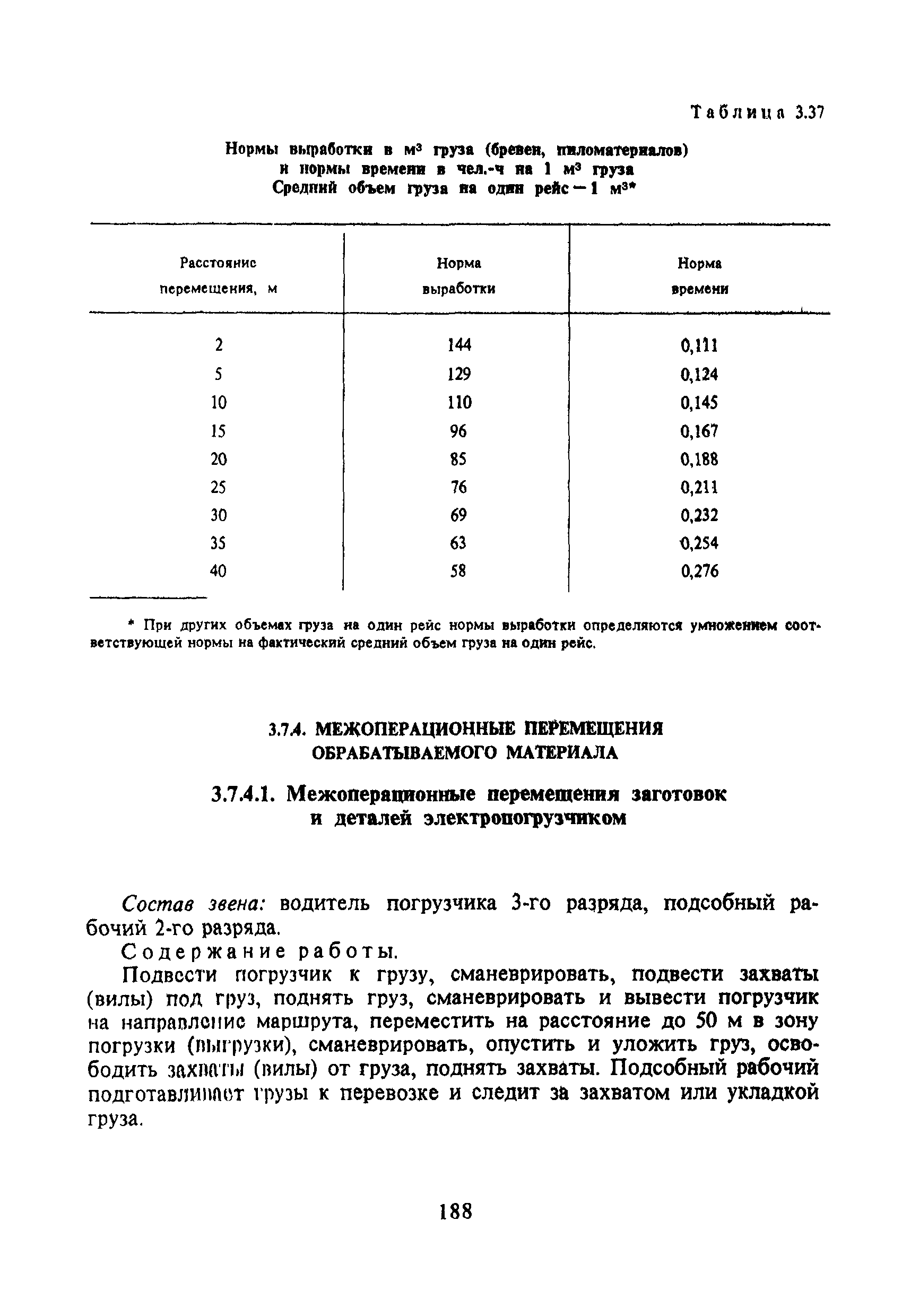 Типовые нормы выработки и времени на лесопильные работы (Работы, выполняемые на одноэтажных лесопильных рамах и круглопильных станках)| Статус: | справочные материалы, мп, тпр | | Название рус.: | Типовые нормы выработки и времени на лесопильные работы (Работы, выполняемые на одноэтажных лесопильных рамах и круглопильных станках) | | Дата добавления в базу: | 01.10.2014 | | Дата актуализации: | 01.01.2021 | | Область применения: | Типовые нормы предназначены для нормирования труда рабочих, выполняющих работы на лесопильных и тарных рамах, круглопильных станках, а также работы по перемещению, увязке и укладке сырья и изделий деревообработки, на всех предприятиях независимо от их ведомственной подчиненности | | Оглавление: | 1. Общая часть 2. Технология работы и организация труда 2.1. Переработка круглых сортиментов мягких пород 2.2. Переработка круглых сортиментов твердых пород 2.3. Переработка круглых короткомерных сортиментов 3. Нормативная часть 3.1. Нормы выработки и времени на распиловку круглых лесоматериалов на одноэтажных лесопильных рамах 3.1.1. Распиловка круглых сортиментов длиной 2,1 - 6,5 м вразвал при немеханизированном и полумеханизированном процессах лесопиления 3.1.2. Распиловка круглых сортиментов длиной 2,1 - 6,5 м на обрезные пиломатериалы при немеханизированном и полумеханизированном процессах лесопиления 3.1.3. Распиловка круглых сортиментов длиной 2,1 - 6,5 м вразвал при механизированном процессе лесопиления 3.1.4. Распиловка круглых сортиментов длиной 2,1 - 6,5 м на обрезные пиломатериалы при механизированном процессе лесопиления 3.1.5. Распиловка круглых сортиментов длиной 1 - 2 м на лесопильной раме РК 3.2. Нормы выработки и времени на поперечный раскрой древесины на круглопильных станках 3.2.1. Поперечный раскрой/круглых сортиментов на станке ЦБ-5 3.2.2. Поперечный раскрой пиломатериалов на станках типа ЦКБ-40 (ЦМЭ-3А, ЦМЭ-2), оборудованных поперечным транспортером для подачи пиломатериалов на стол станка 3.3. Нормы выработки и времени на продольный раскрой чураков на круглопильных станках 3.3.1. Продольный раскрой чураков на станке ЦДТ5-2 3.3.2. Продольный раскрой чураков на станке типа Ц2К- (Ц2К) 3.4. Нормы выработки и времени на продольный раскрой заготовок из пиломатериалов на круглопильных станках 3.4.1. Продольный раскрой необрезных пиломатериалов на станке ЦА-2 3.4.2. Продольный раскрой необрезных пиломатериалов на станках типа ЦДК4-3 (ЦДК4-2, ЦДК-4) 3.4.3. Продольный раскрой необрезных пиломатериалов на круглопильном станке ЦВП-1 3.4.4. Продольный раскрой необрезных пиломатериалов на станке типа Ц6-2 (Ц-6, Ц-5) 3.4 5. Продольный раскрой необрезных пиломатериалов на многопильных станках ЦА-2А, ЦДК5-2, ЦМ-80, ЦМ-120, ЦМР-2 3.5. Нормы выработки и времени на продольную распиловку пиломатериалов на тарной раме 3.5.1. Продольная распиловка пиломатериалов на тарных рамах РТ-2, РТ-36 3.6. Нормы выработки и времени на торцовку и поперечный раскрой заготовок кратной длины на детали на круглопильных станках 3.6.1. Пакетная торцовка деталей с одного конца на станке типа ЦПА-40 (ЦПА-2) 3.6.2. Групповой раскрой заготовок кратной длины на детали на станке ЦПА-40 3.6.3. Индивидуальный раскрой заготовок кратной длины на детали на станке Ц6-2 3.7. Нормы выработки на вспомогательные работы 3.7.1. Подача сырья в лесопильный цех вагонетками УЖД при погрузке мостовым краном 3.7.2. Подача сырья в лесопильный цех и вывозка п